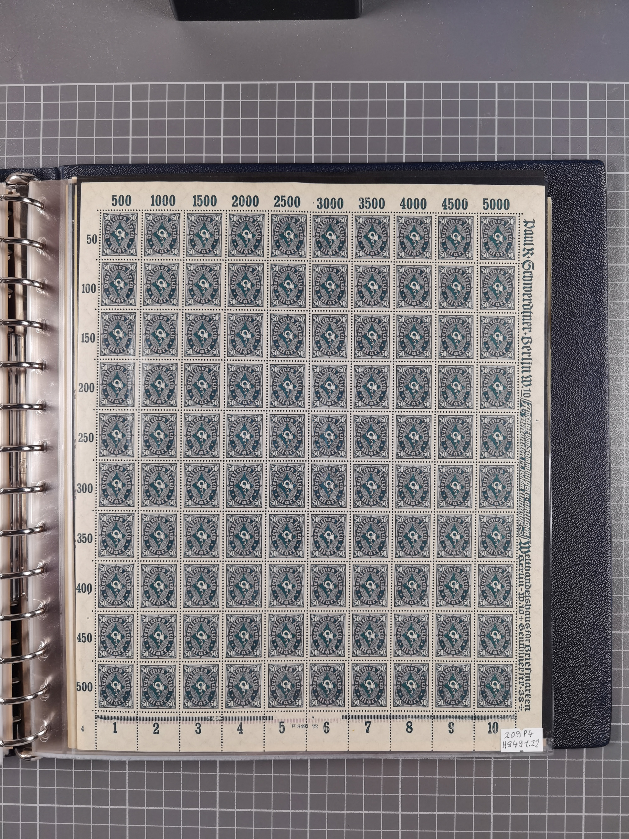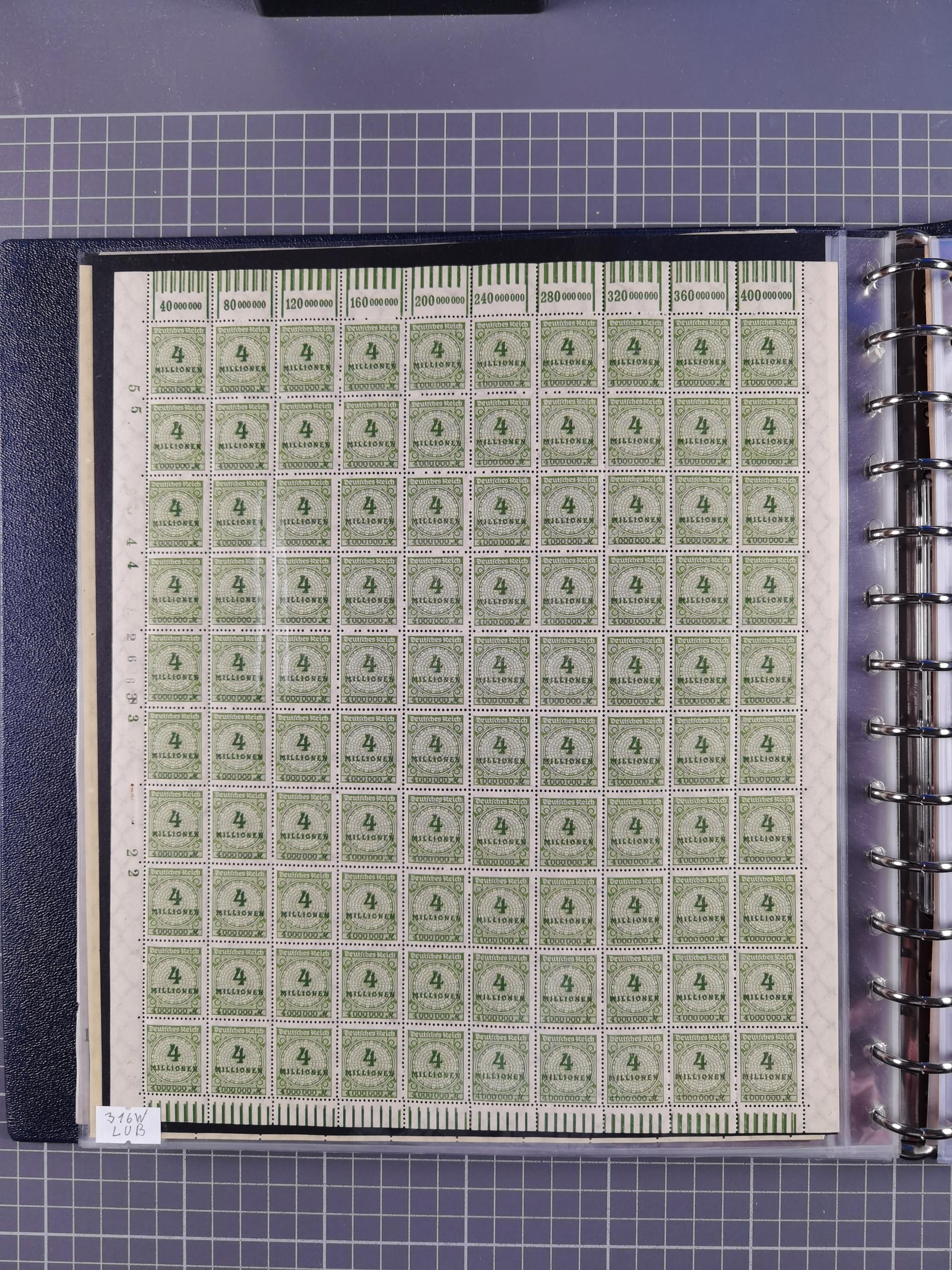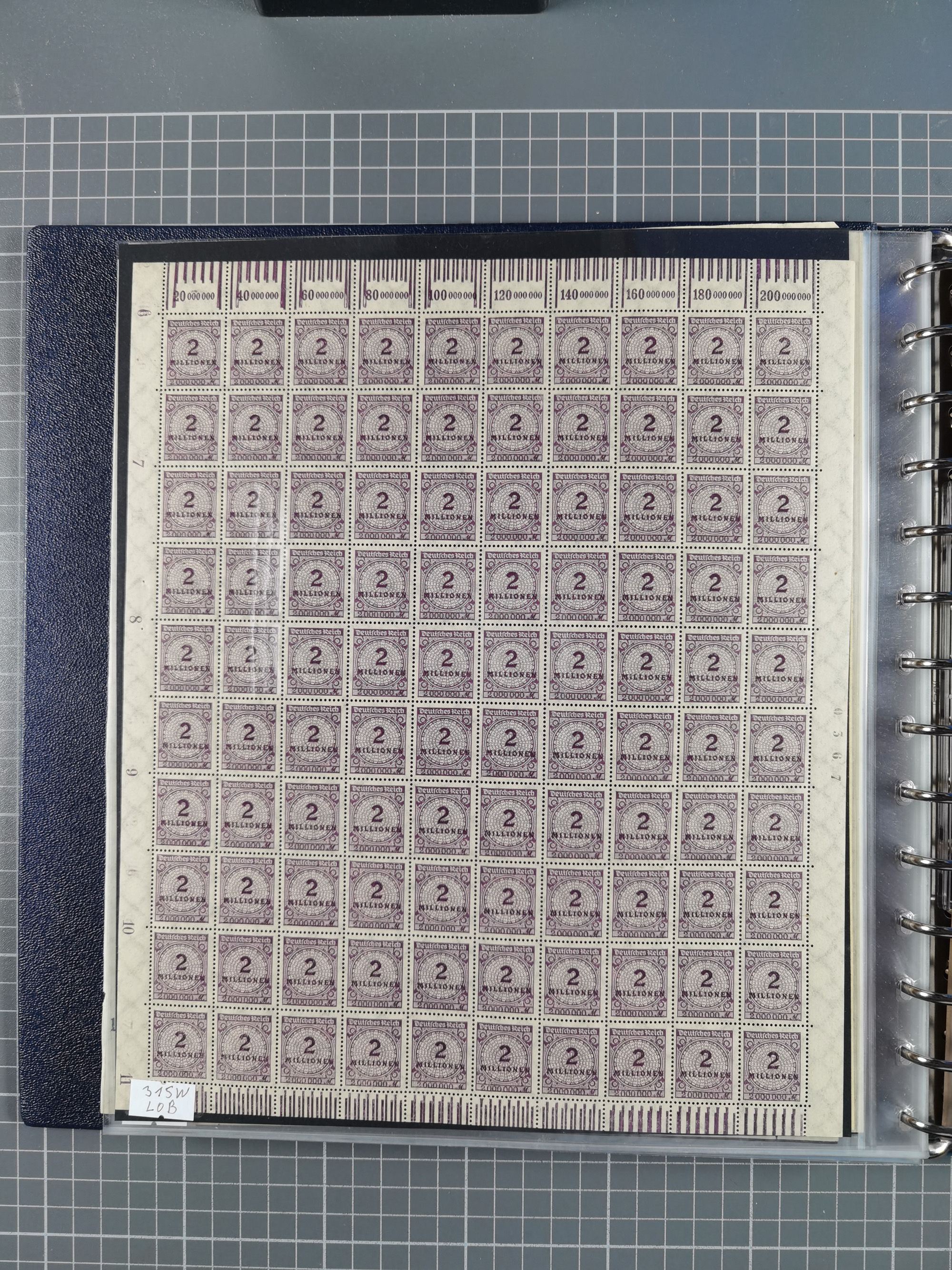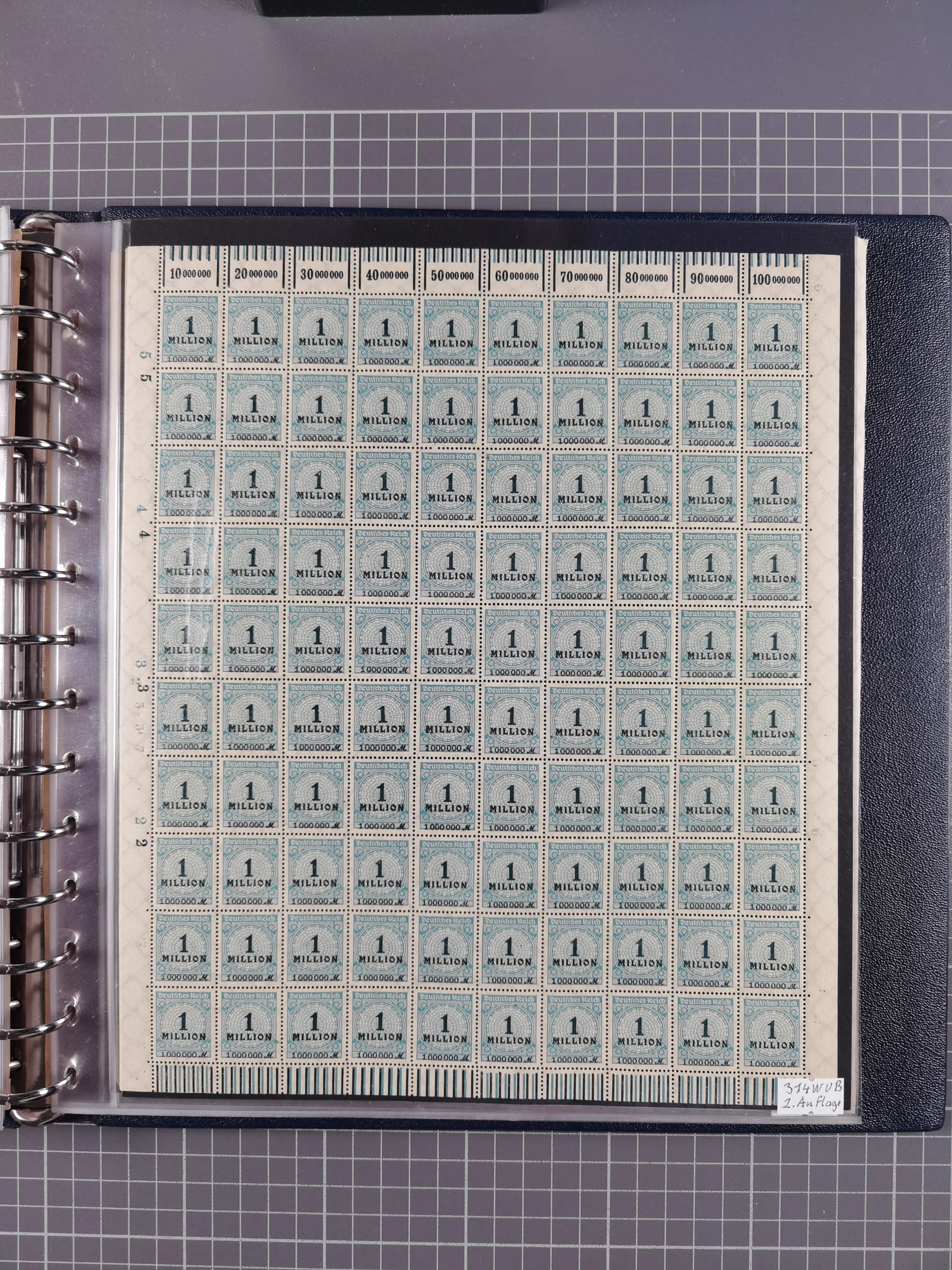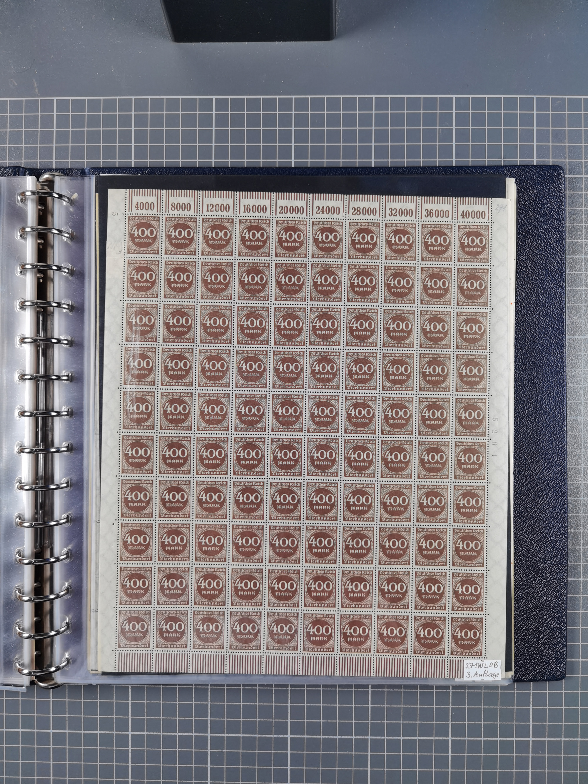 1920, meist postfrischer Bestand mit Mi.-Nr. 115 in 12 verschiedenen Bogen mit HAN “4891.20” mit geschlossener “4”, Plattenfehler XI, XV-XVII, unterschiedliche Farben, ein Bogen sign. Infla Berlin f, ein Bogen mit leichten Anhaftungen, einige leicht fleckig bzw. Randfehler