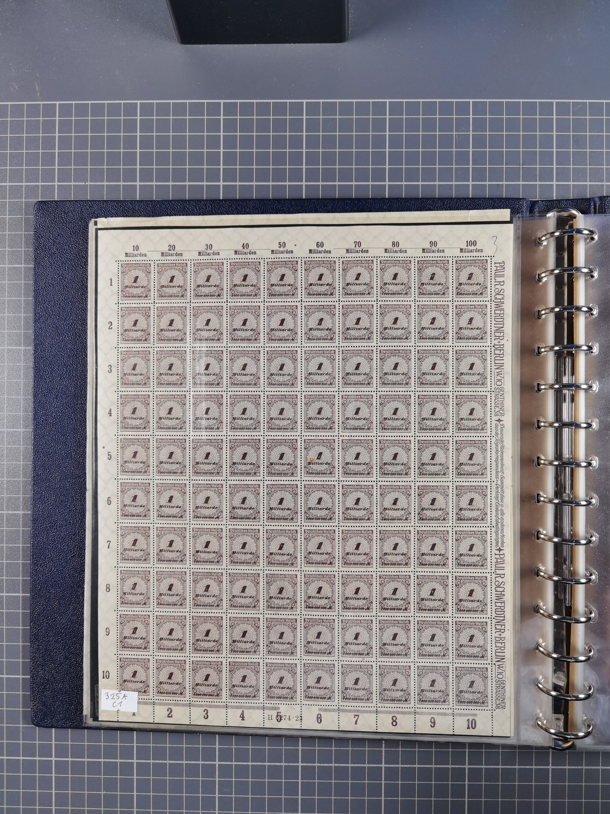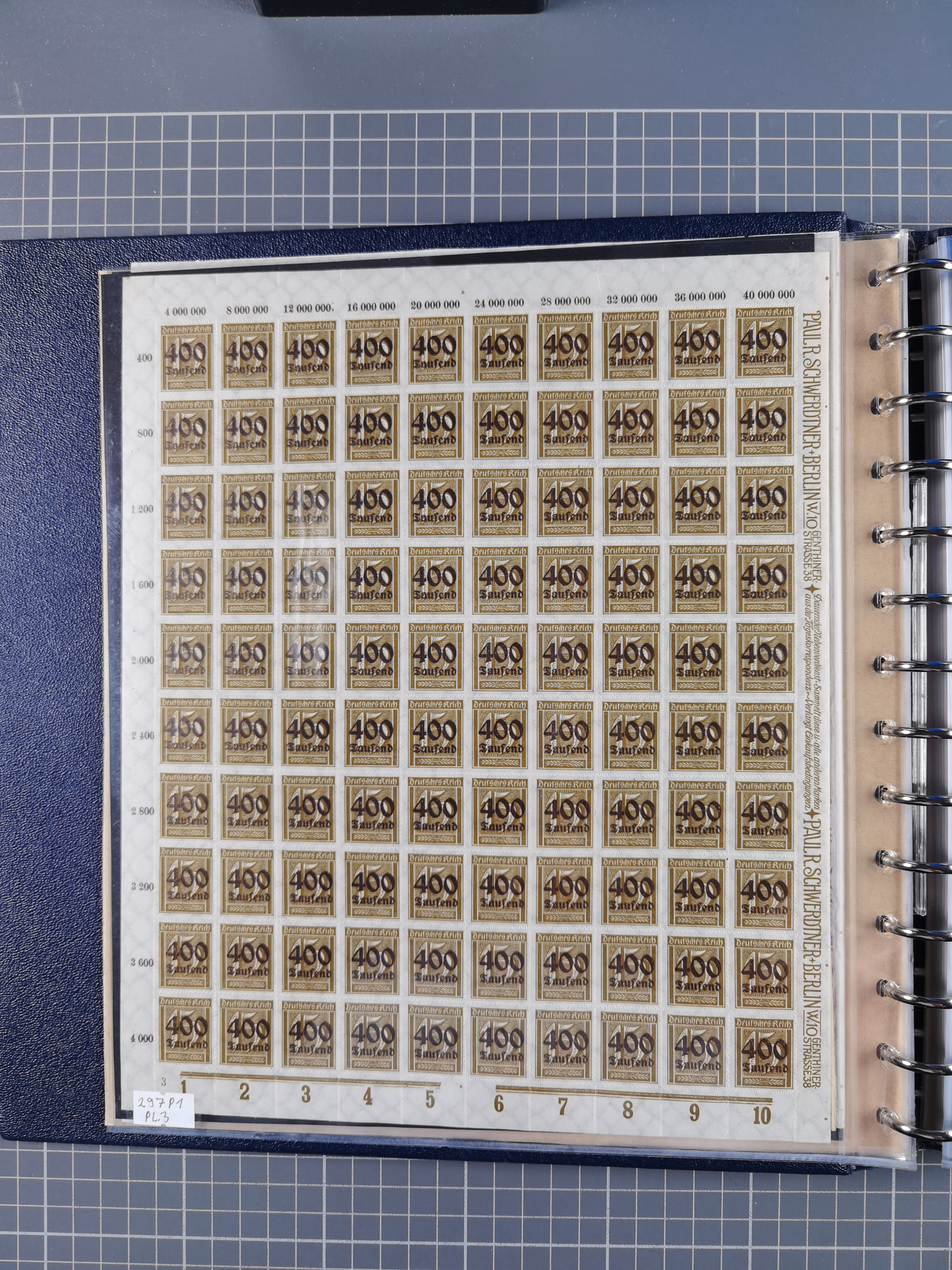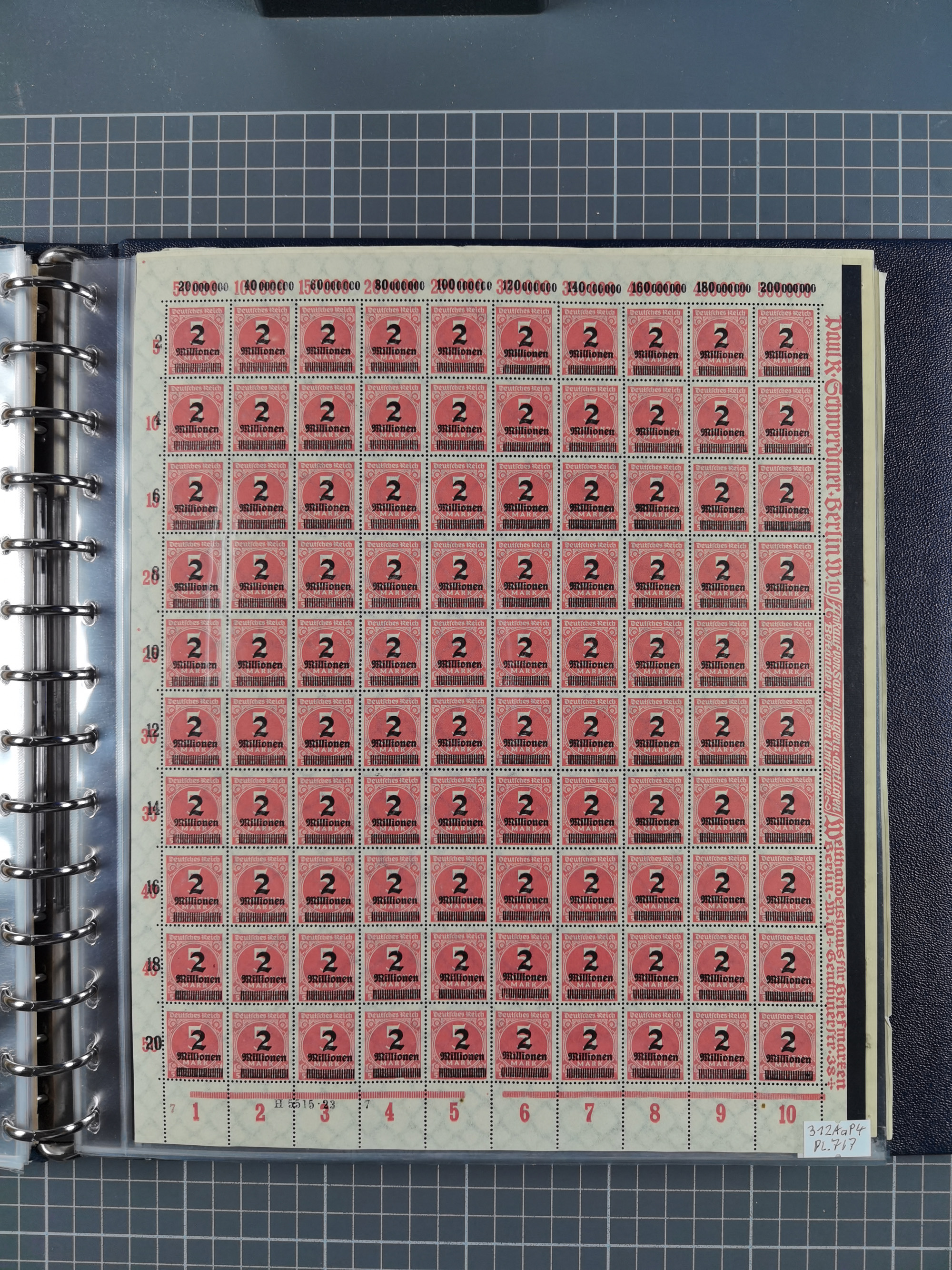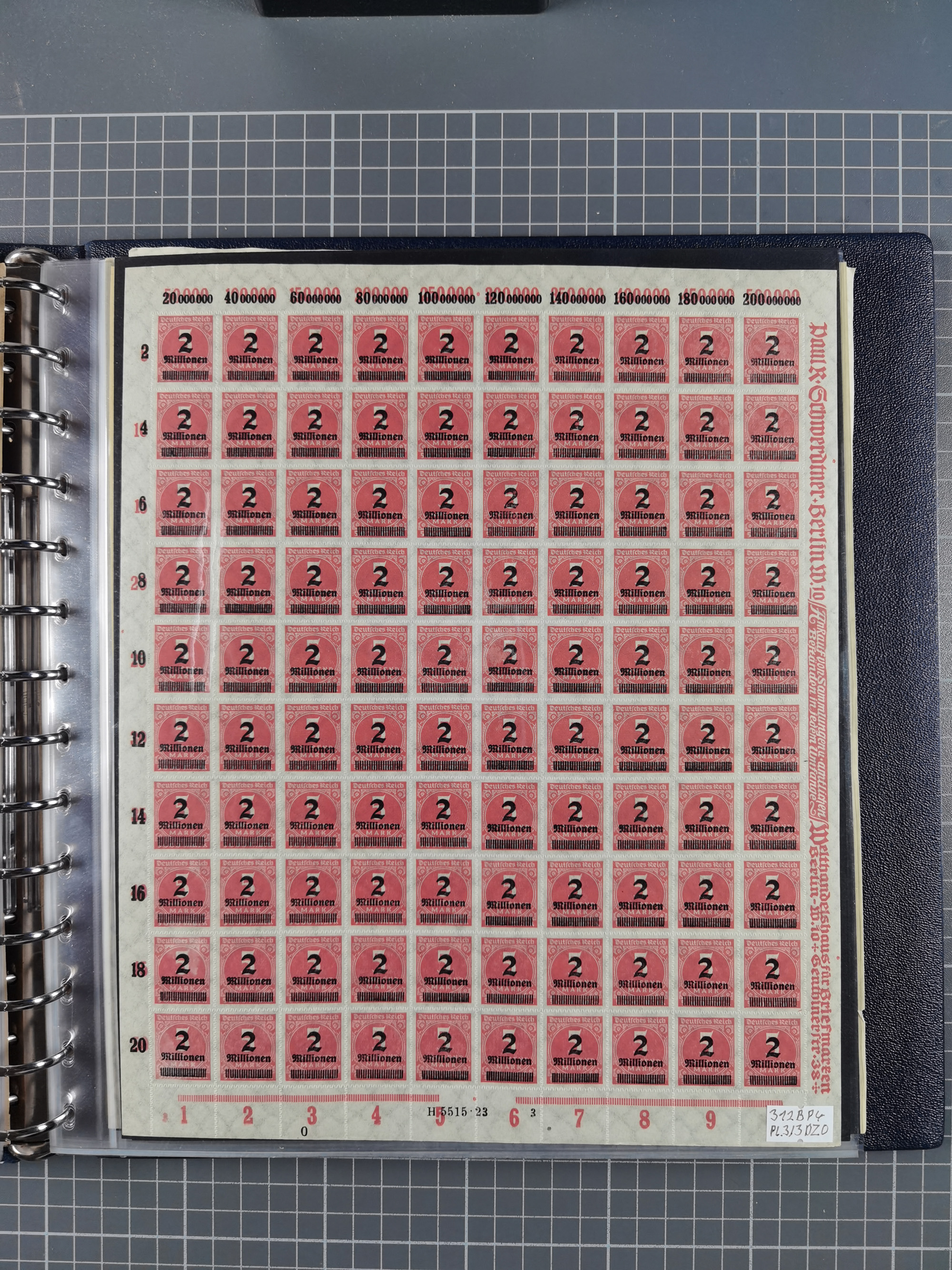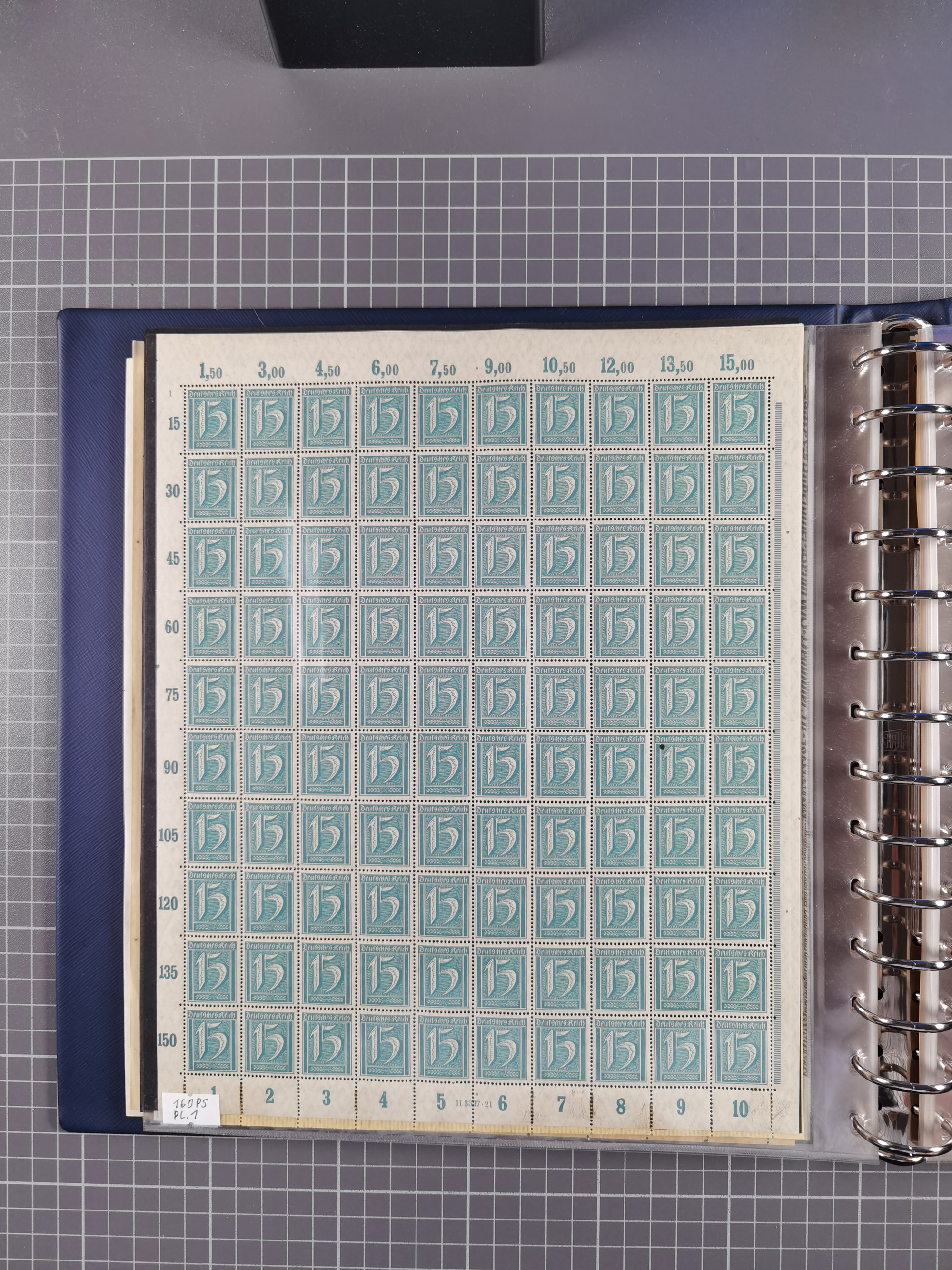 1920, meist postfrischer Bestand mit Mi.-Nr. 115 in 12 verschiedenen Bogen mit HAN “4891.20” mit geschlossener “4”, Plattenfehler XI, XV-XVII, unterschiedliche Farben, ein Bogen sign. Infla Berlin f, ein Bogen mit leichten Anhaftungen, einige leicht fleckig bzw. Randfehler