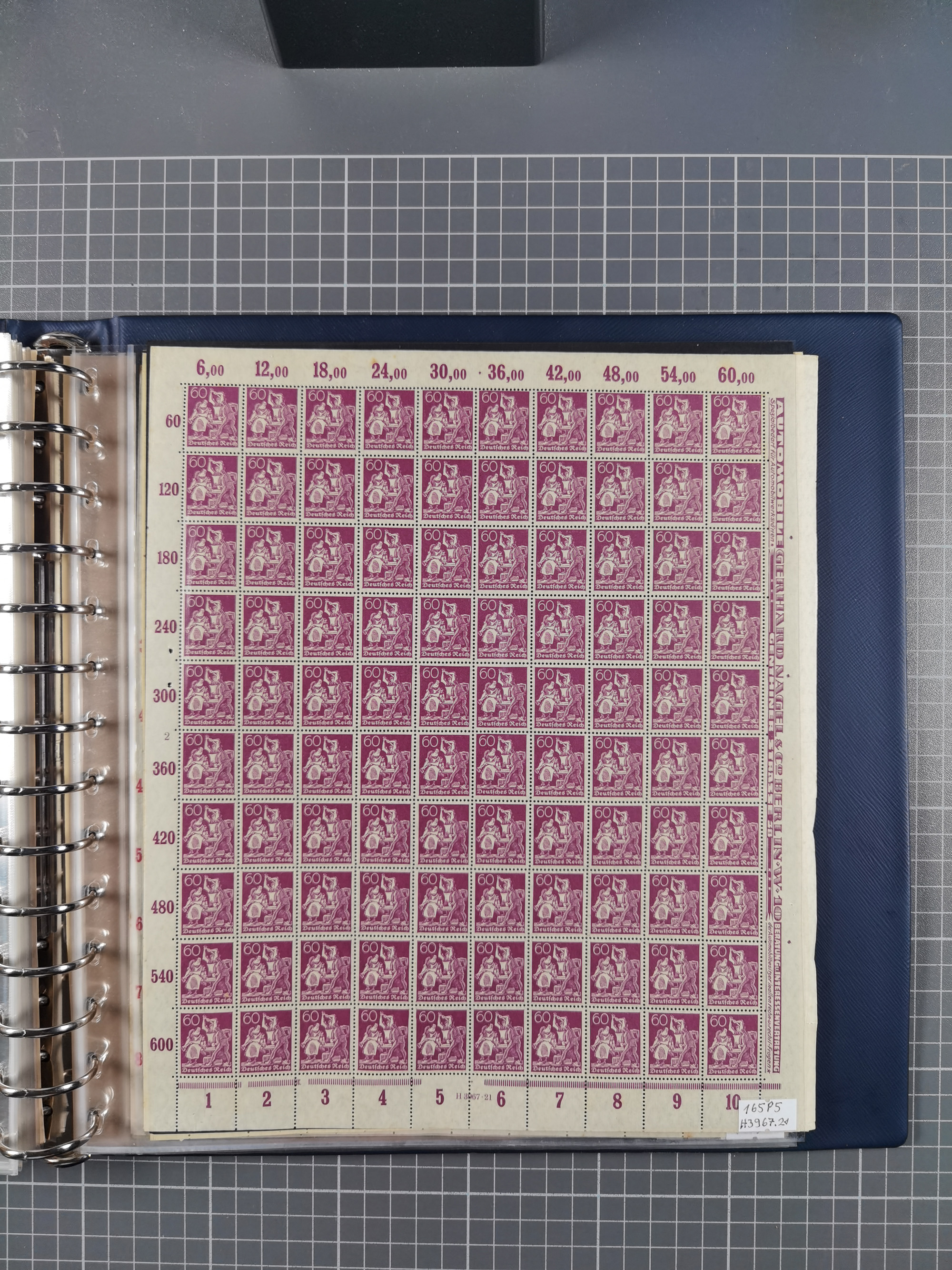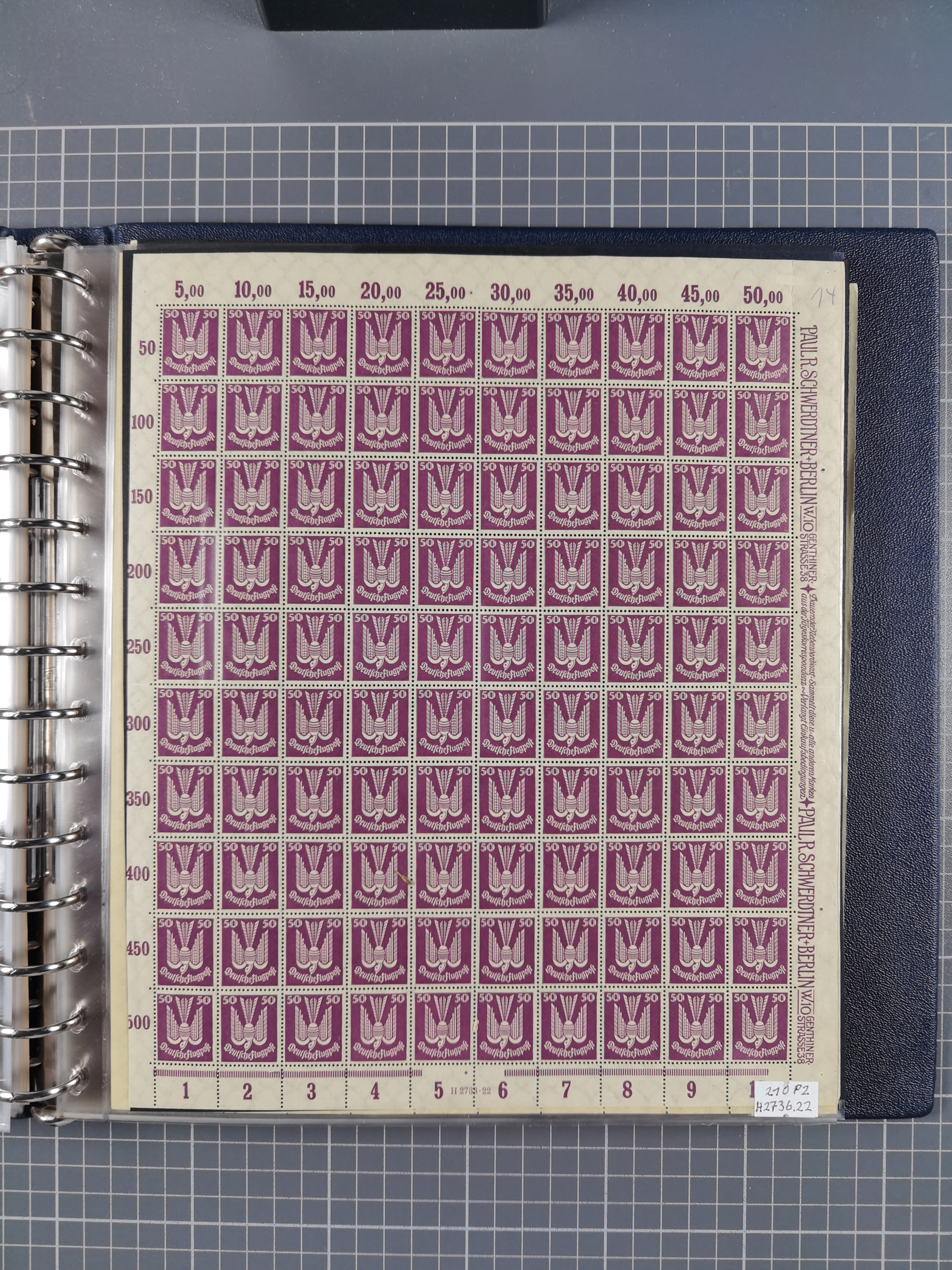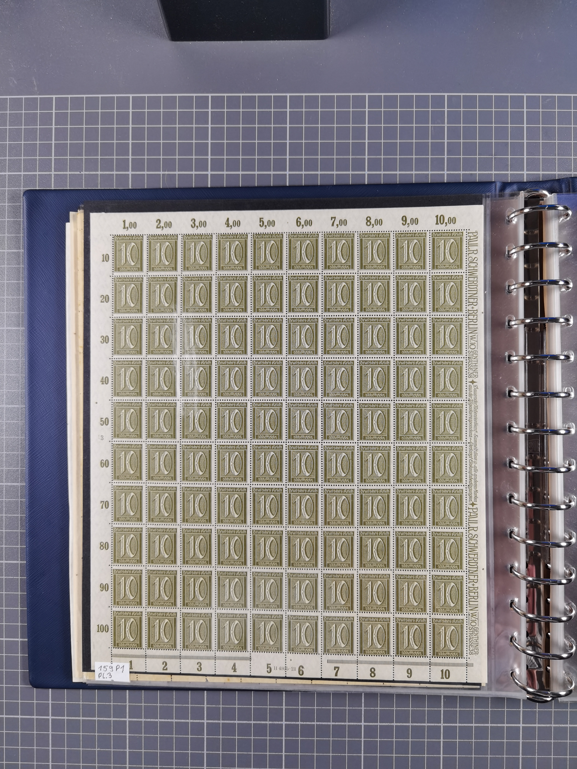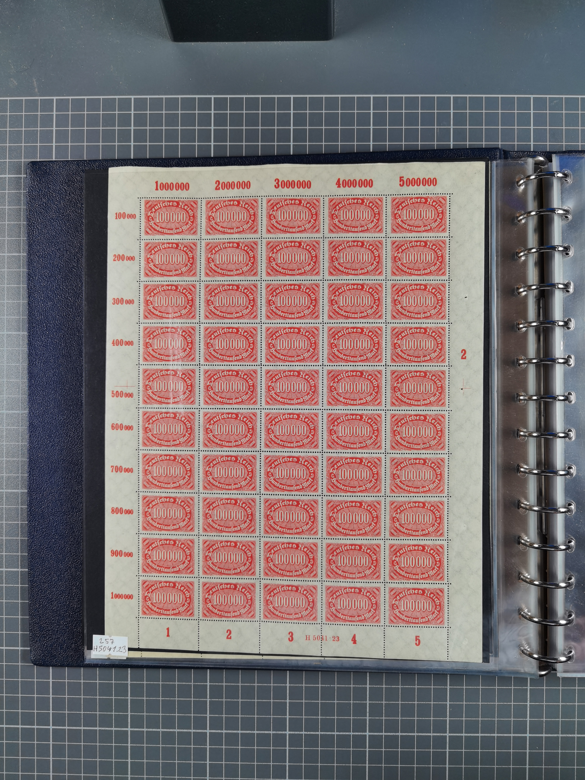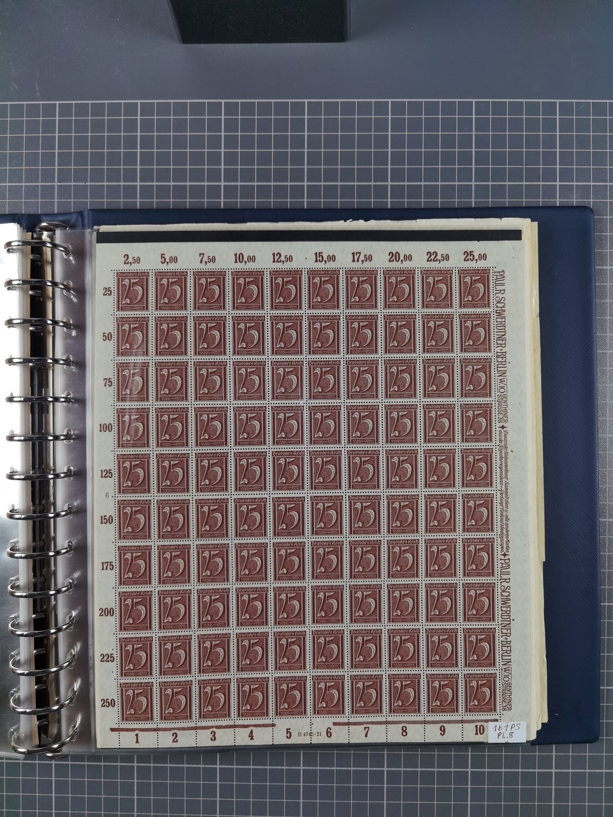 1920, meist postfrischer Bestand mit Mi.-Nr. 115 in 12 verschiedenen Bogen mit HAN “4891.20” mit geschlossener “4”, Plattenfehler XI, XV-XVII, unterschiedliche Farben, ein Bogen sign. Infla Berlin f, ein Bogen mit leichten Anhaftungen, einige leicht fleckig bzw. Randfehler