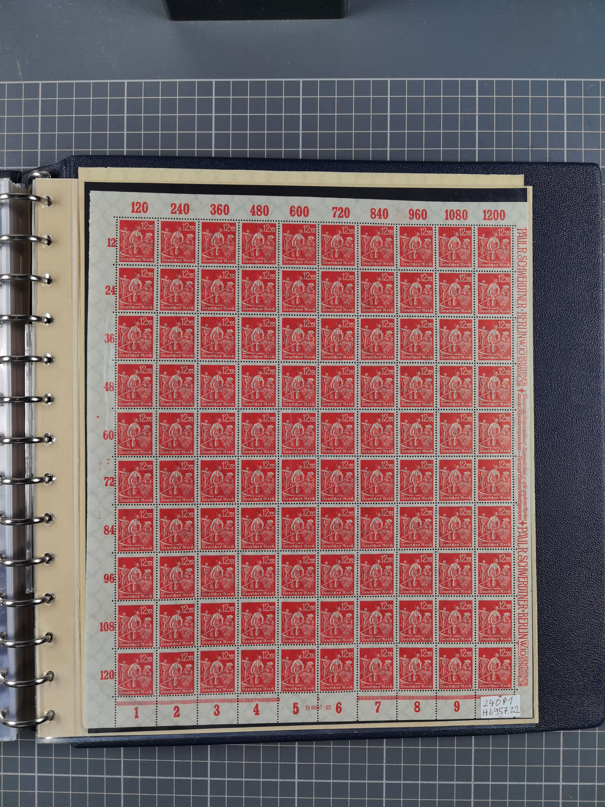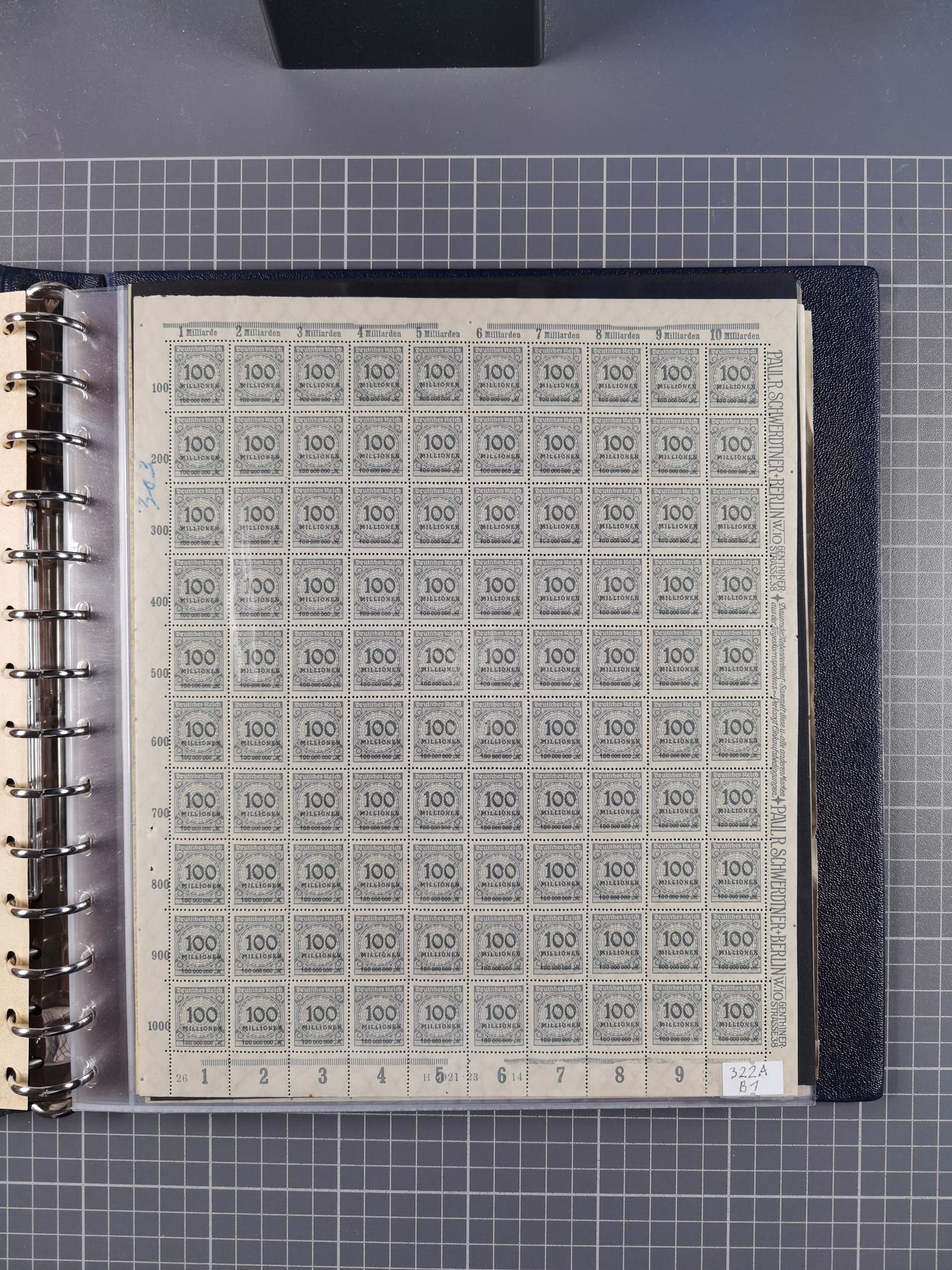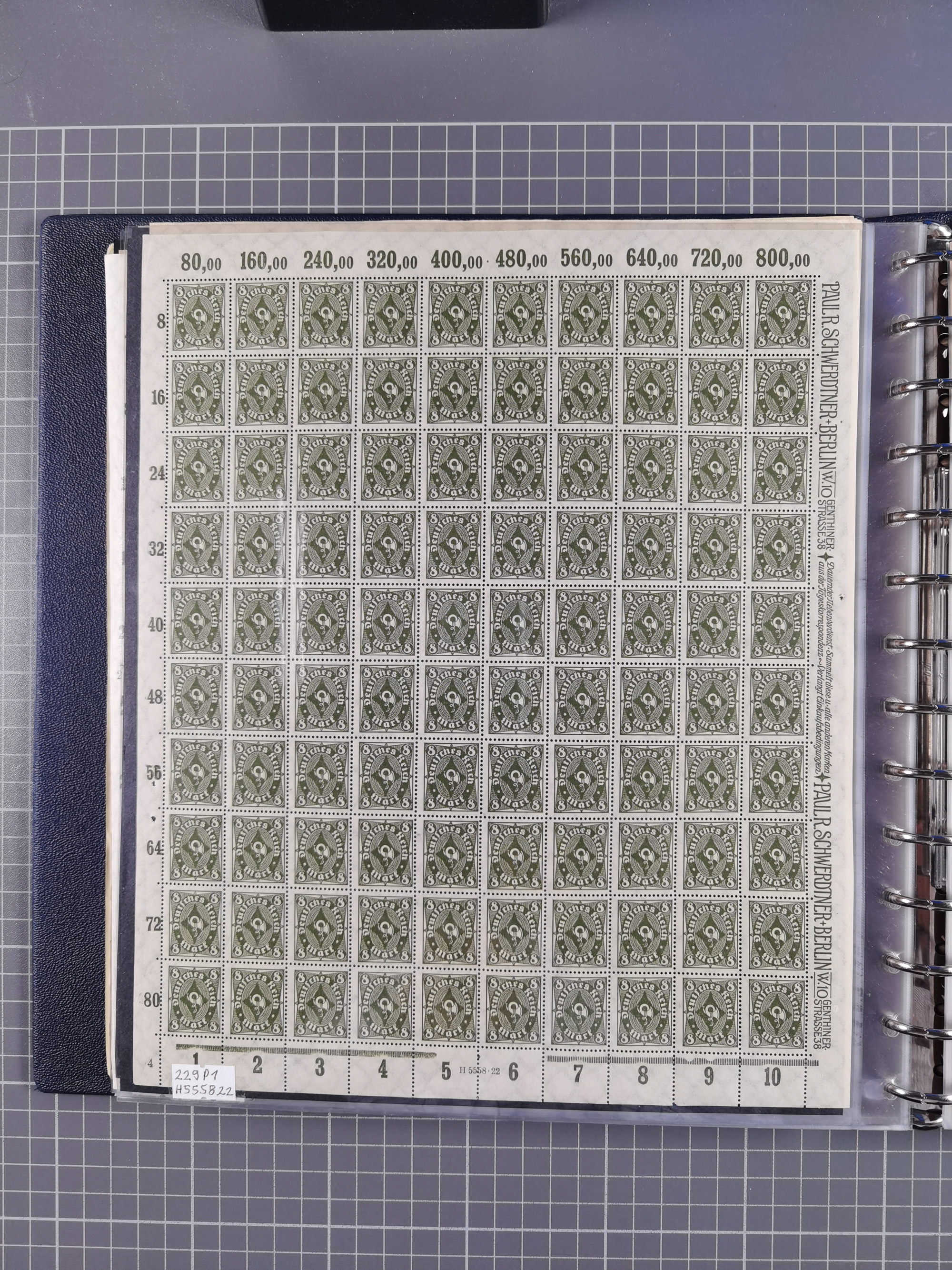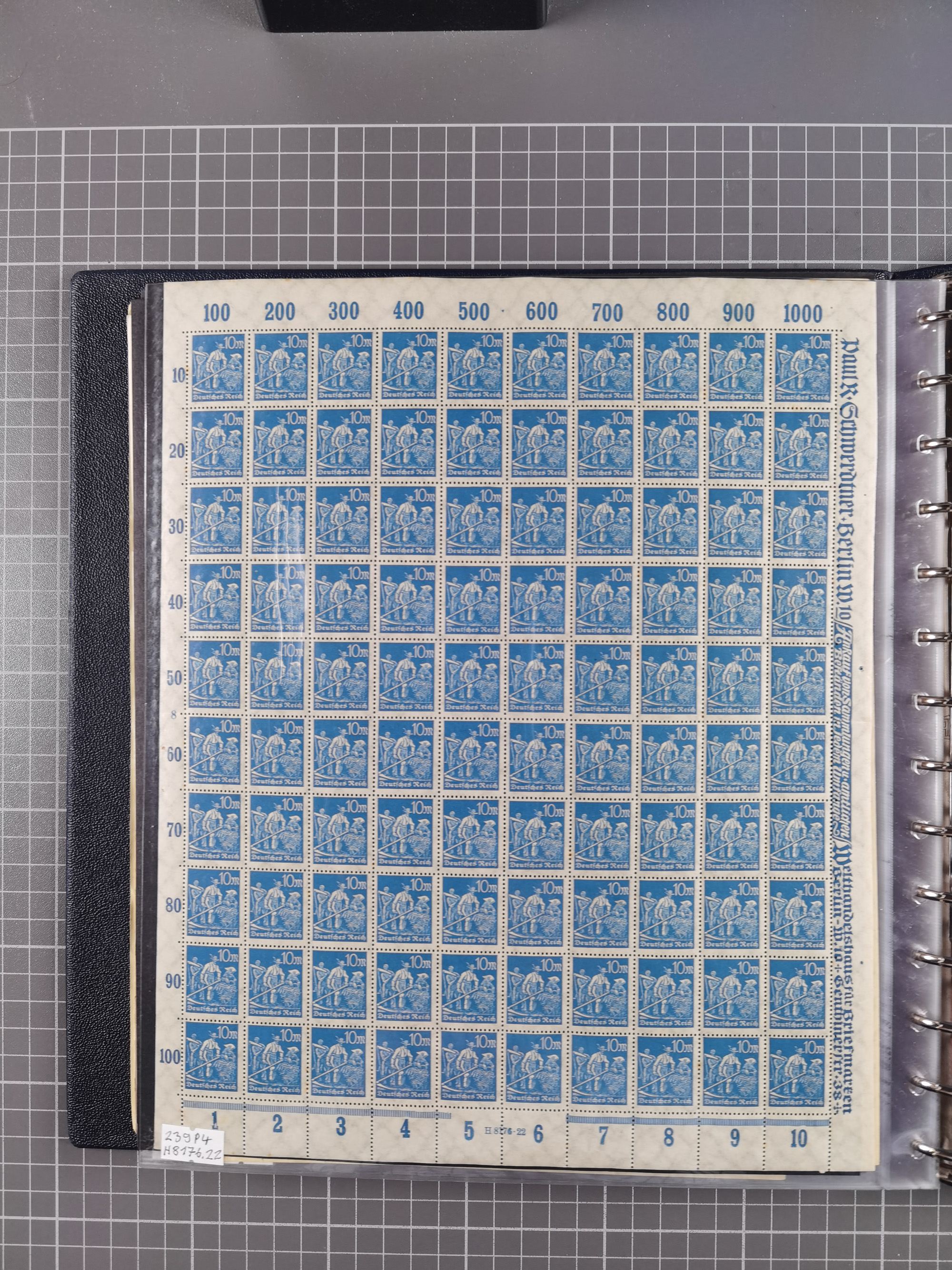 1922, meist postfrische Sammlung mit 100 Bogen ex Mi.-Nr. 246-57, teils sign. INFLA Berlin, in guter Erhaltung, teils übliche Einschränkungen
