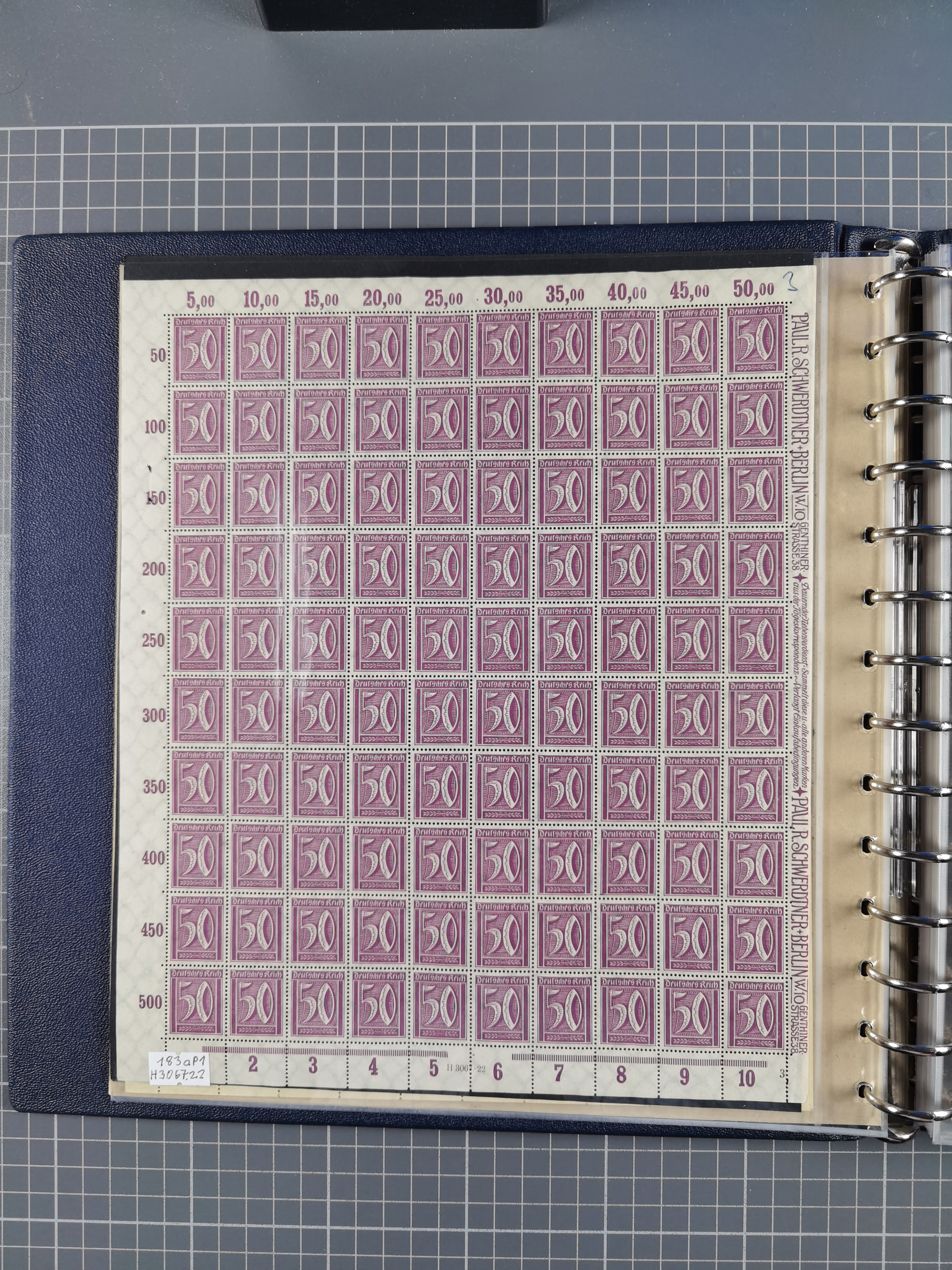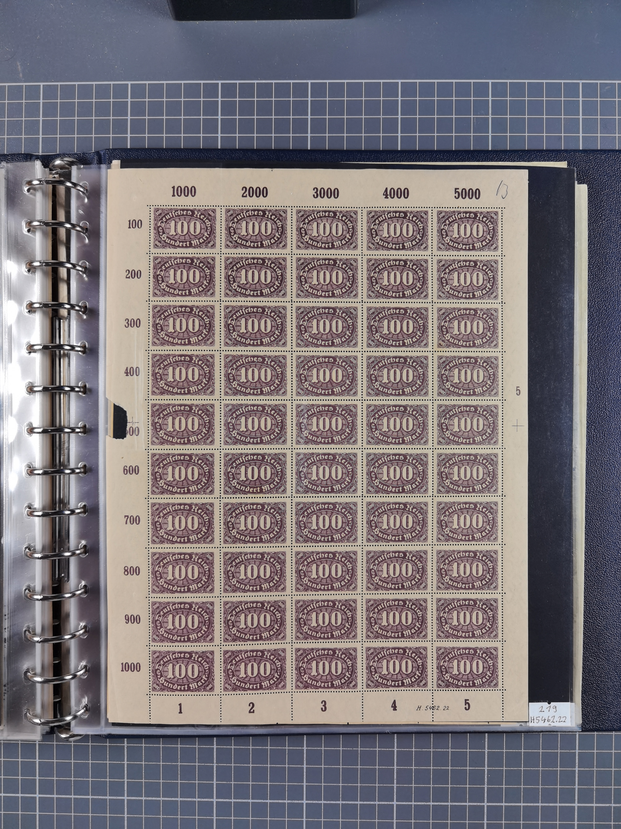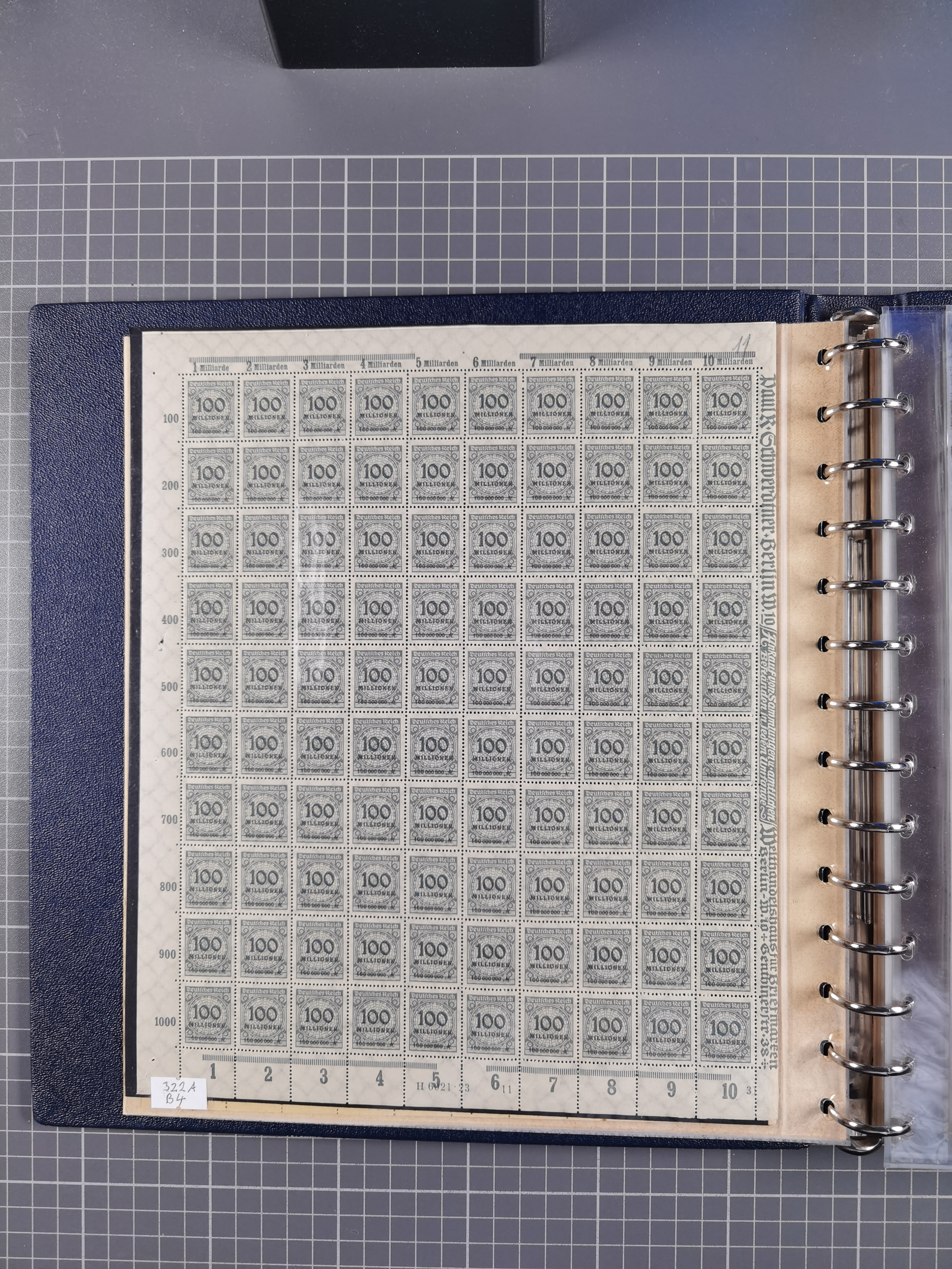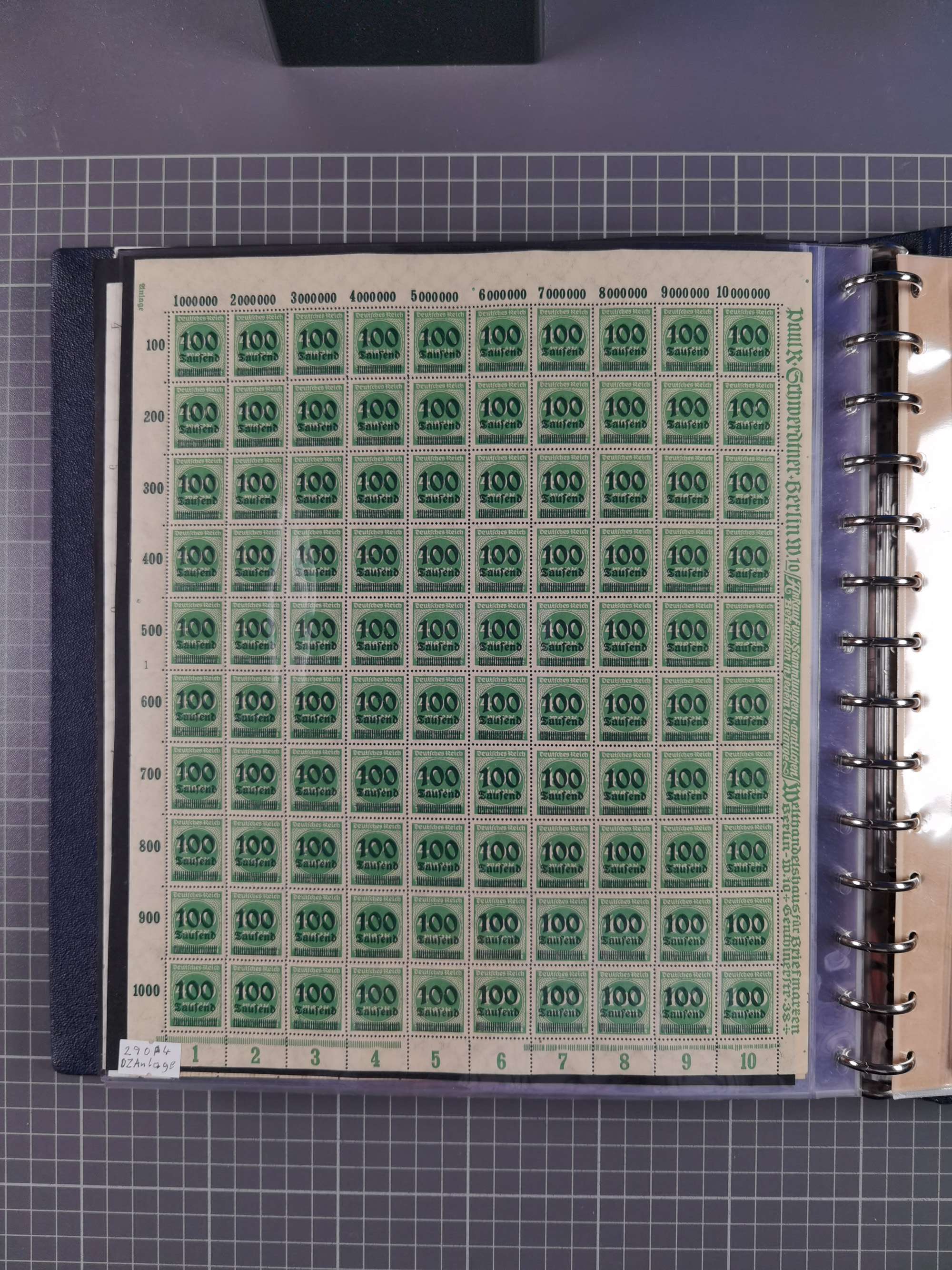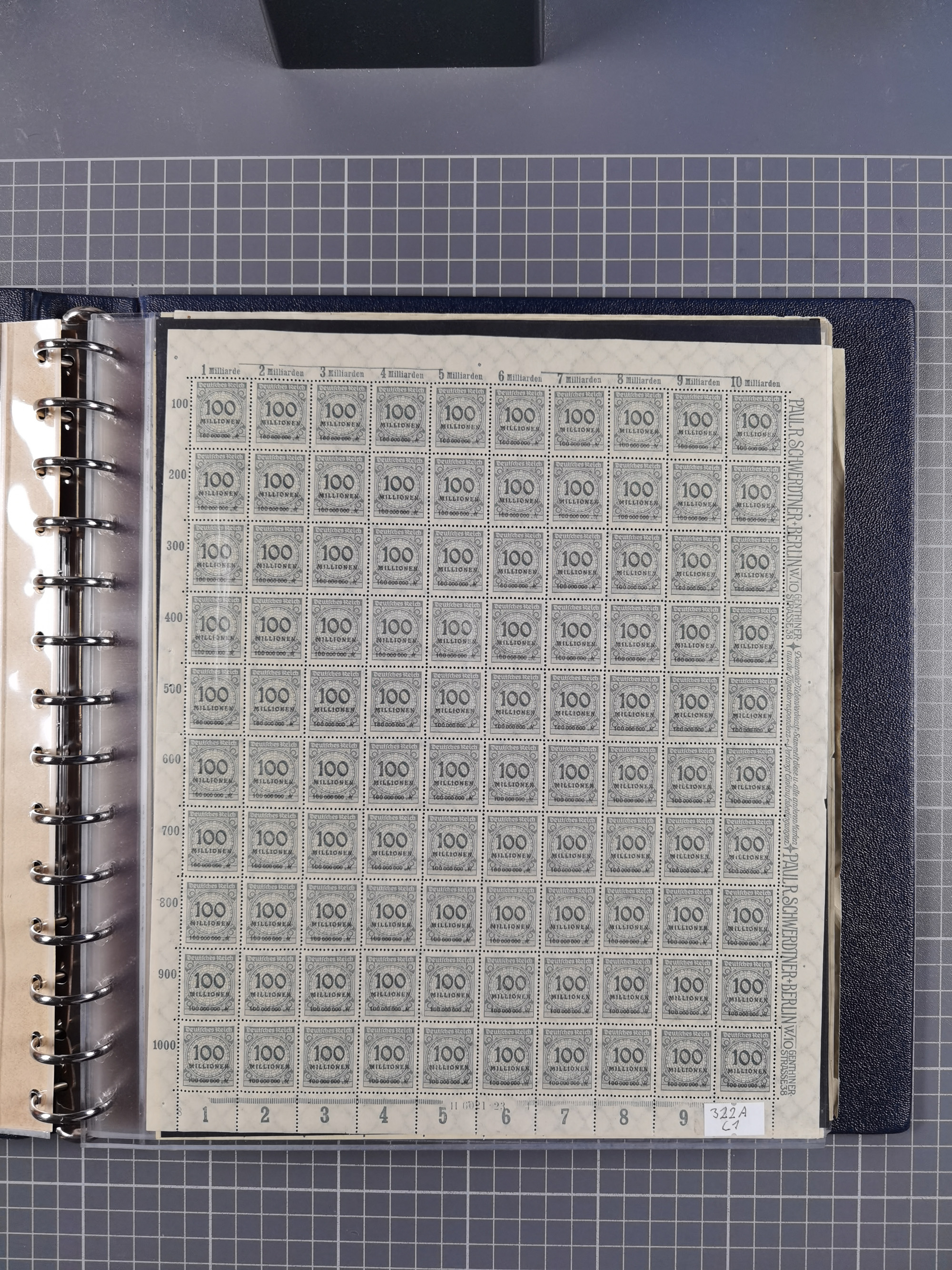 1922, meist postfrische Sammlung mit 100 Bogen ex Mi.-Nr. 246-57, teils sign. INFLA Berlin, in guter Erhaltung, teils übliche Einschränkungen
