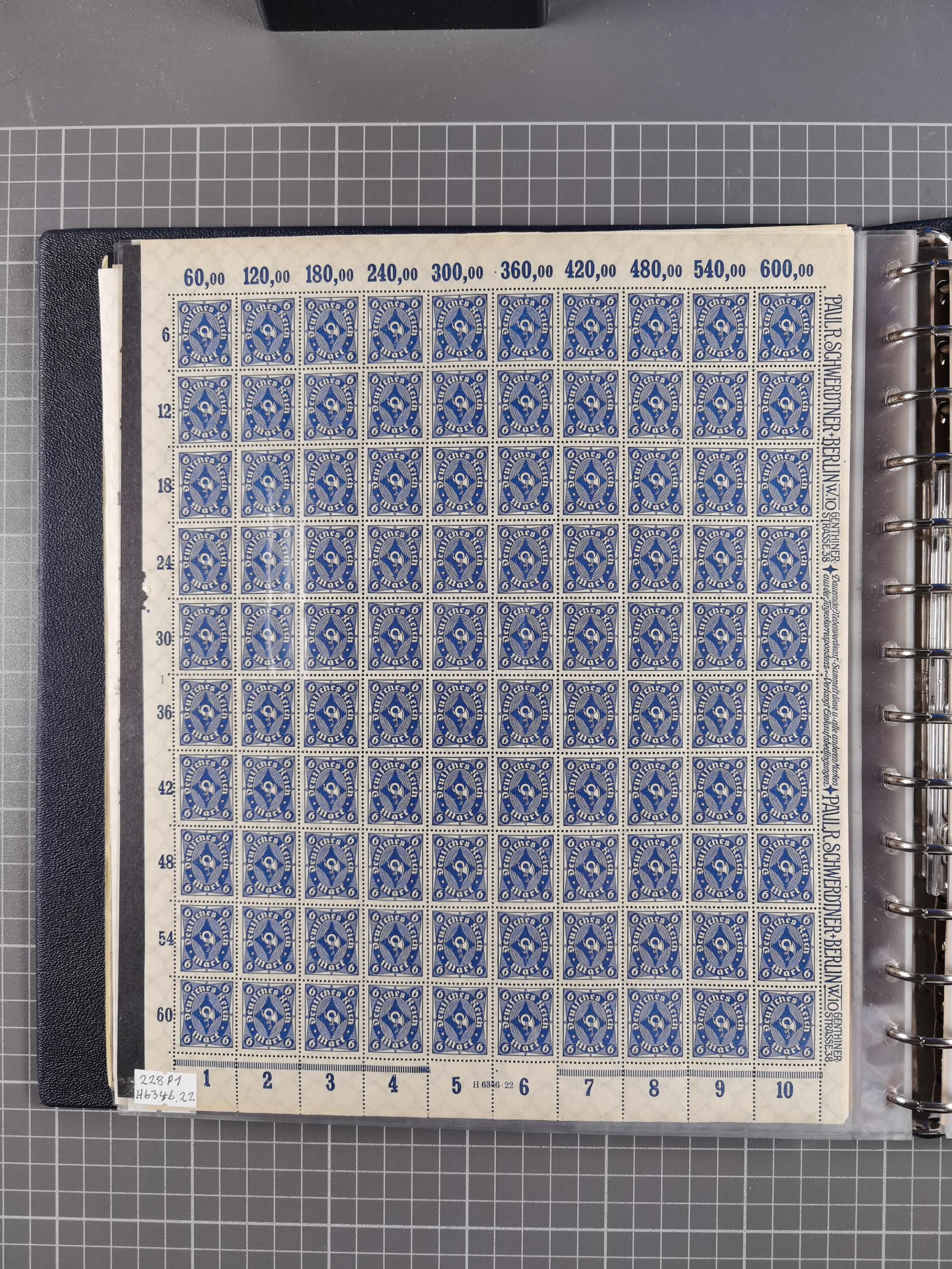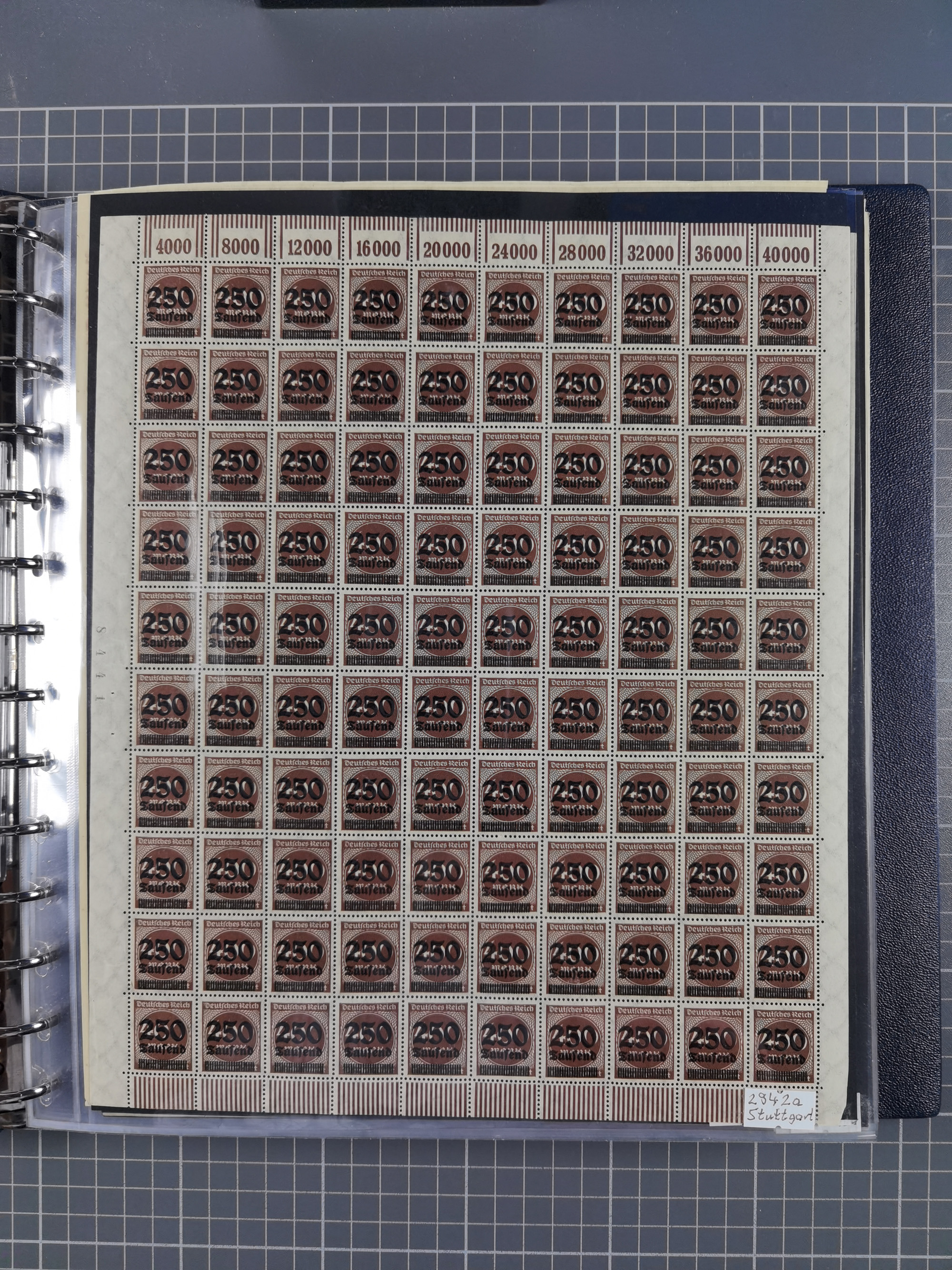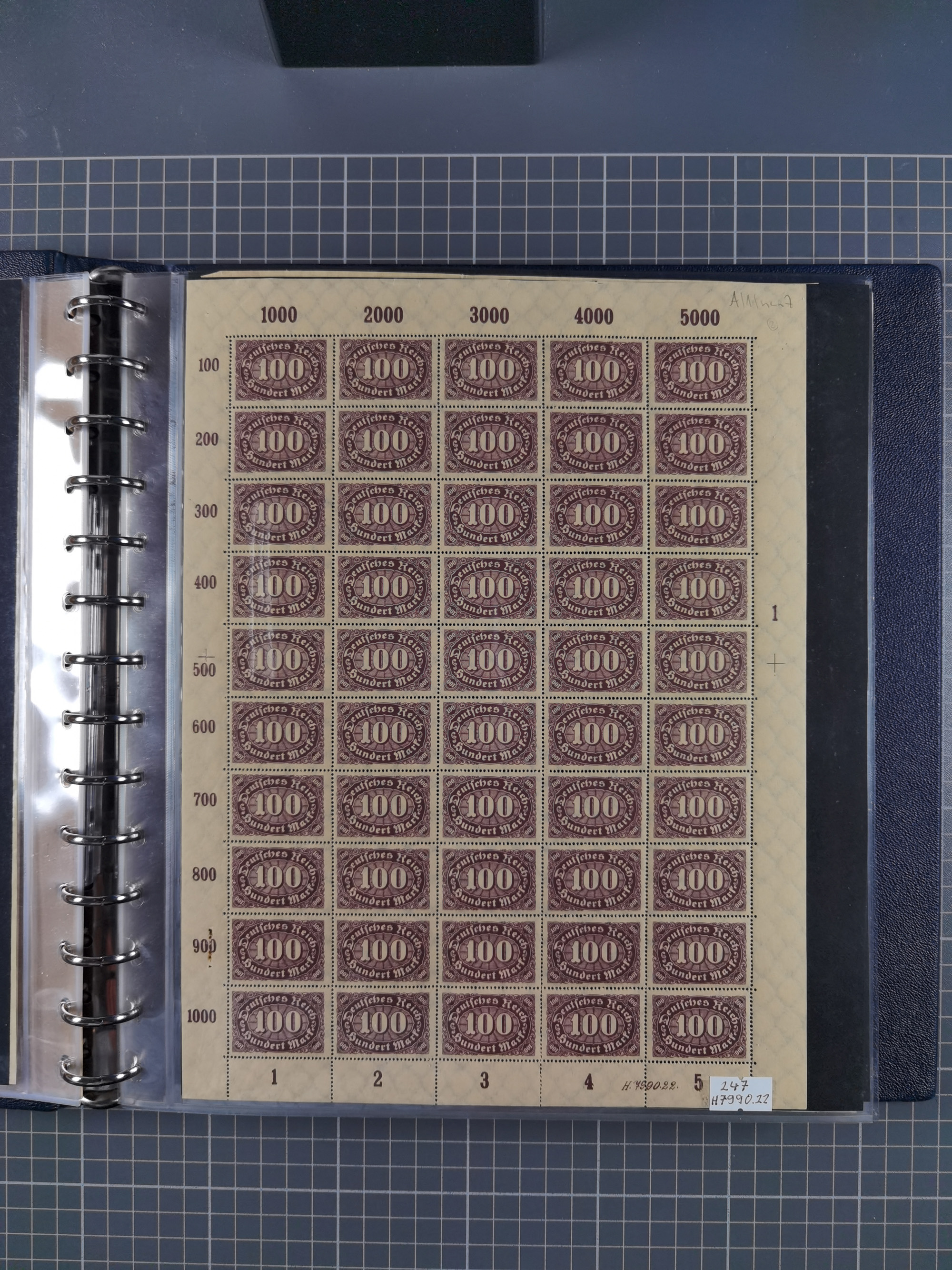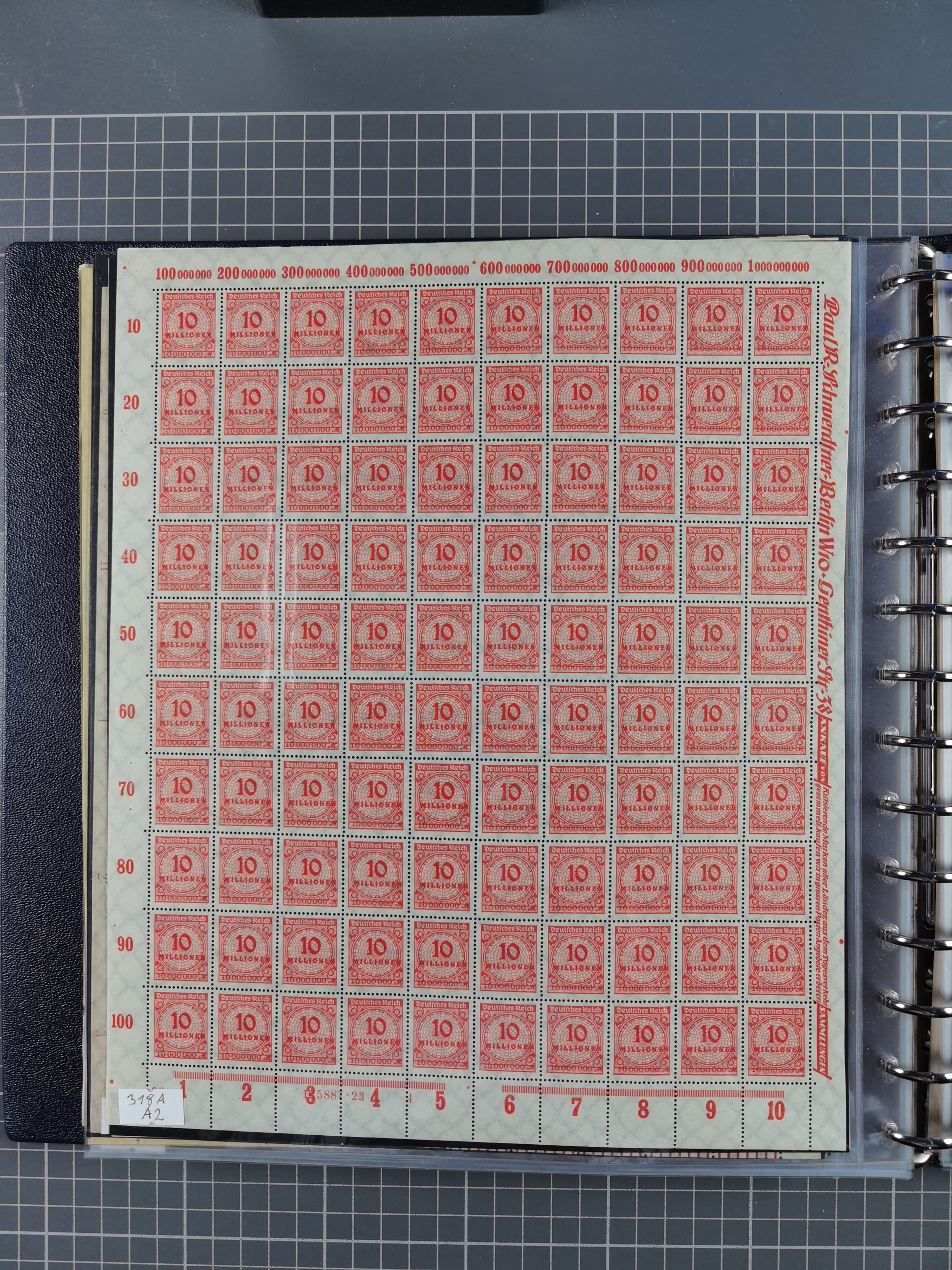 1922, meist postfrische Sammlung mit 100 Bogen ex Mi.-Nr. 246-57, teils sign. INFLA Berlin, in guter Erhaltung, teils übliche Einschränkungen