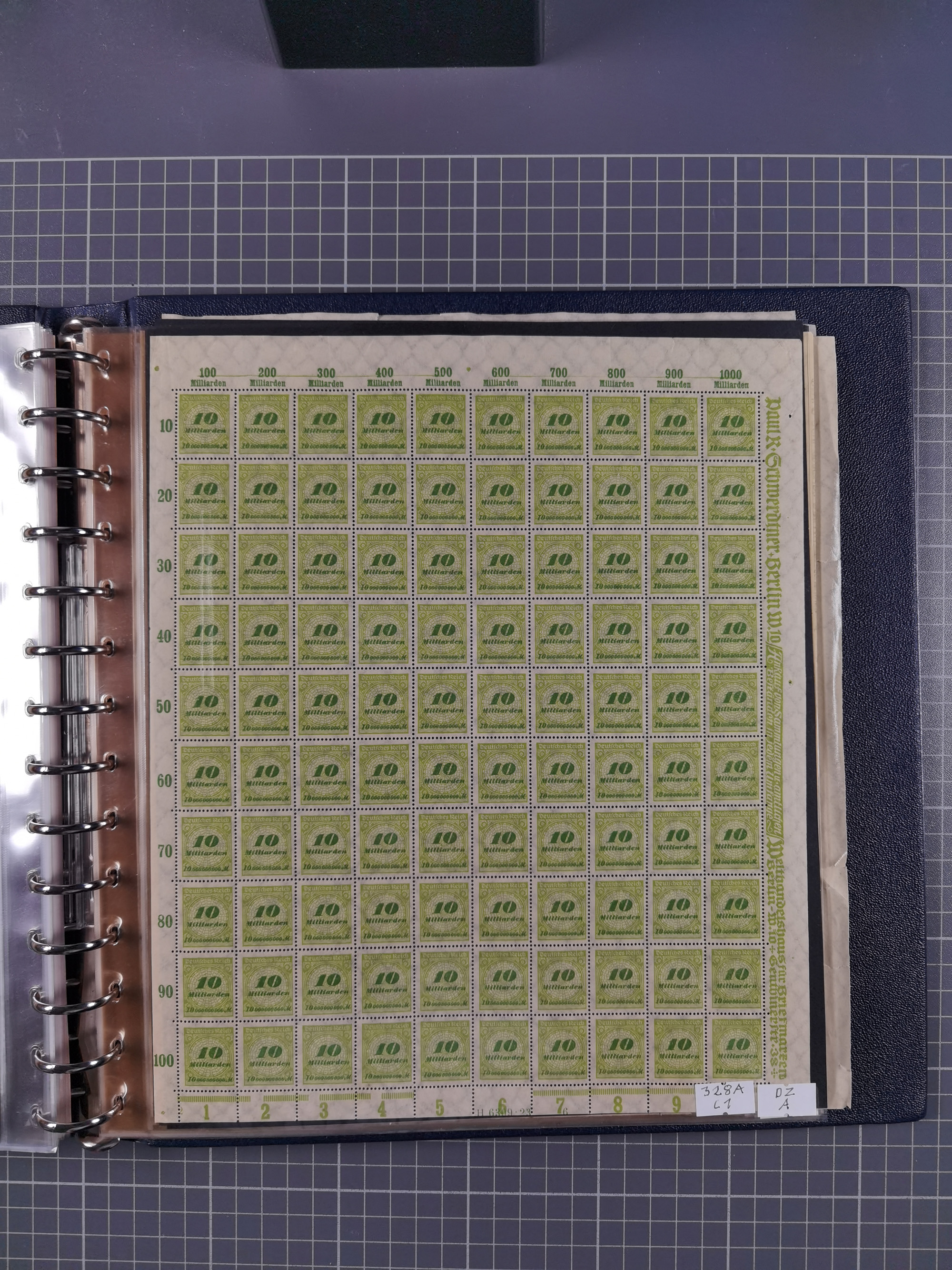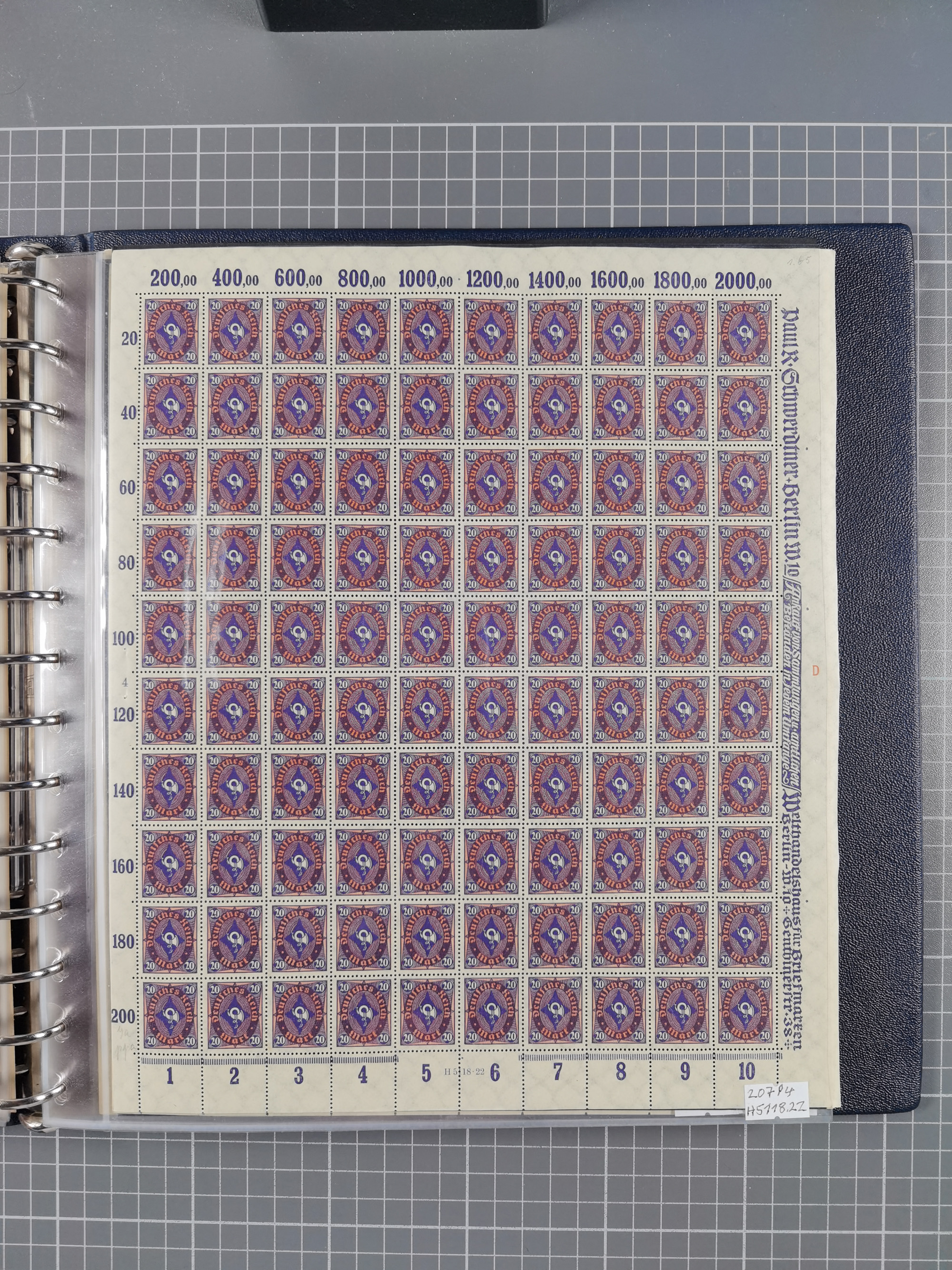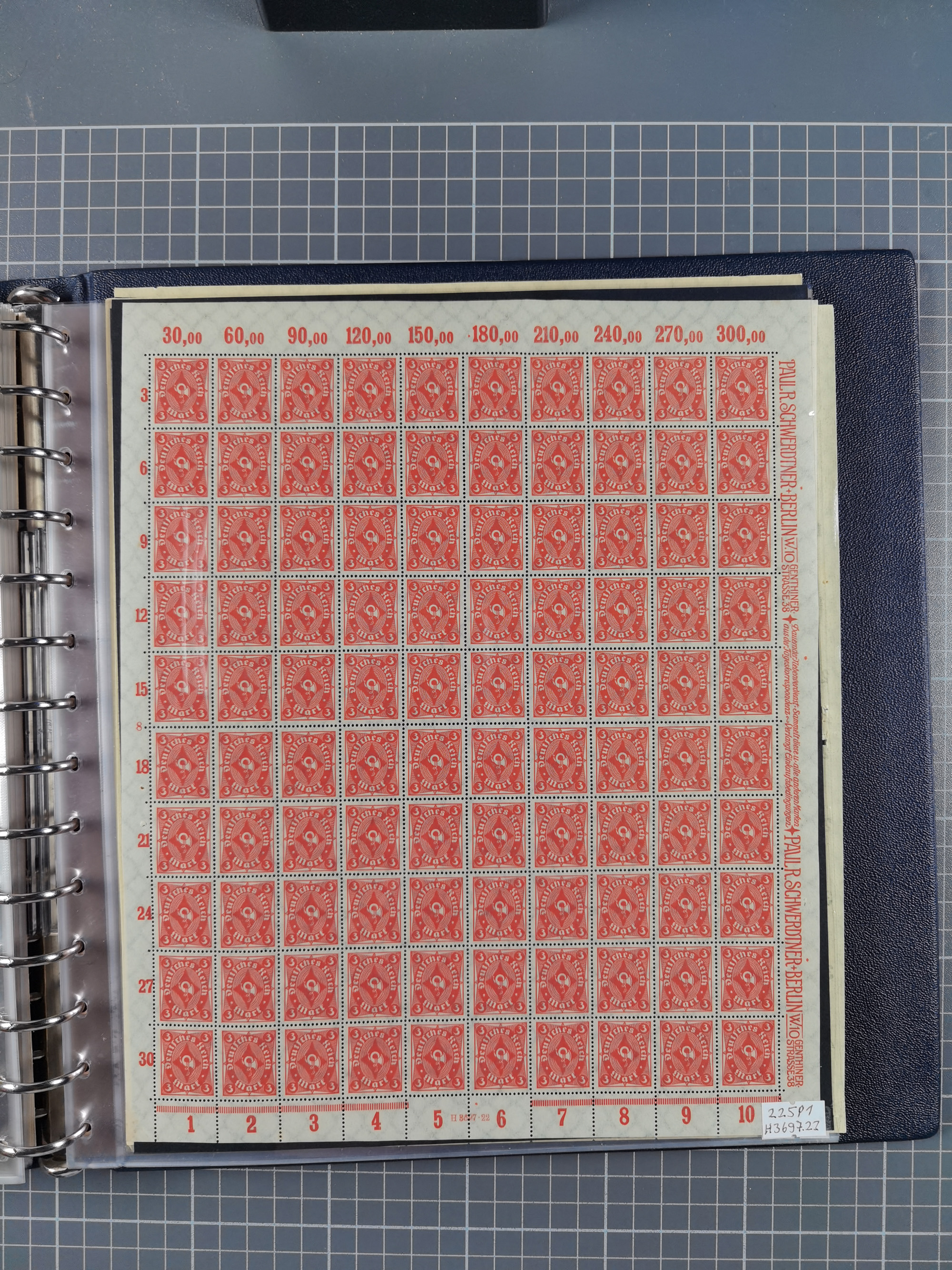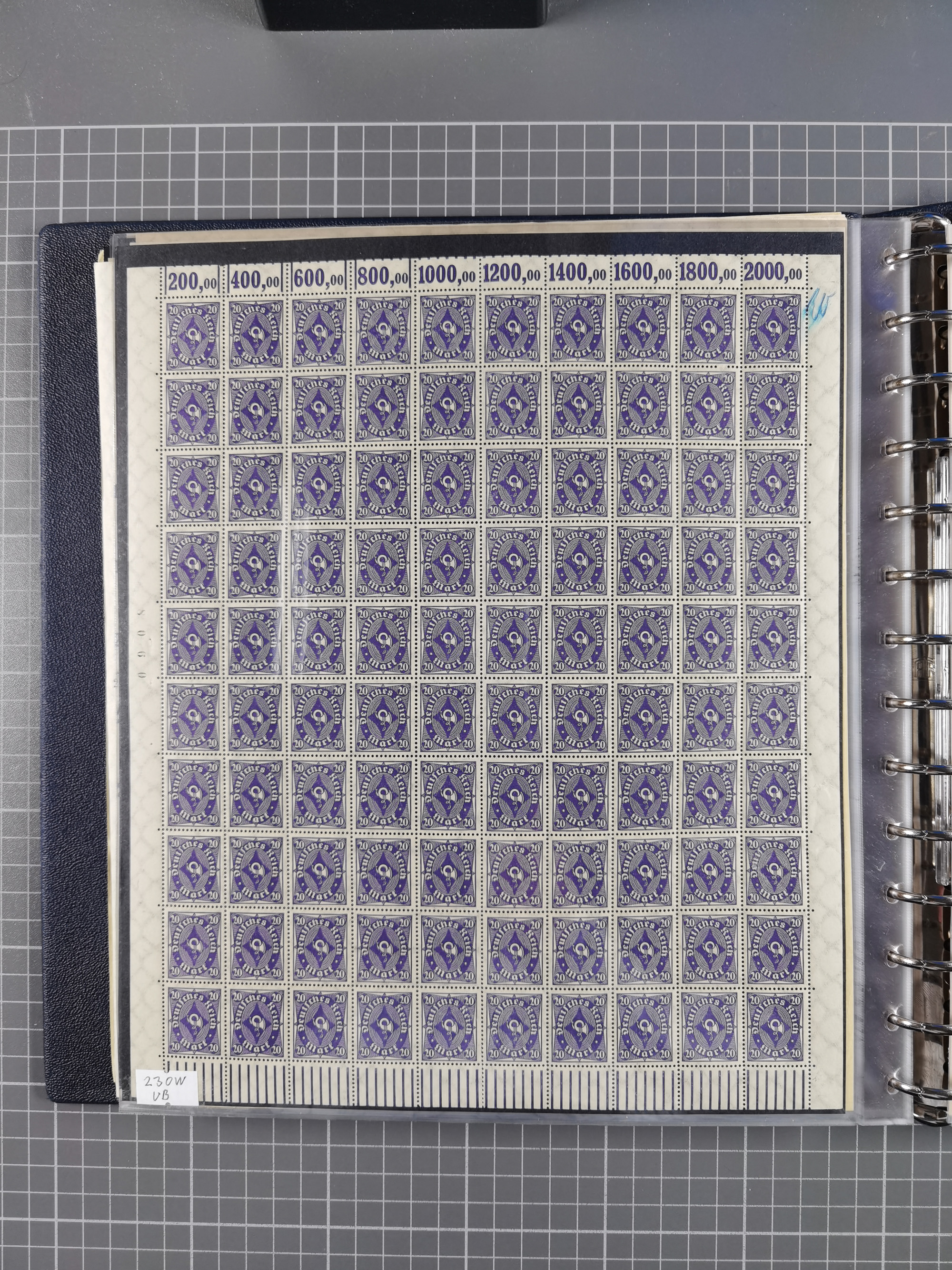 1922/23, meist postfrischer Engrosbestand mit überschlägig 300-400 Bögen, meist in Mengen zwischen 5 und 10 Stück, bis auf wenige ohne Gummi/Haftstellen in guter Erhaltung, in zwei großen Bogenmappen