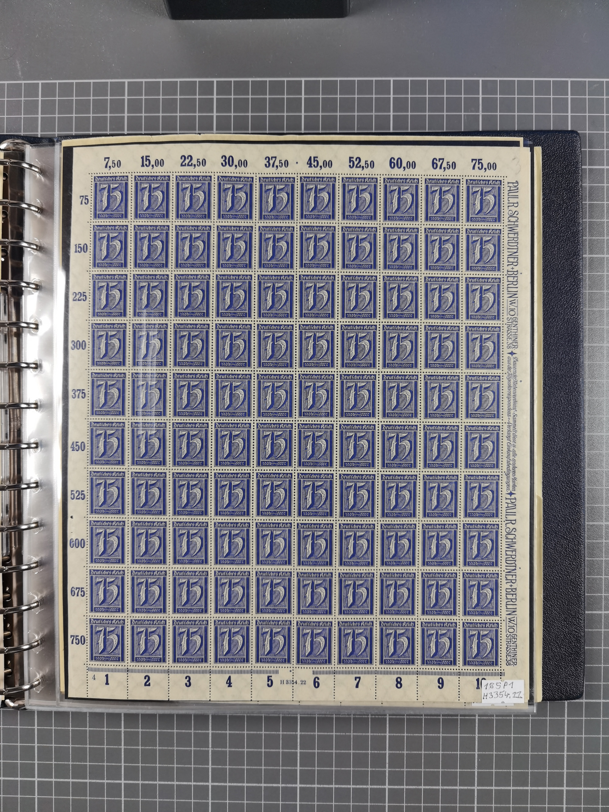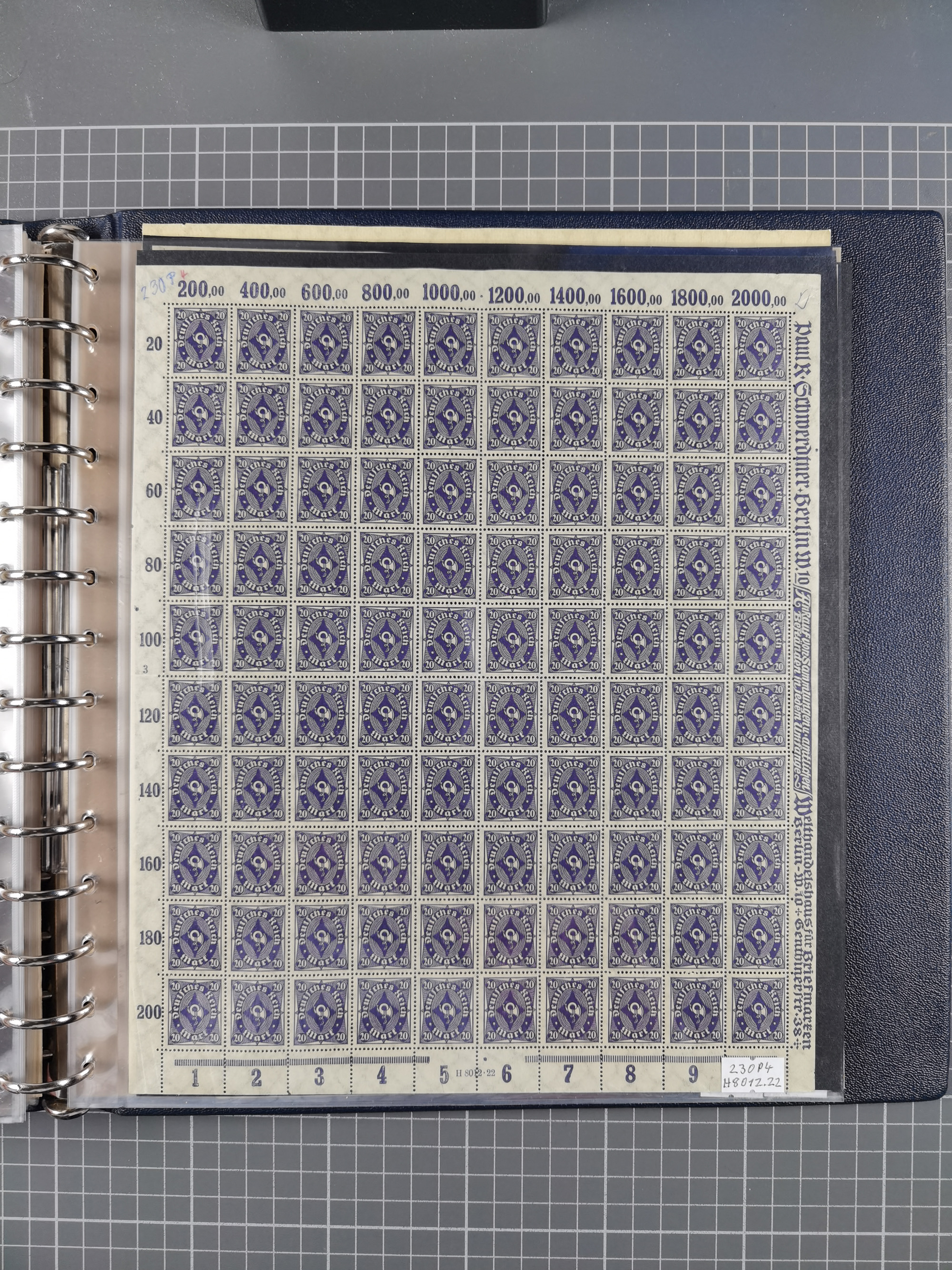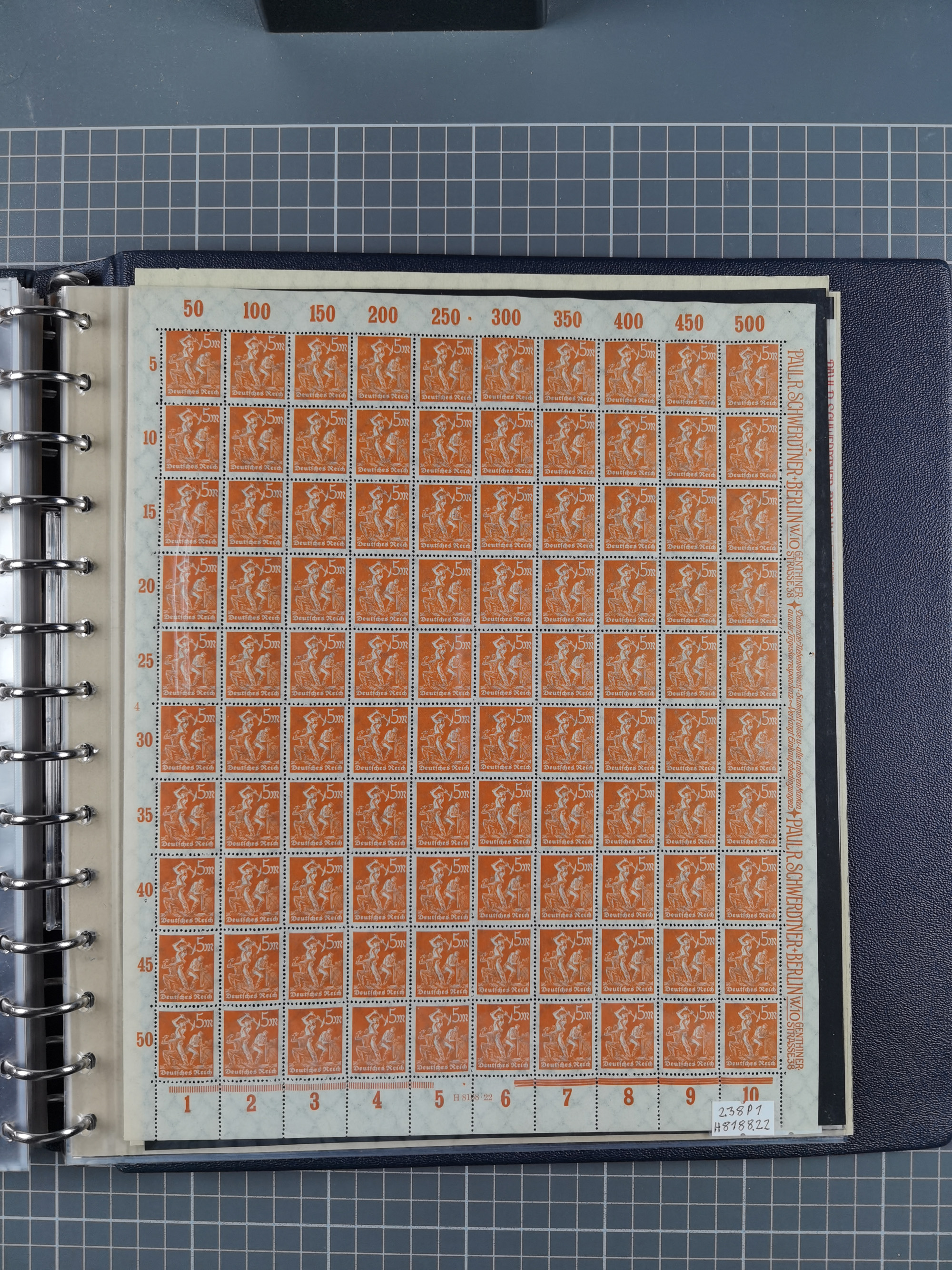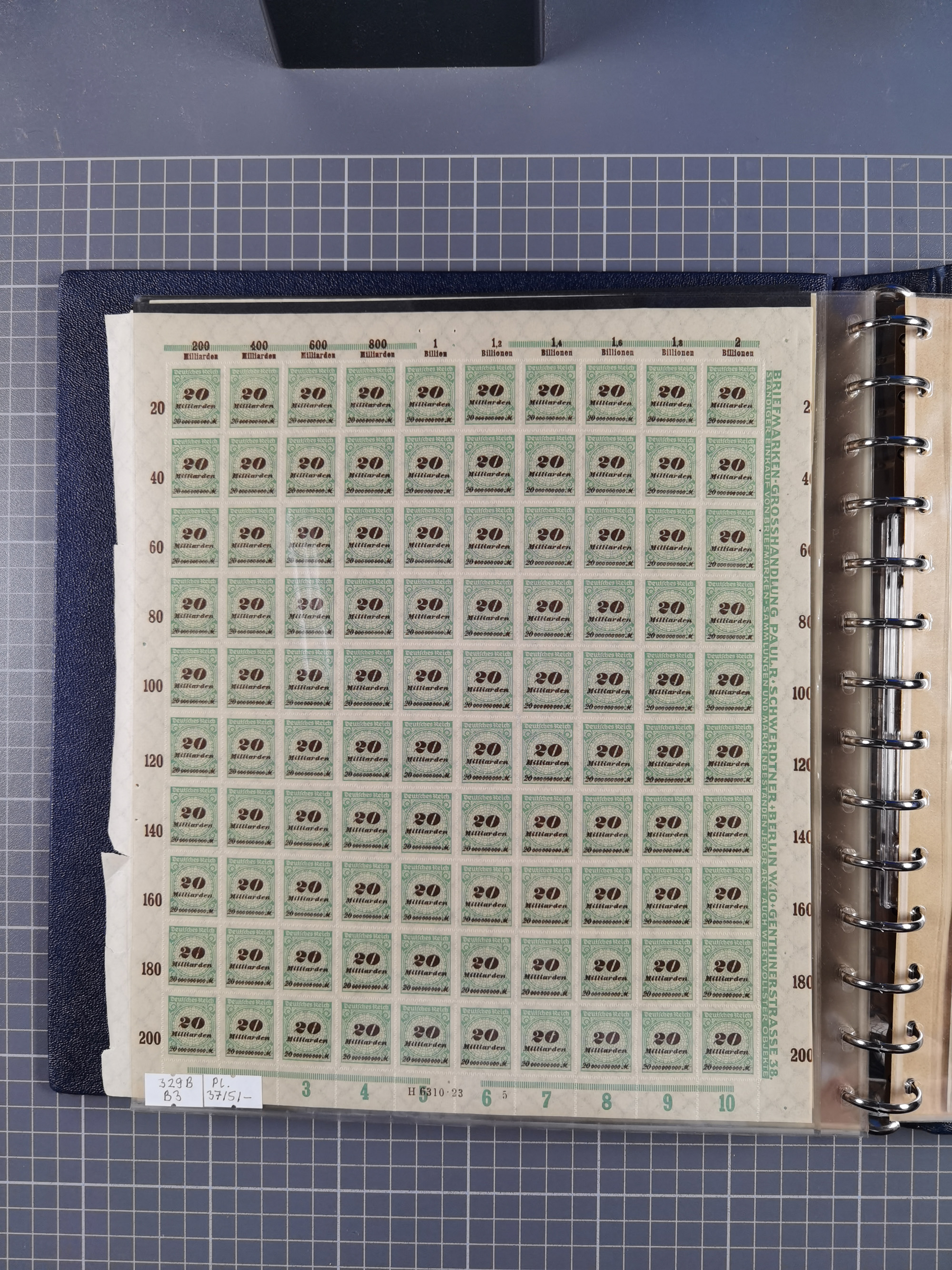 1922/23, meist postfrischer Engrosbestand mit überschlägig 300-400 Bögen, meist in Mengen zwischen 5 und 10 Stück, bis auf wenige ohne Gummi/Haftstellen in guter Erhaltung, in zwei großen Bogenmappen