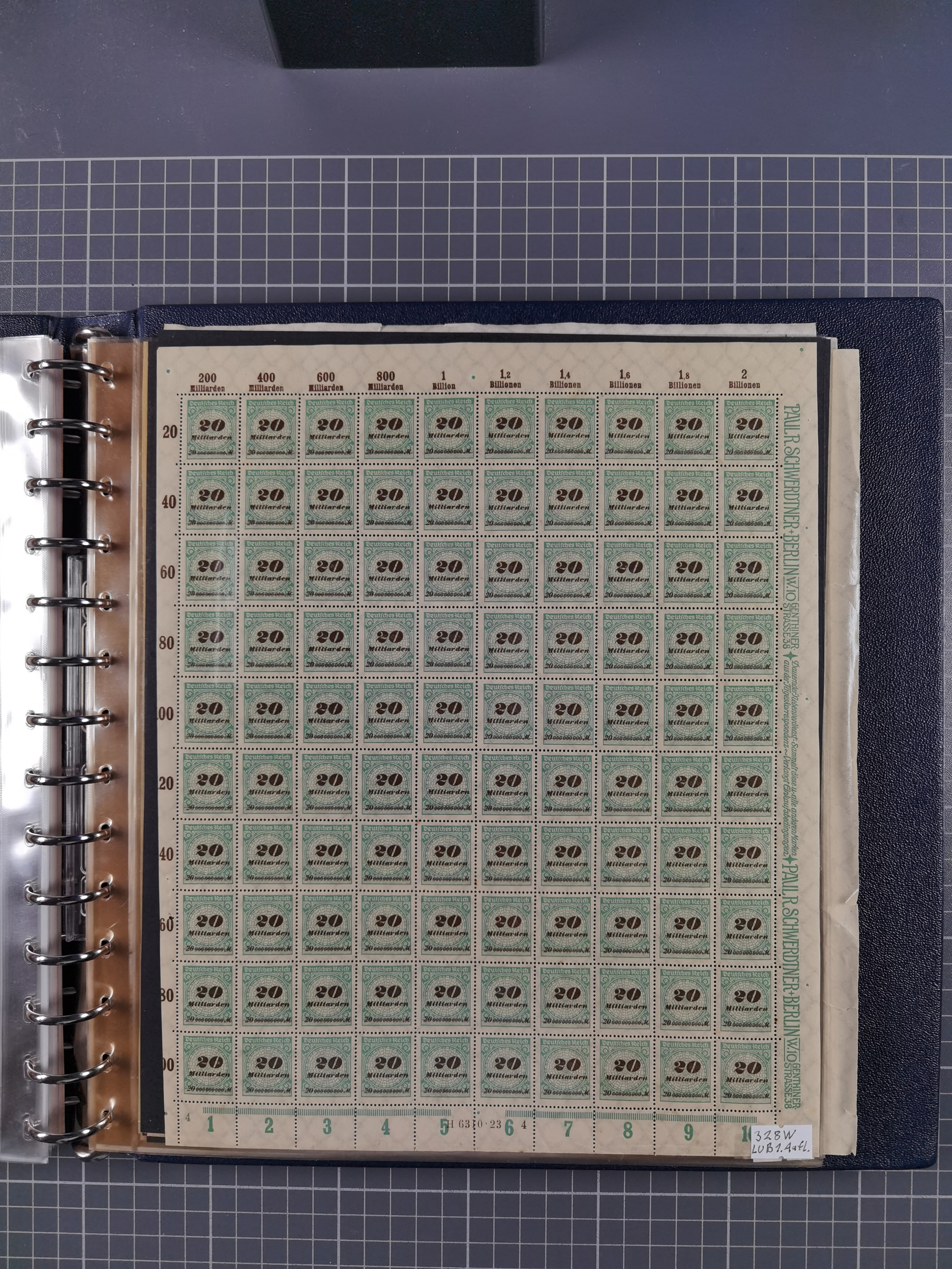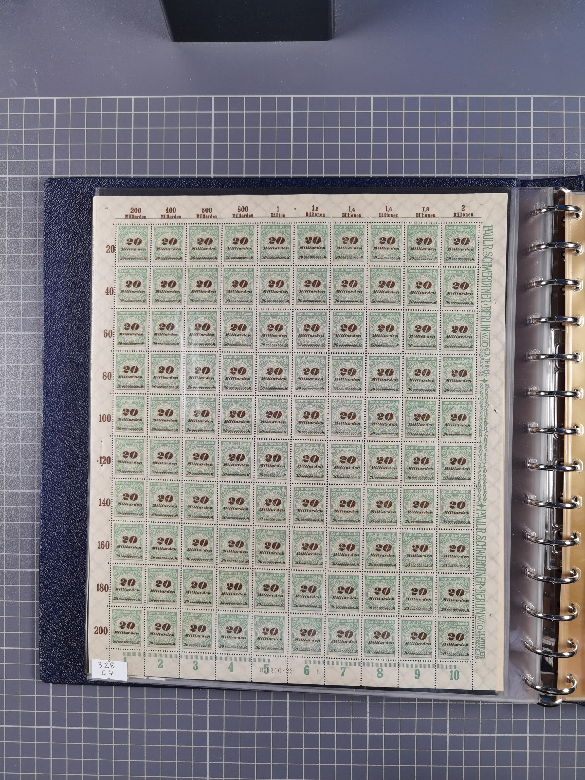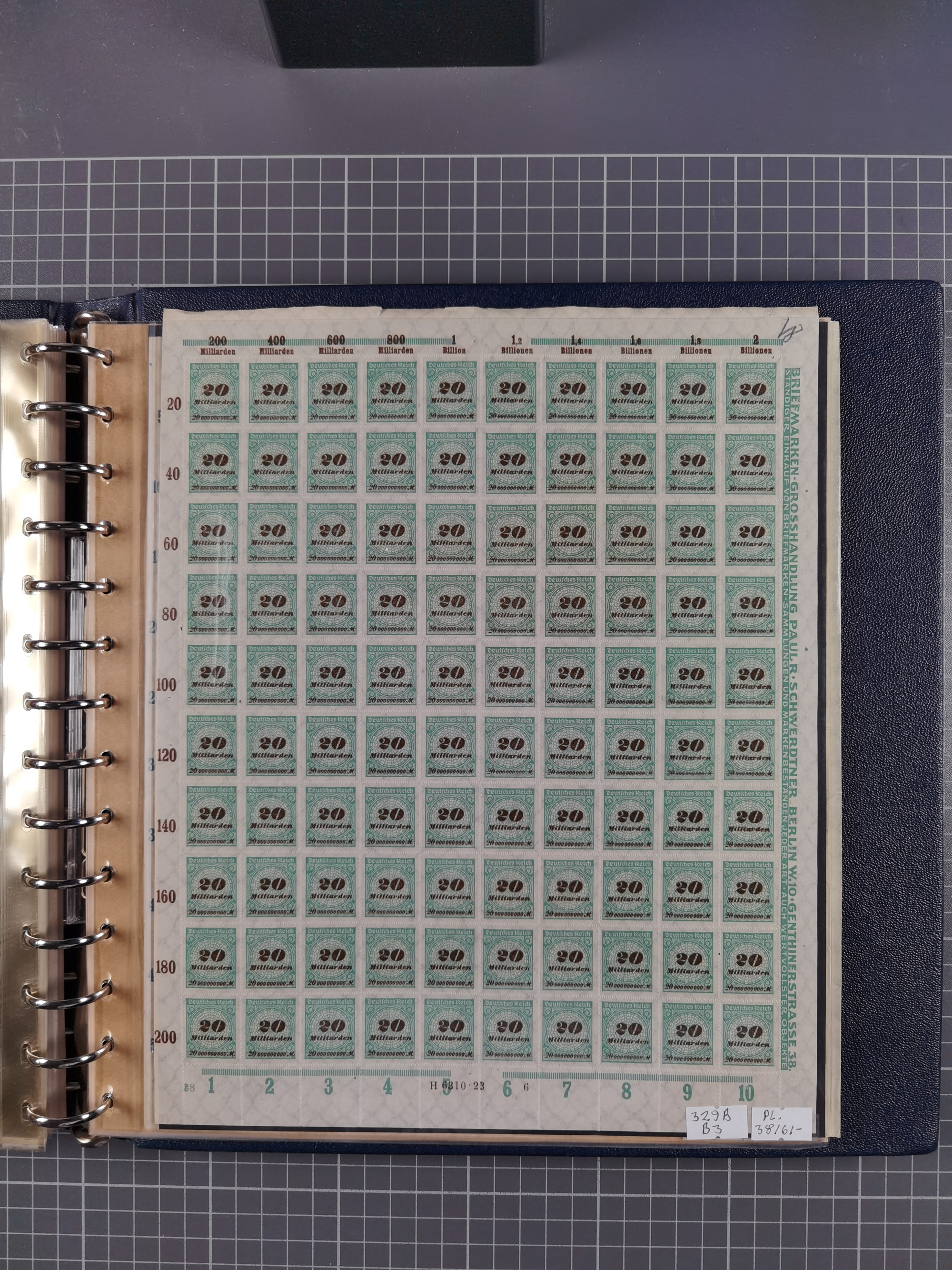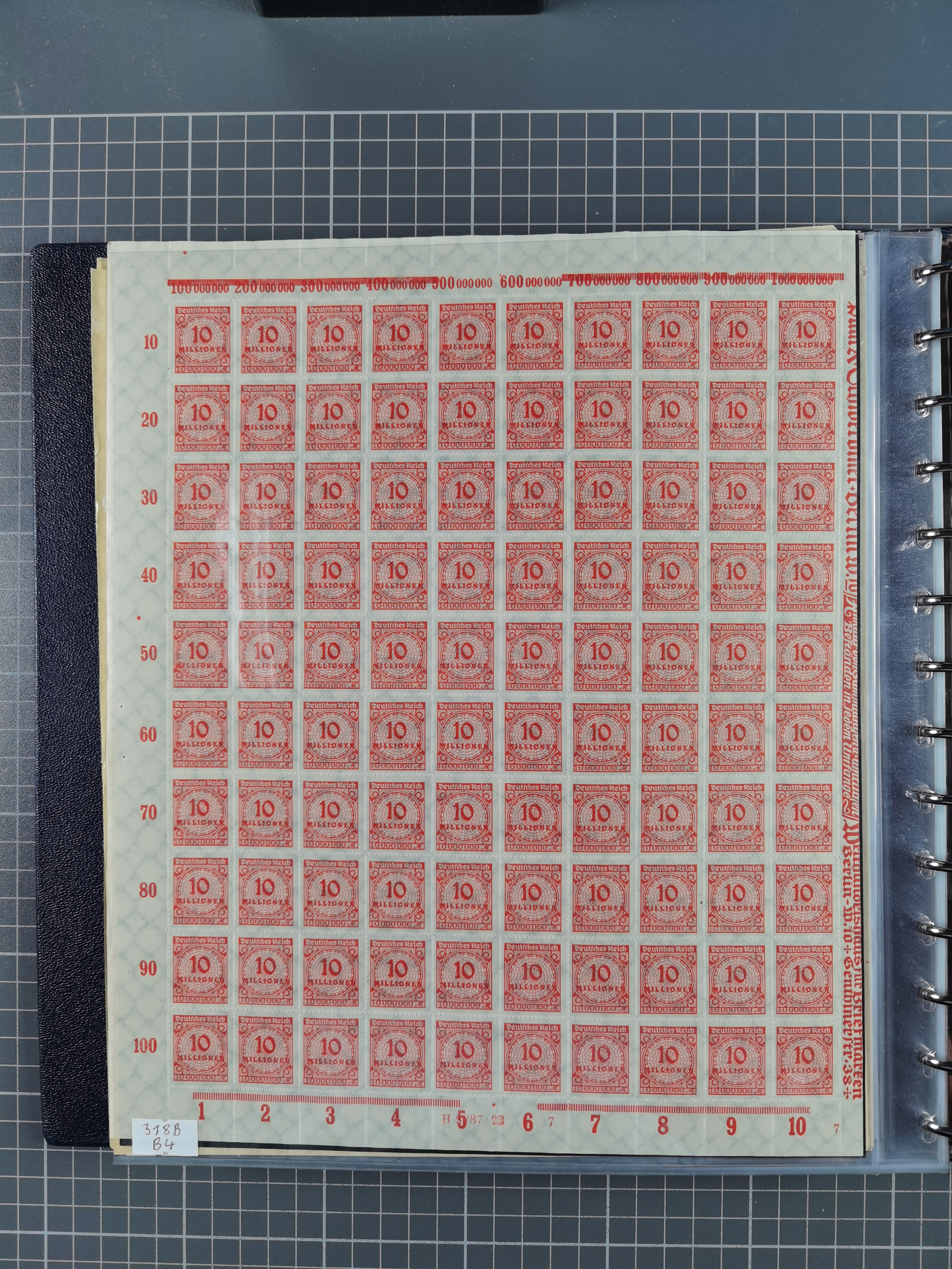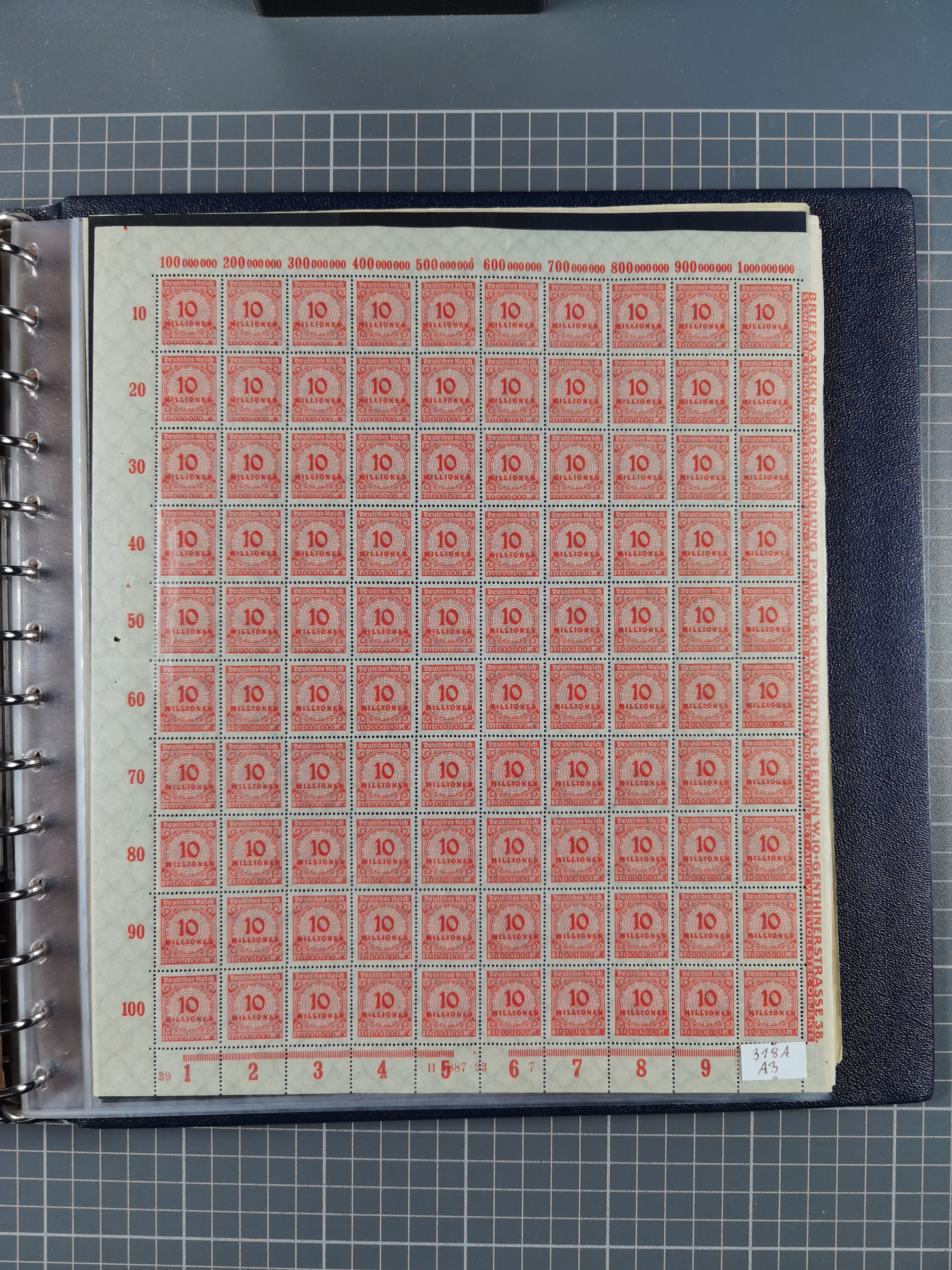 1922/23, meist postfrischer Engrosbestand mit überschlägig 300-400 Bögen, meist in Mengen zwischen 5 und 10 Stück, bis auf wenige ohne Gummi/Haftstellen in guter Erhaltung, in zwei großen Bogenmappen