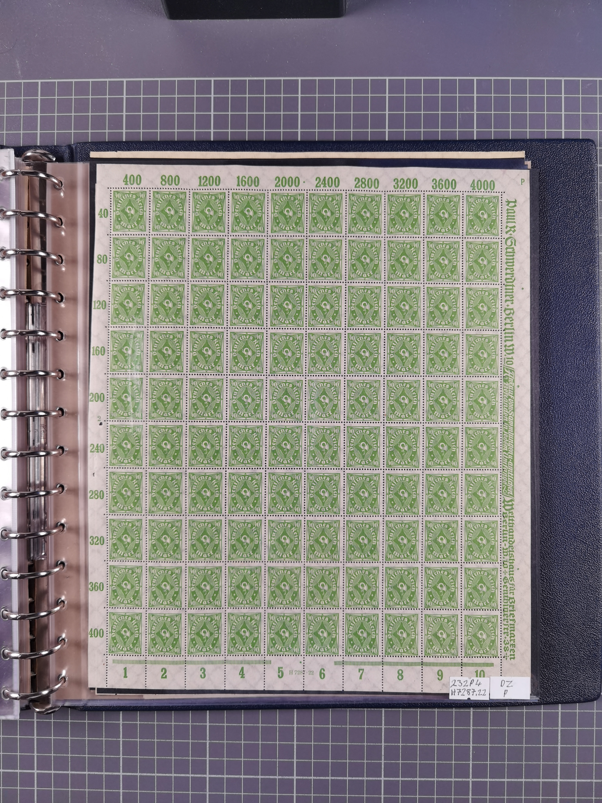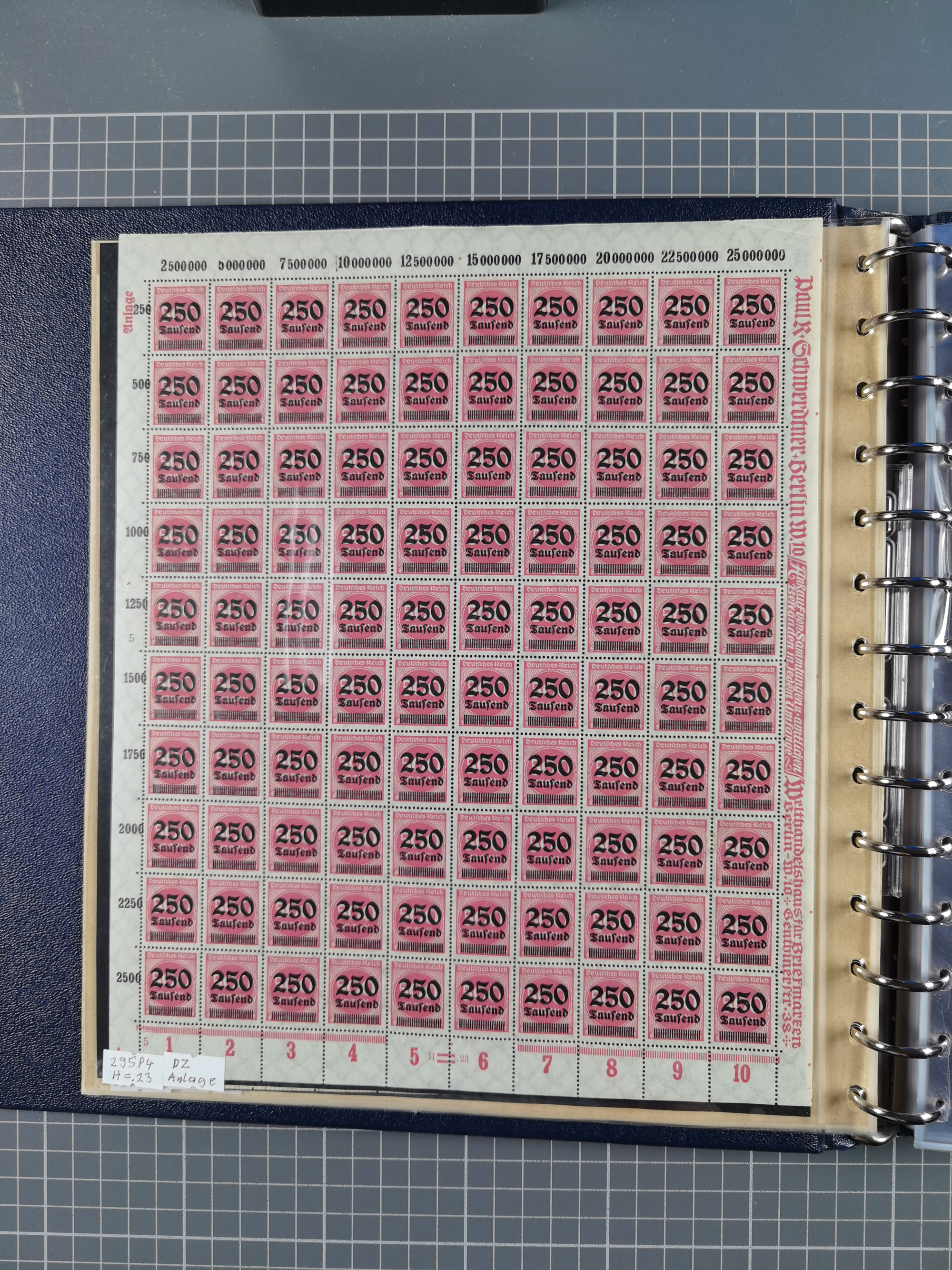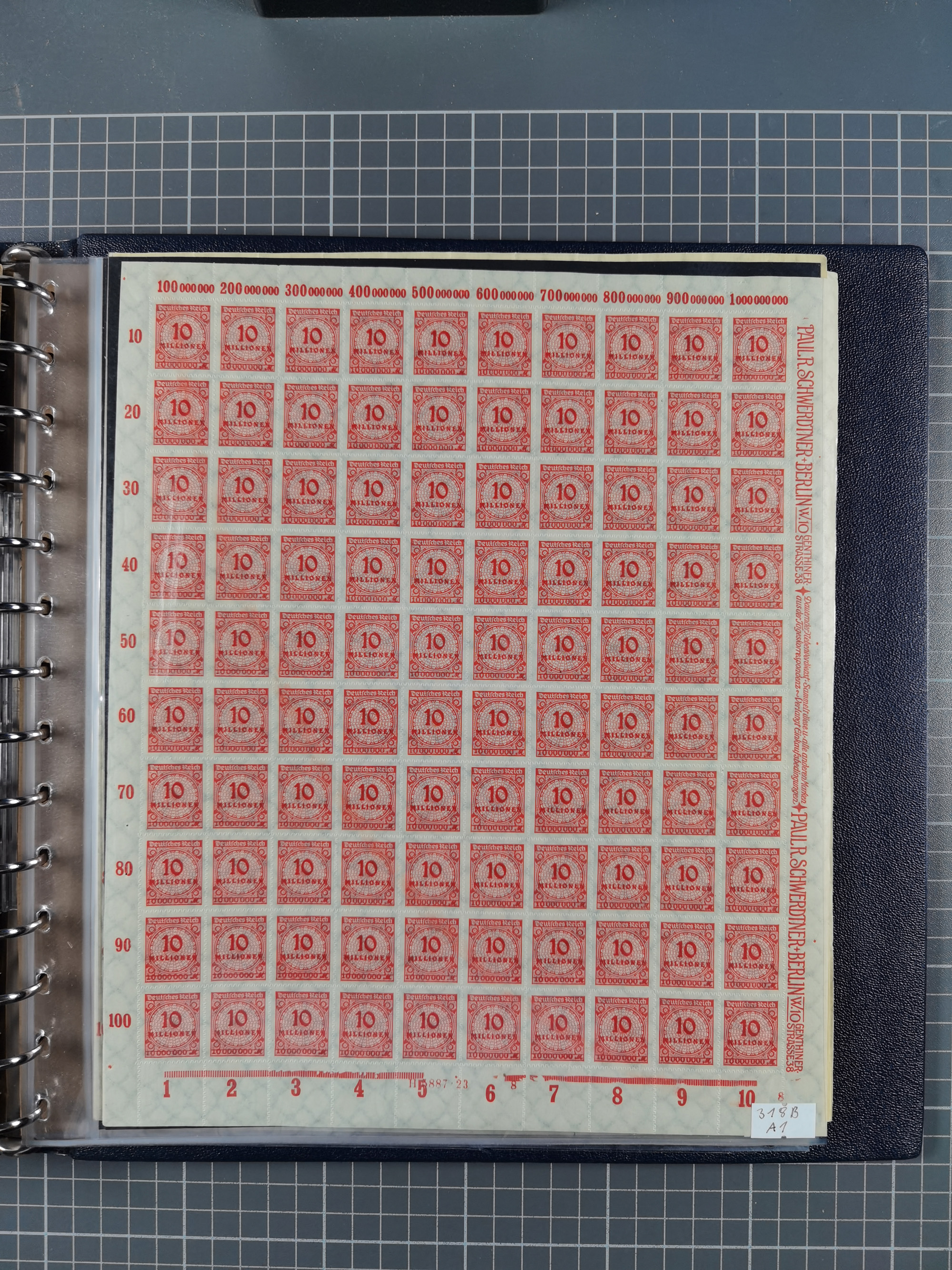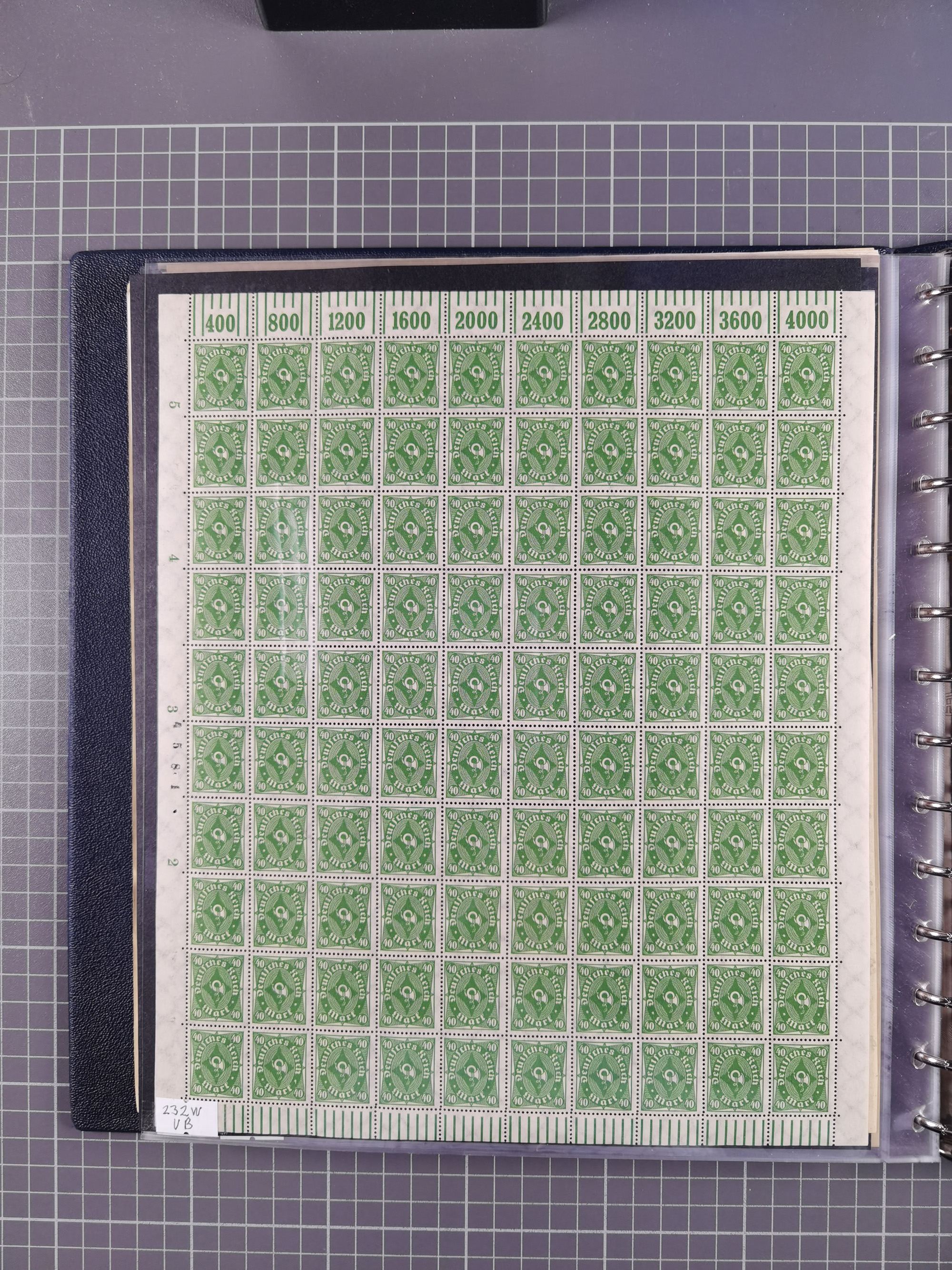 1922/23, meist postfrischer Engrosbestand mit überschlägig 300-400 Bögen, meist in Mengen zwischen 5 und 10 Stück, bis auf wenige ohne Gummi/Haftstellen in guter Erhaltung, in zwei großen Bogenmappen