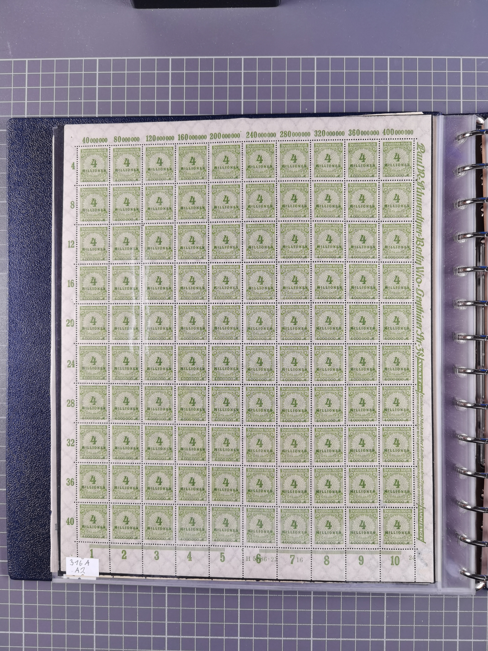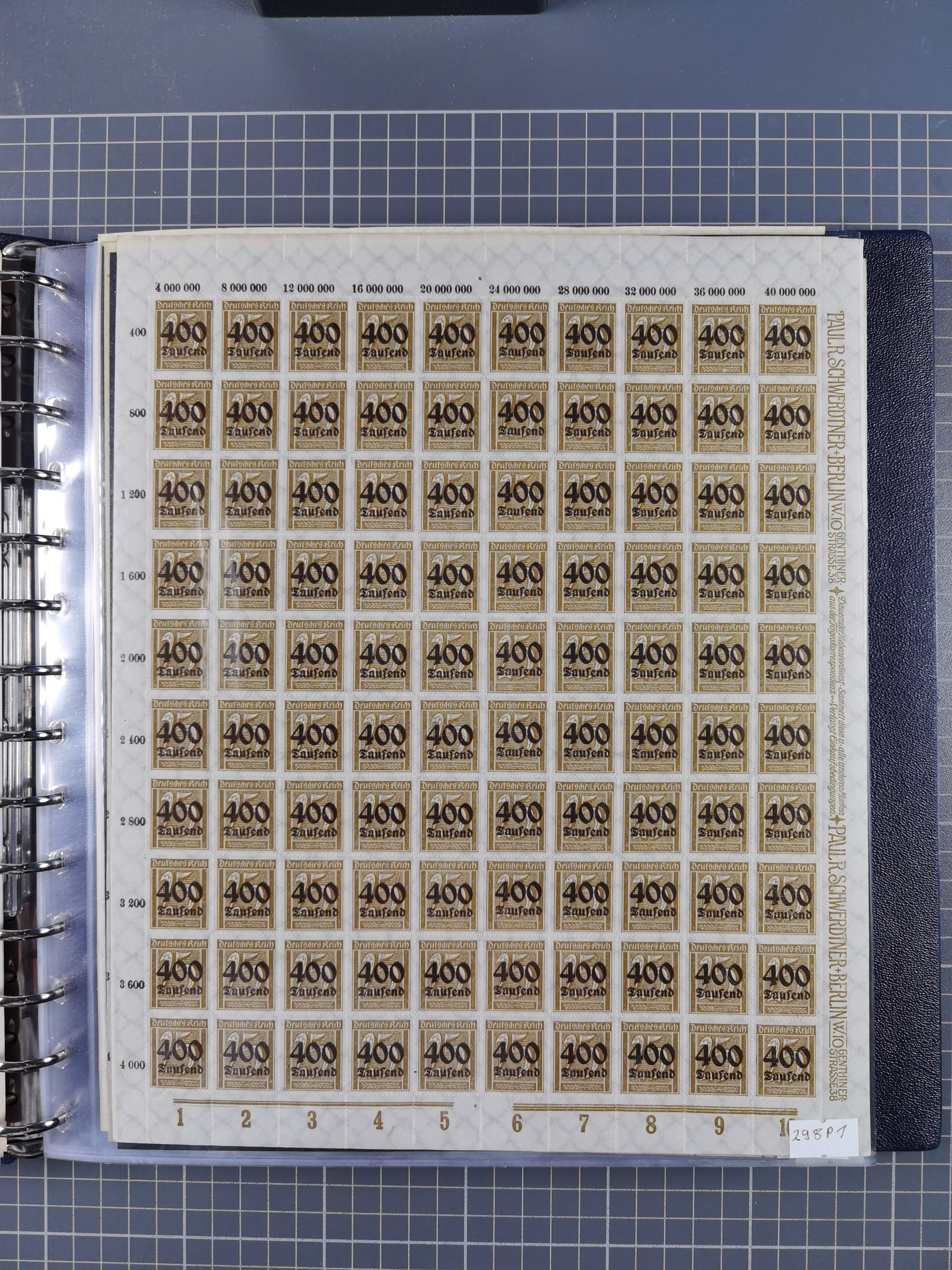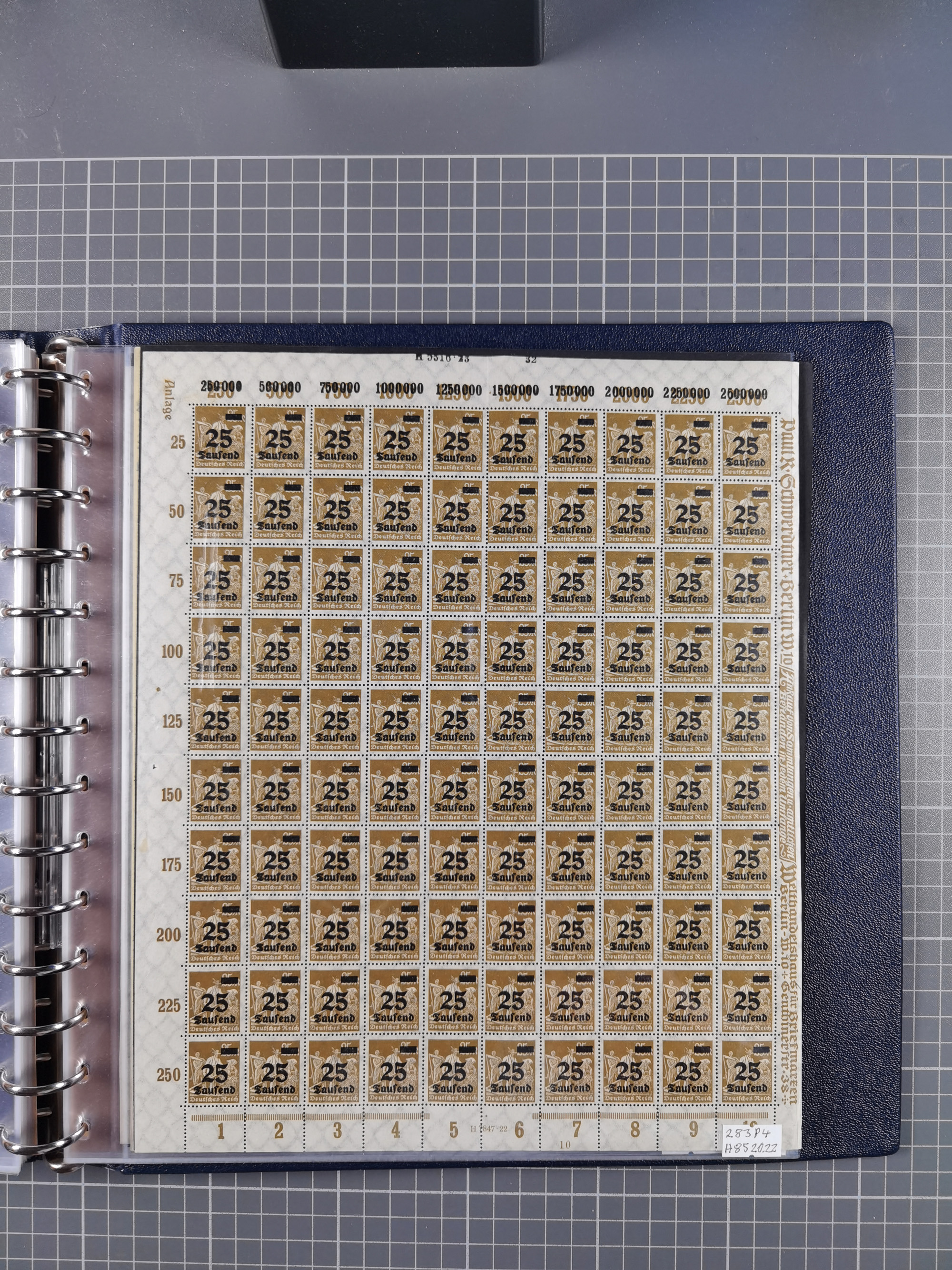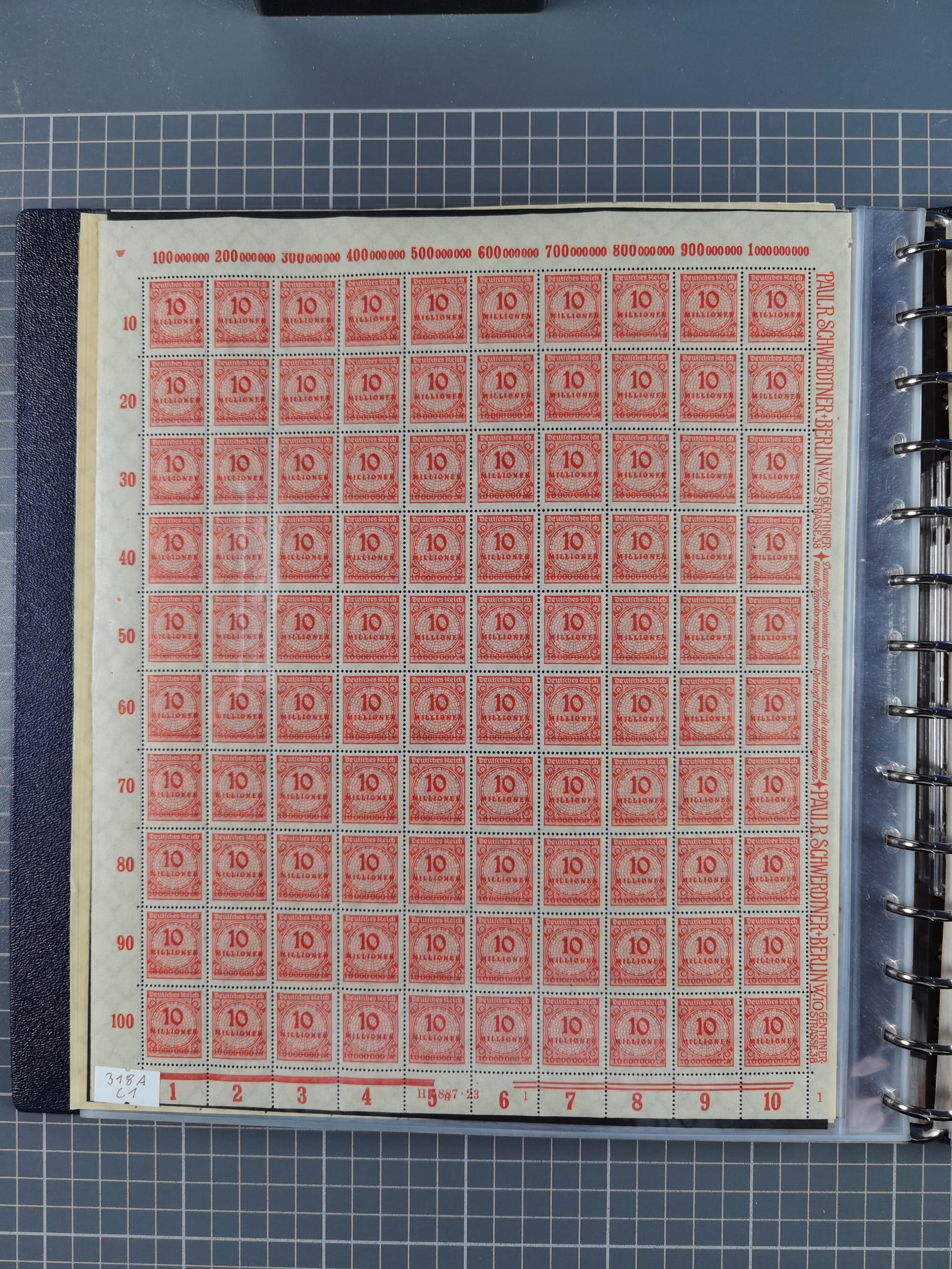 1922/23, meist postfrischer Engrosbestand mit überschlägig 300-400 Bögen, meist in Mengen zwischen 5 und 10 Stück, bis auf wenige ohne Gummi/Haftstellen in guter Erhaltung, in zwei großen Bogenmappen