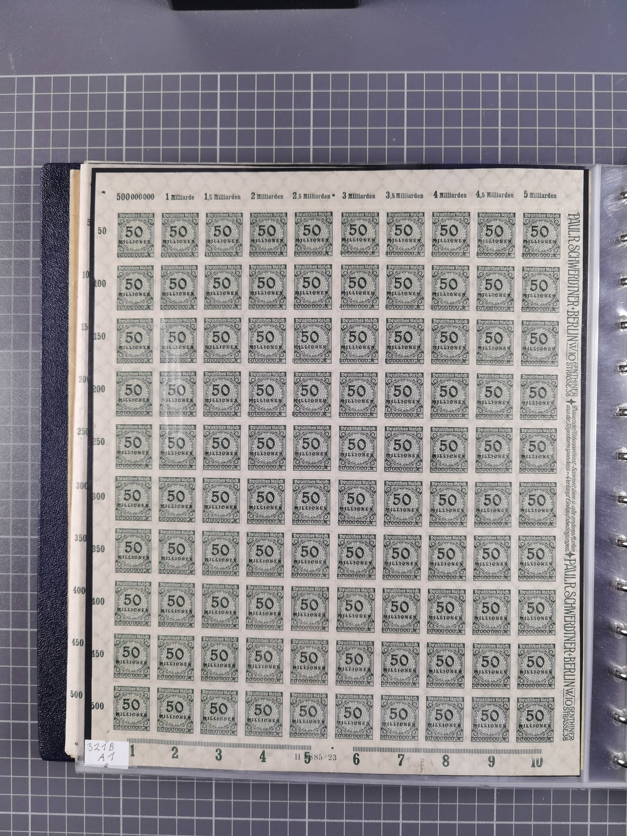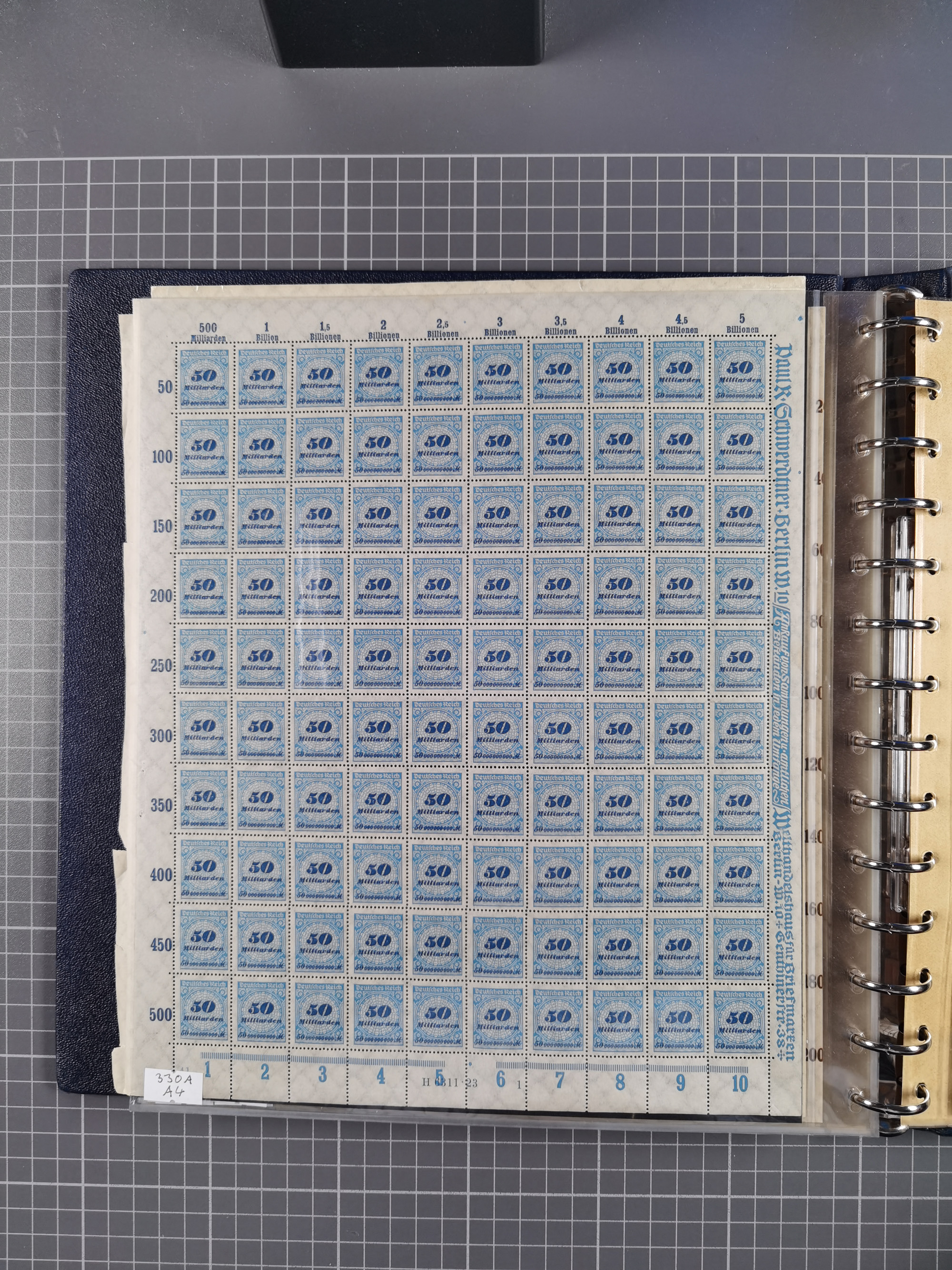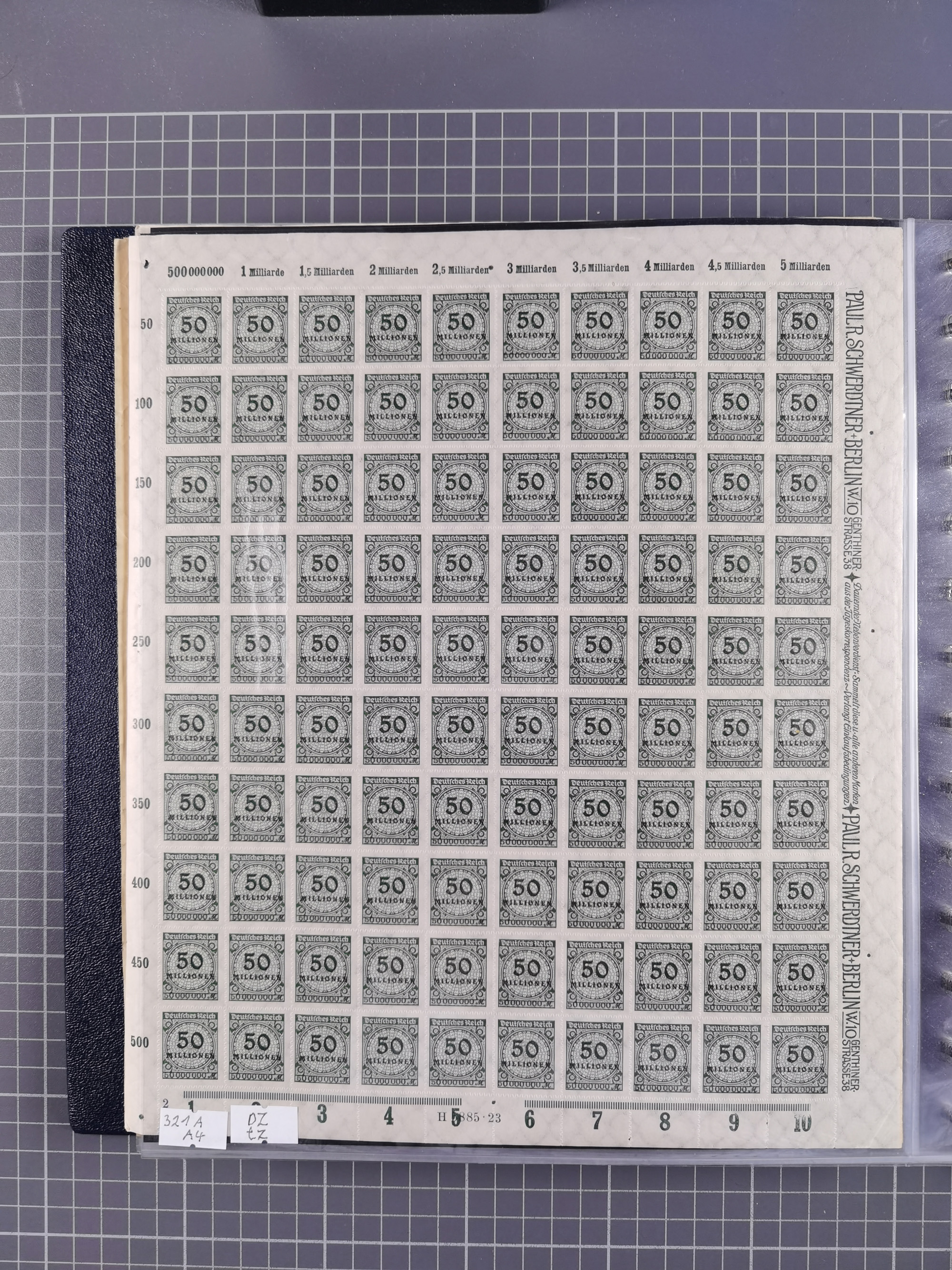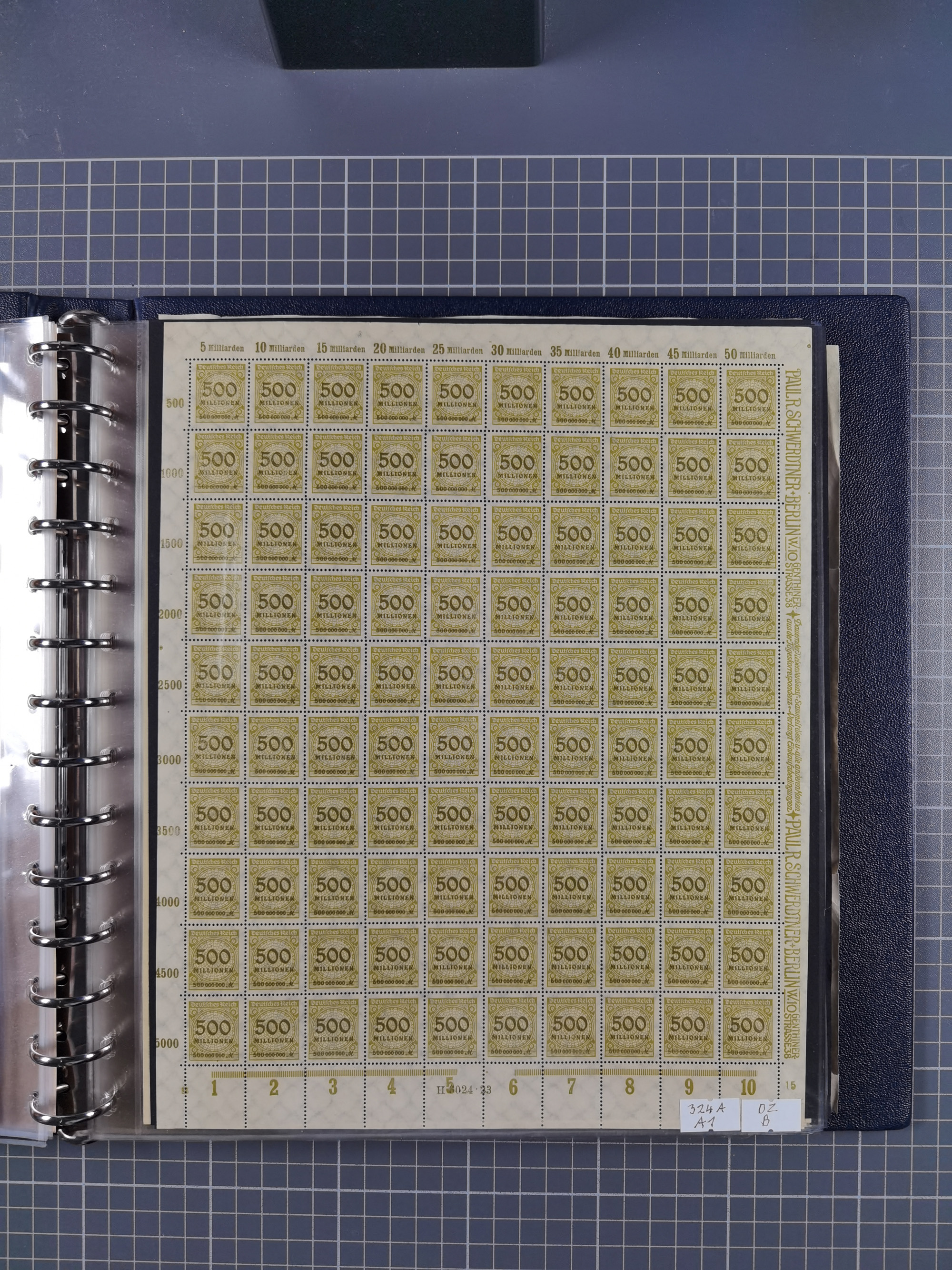 1923, OPD-Bogen, Sammlung von rund 70 Stück, einige mehrfach, dabei u. A. 333AW (Frankfurt) und 335B (Breslau und Stuttgart). Teils übliche kleine Mängel, jedoch insgesamt sehr sauber, meist einzeln in Kunststoffhüllen