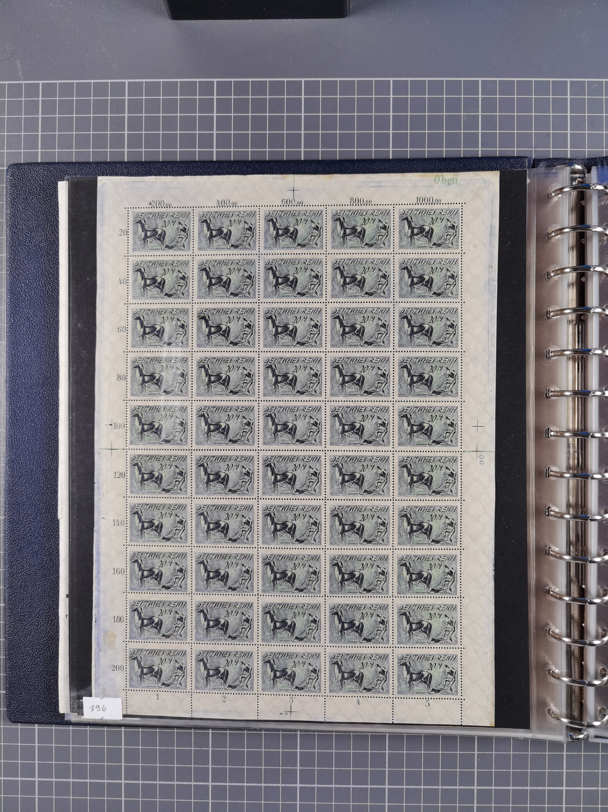 1922, meist postfrische, reichhaltige Prüf- und Vergleichssammlung der Mi.-Nr. 196, dabei viele Einzelmarken, Druckereizeichen, sowie Bogenteile und 24 kpl. Bogen, viele Handnotizen und Aufstellungen, Vermessungen der Passerkreuze, etc., gute Erhaltung, ex Sammlung Zenker