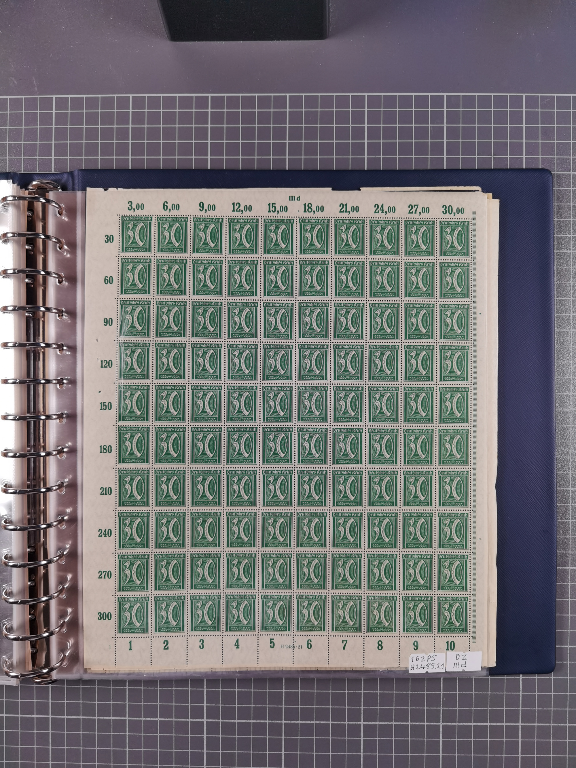 1921/22, postfrischer und ungebrauchter Bestand mit etwas über 200 Bogen und Bogenteilen, dabei Walzen- und Plattenbogen, HAN, Druckereizeichen, Pl.-Nr., auch Wz. Waffeln und Bogentaschen, teils sign. INFLA Berlin, etwas unterschiedliche Erhaltung, in zwei Ordnern