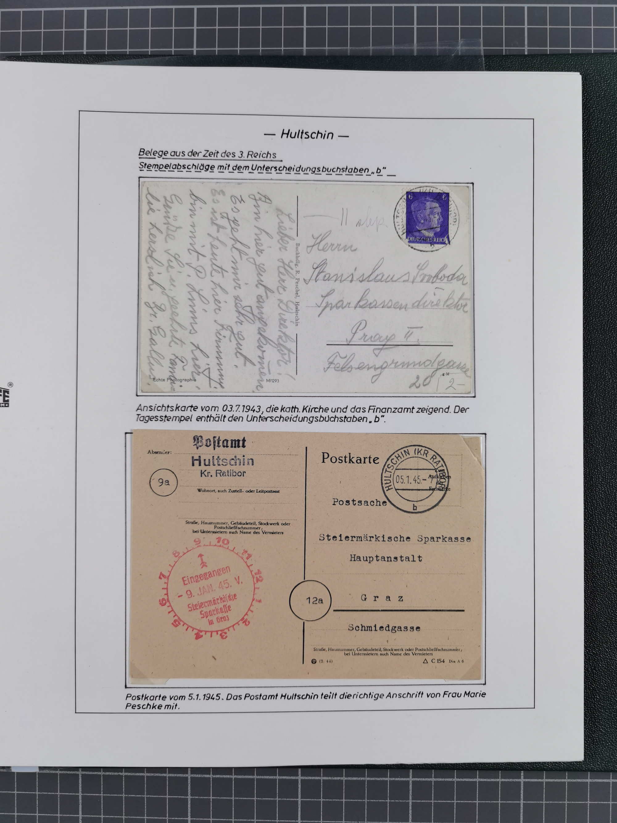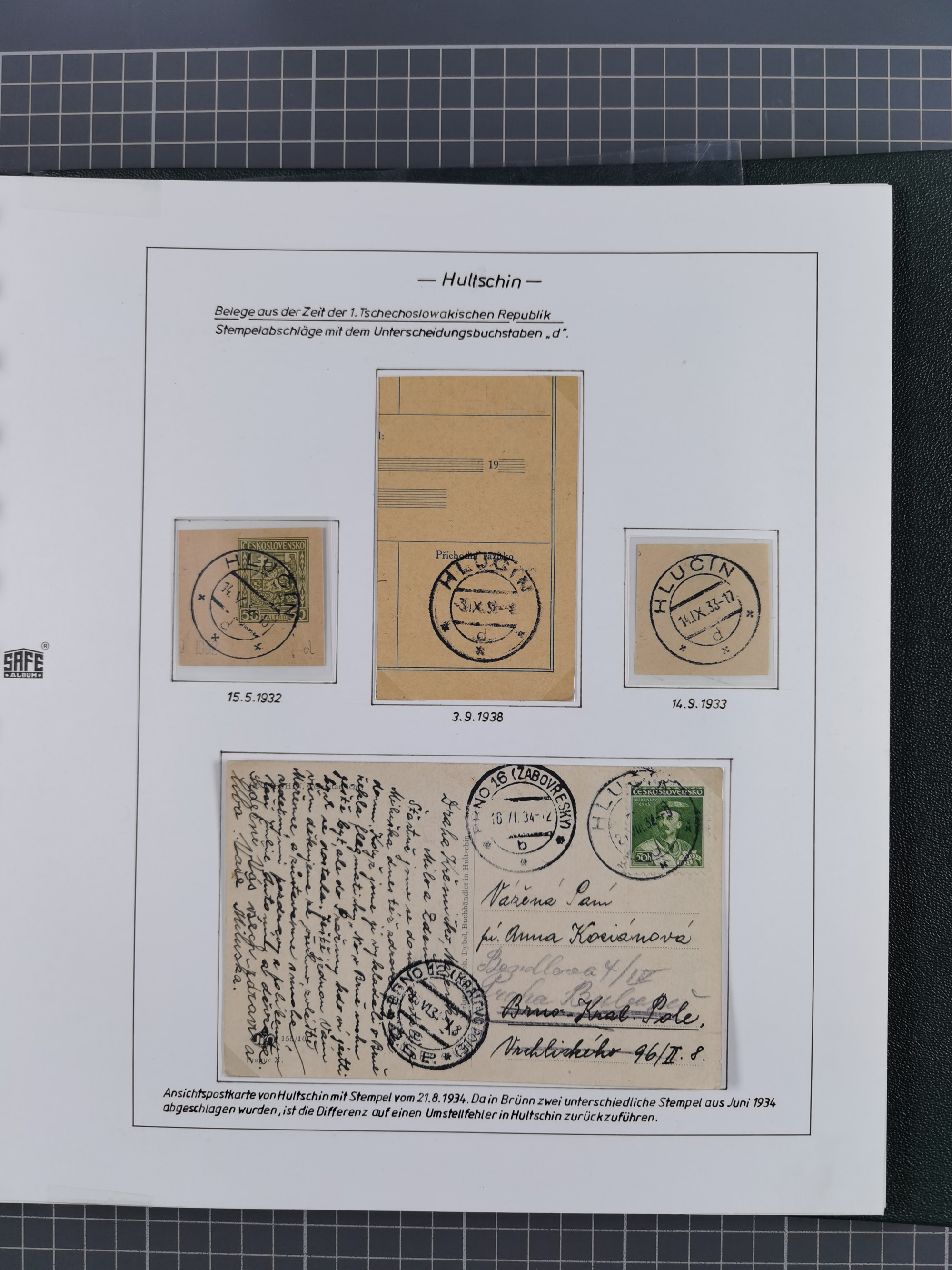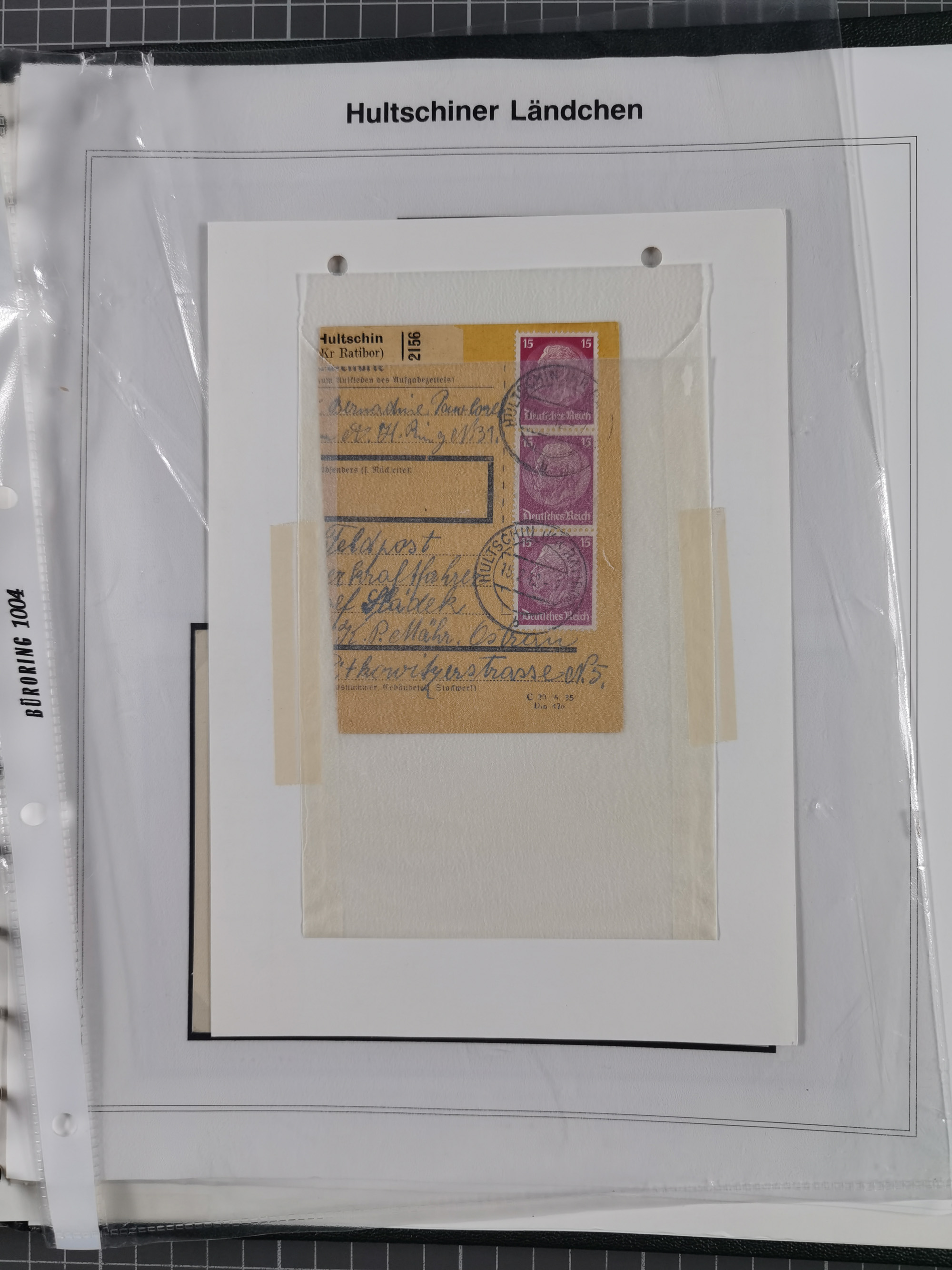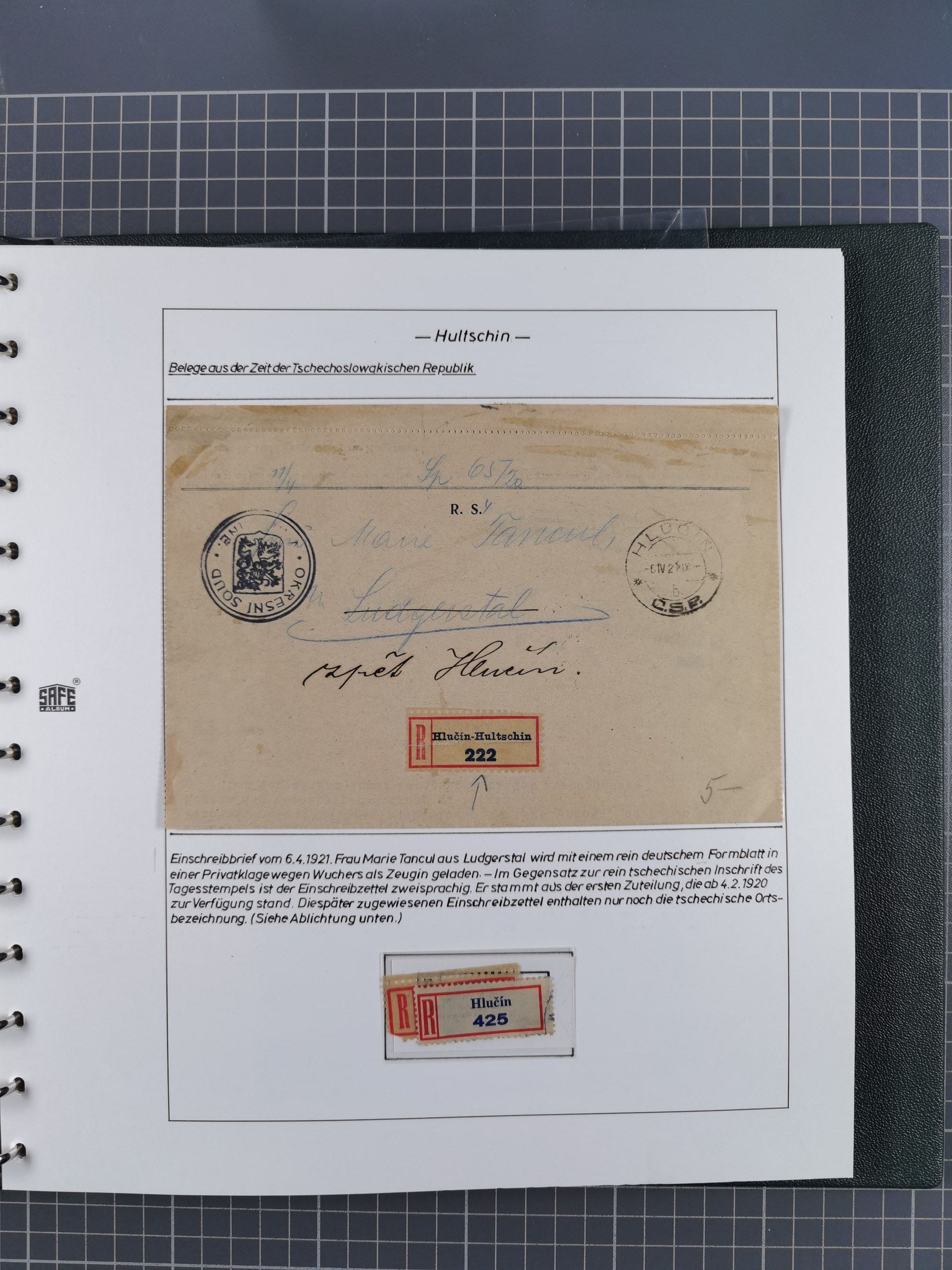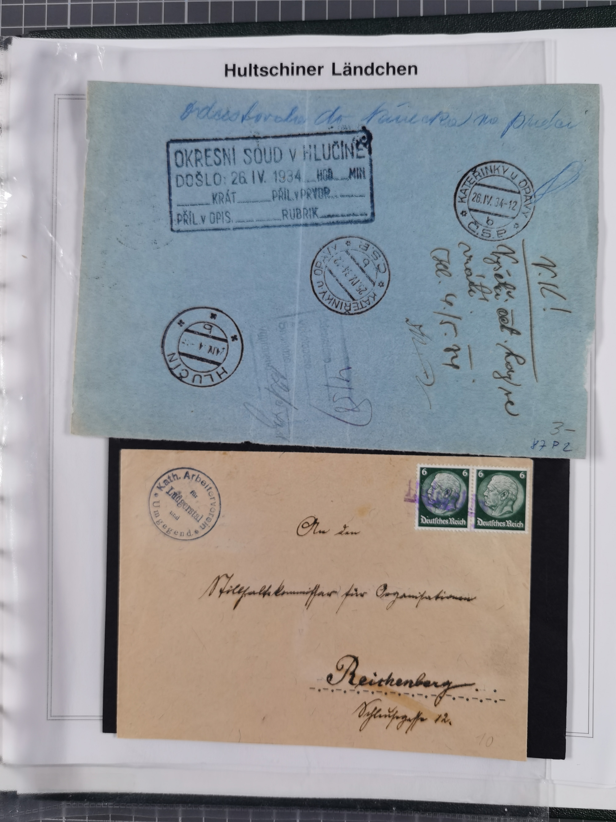 1920/45, HLUCIN - 'Hultschiner Ländchen' collection on 30 album leaves in album, starting with first Czechoslovakian post 4.2.1920, registered and official mail, receipts, postage due, postcards, german occupation, many different railway cancellation types, provisional cancellation 31.6.1945 coat of arms, overall a lovely collection.