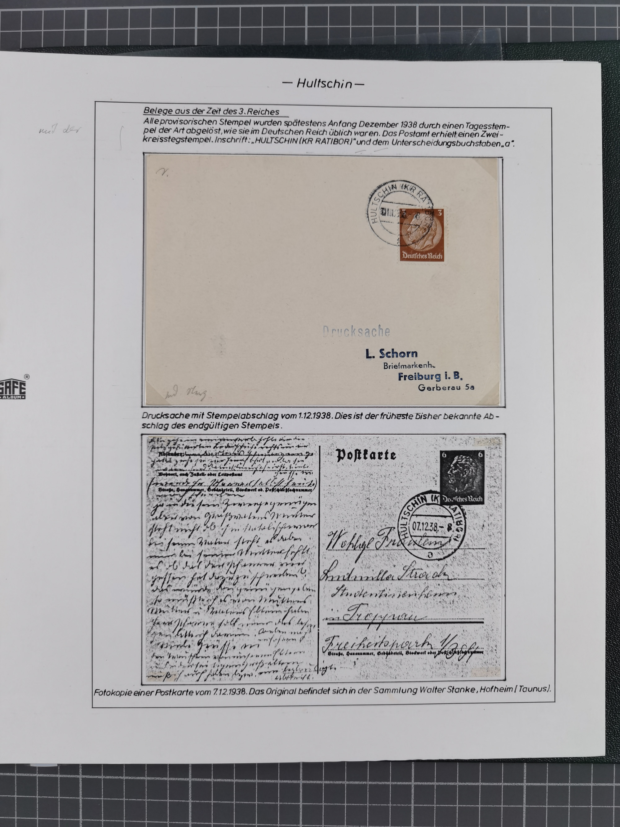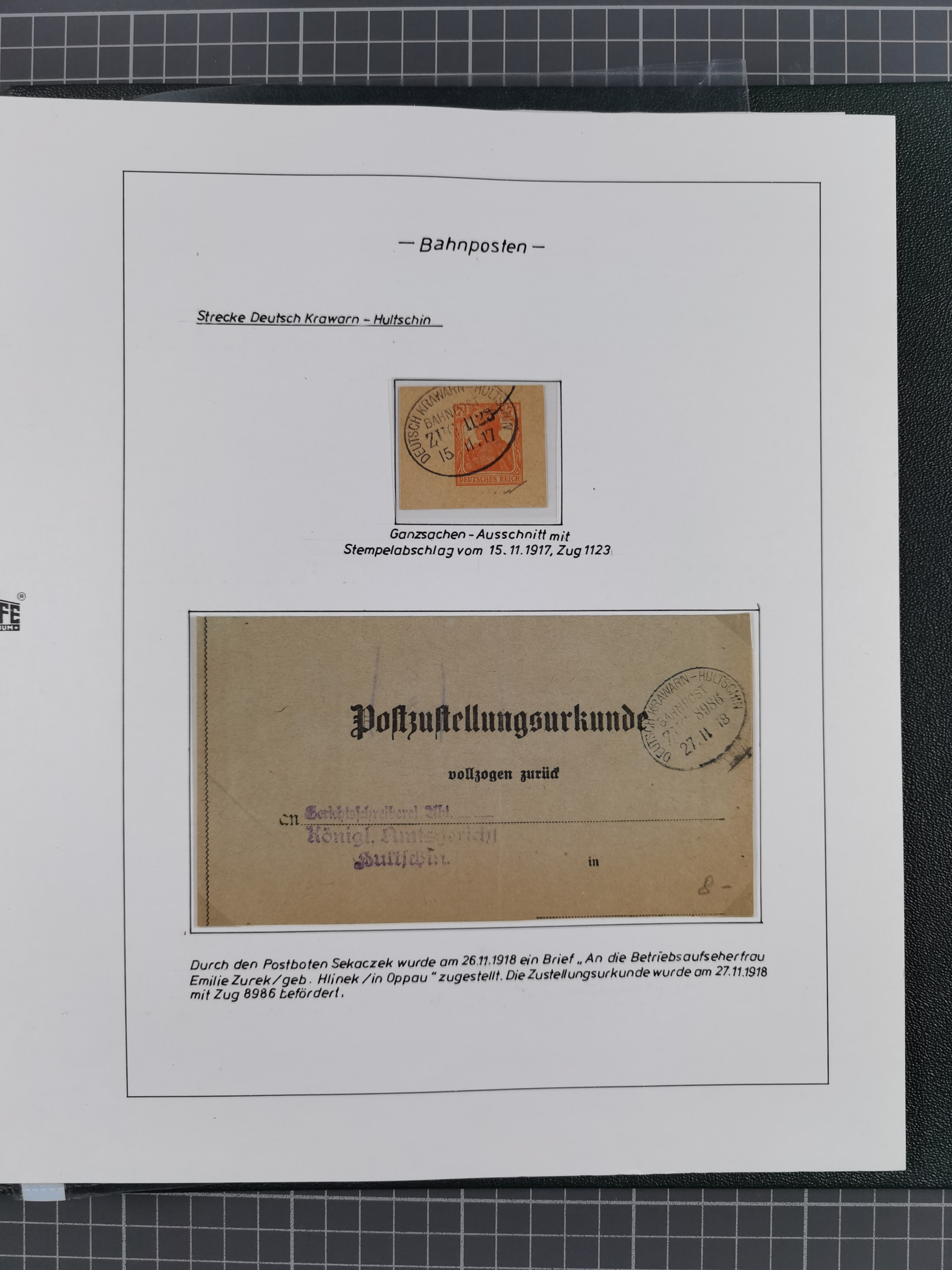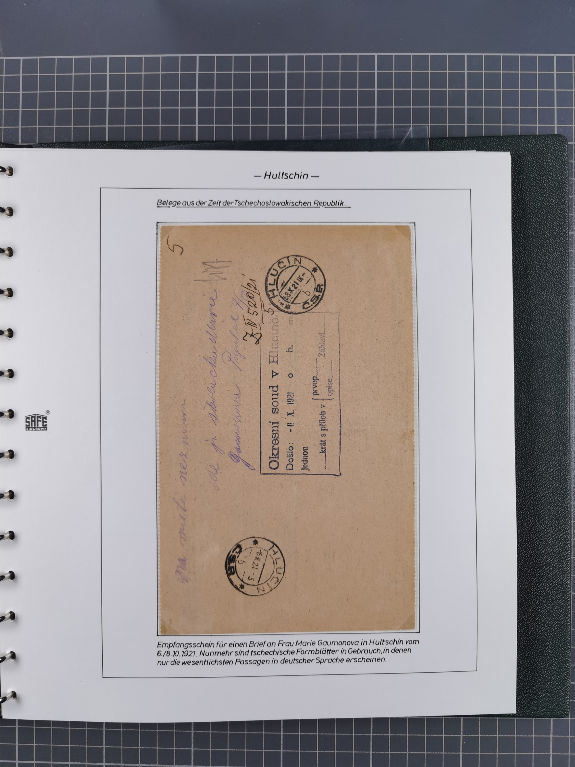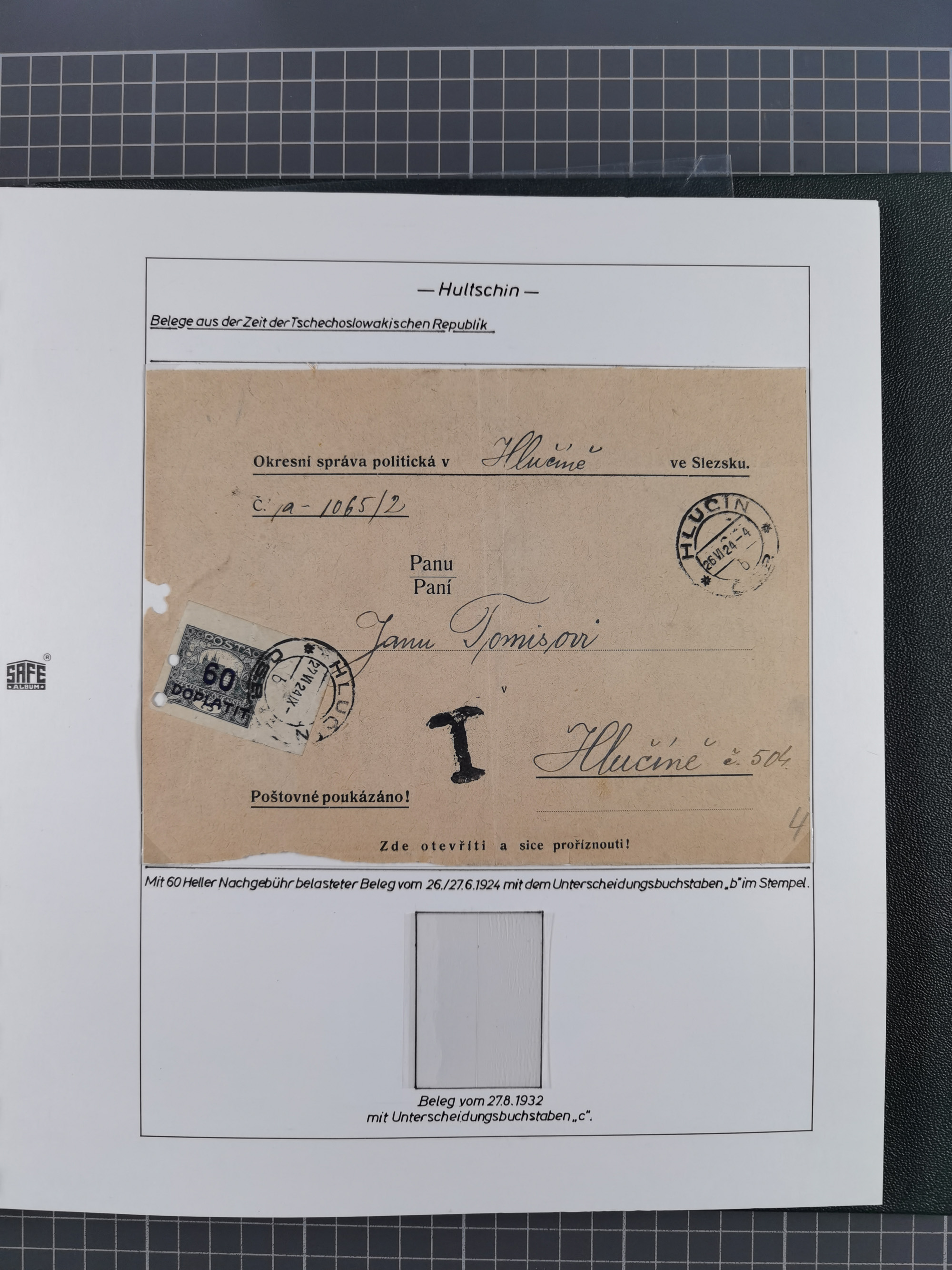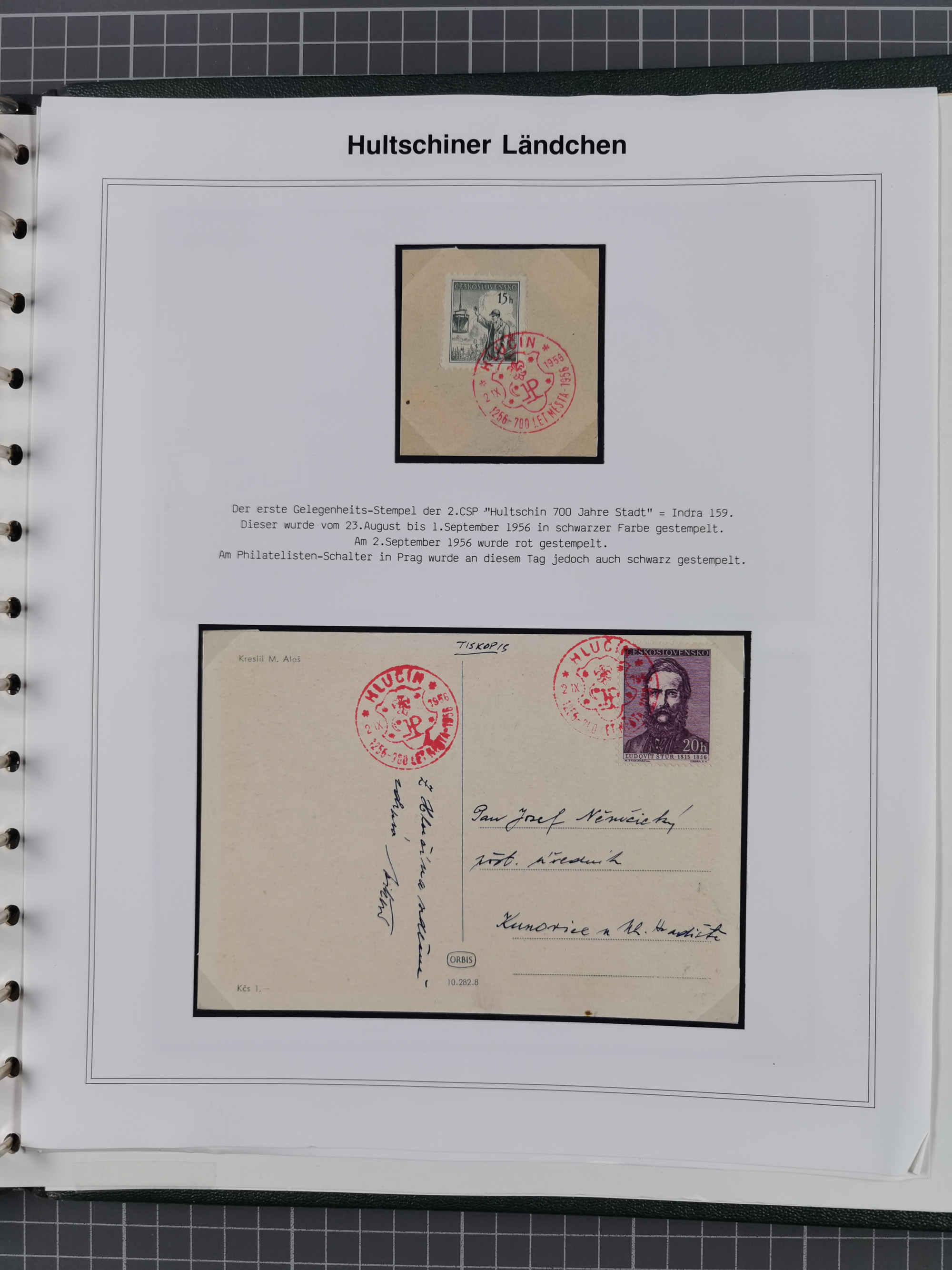 1920/45, HLUCIN - 'Hultschiner Ländchen' collection on 30 album leaves in album, starting with first Czechoslovakian post 4.2.1920, registered and official mail, receipts, postage due, postcards, german occupation, many different railway cancellation types, provisional cancellation 31.6.1945 coat of arms, overall a lovely collection.