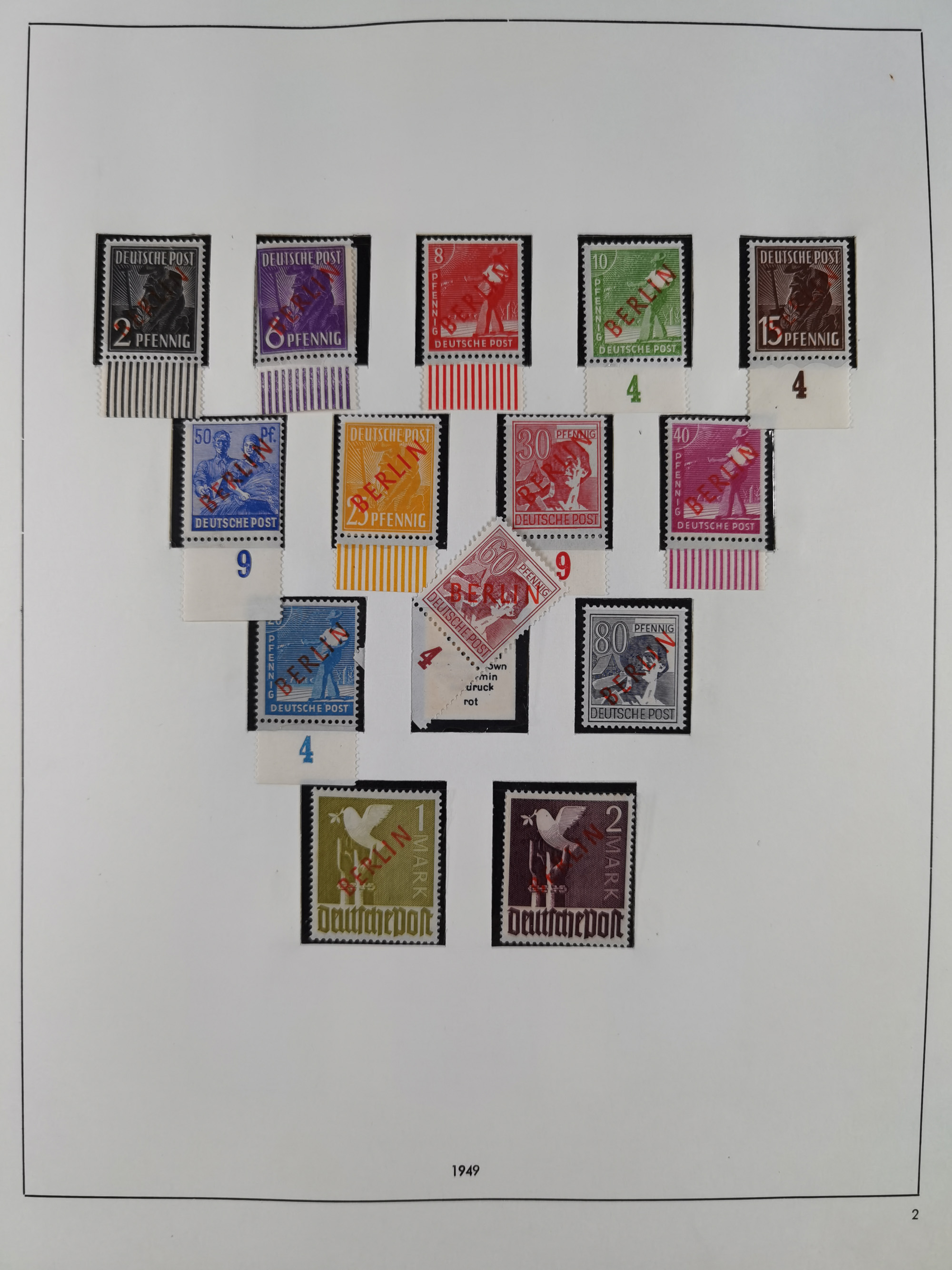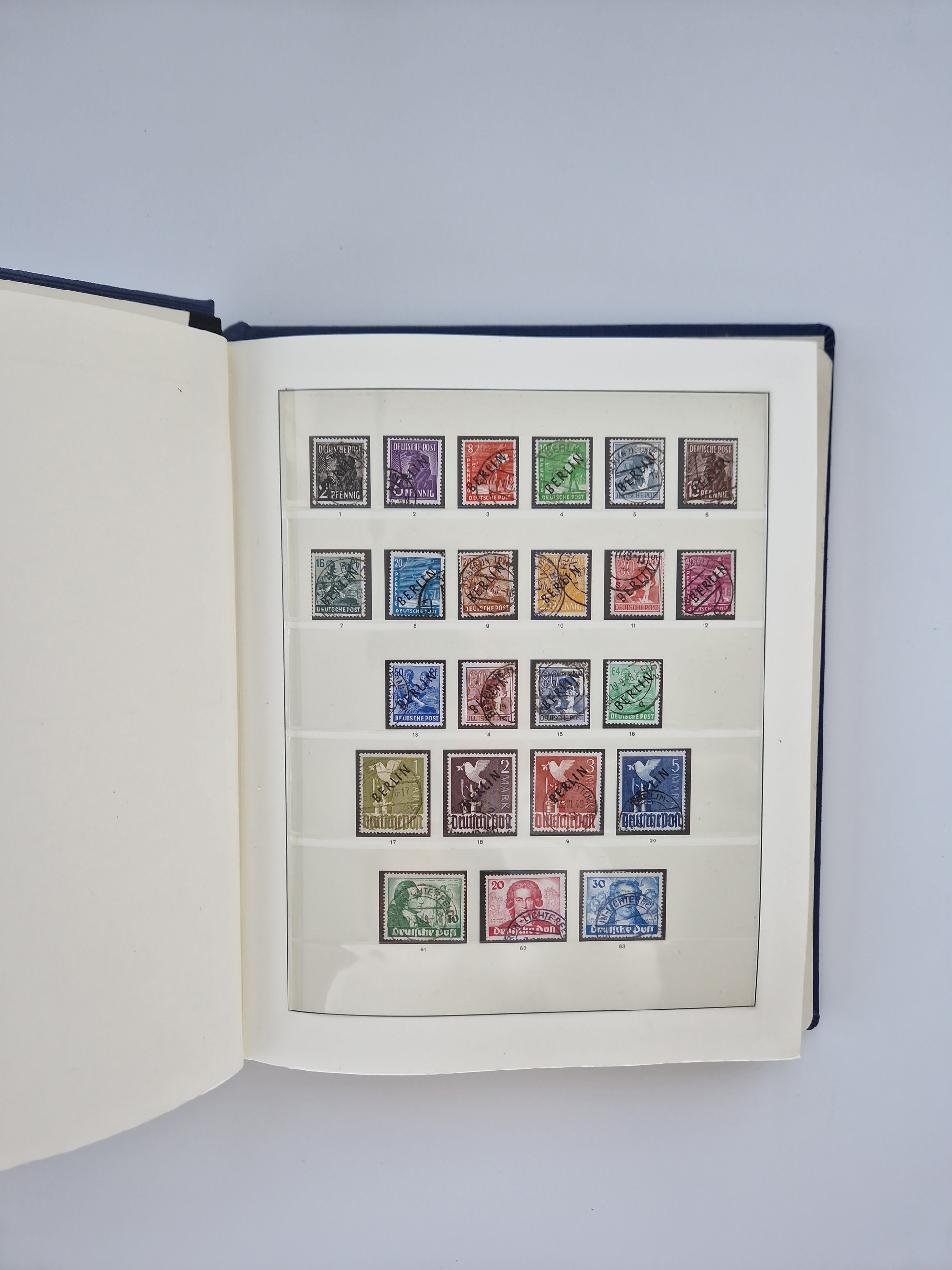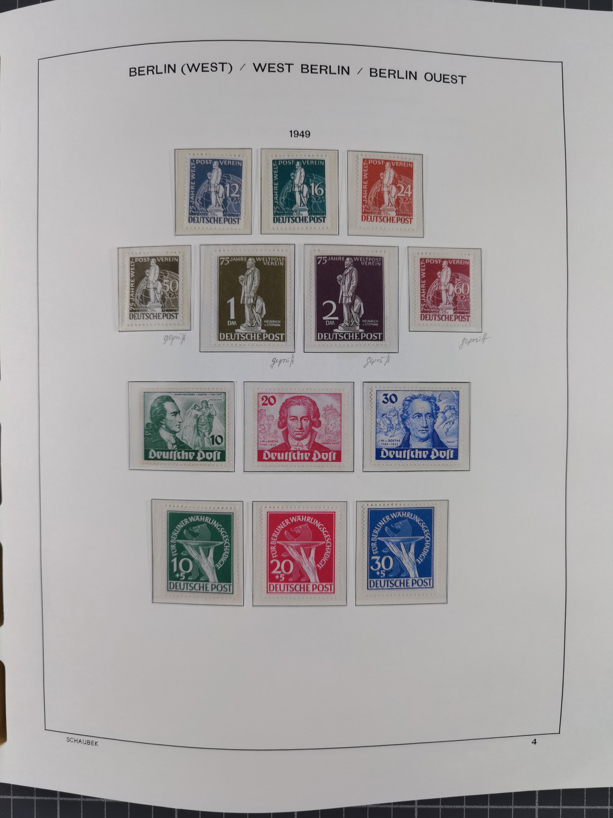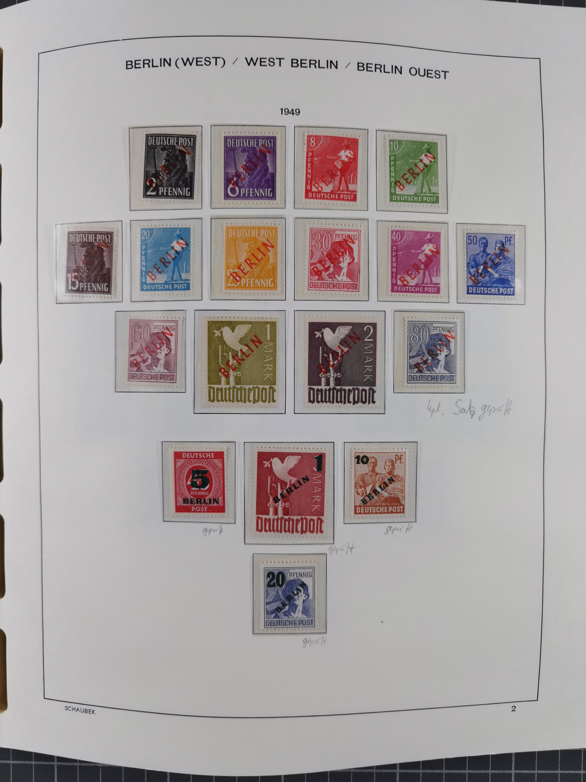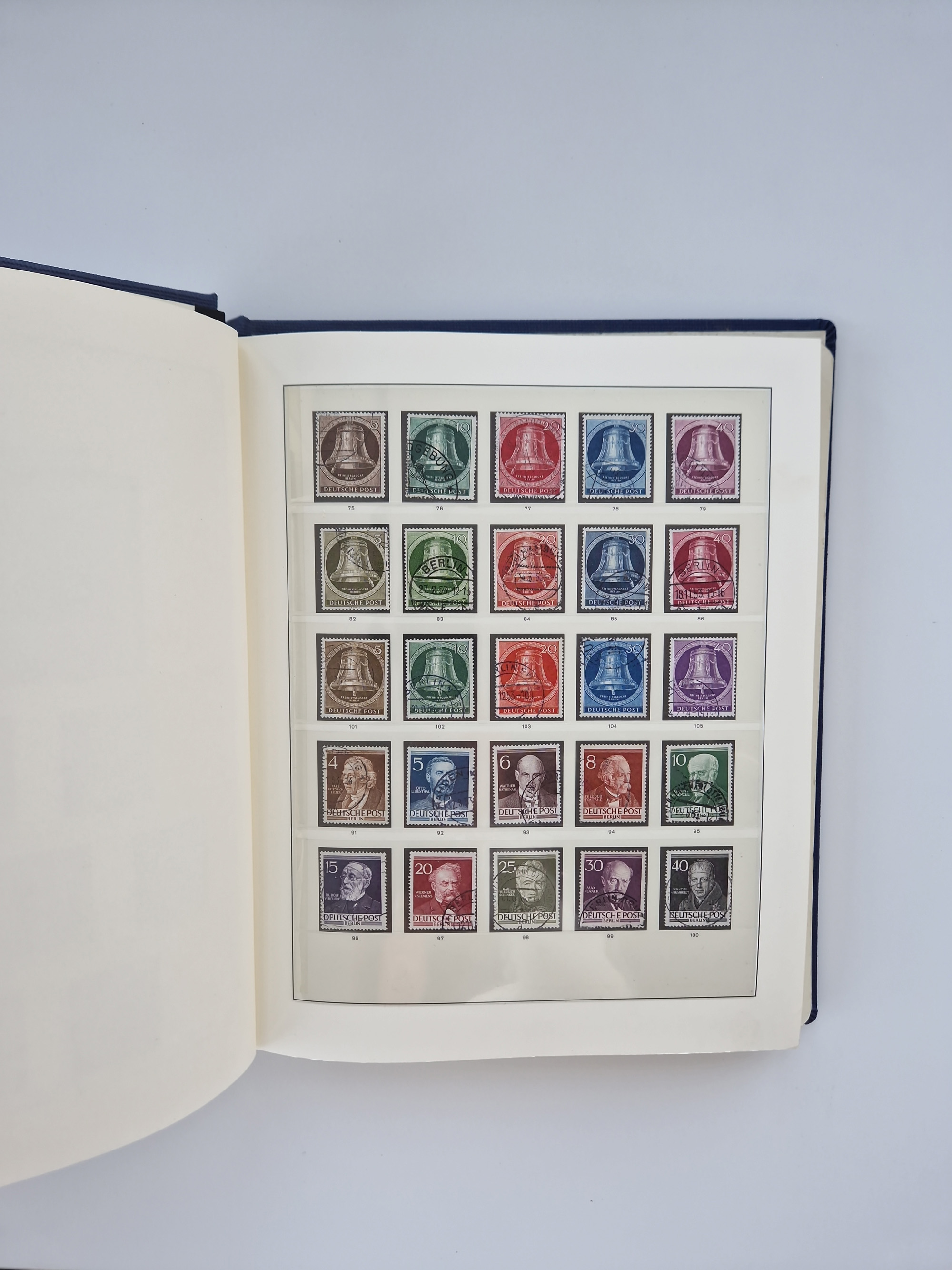 1949/90, gestempelte Bund- und Berlin-Sammlung mit Berlin ab Rotaufdruck ohne Bl. 1 augenscheinlich komplett. Dabei u.a. Mi.-Nr. 33-34 sign. Schlegel BPP bzw. D. Schlegel BPP und Mi.-Nr. 68-70 (sign. Schlegel BPP), dazu fünf Jahrbücher