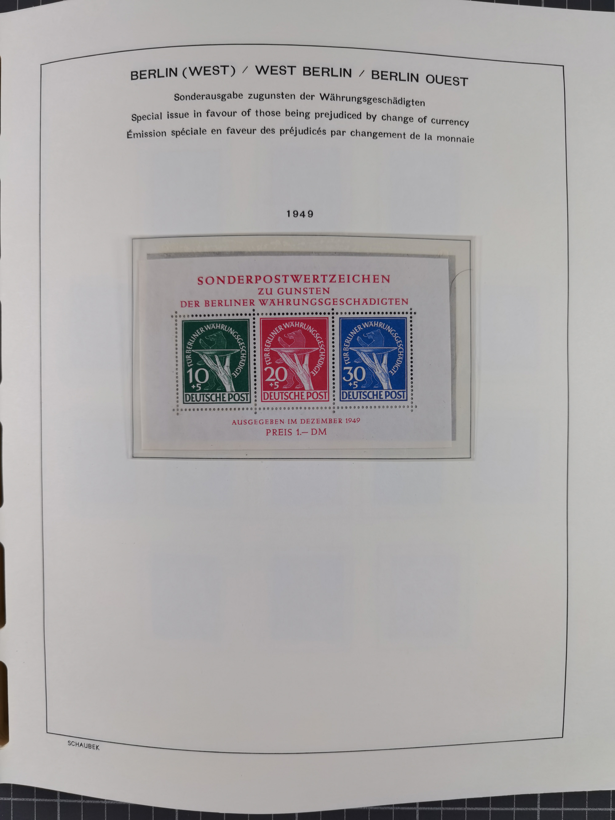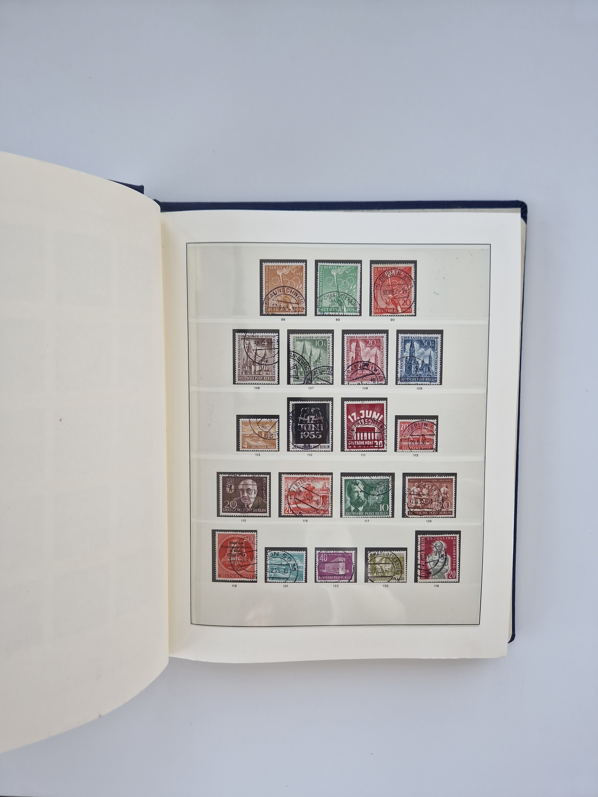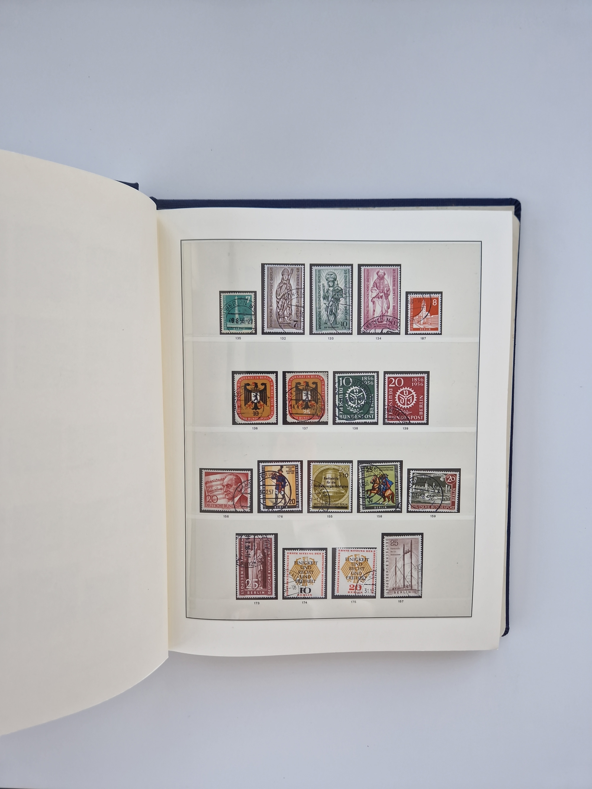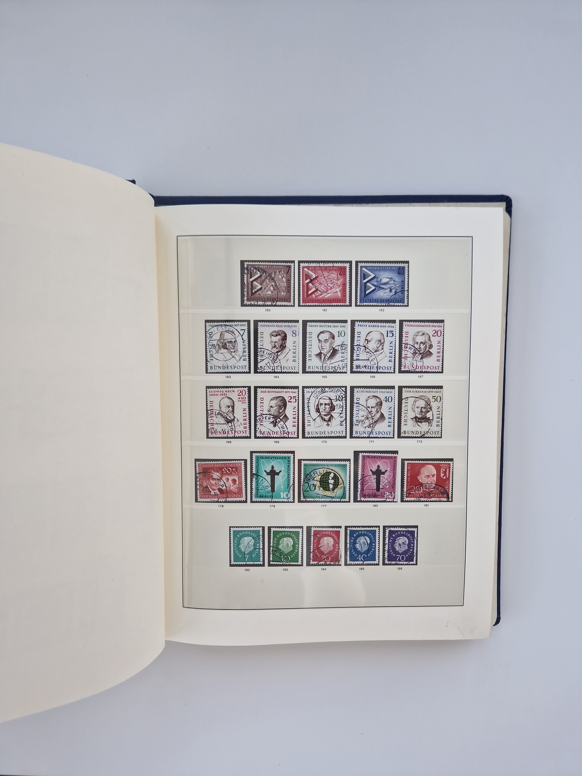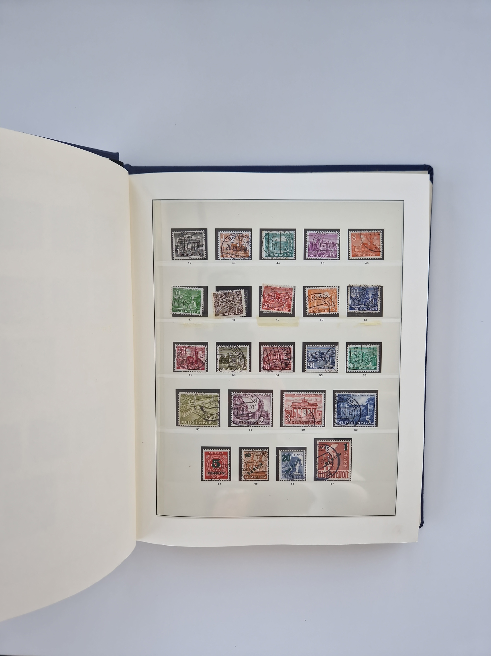 1949/90, gestempelte Bund- und Berlin-Sammlung mit Berlin ab Rotaufdruck ohne Bl. 1 augenscheinlich komplett. Dabei u.a. Mi.-Nr. 33-34 sign. Schlegel BPP bzw. D. Schlegel BPP und Mi.-Nr. 68-70 (sign. Schlegel BPP), dazu fünf Jahrbücher
