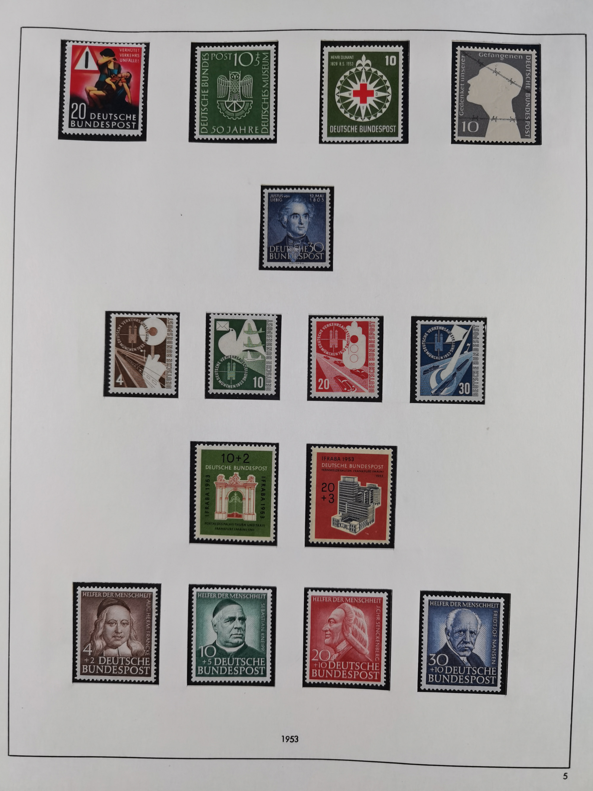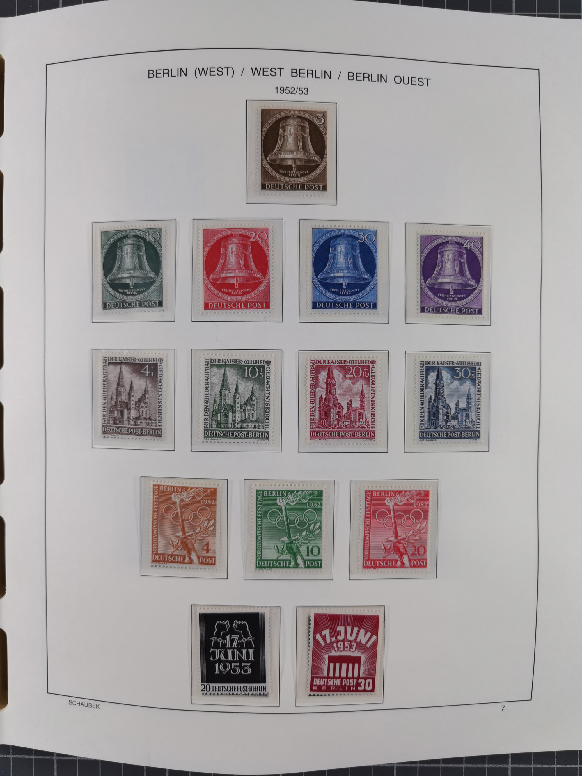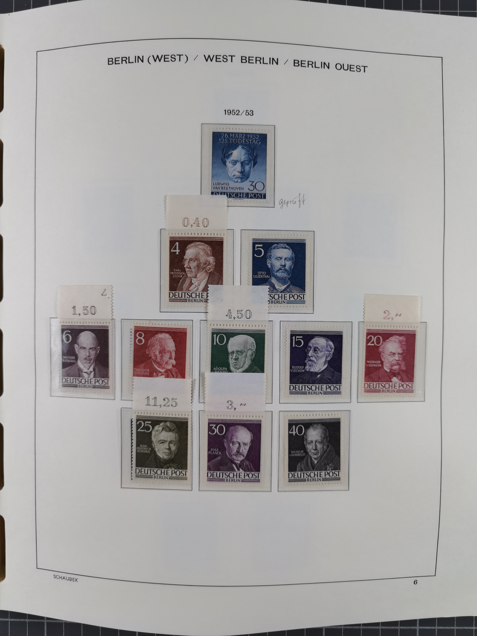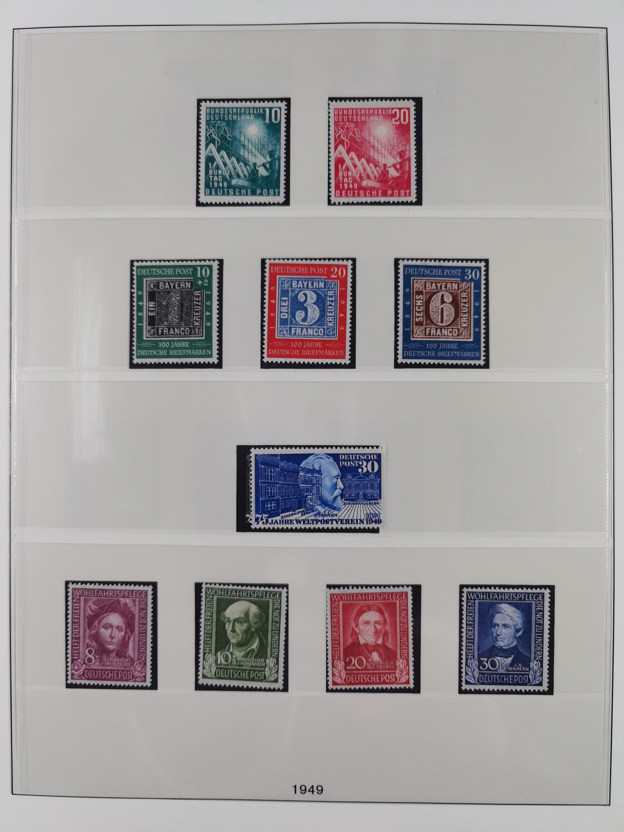 1949/90, gestempelte Bund- und Berlin-Sammlung mit Berlin ab Rotaufdruck ohne Bl. 1 augenscheinlich komplett. Dabei u.a. Mi.-Nr. 33-34 sign. Schlegel BPP bzw. D. Schlegel BPP und Mi.-Nr. 68-70 (sign. Schlegel BPP), dazu fünf Jahrbücher