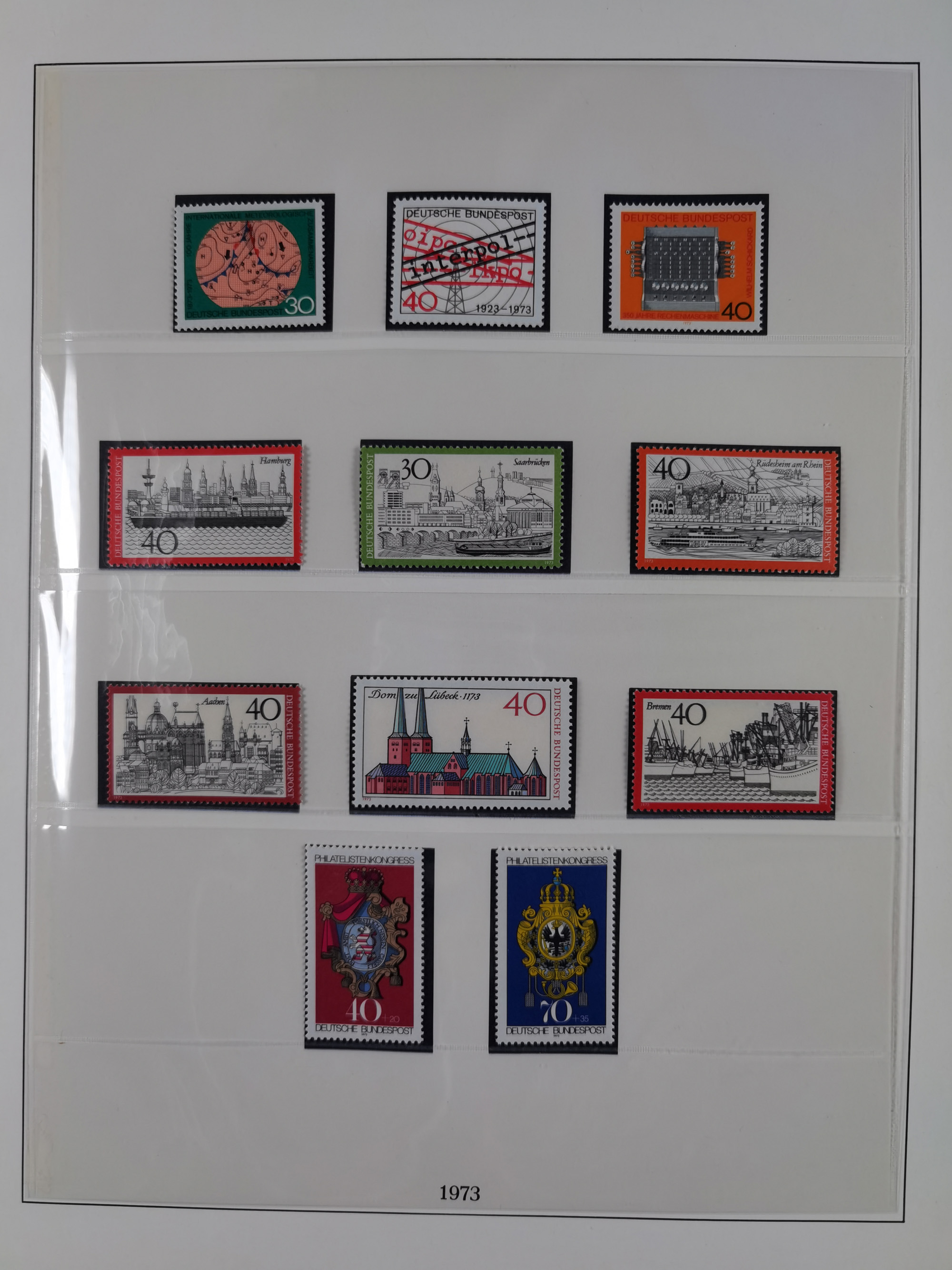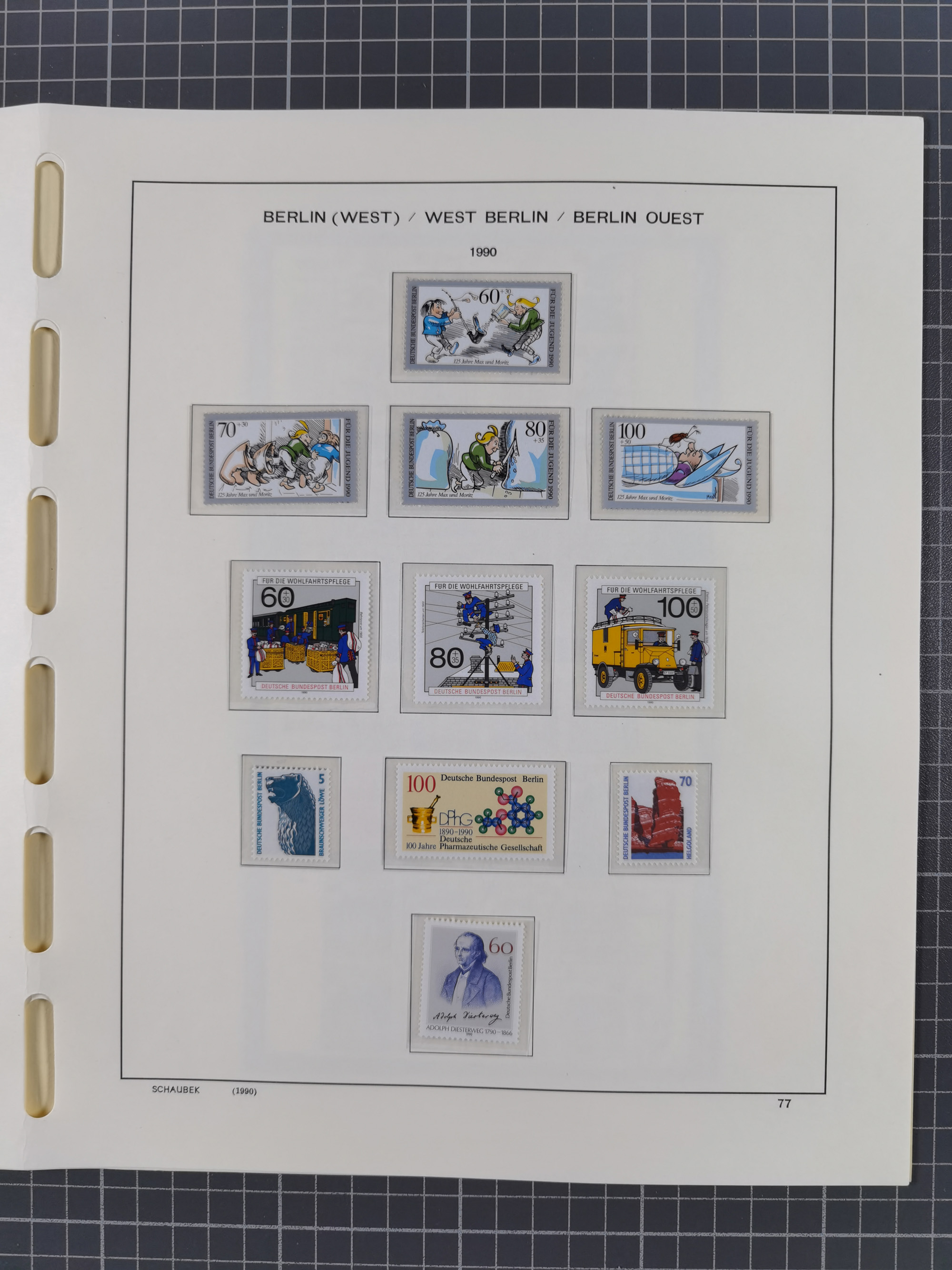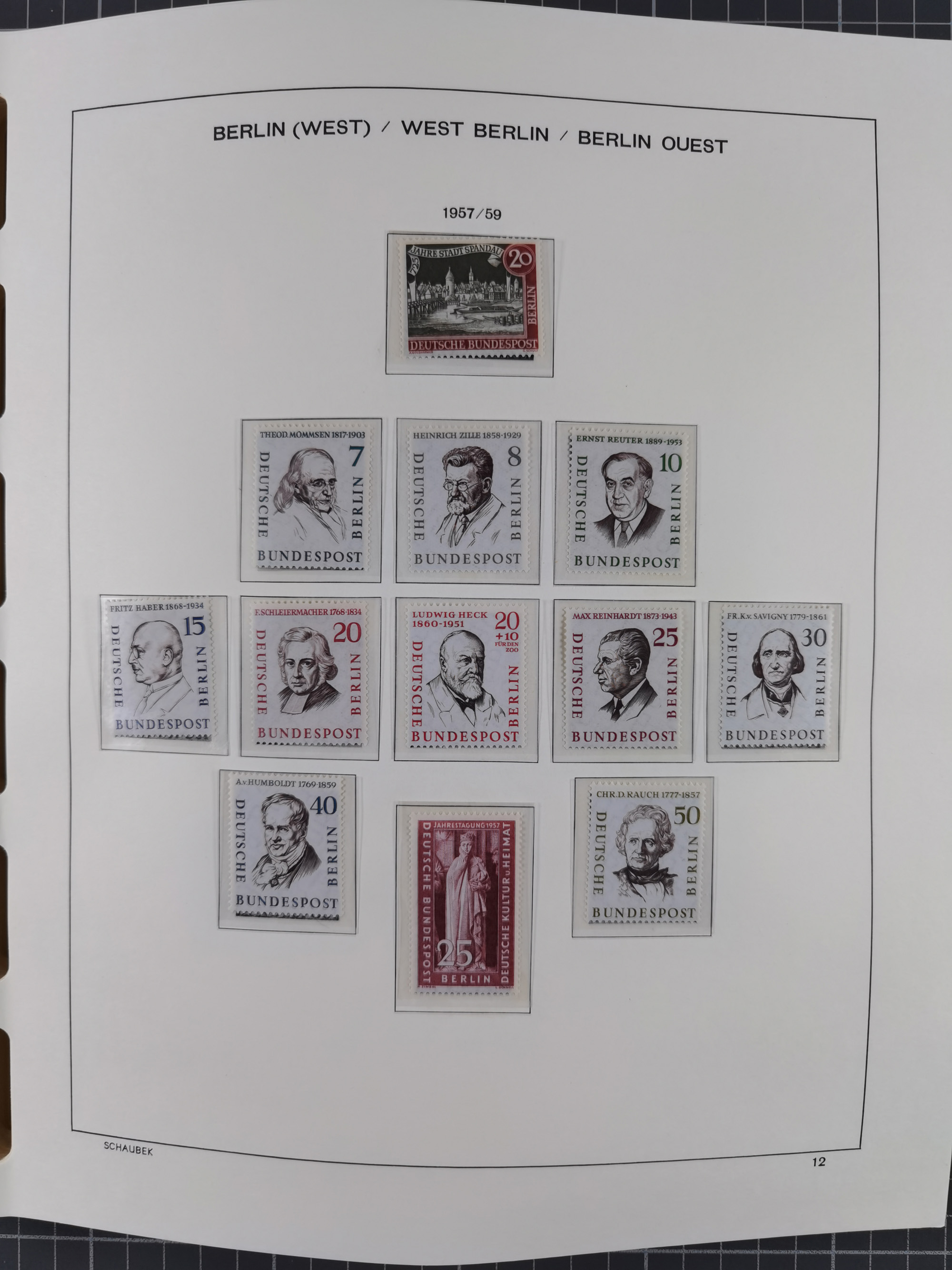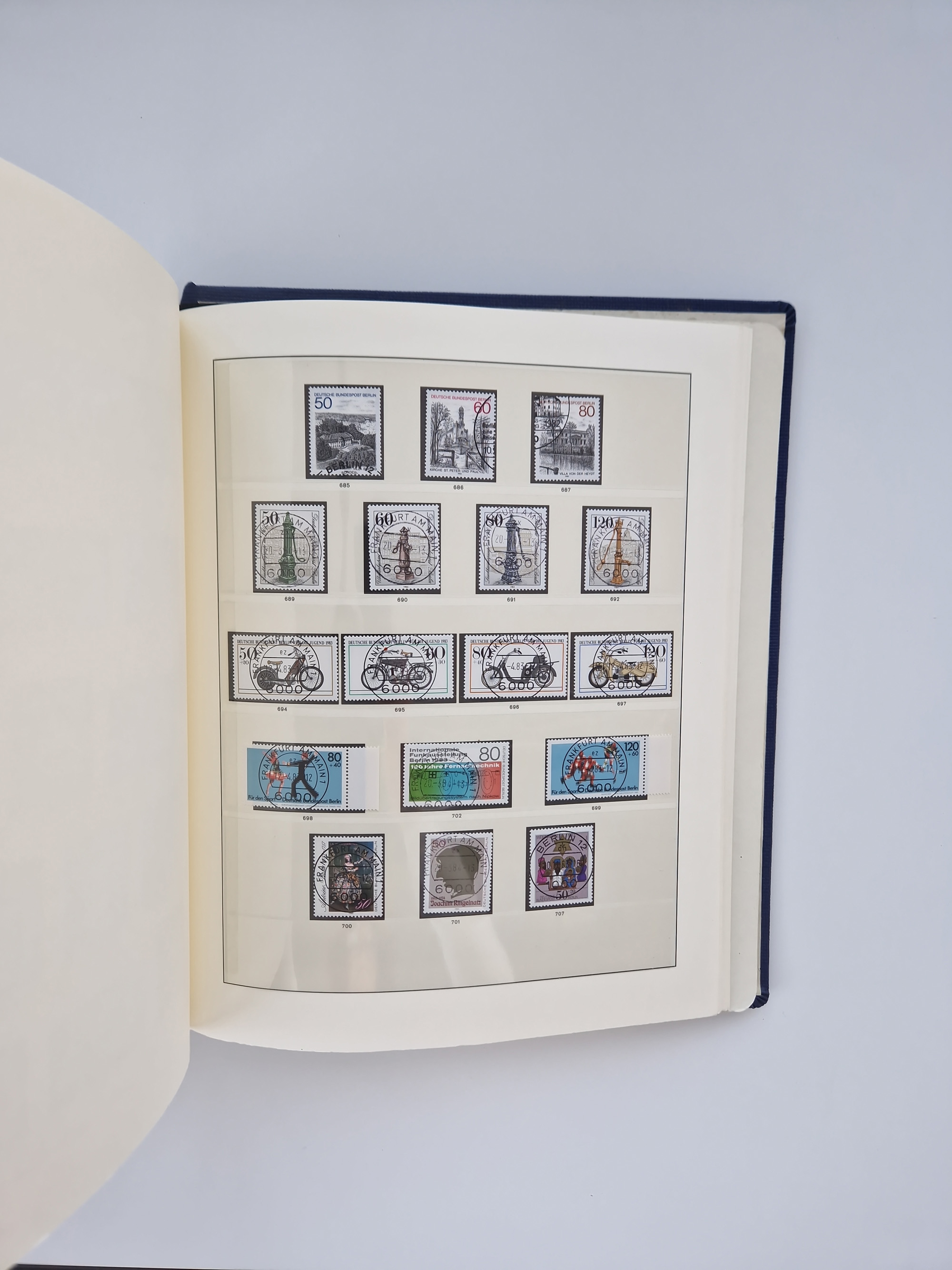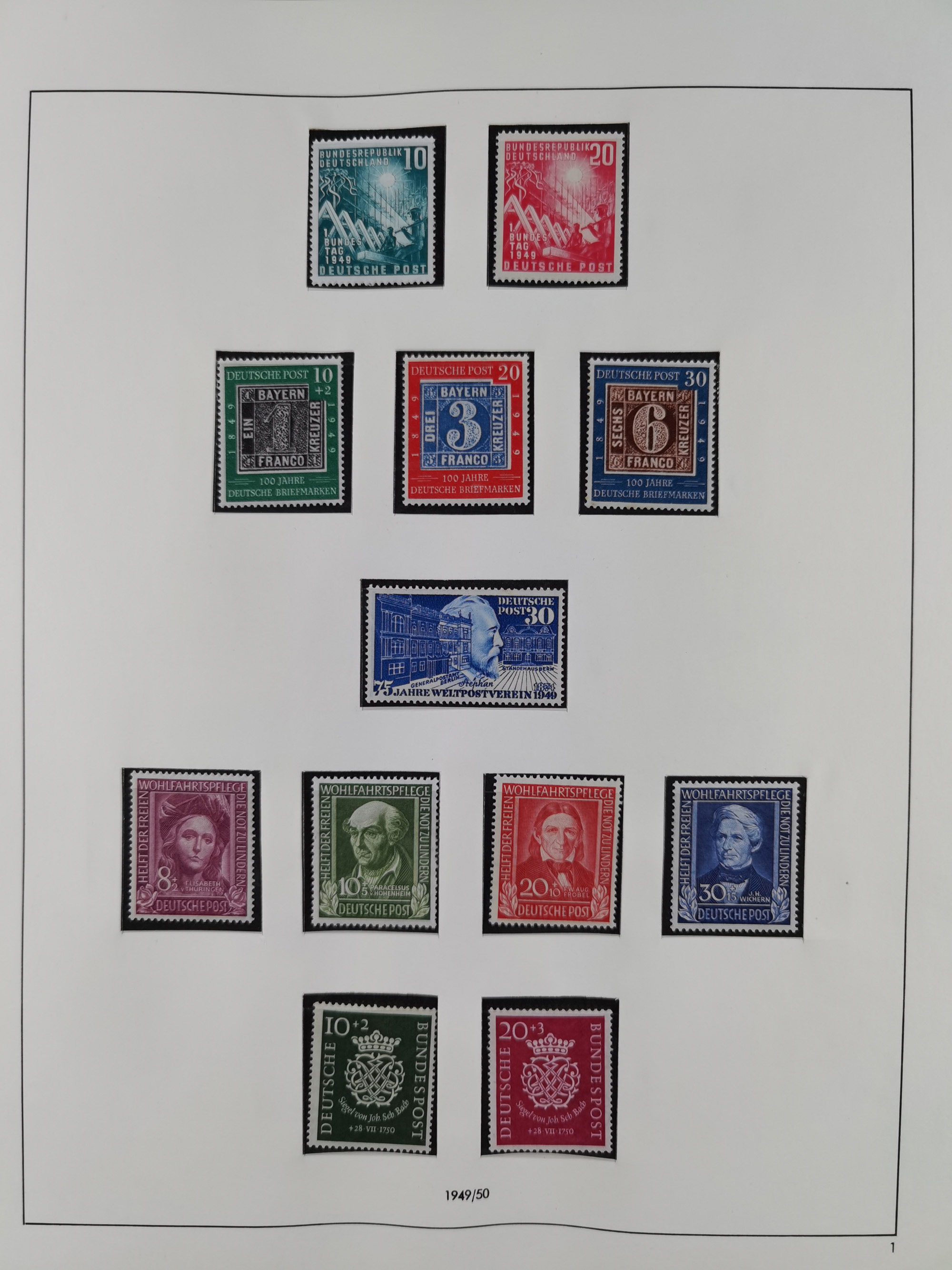 1949/90, gestempelte Bund- und Berlin-Sammlung mit Berlin ab Rotaufdruck ohne Bl. 1 augenscheinlich komplett. Dabei u.a. Mi.-Nr. 33-34 sign. Schlegel BPP bzw. D. Schlegel BPP und Mi.-Nr. 68-70 (sign. Schlegel BPP), dazu fünf Jahrbücher