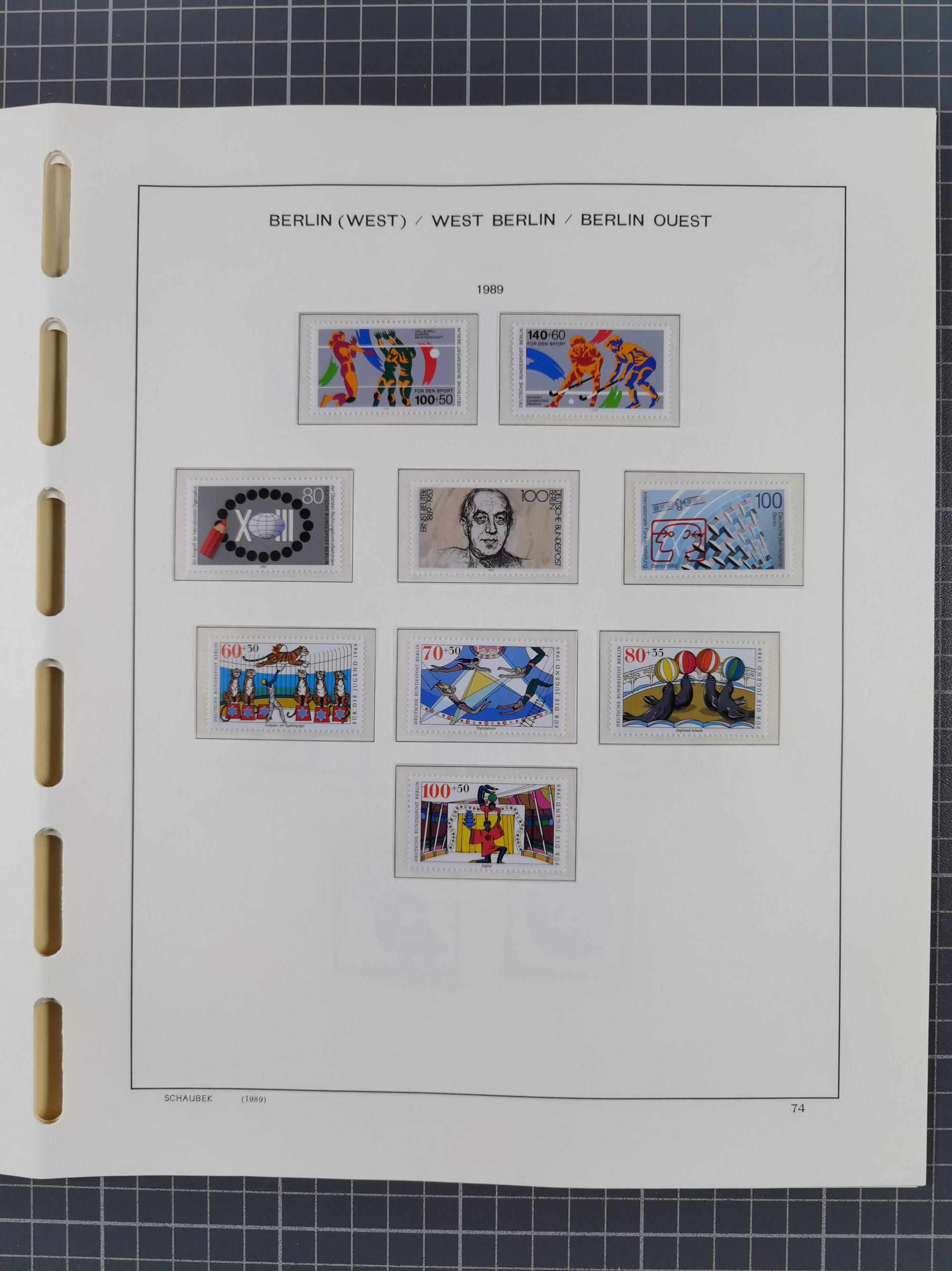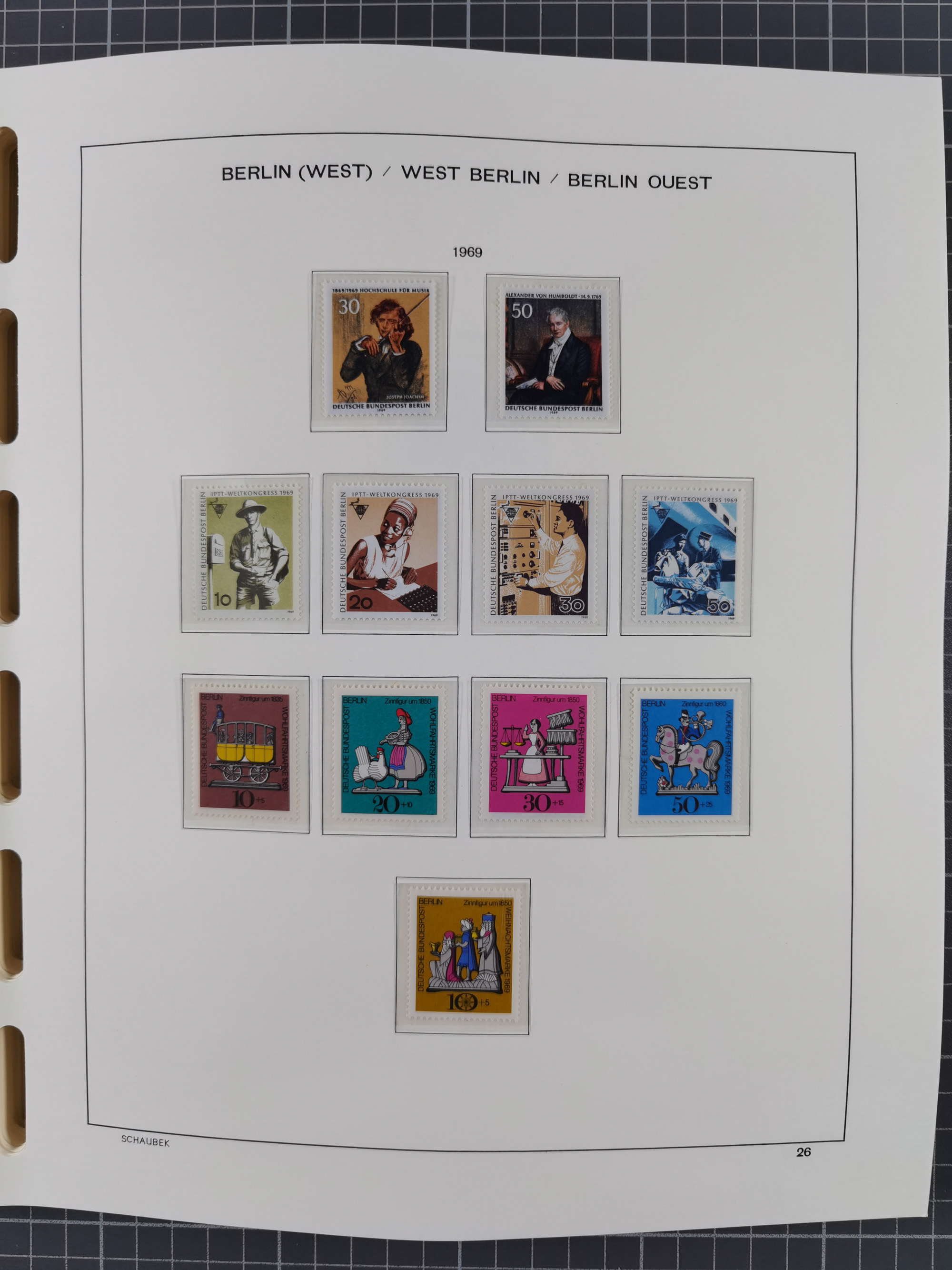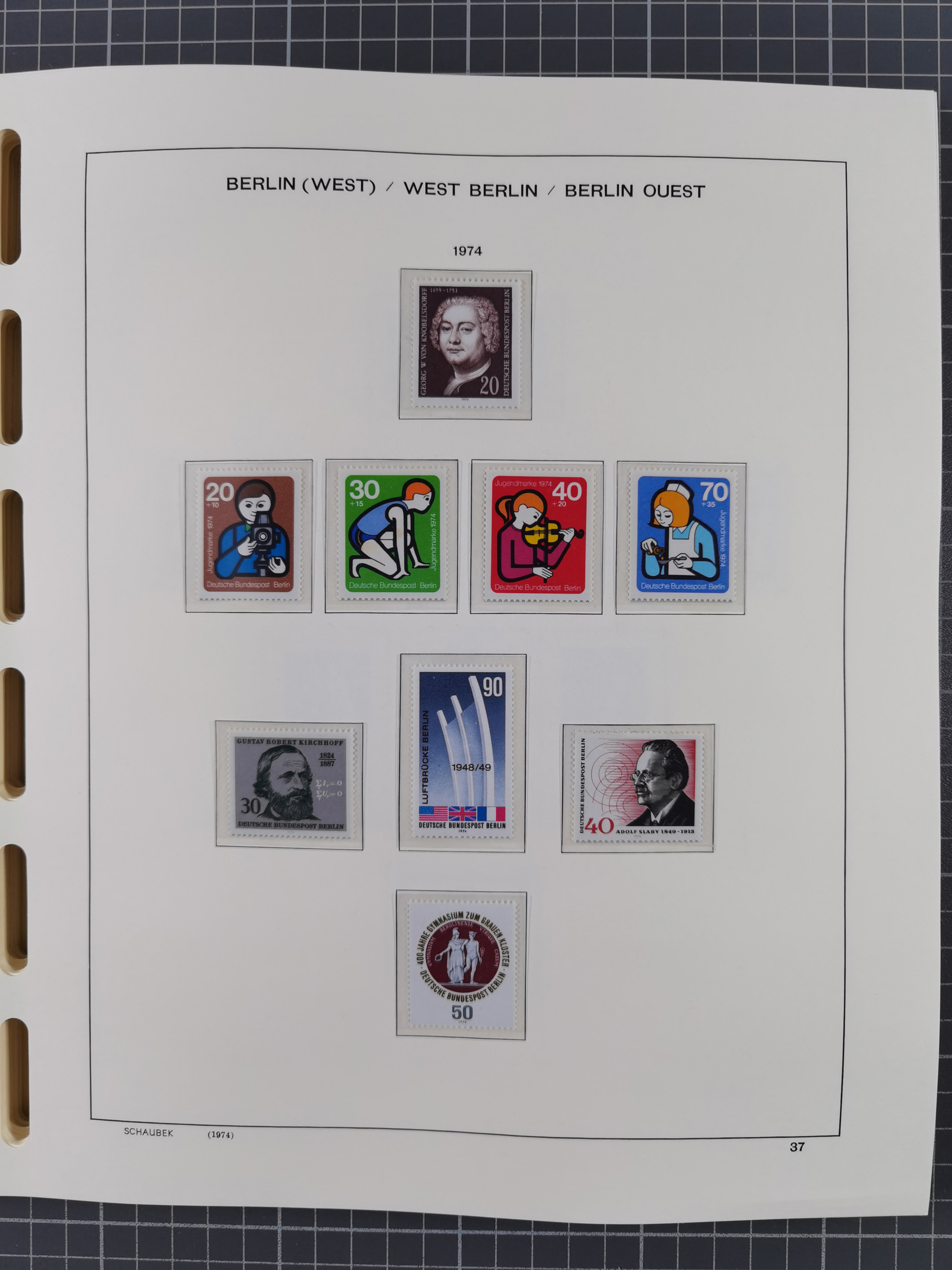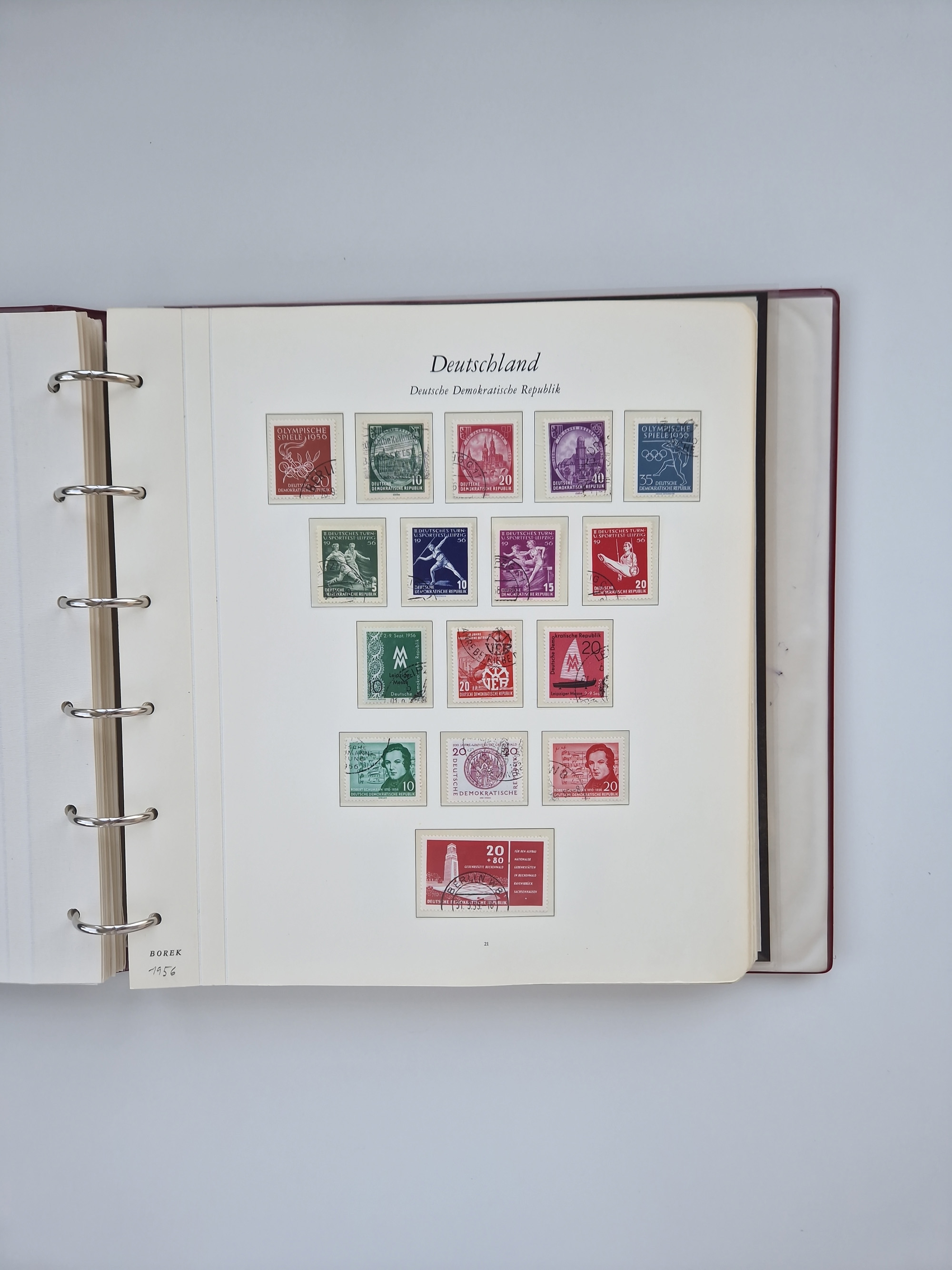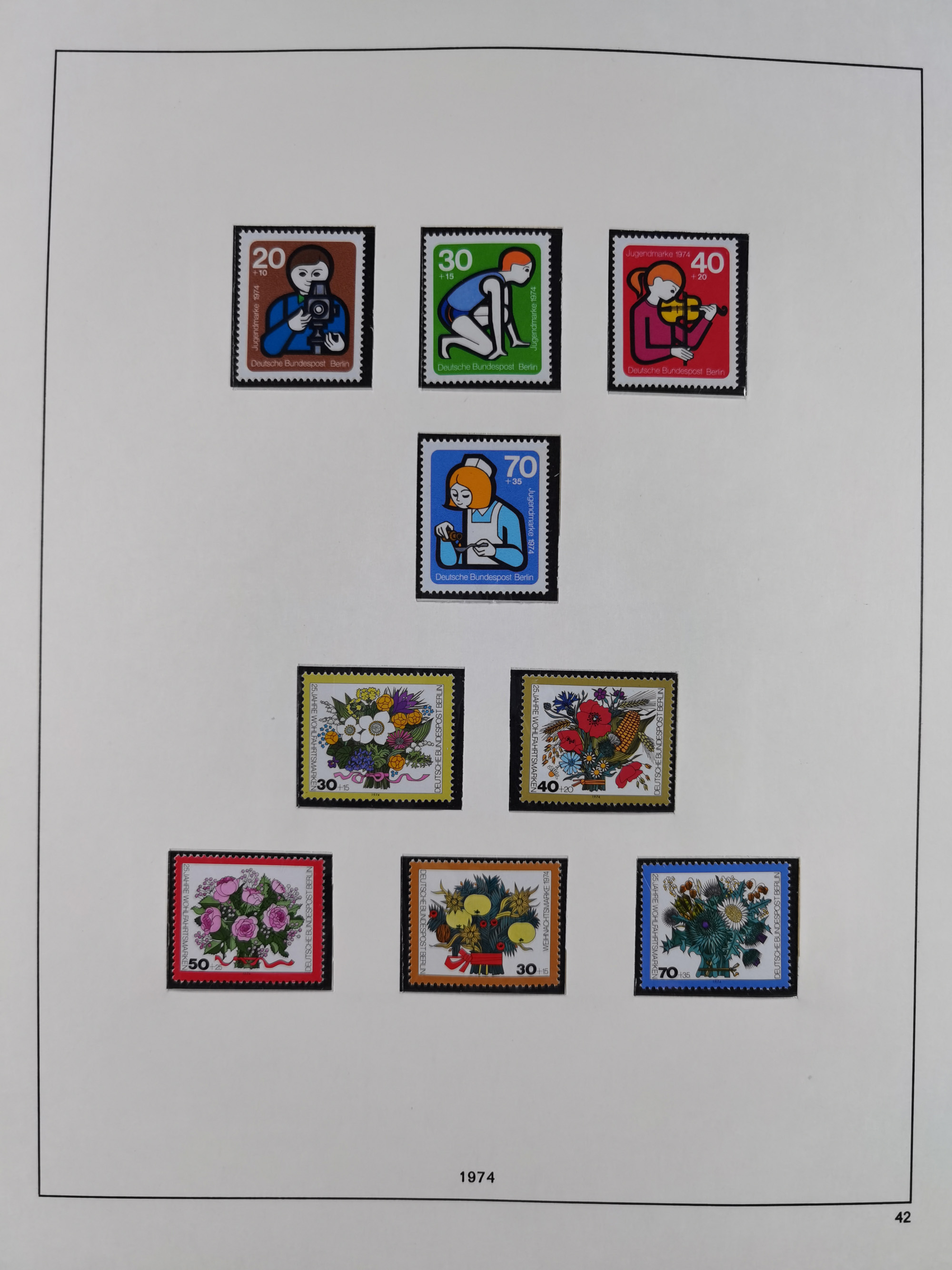 1949/90, gestempelte Bund- und Berlin-Sammlung mit Berlin ab Rotaufdruck ohne Bl. 1 augenscheinlich komplett. Dabei u.a. Mi.-Nr. 33-34 sign. Schlegel BPP bzw. D. Schlegel BPP und Mi.-Nr. 68-70 (sign. Schlegel BPP), dazu fünf Jahrbücher