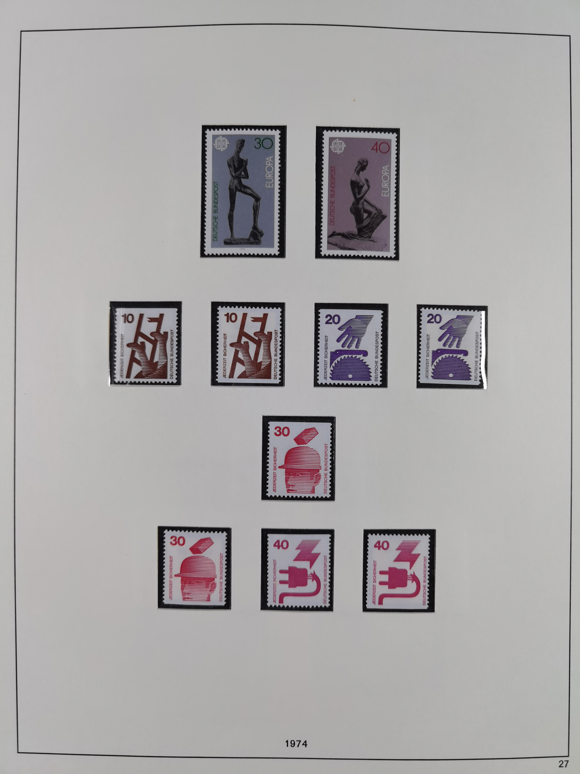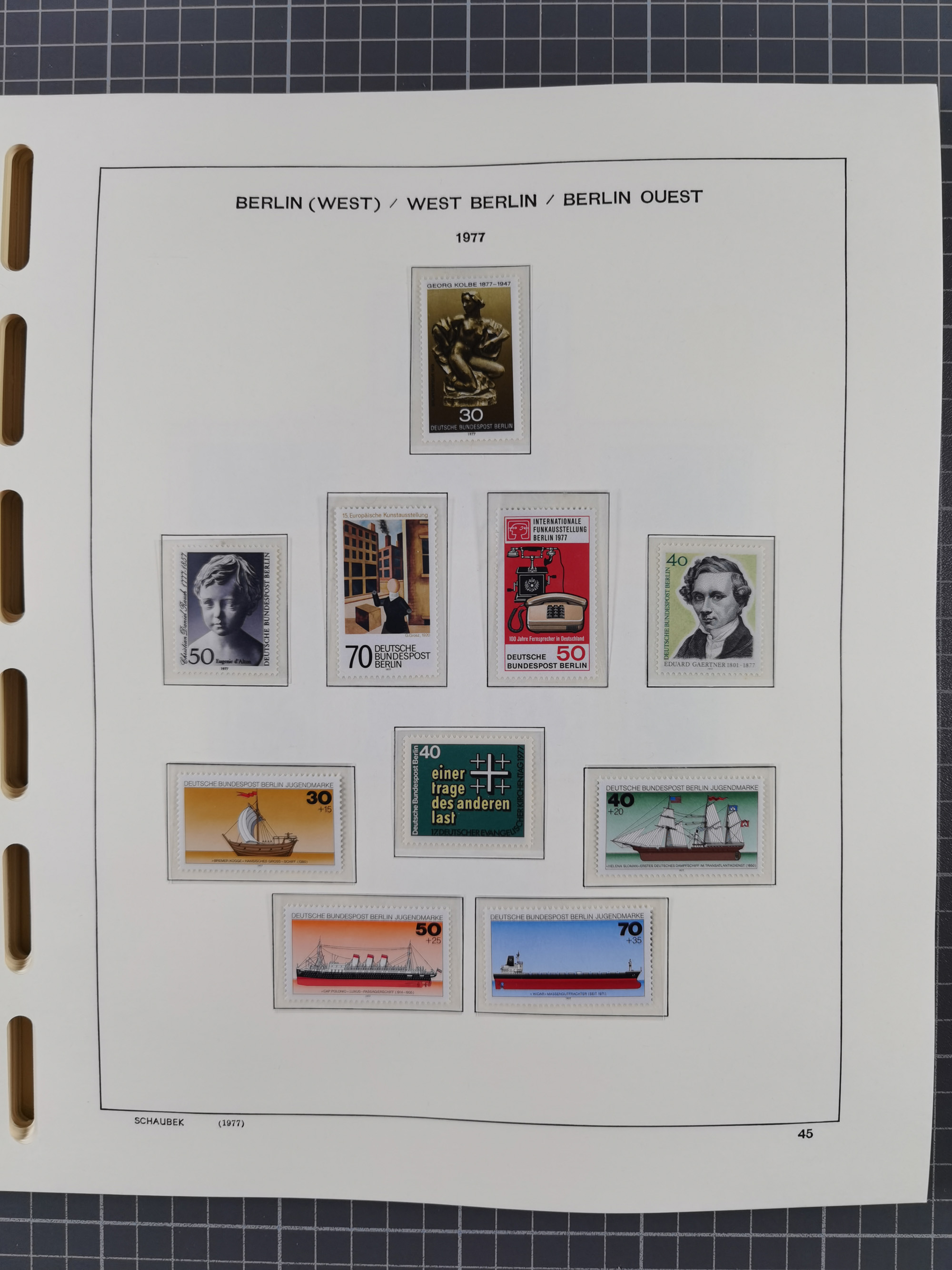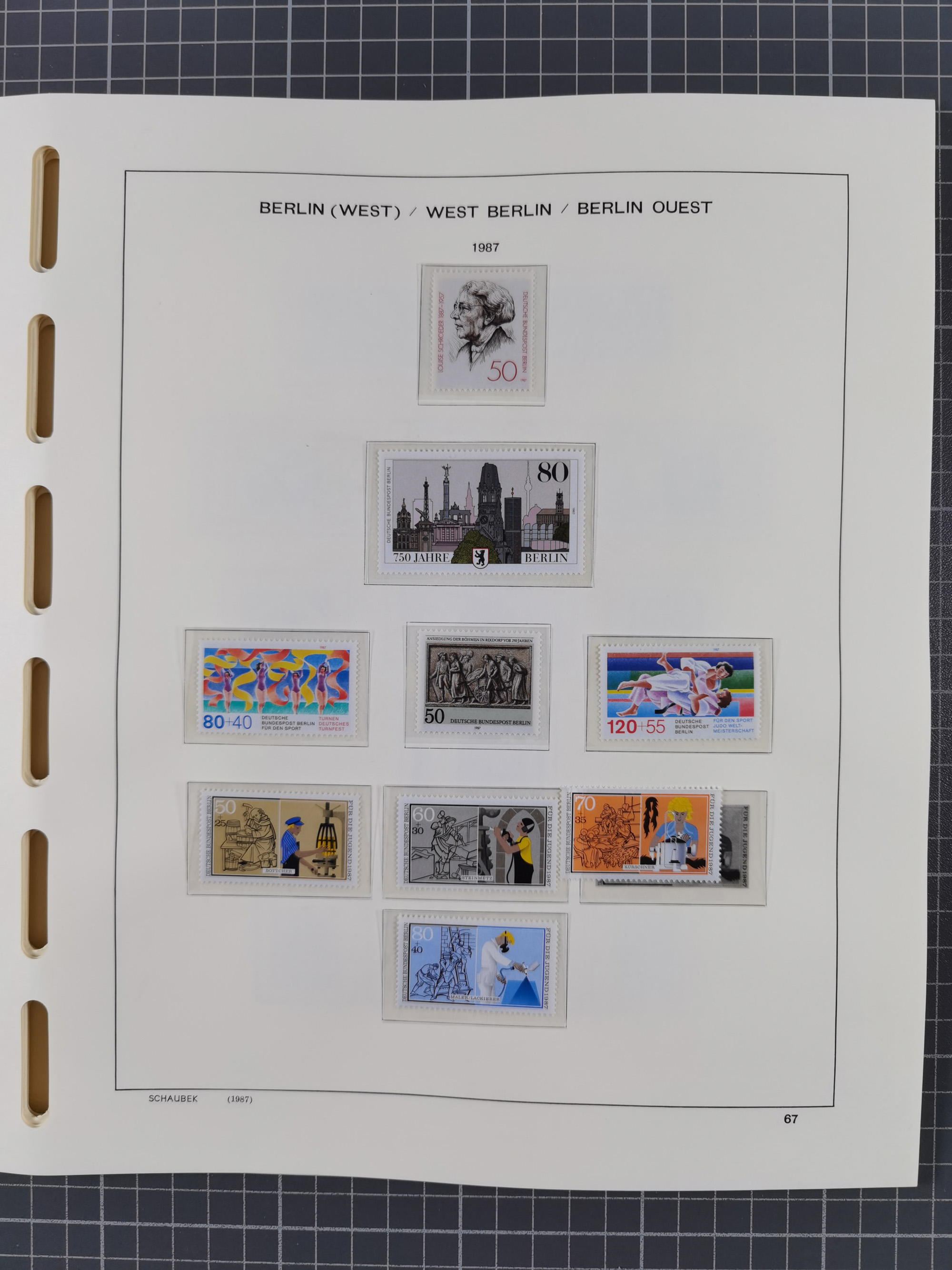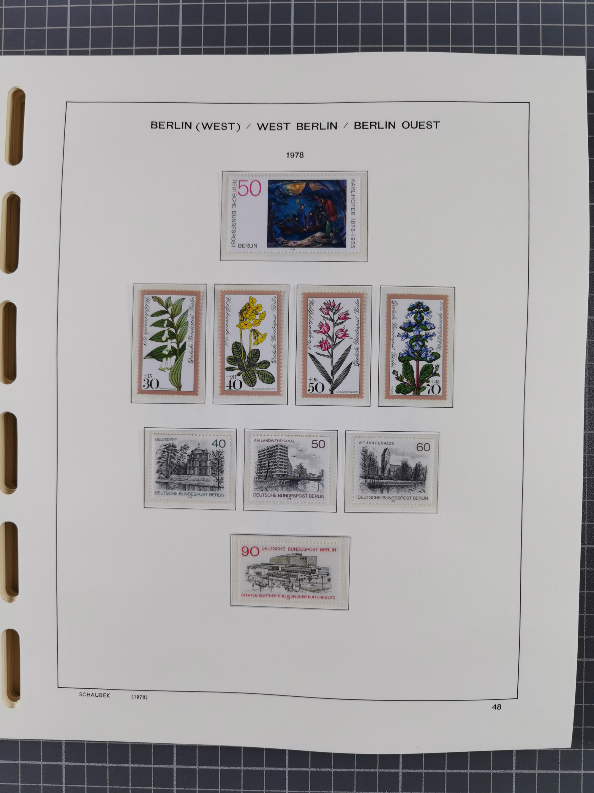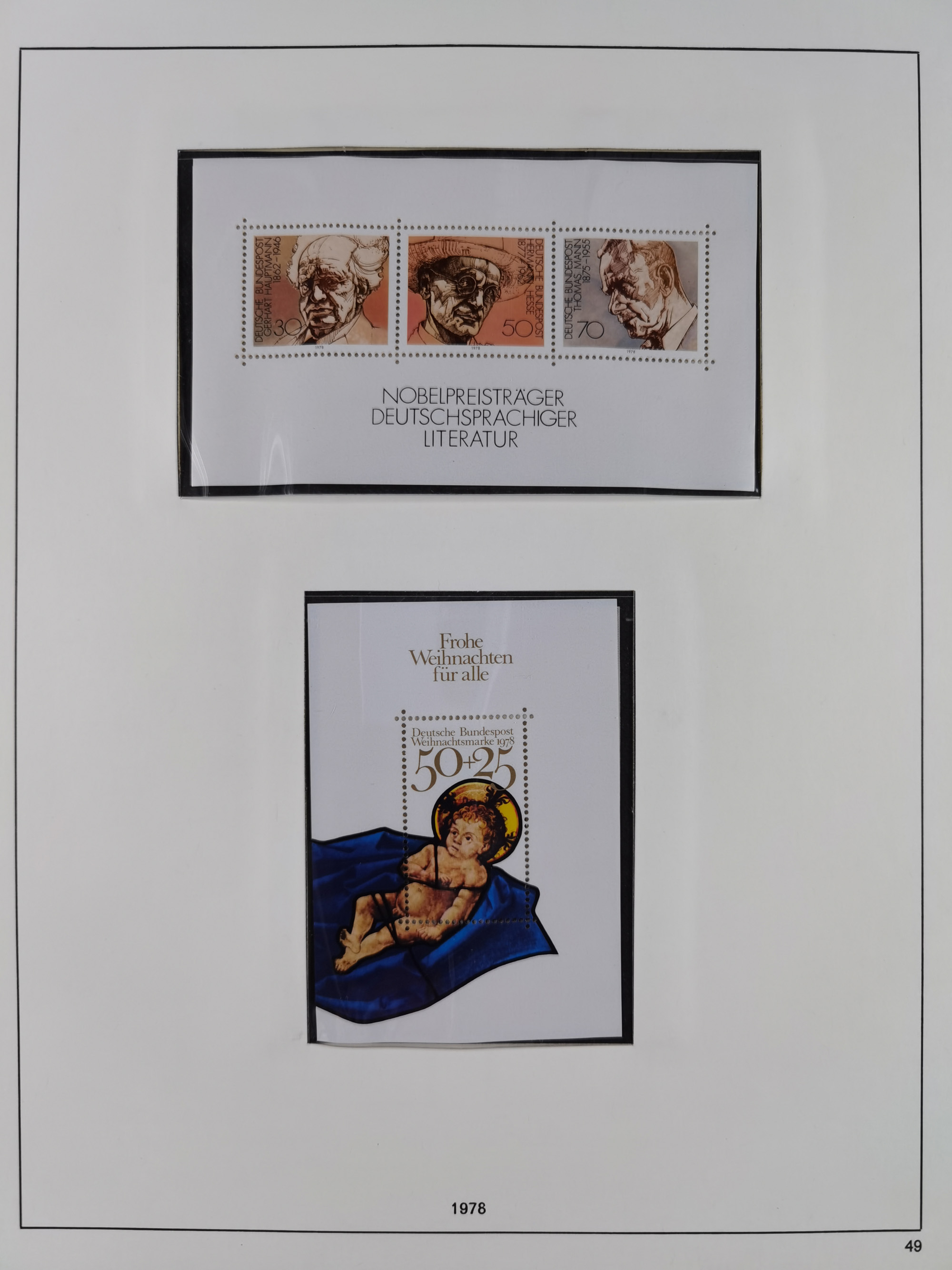 1949/90, gestempelte Bund- und Berlin-Sammlung mit Berlin ab Rotaufdruck ohne Bl. 1 augenscheinlich komplett. Dabei u.a. Mi.-Nr. 33-34 sign. Schlegel BPP bzw. D. Schlegel BPP und Mi.-Nr. 68-70 (sign. Schlegel BPP), dazu fünf Jahrbücher
