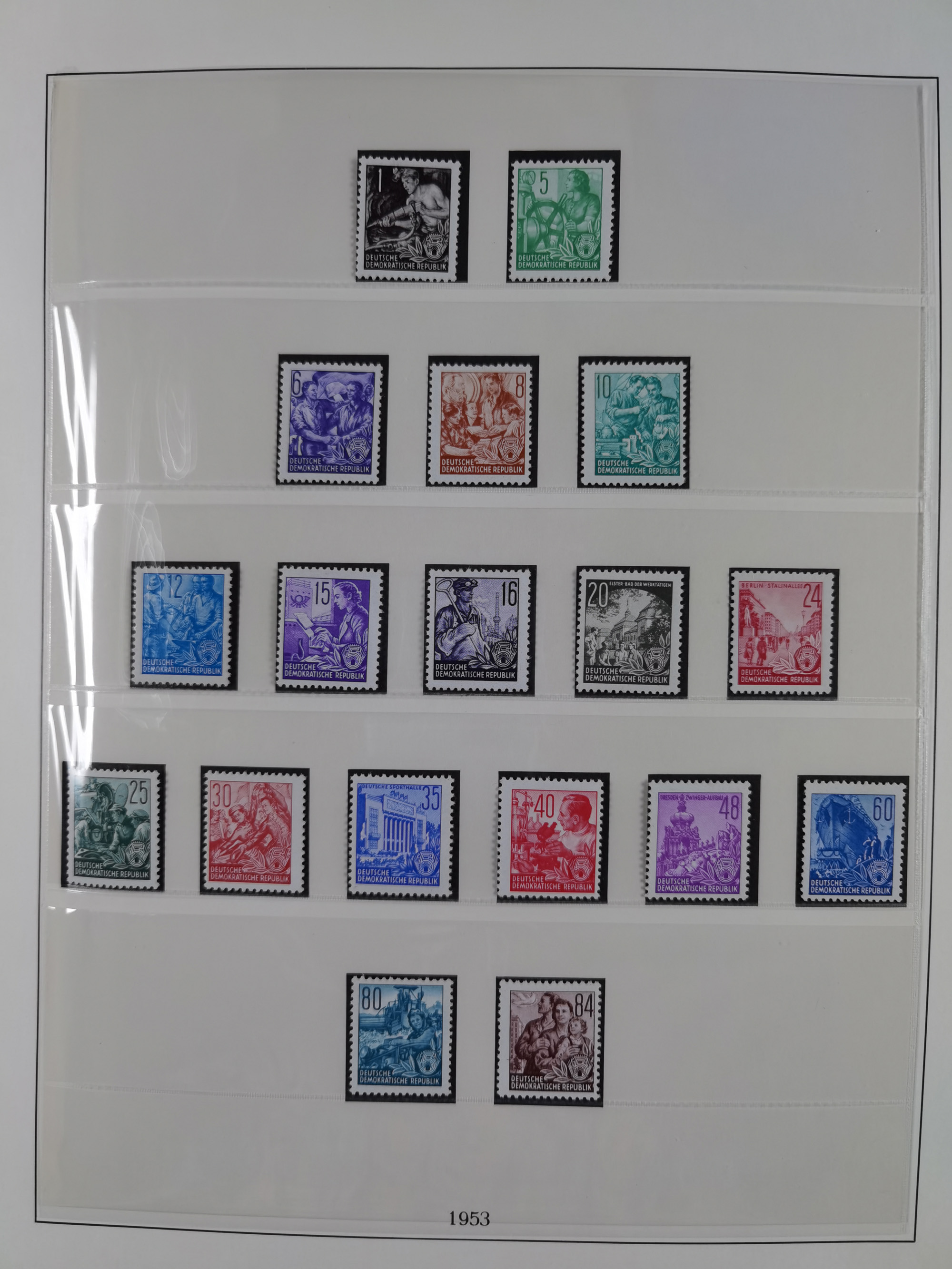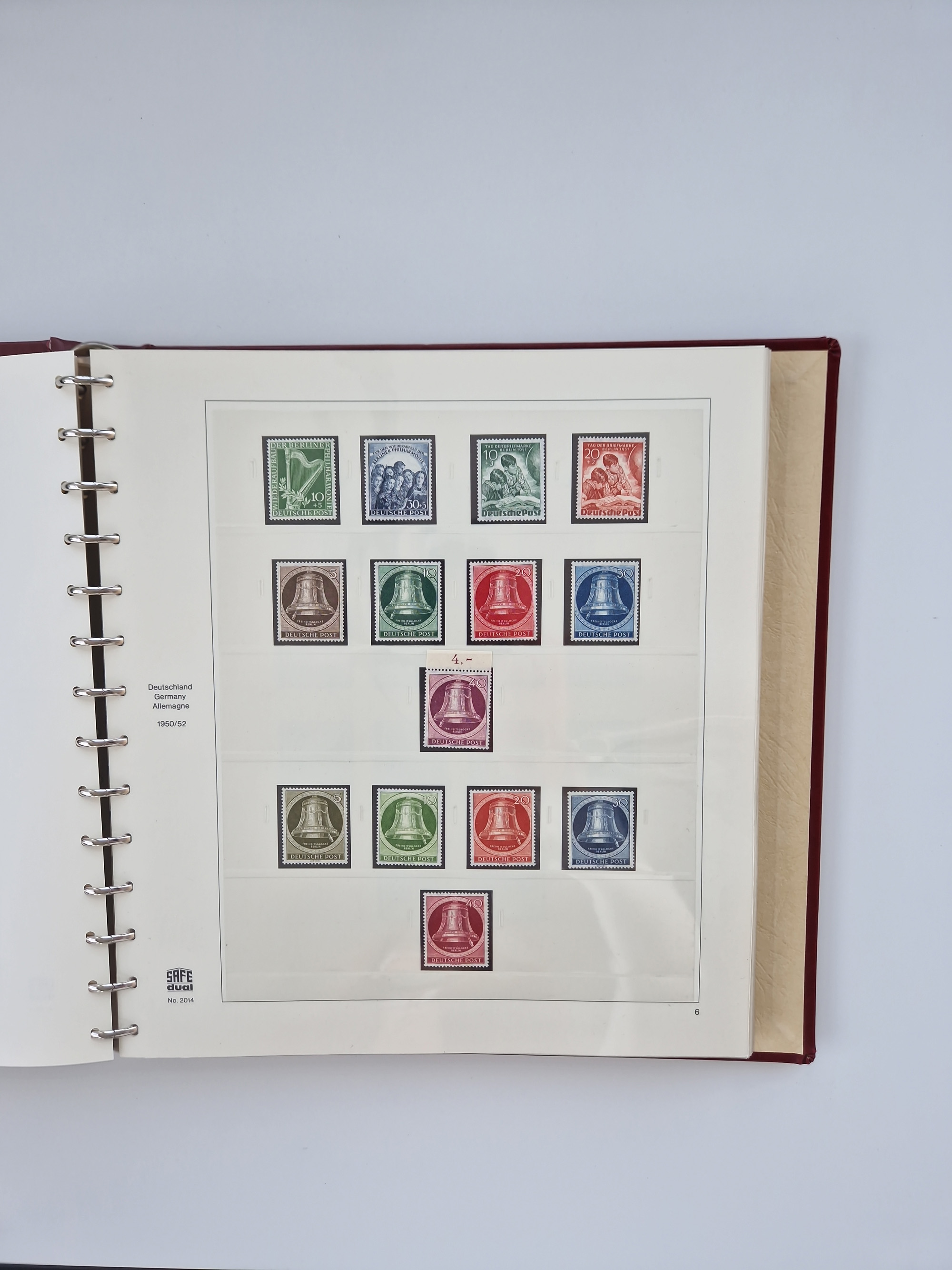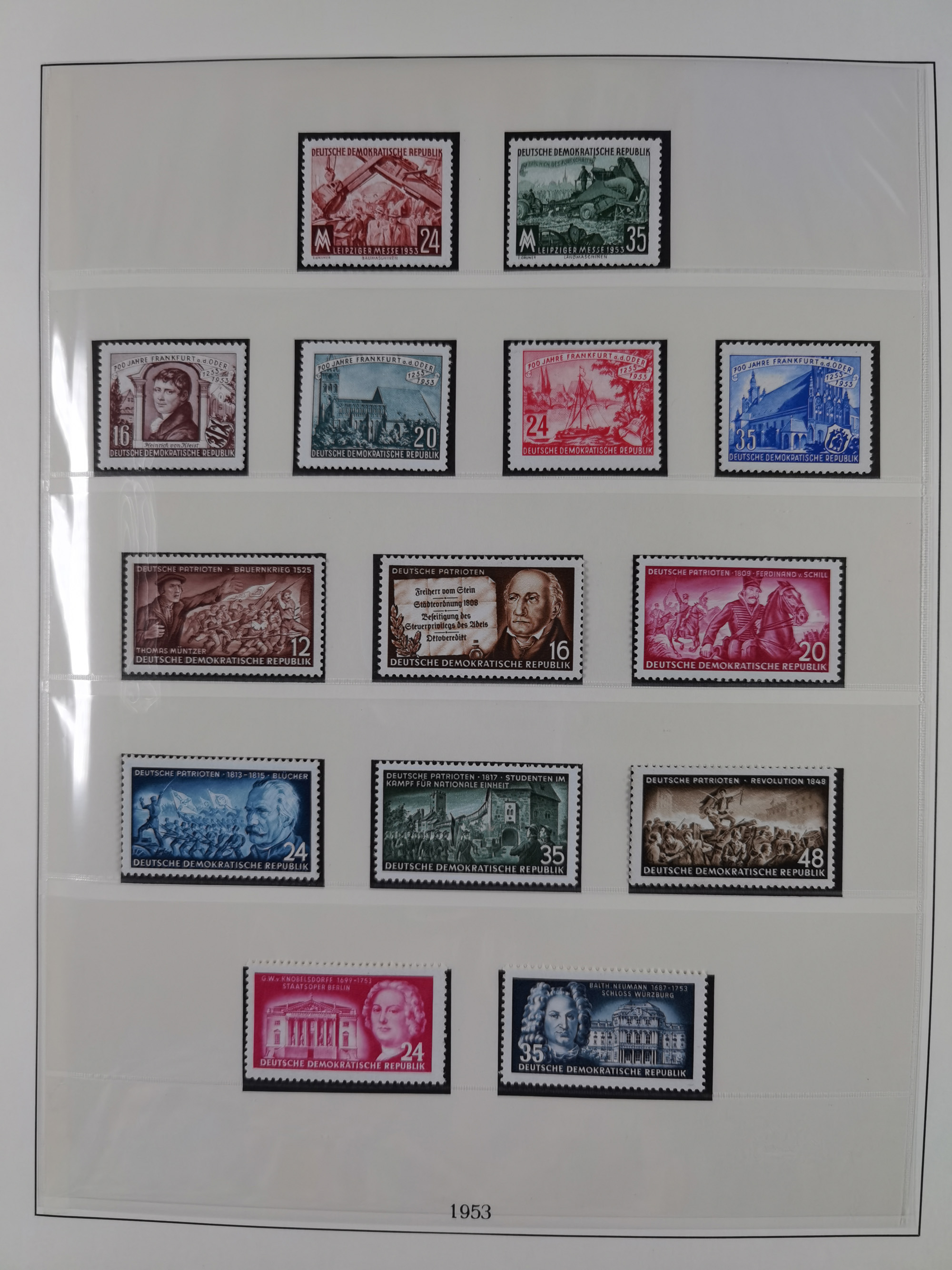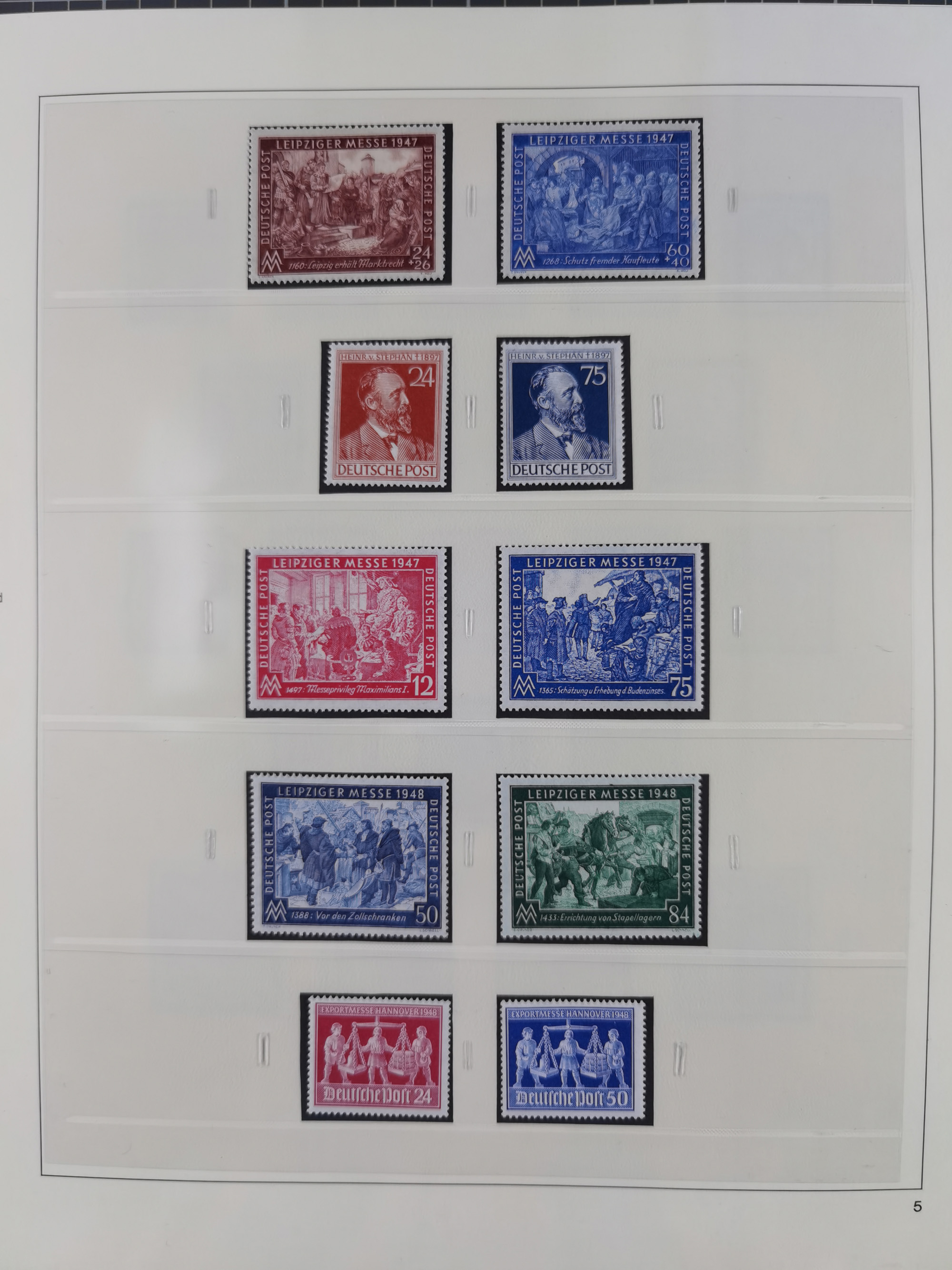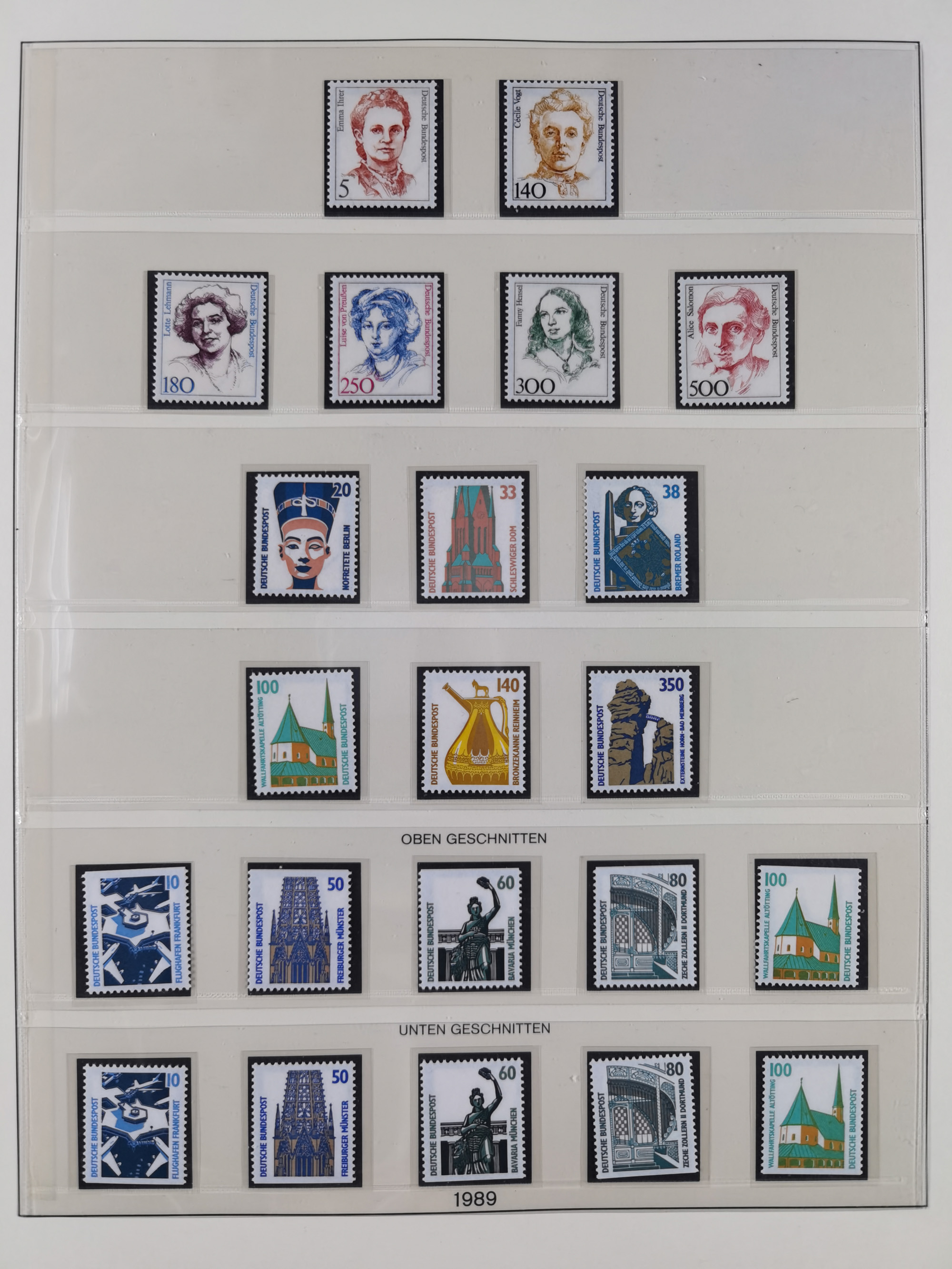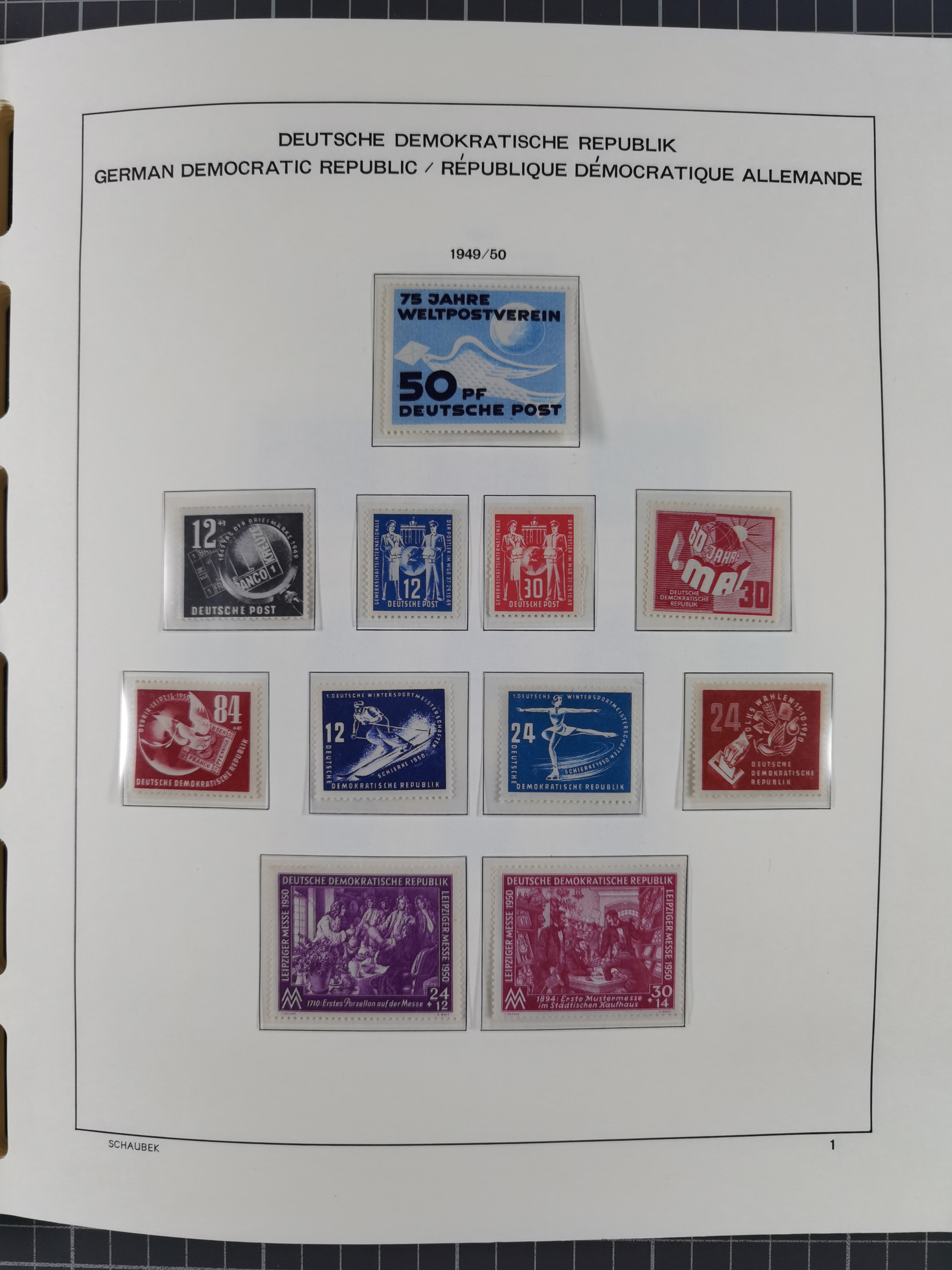 1948/90, in den Hauptnummern bis 1960 komplette postfrische Sammlungen Berlin 1948-90 inkl. Schwarzaufdruck, Rotaufdruck sign. Dub und Block 1, Bundesrepublik 1949-72 inkl. Posthornsatz, sowie DDR 1949-71 inkl. ausgiebigen Teilen Zusammendrucke, es fehlen bei den späten modernen Ausgaben teils einzelne Werte oder Sätze, gute Erhaltung, Alben mit Lagerspuren, in 11 Vordruckalben
