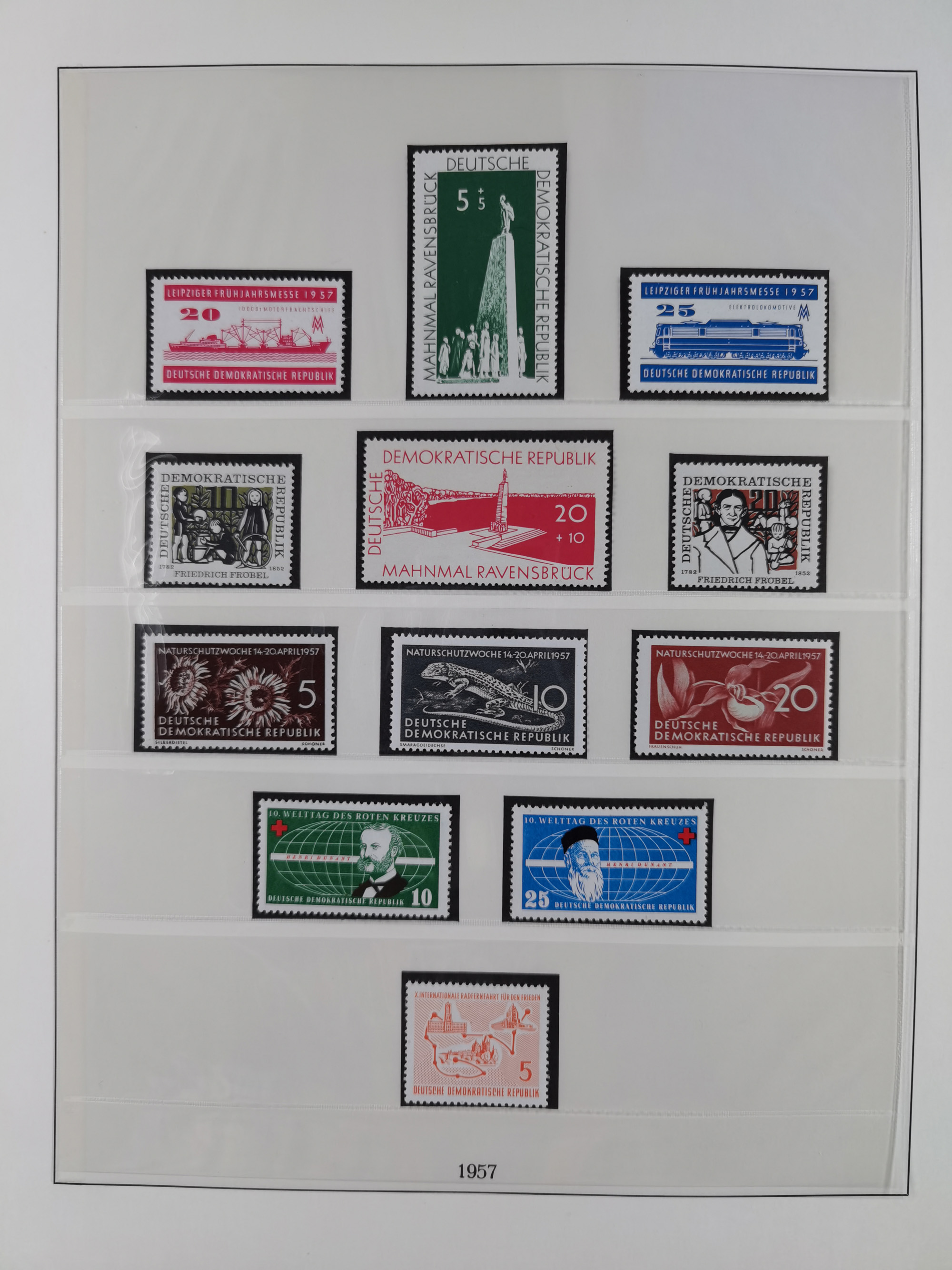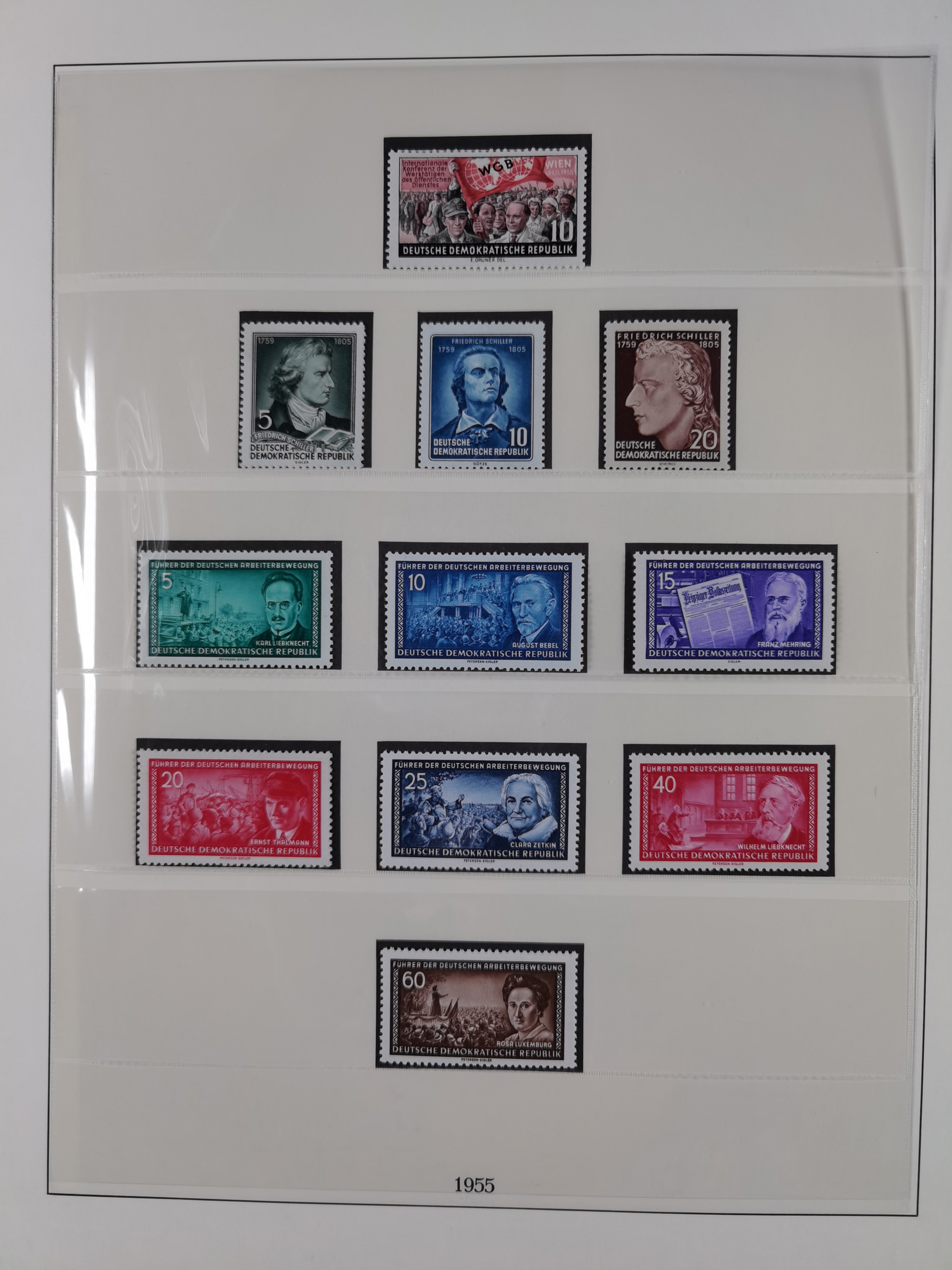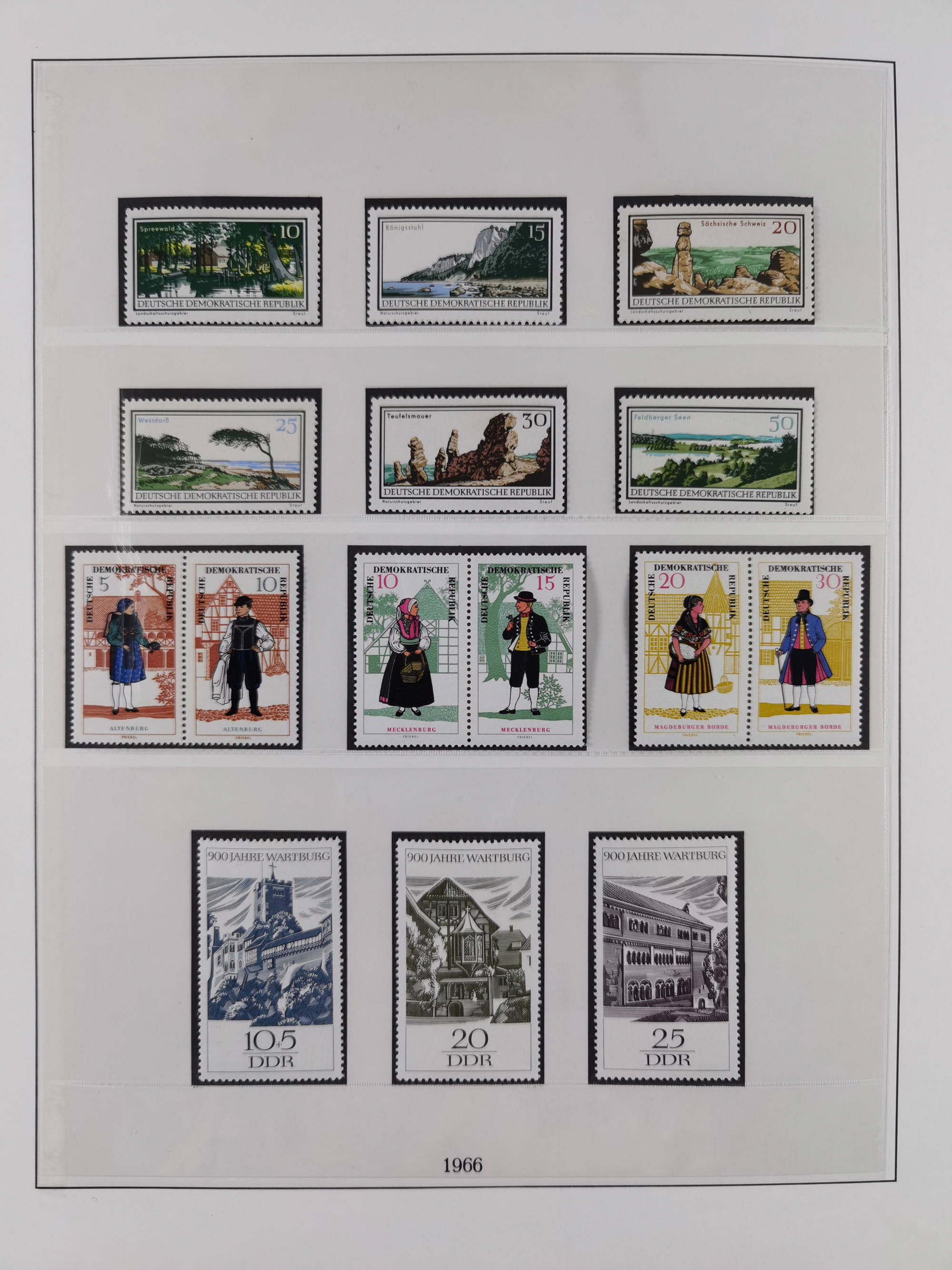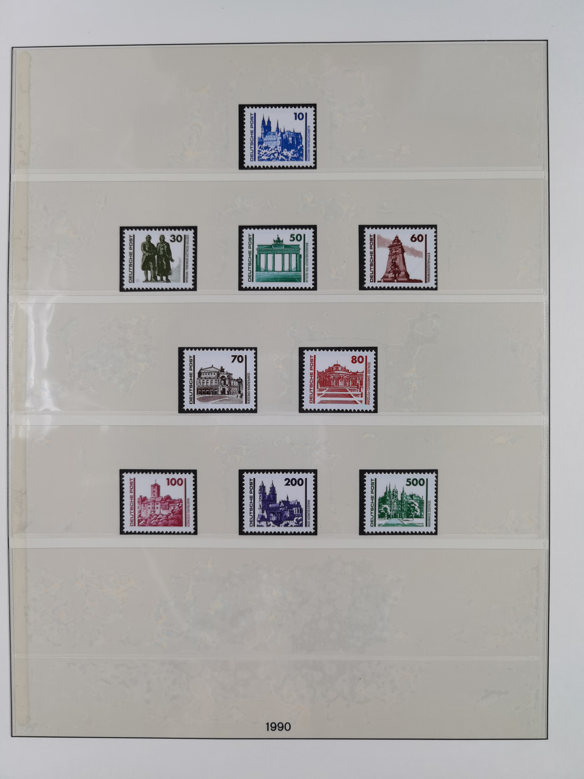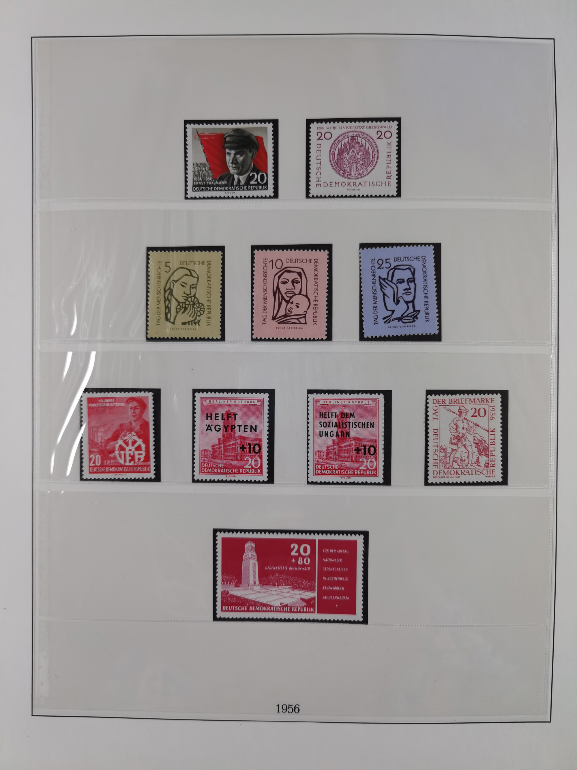 1948/90, in den Hauptnummern bis 1960 komplette postfrische Sammlungen Berlin 1948-90 inkl. Schwarzaufdruck, Rotaufdruck sign. Dub und Block 1, Bundesrepublik 1949-72 inkl. Posthornsatz, sowie DDR 1949-71 inkl. ausgiebigen Teilen Zusammendrucke, es fehlen bei den späten modernen Ausgaben teils einzelne Werte oder Sätze, gute Erhaltung, Alben mit Lagerspuren, in 11 Vordruckalben