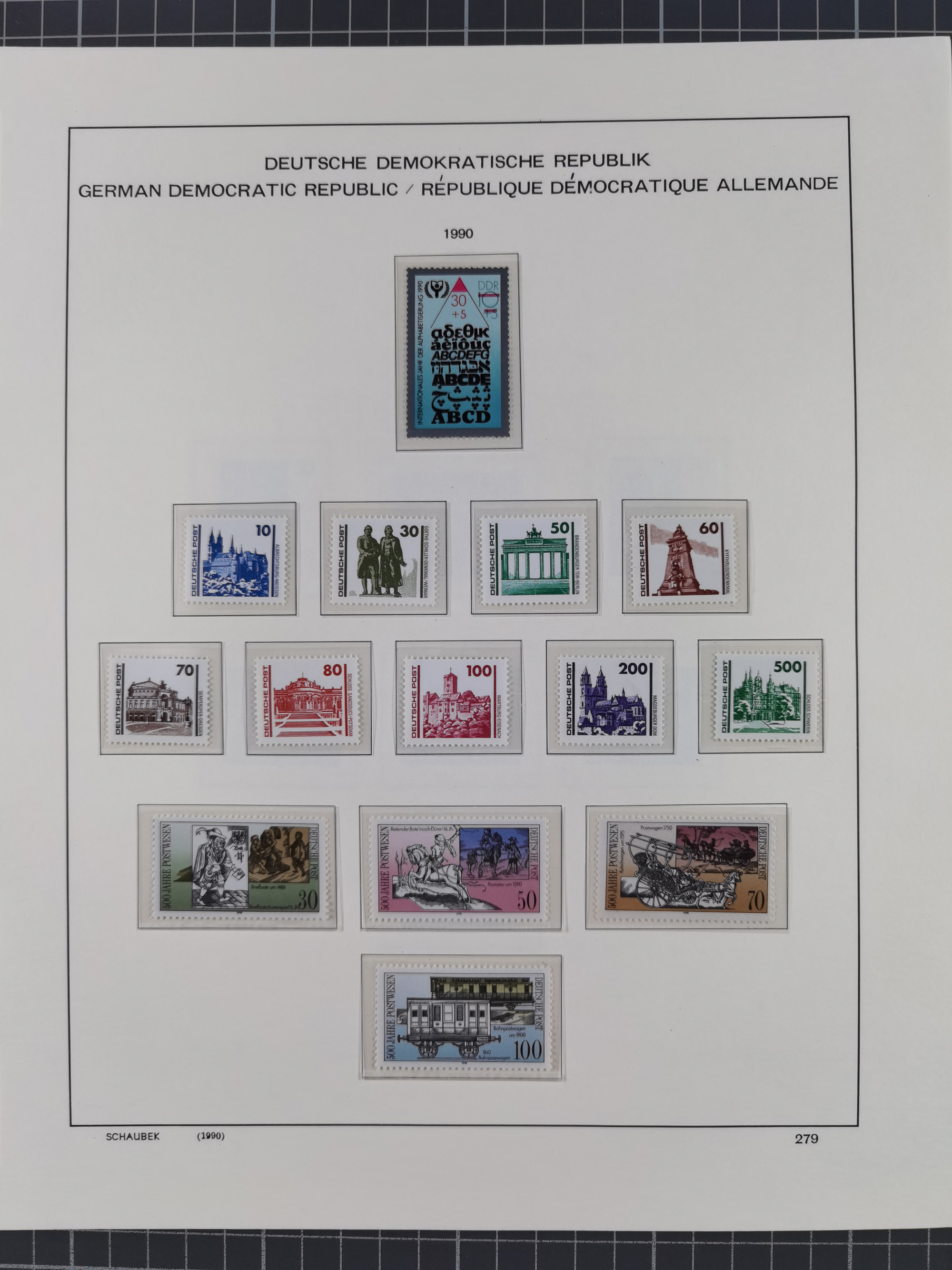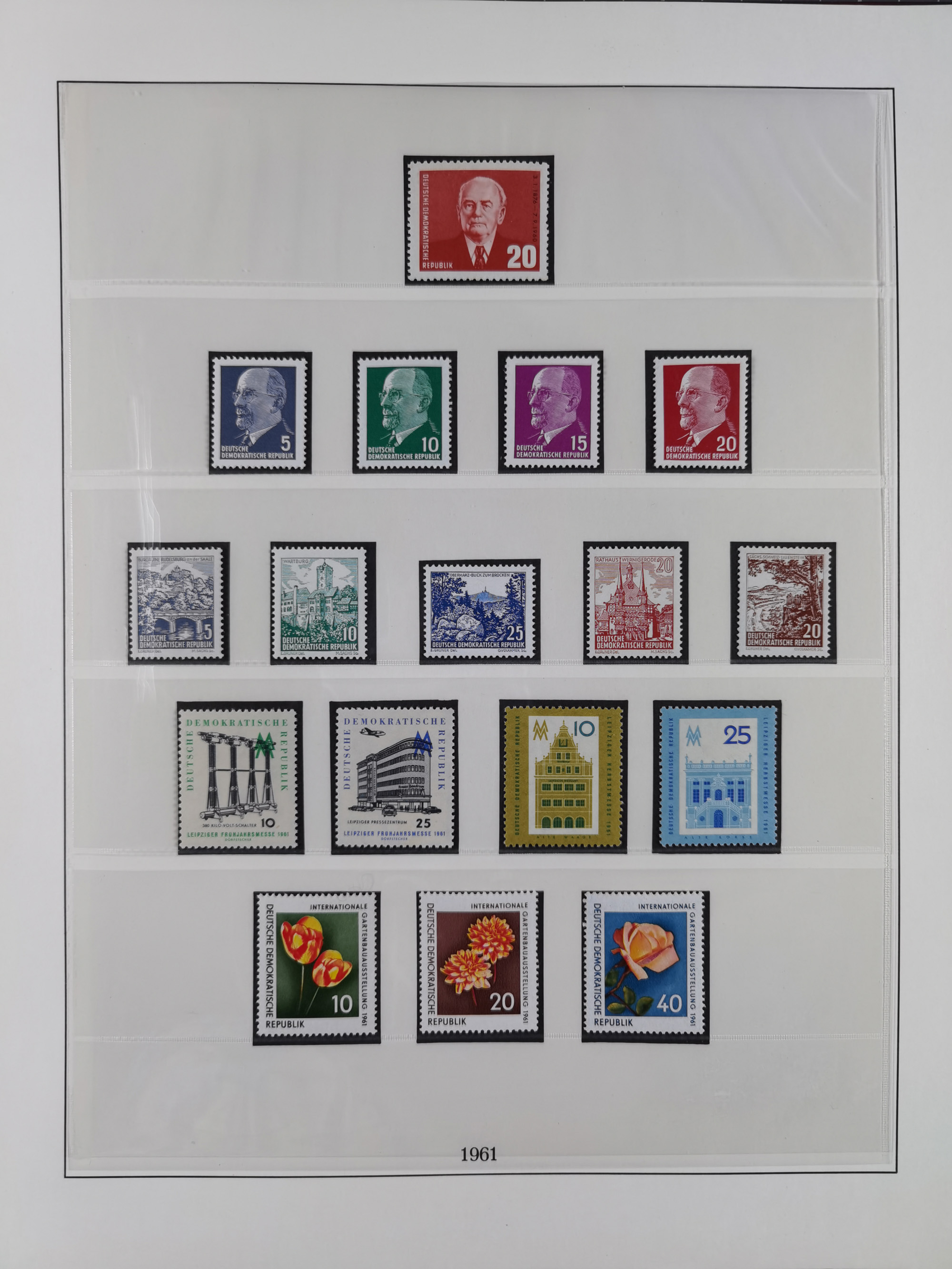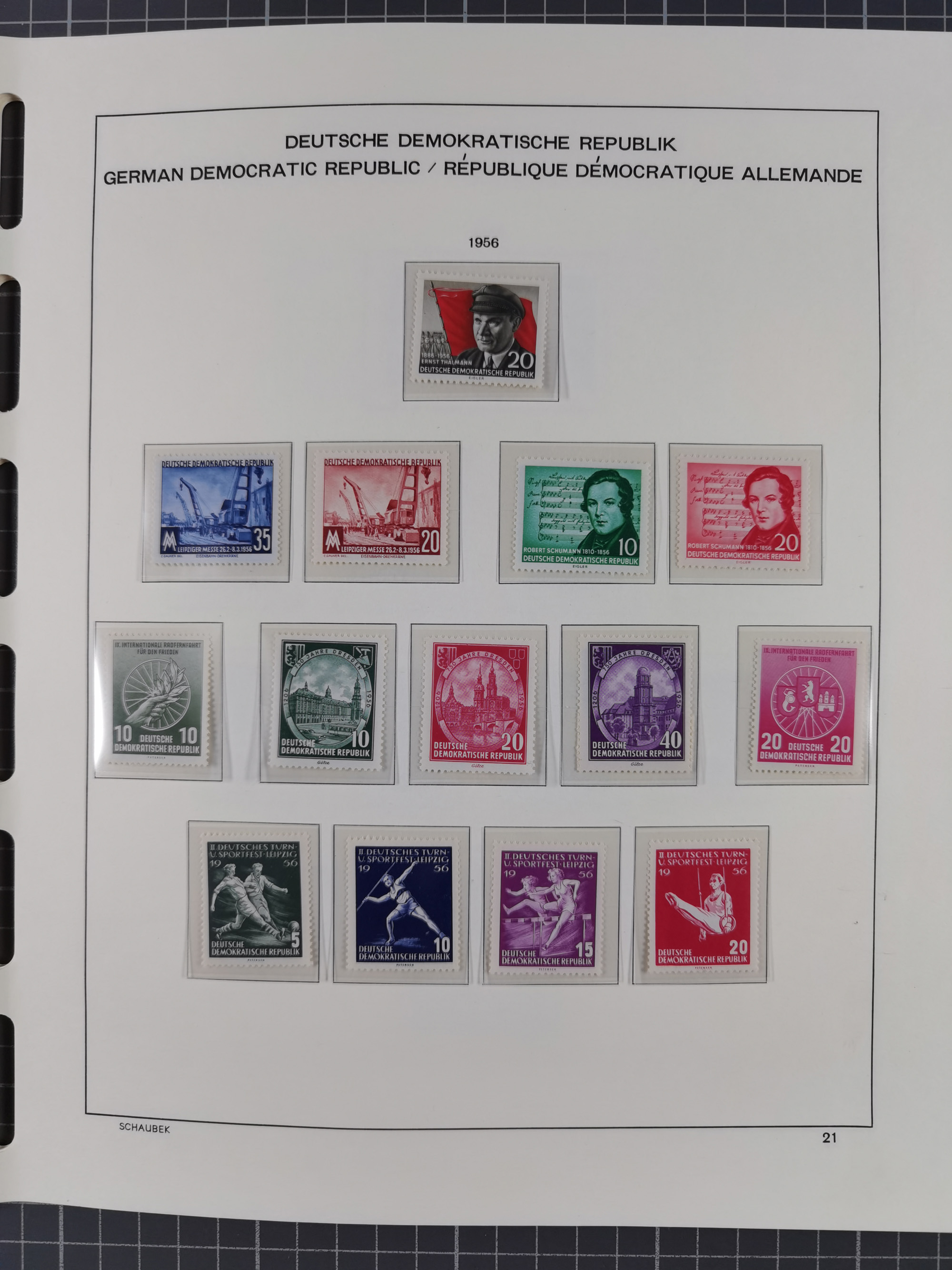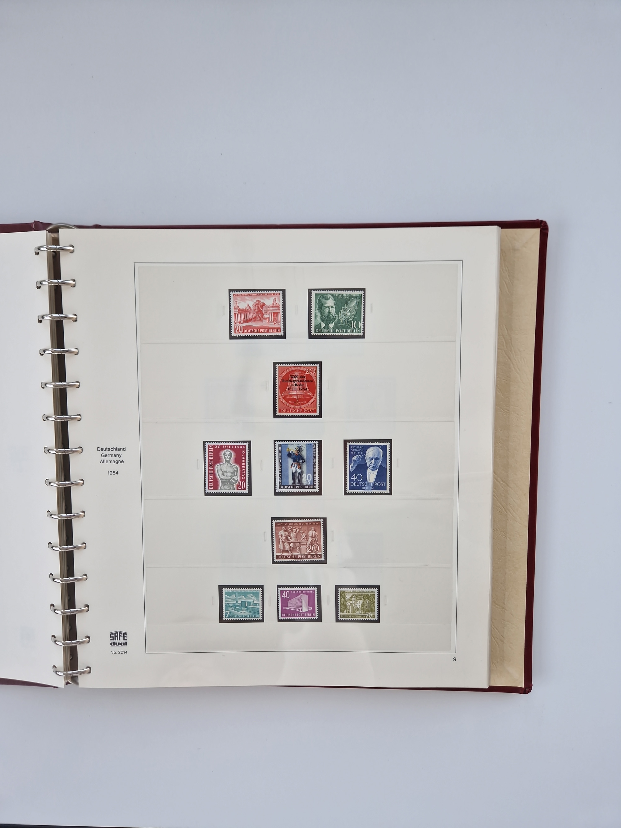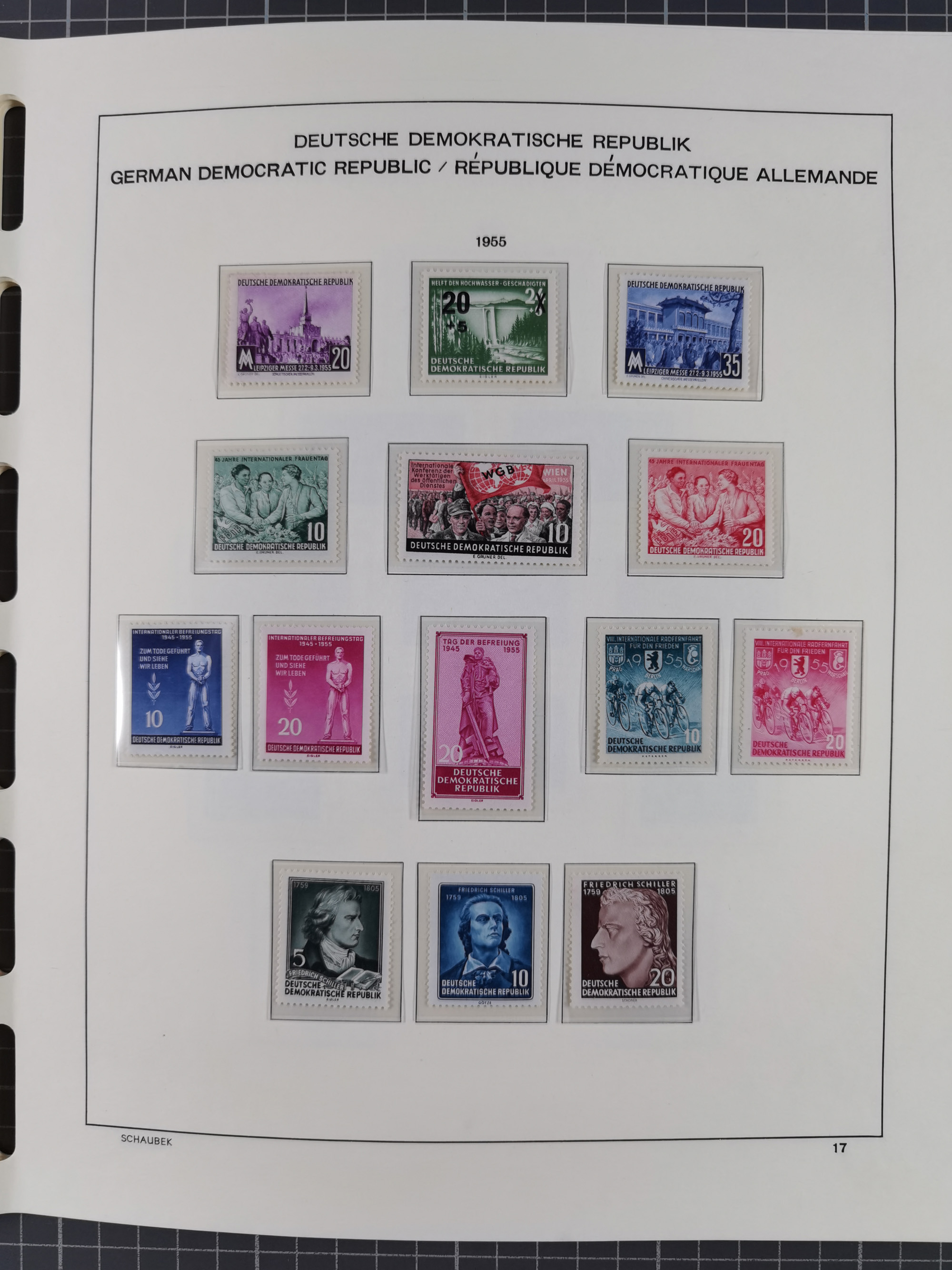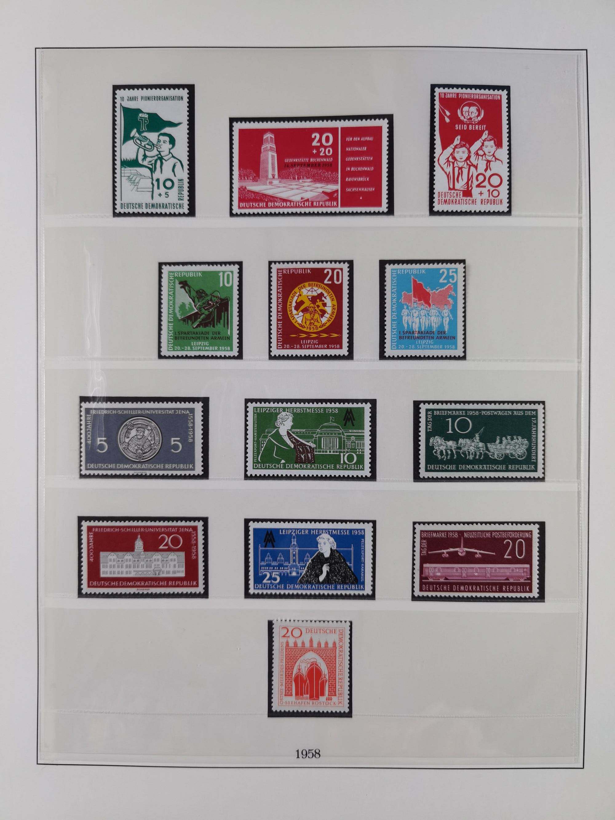 1948/90, in den Hauptnummern bis 1960 komplette postfrische Sammlungen Berlin 1948-90 inkl. Schwarzaufdruck, Rotaufdruck sign. Dub und Block 1, Bundesrepublik 1949-72 inkl. Posthornsatz, sowie DDR 1949-71 inkl. ausgiebigen Teilen Zusammendrucke, es fehlen bei den späten modernen Ausgaben teils einzelne Werte oder Sätze, gute Erhaltung, Alben mit Lagerspuren, in 11 Vordruckalben