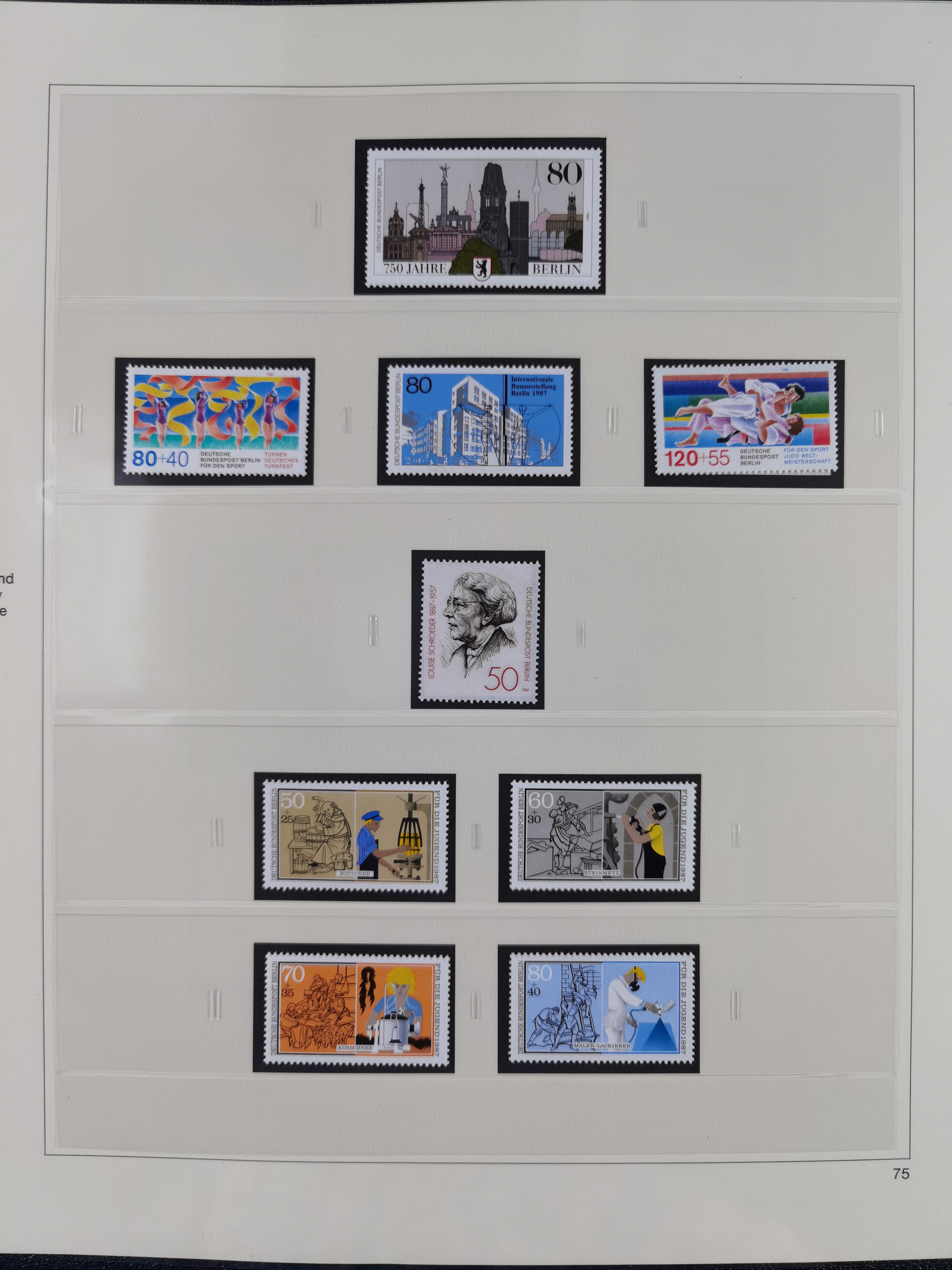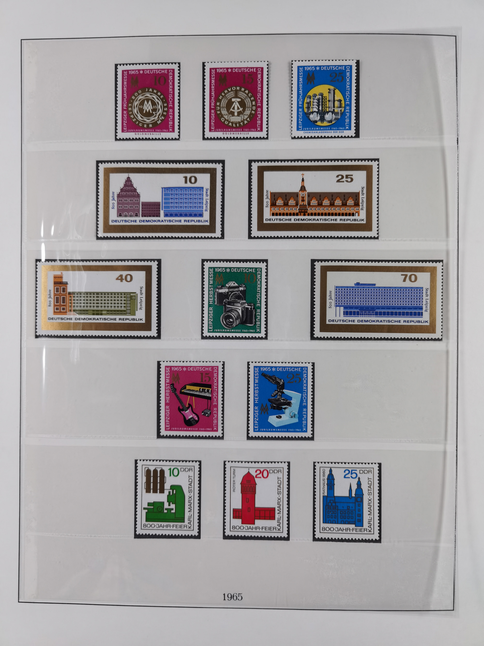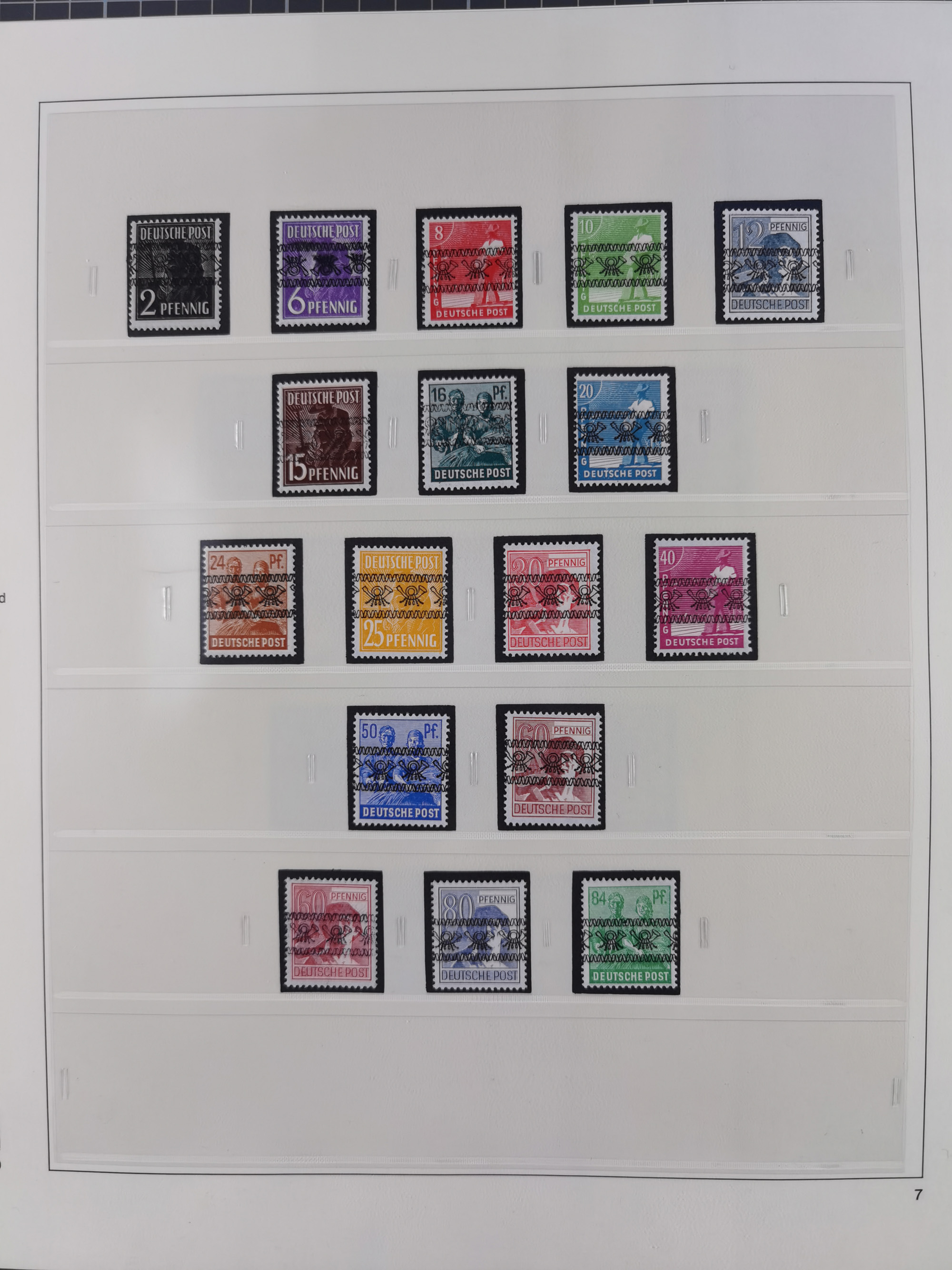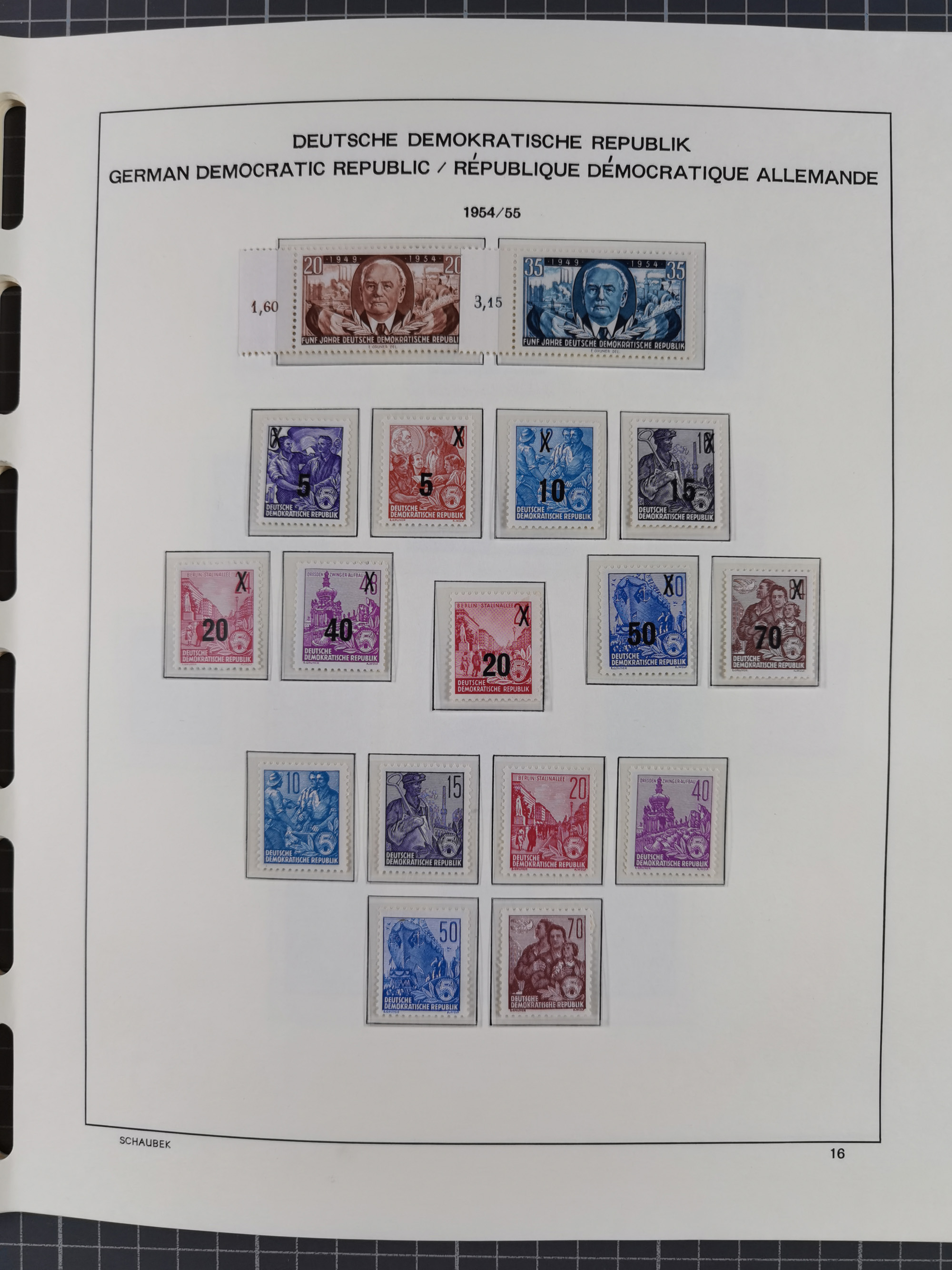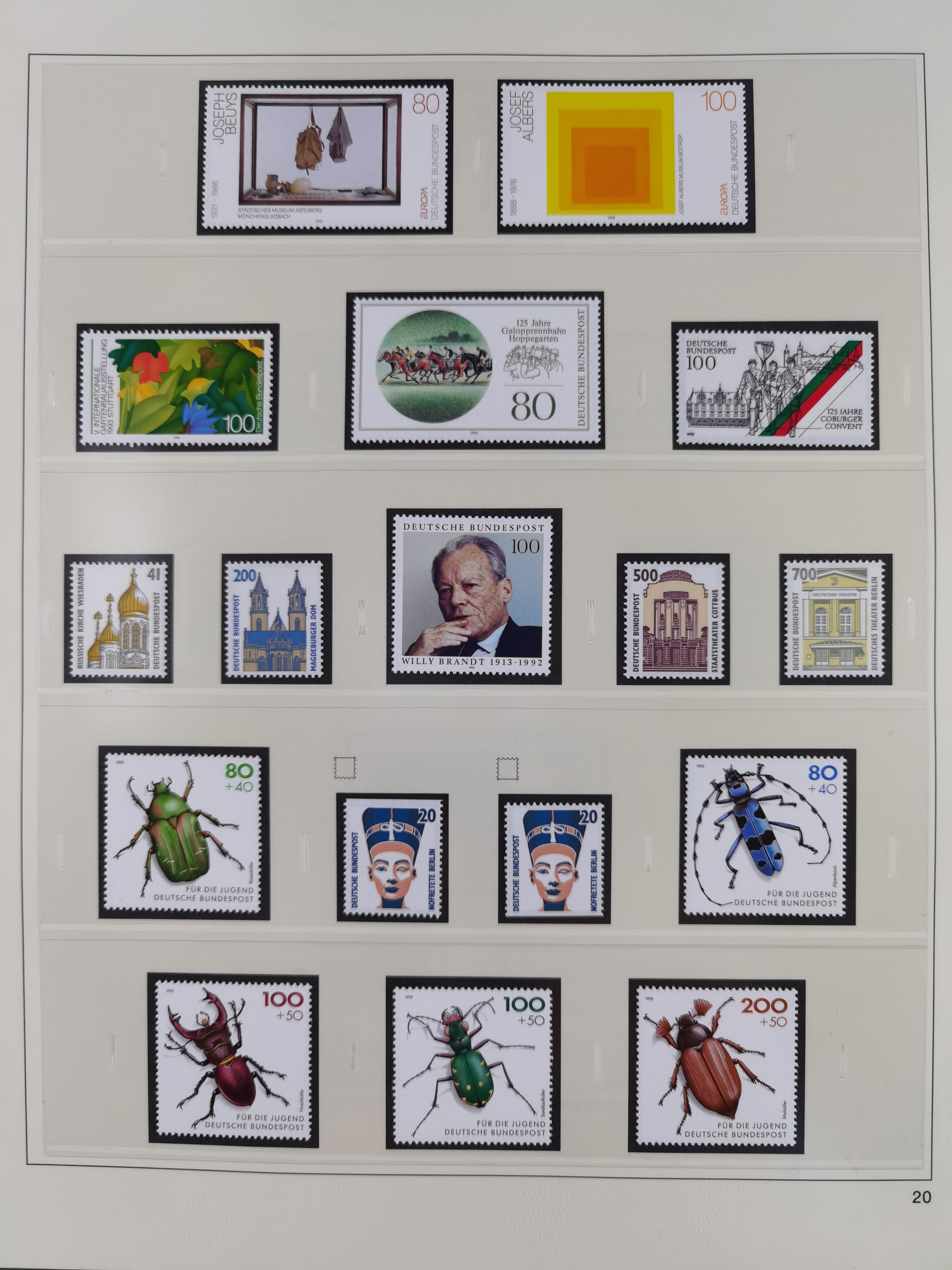 1948/90, in den Hauptnummern bis 1960 komplette postfrische Sammlungen Berlin 1948-90 inkl. Schwarzaufdruck, Rotaufdruck sign. Dub und Block 1, Bundesrepublik 1949-72 inkl. Posthornsatz, sowie DDR 1949-71 inkl. ausgiebigen Teilen Zusammendrucke, es fehlen bei den späten modernen Ausgaben teils einzelne Werte oder Sätze, gute Erhaltung, Alben mit Lagerspuren, in 11 Vordruckalben
