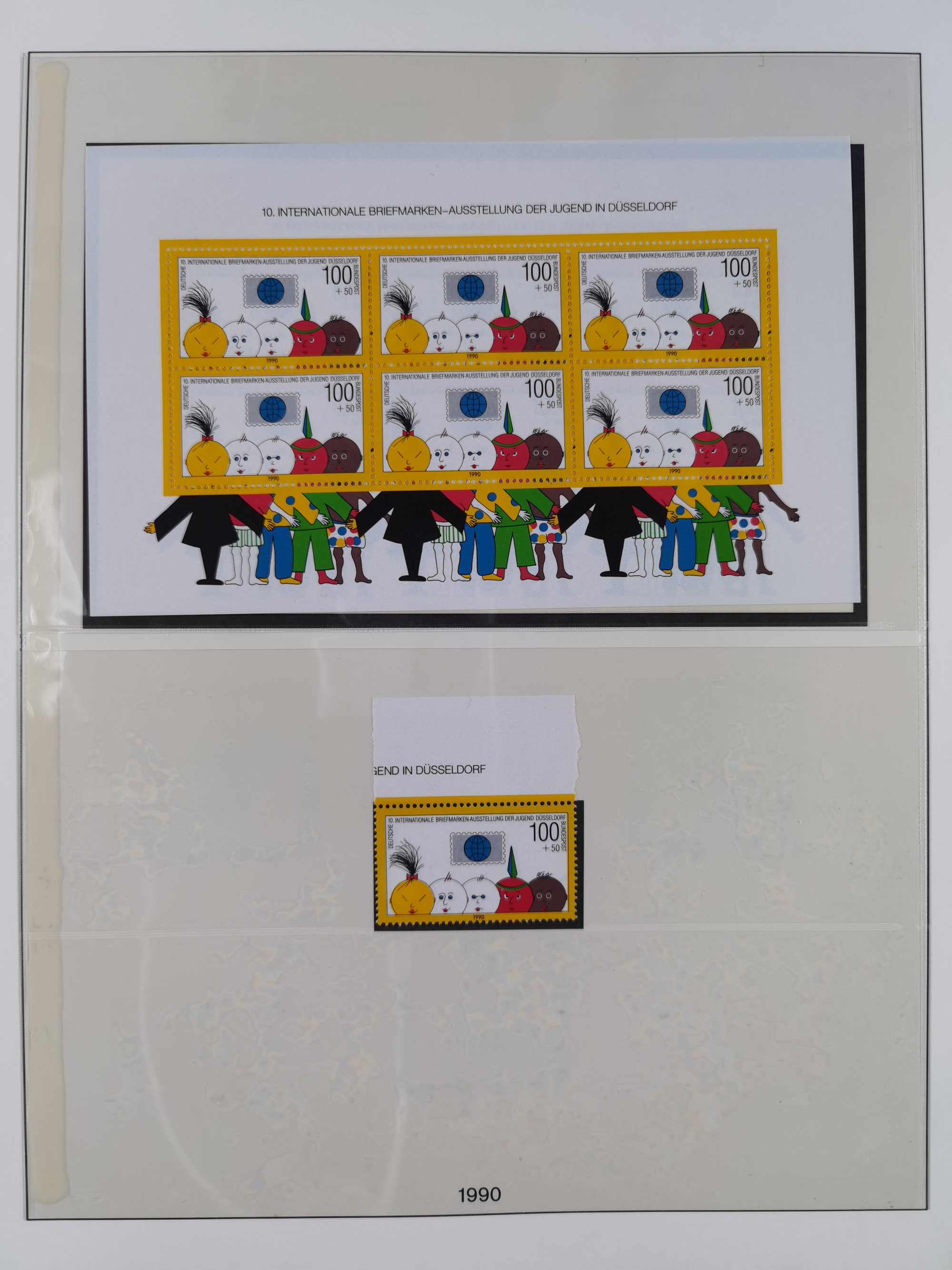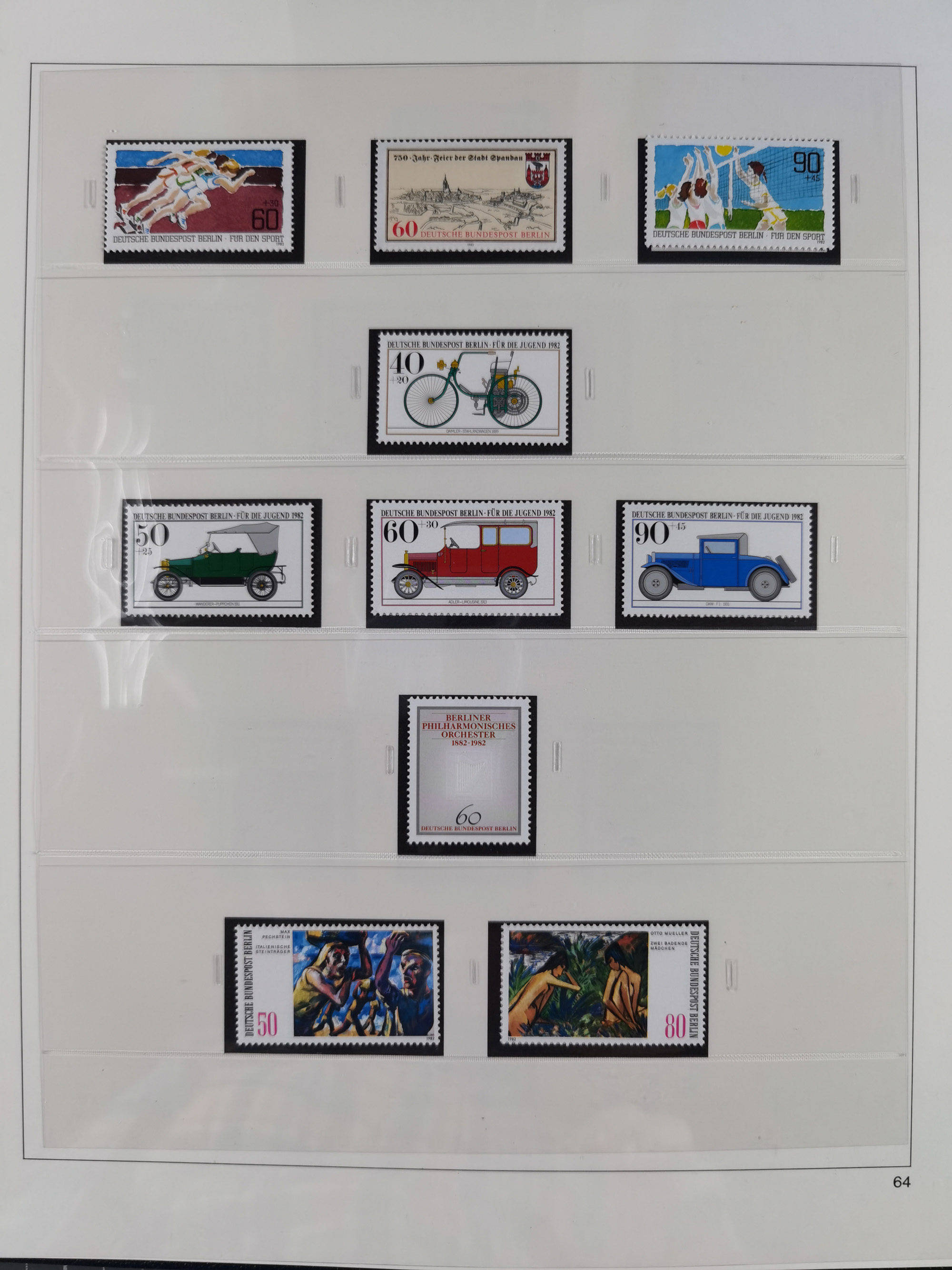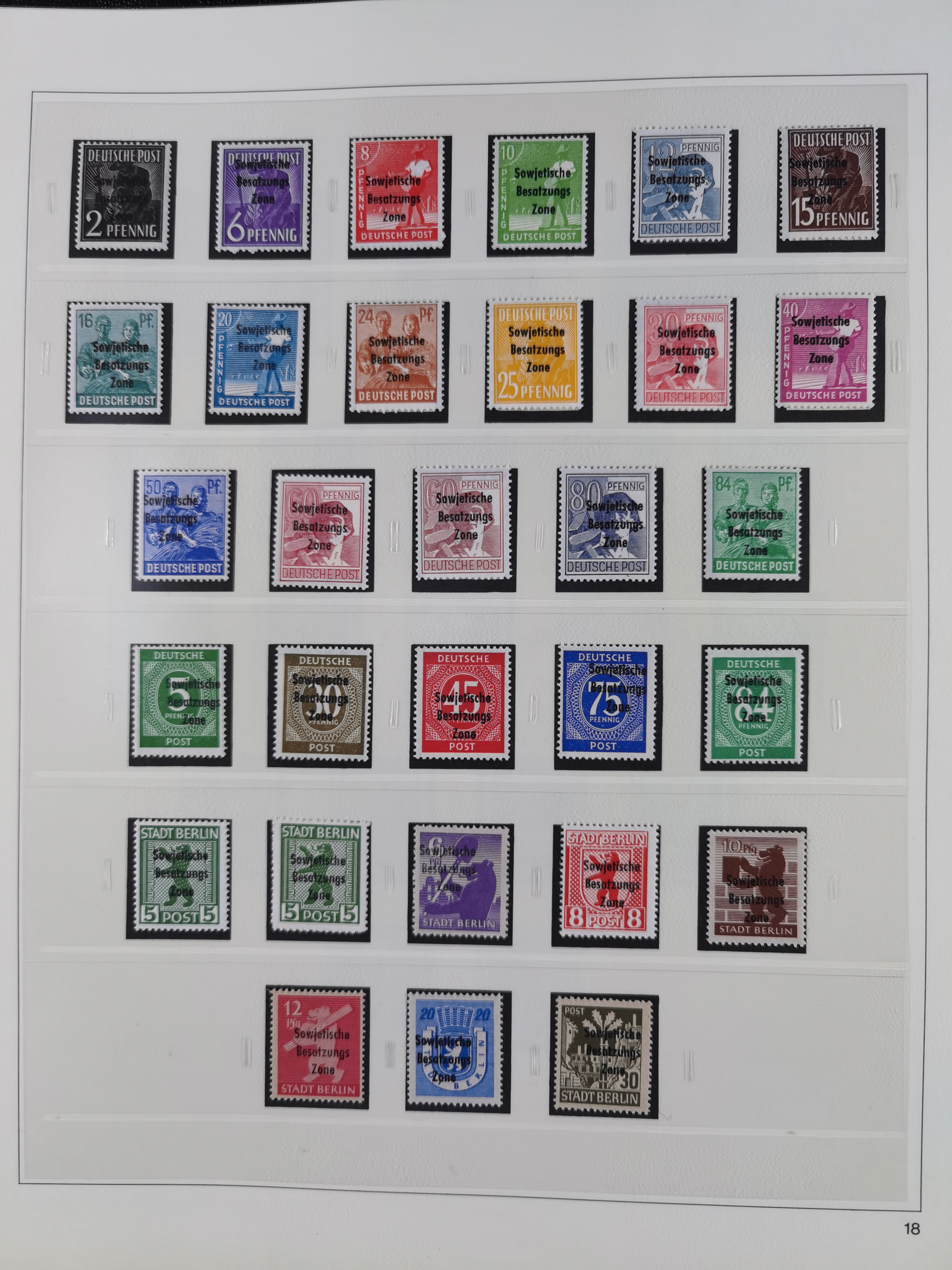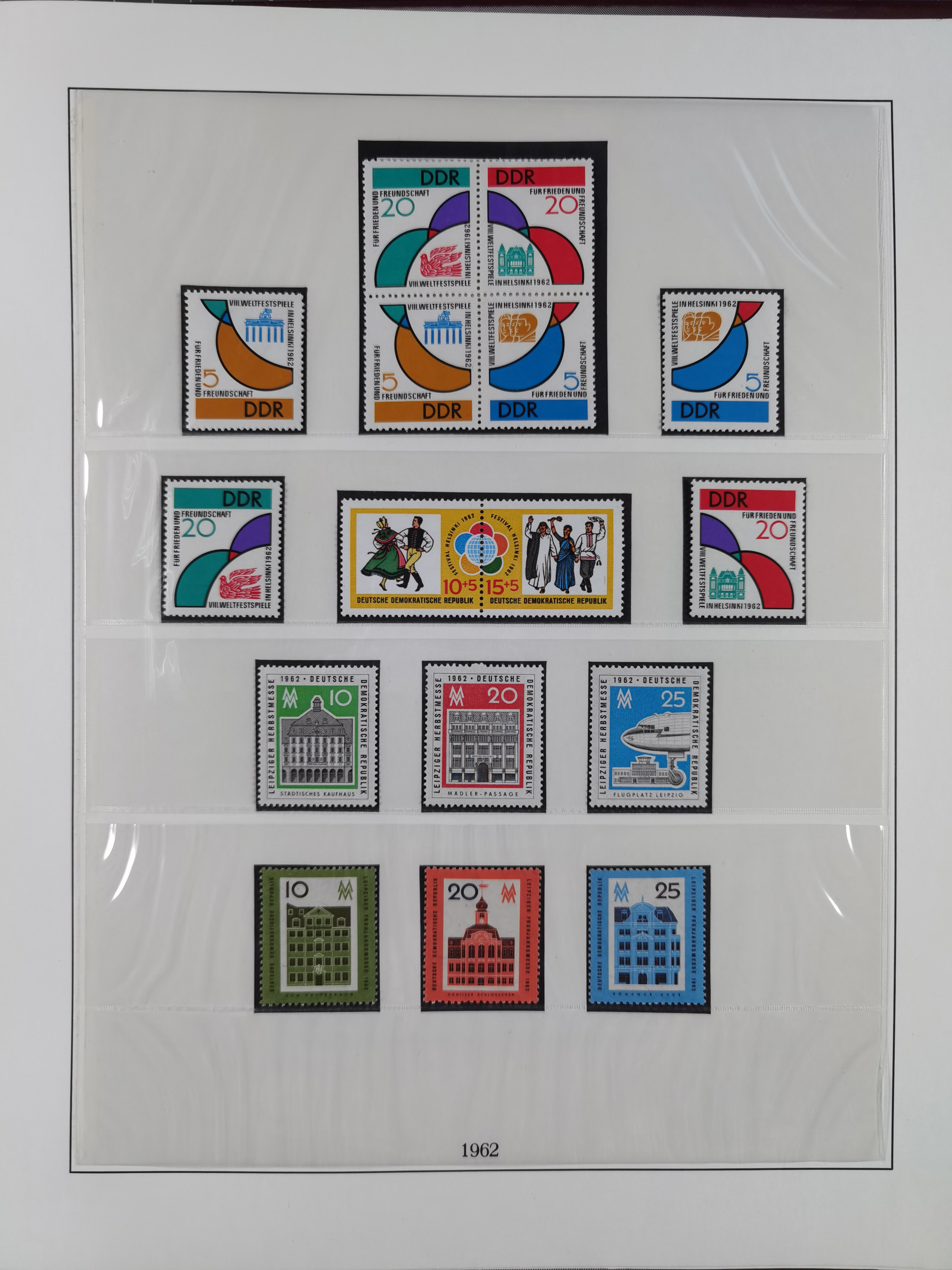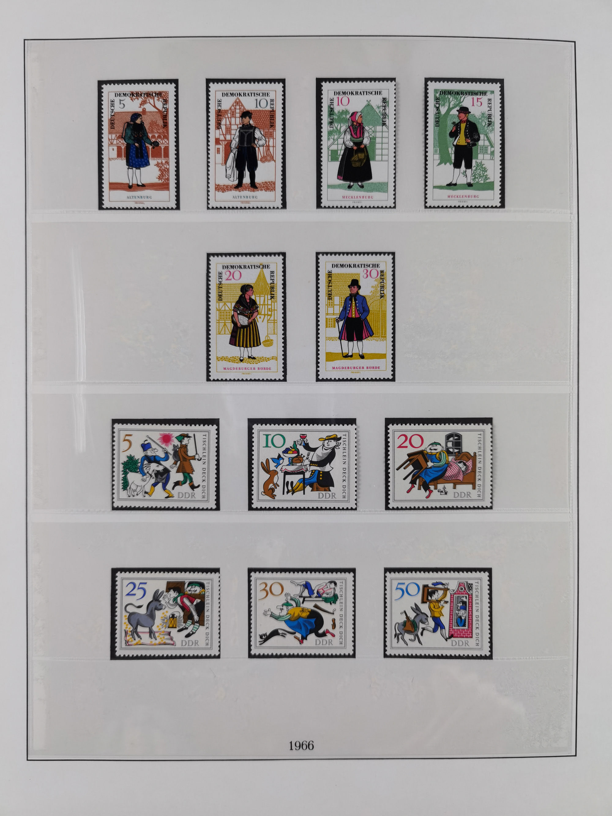 1948/90, in den Hauptnummern bis 1960 komplette postfrische Sammlungen Berlin 1948-90 inkl. Schwarzaufdruck, Rotaufdruck sign. Dub und Block 1, Bundesrepublik 1949-72 inkl. Posthornsatz, sowie DDR 1949-71 inkl. ausgiebigen Teilen Zusammendrucke, es fehlen bei den späten modernen Ausgaben teils einzelne Werte oder Sätze, gute Erhaltung, Alben mit Lagerspuren, in 11 Vordruckalben