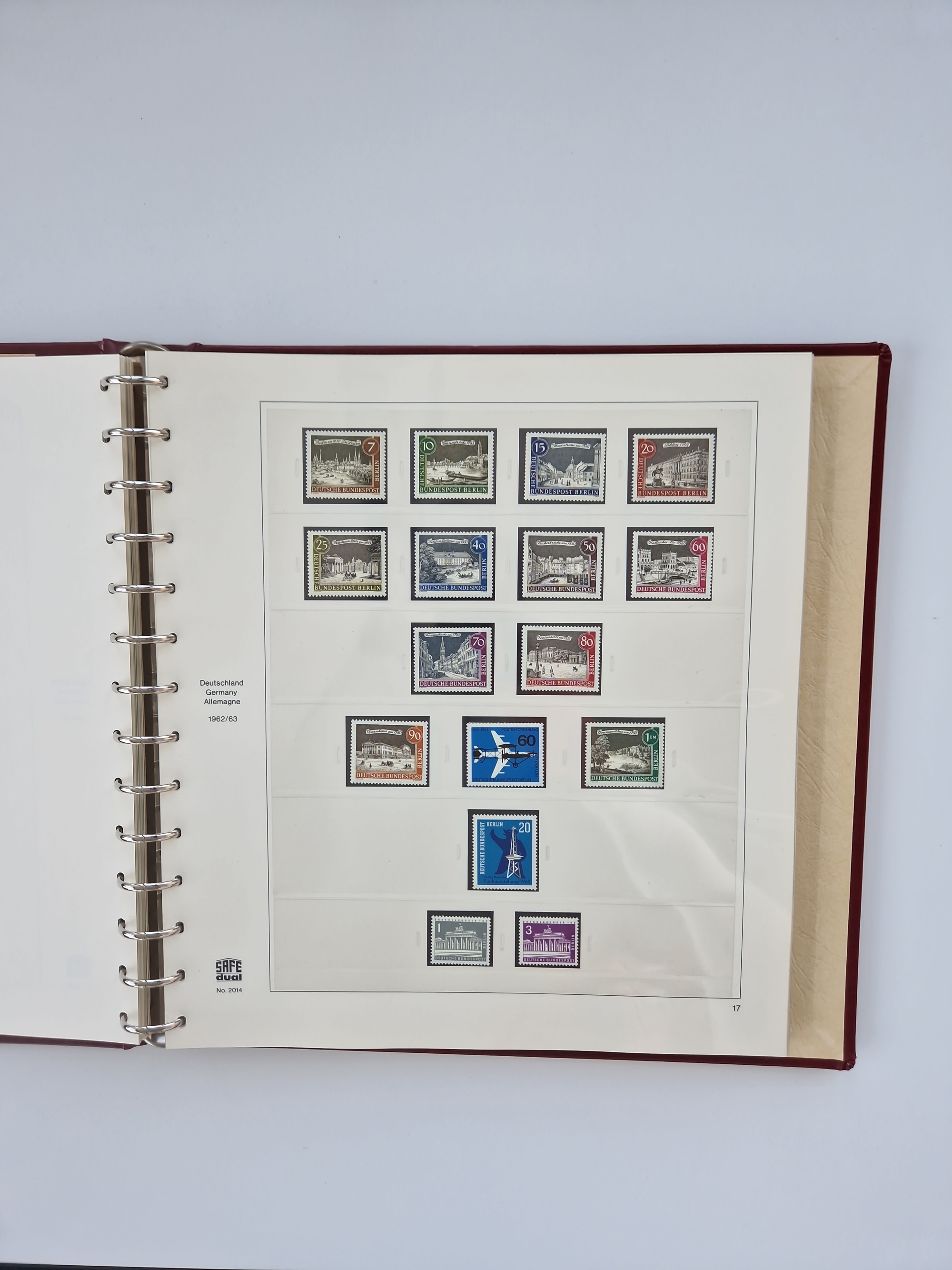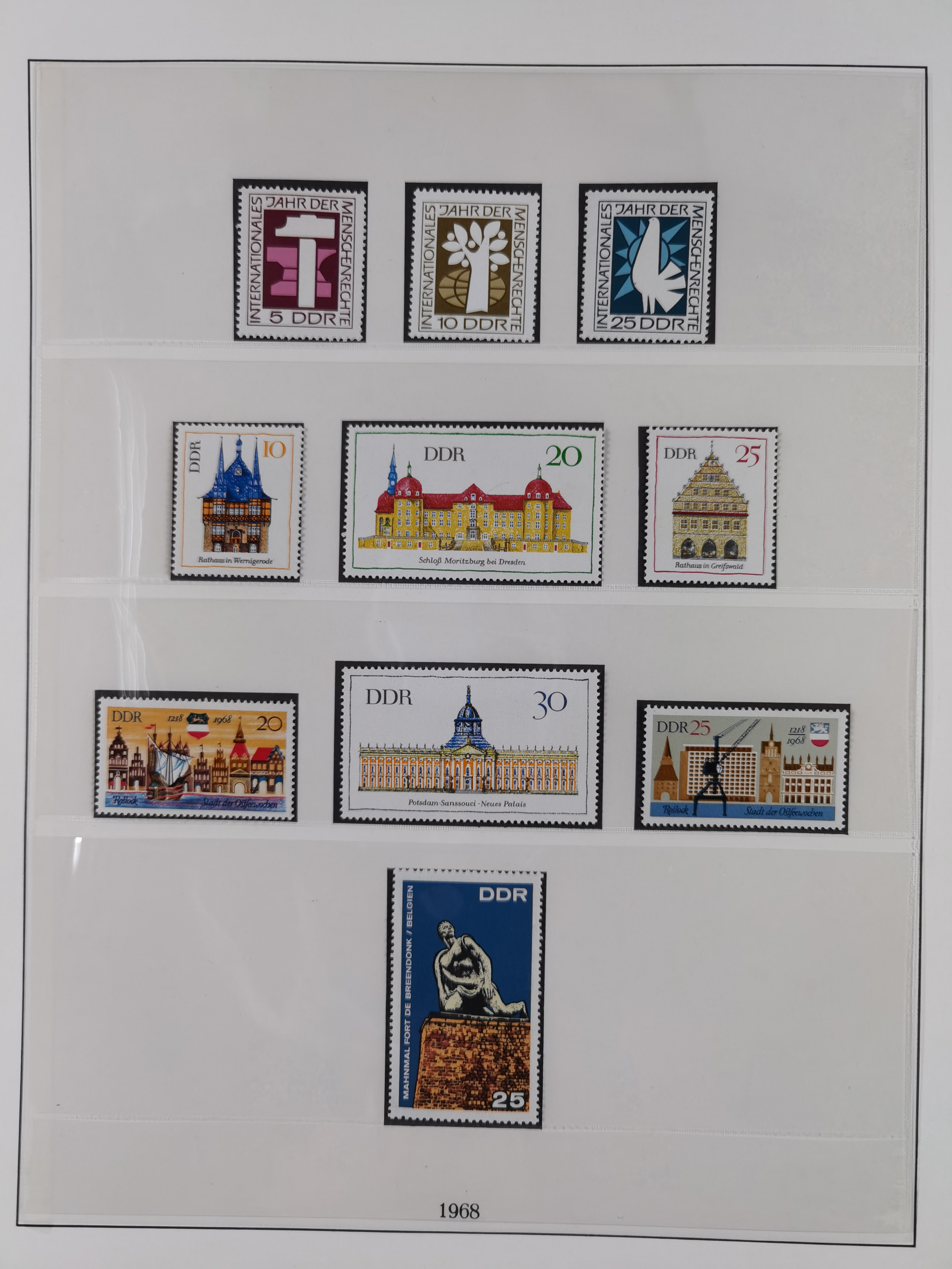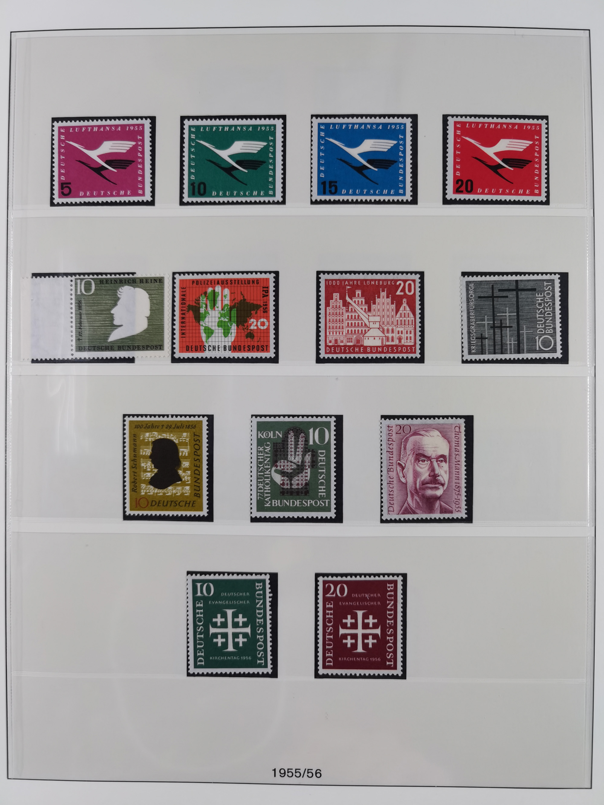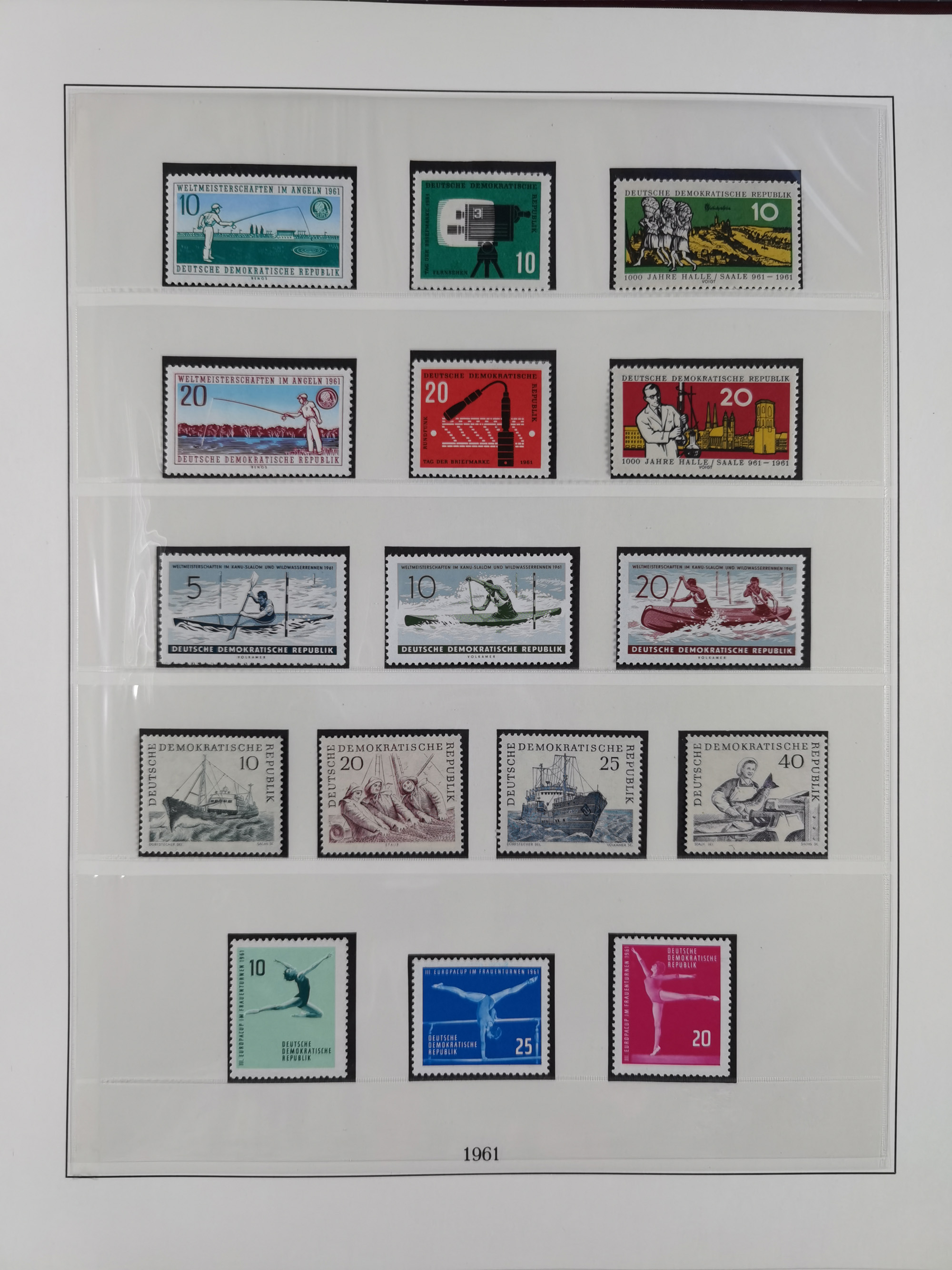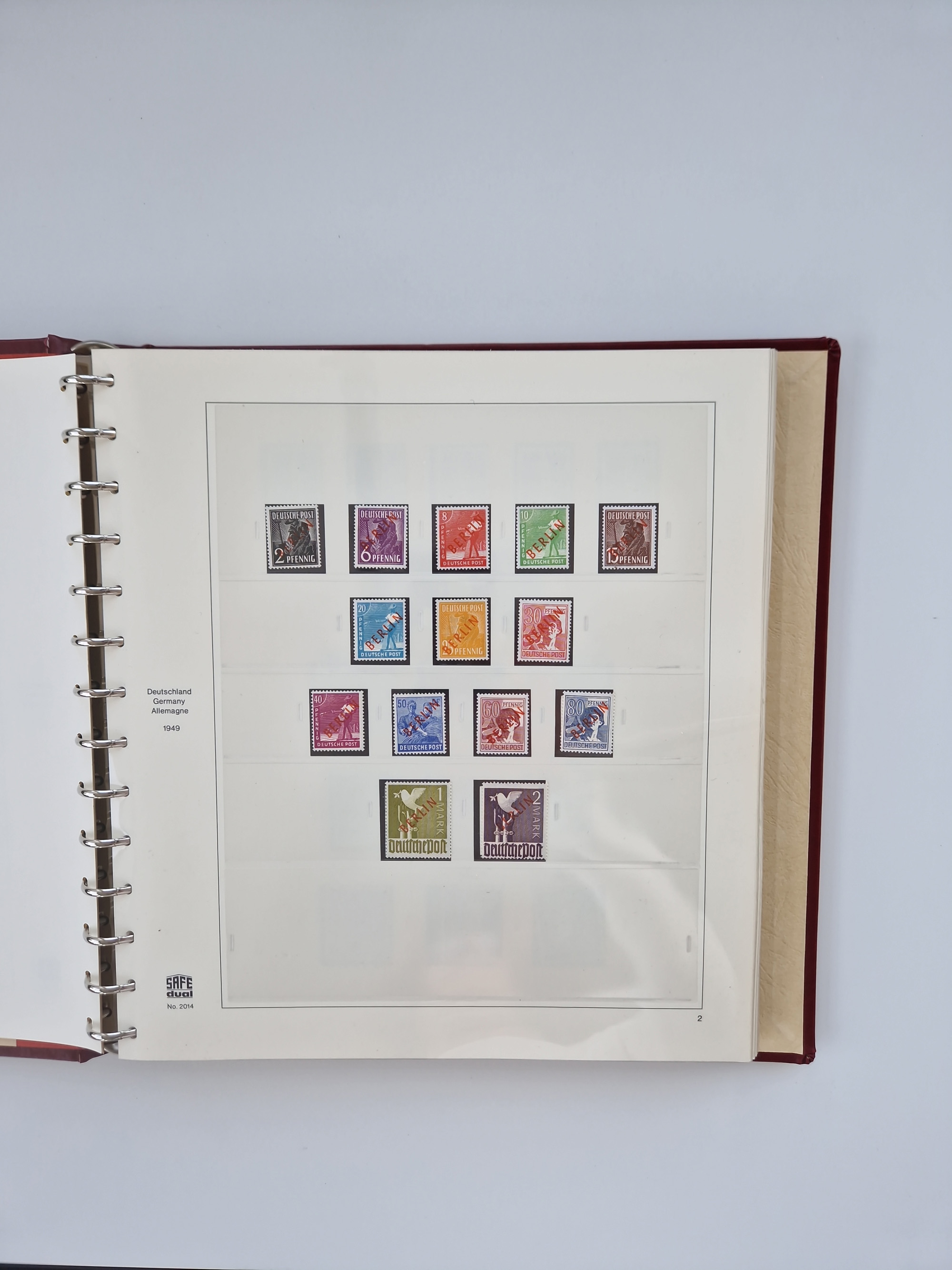 1948/90, in den Hauptnummern bis 1960 komplette postfrische Sammlungen Berlin 1948-90 inkl. Schwarzaufdruck, Rotaufdruck sign. Dub und Block 1, Bundesrepublik 1949-72 inkl. Posthornsatz, sowie DDR 1949-71 inkl. ausgiebigen Teilen Zusammendrucke, es fehlen bei den späten modernen Ausgaben teils einzelne Werte oder Sätze, gute Erhaltung, Alben mit Lagerspuren, in 11 Vordruckalben