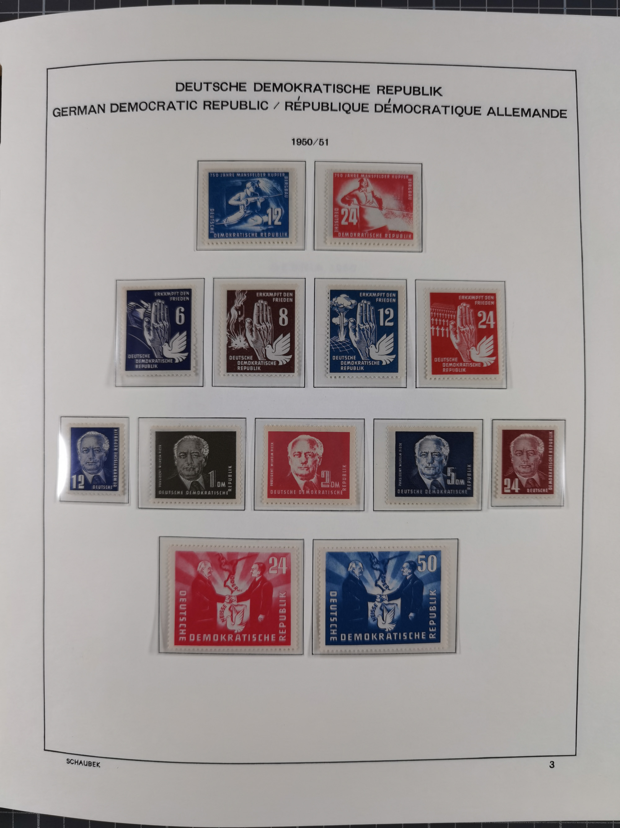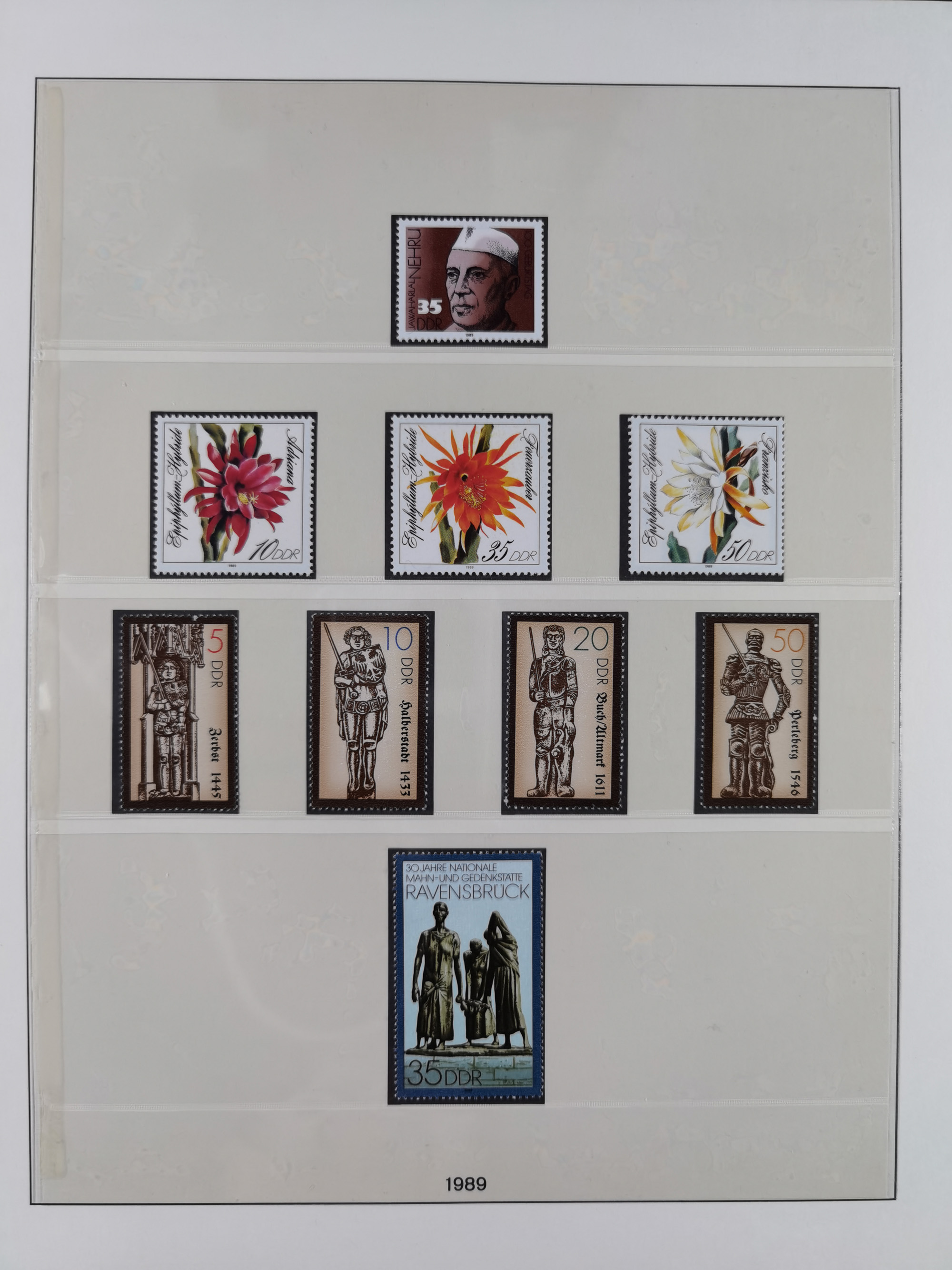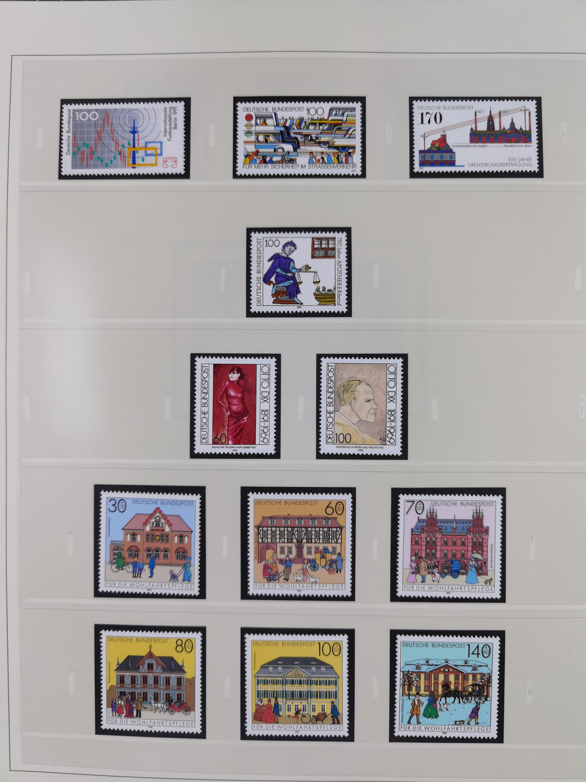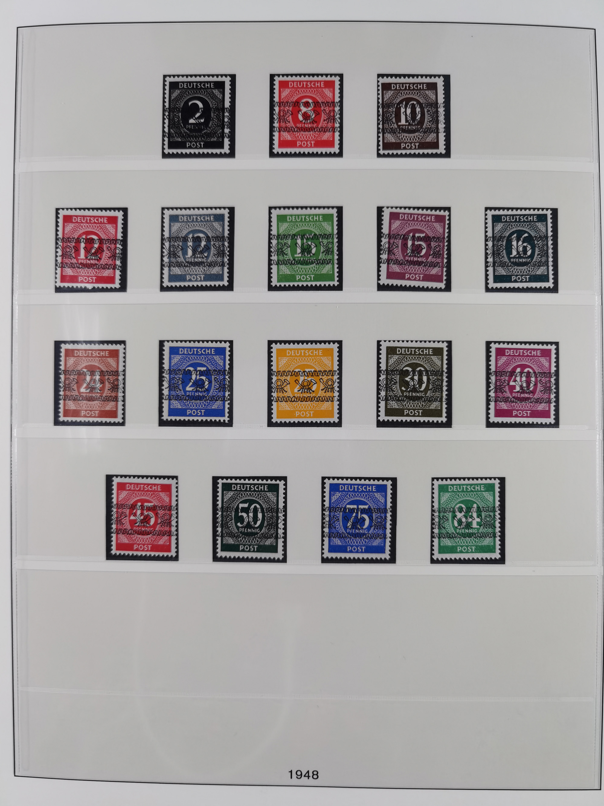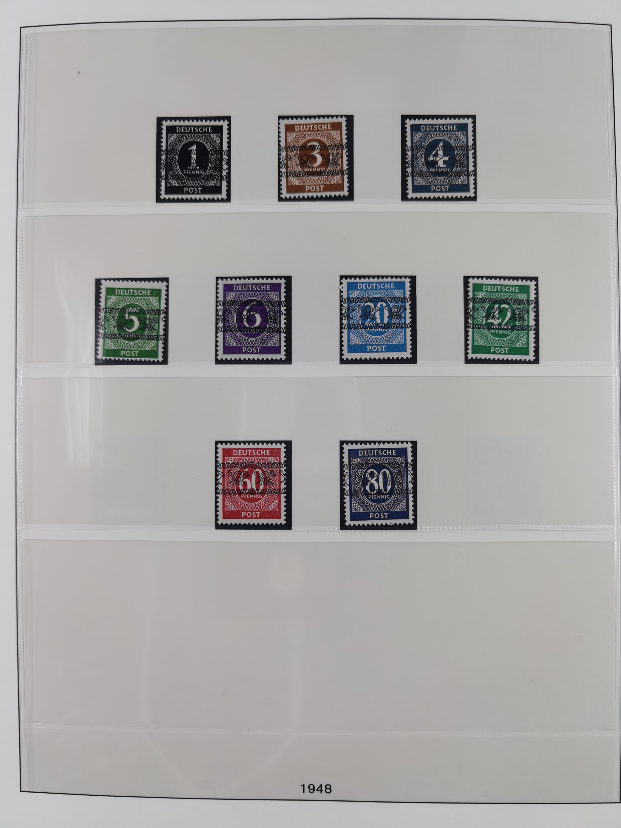 1948/90, in den Hauptnummern bis 1960 komplette postfrische Sammlungen Berlin 1948-90 inkl. Schwarzaufdruck, Rotaufdruck sign. Dub und Block 1, Bundesrepublik 1949-72 inkl. Posthornsatz, sowie DDR 1949-71 inkl. ausgiebigen Teilen Zusammendrucke, es fehlen bei den späten modernen Ausgaben teils einzelne Werte oder Sätze, gute Erhaltung, Alben mit Lagerspuren, in 11 Vordruckalben