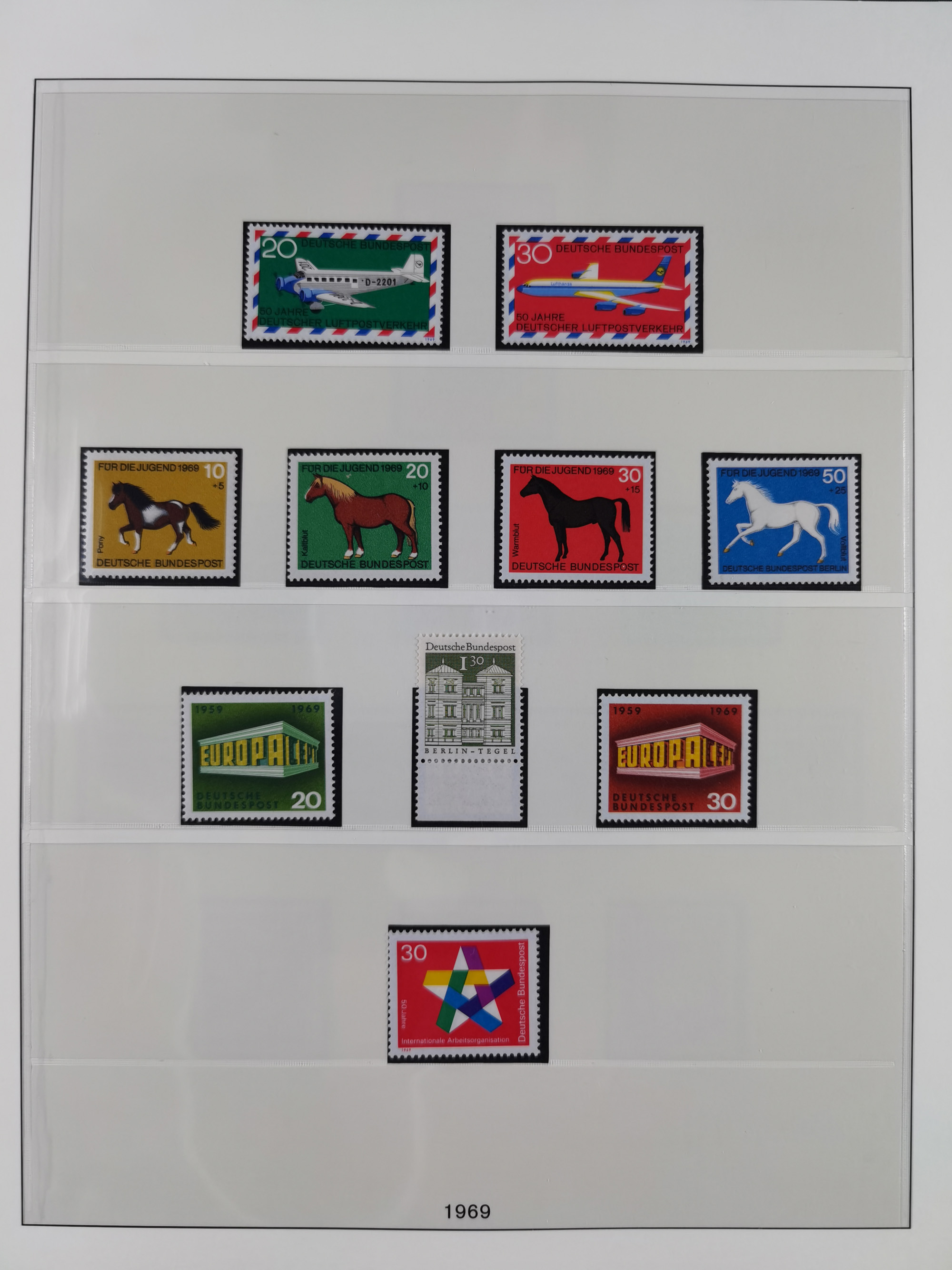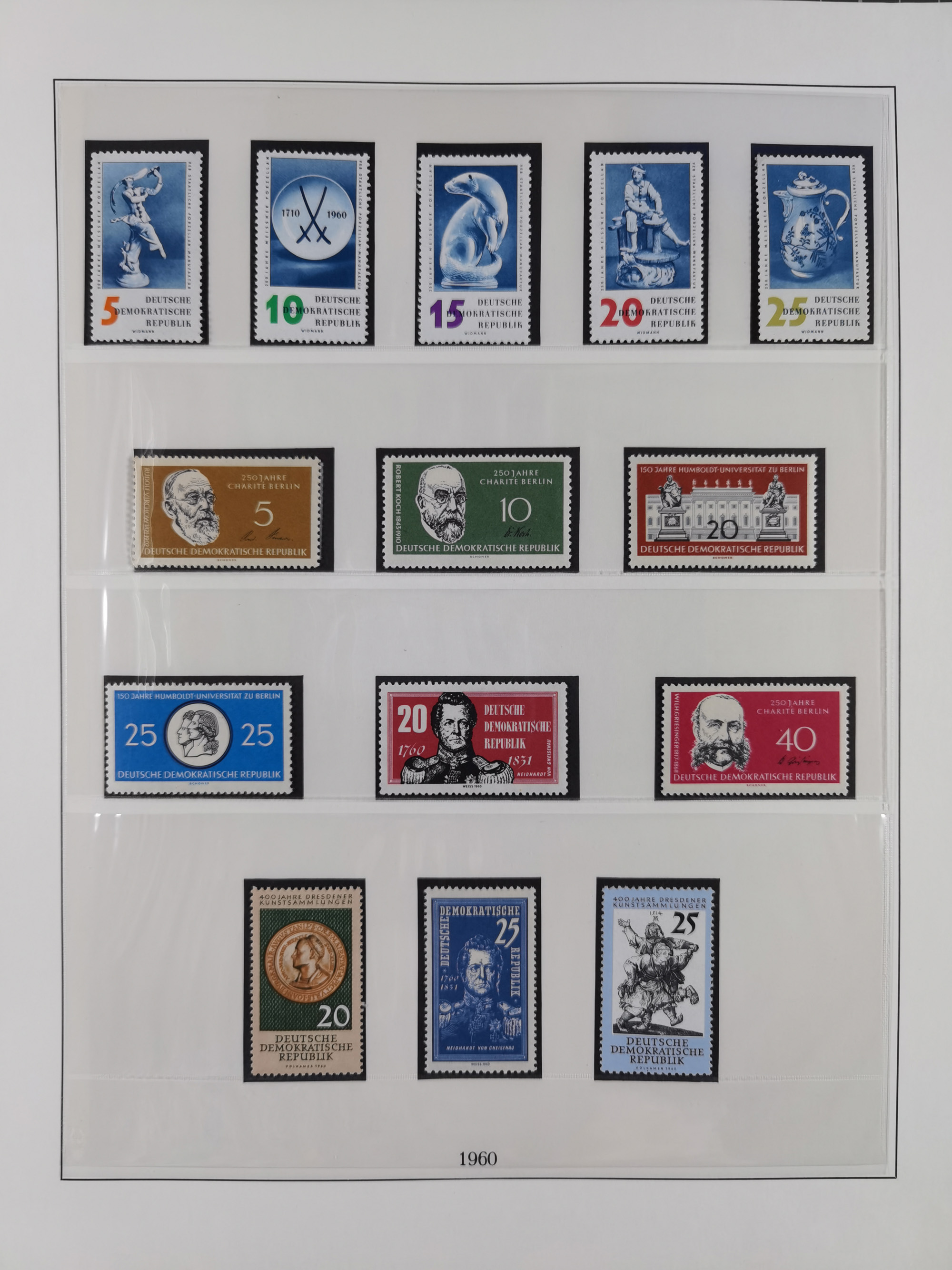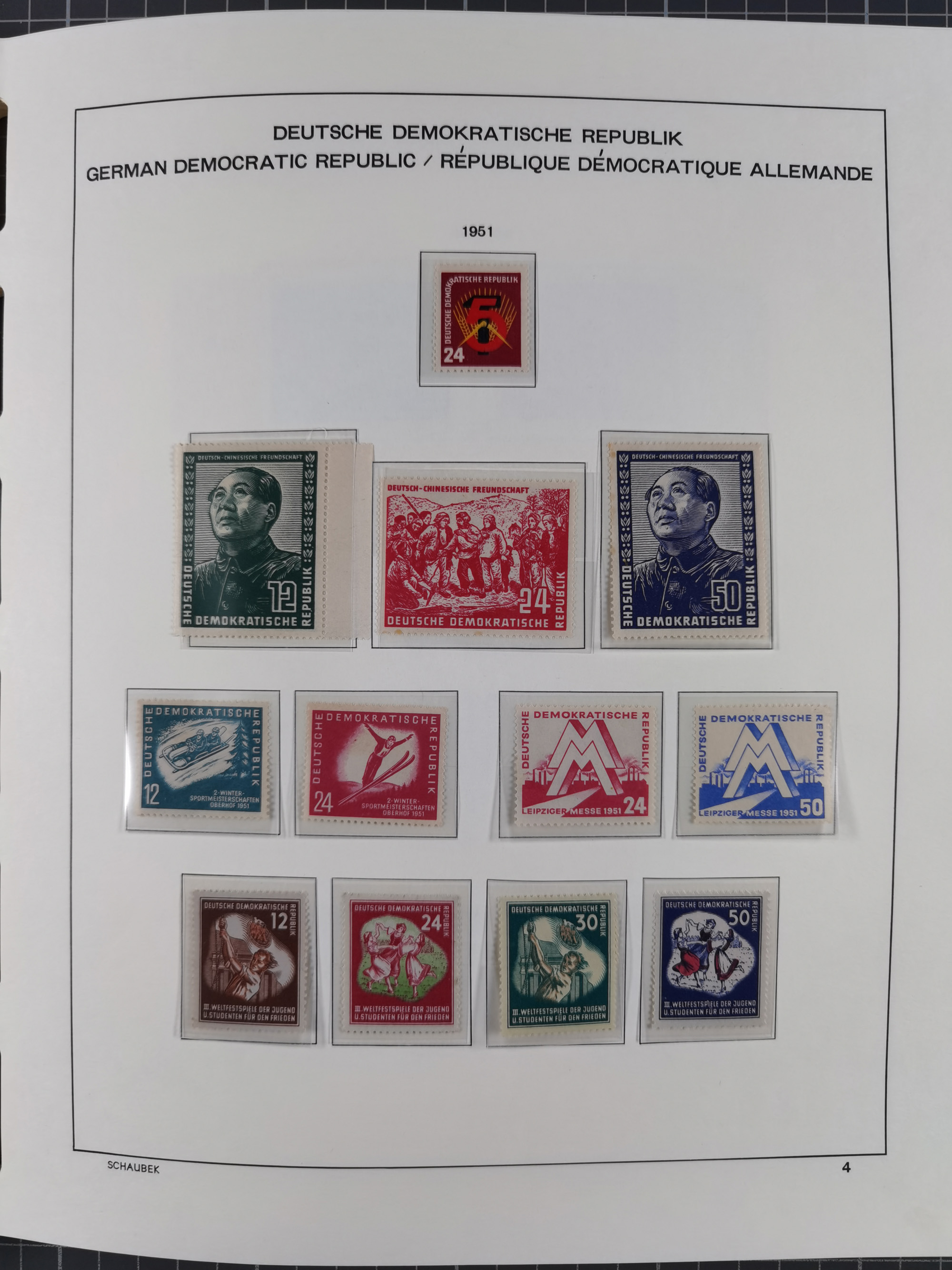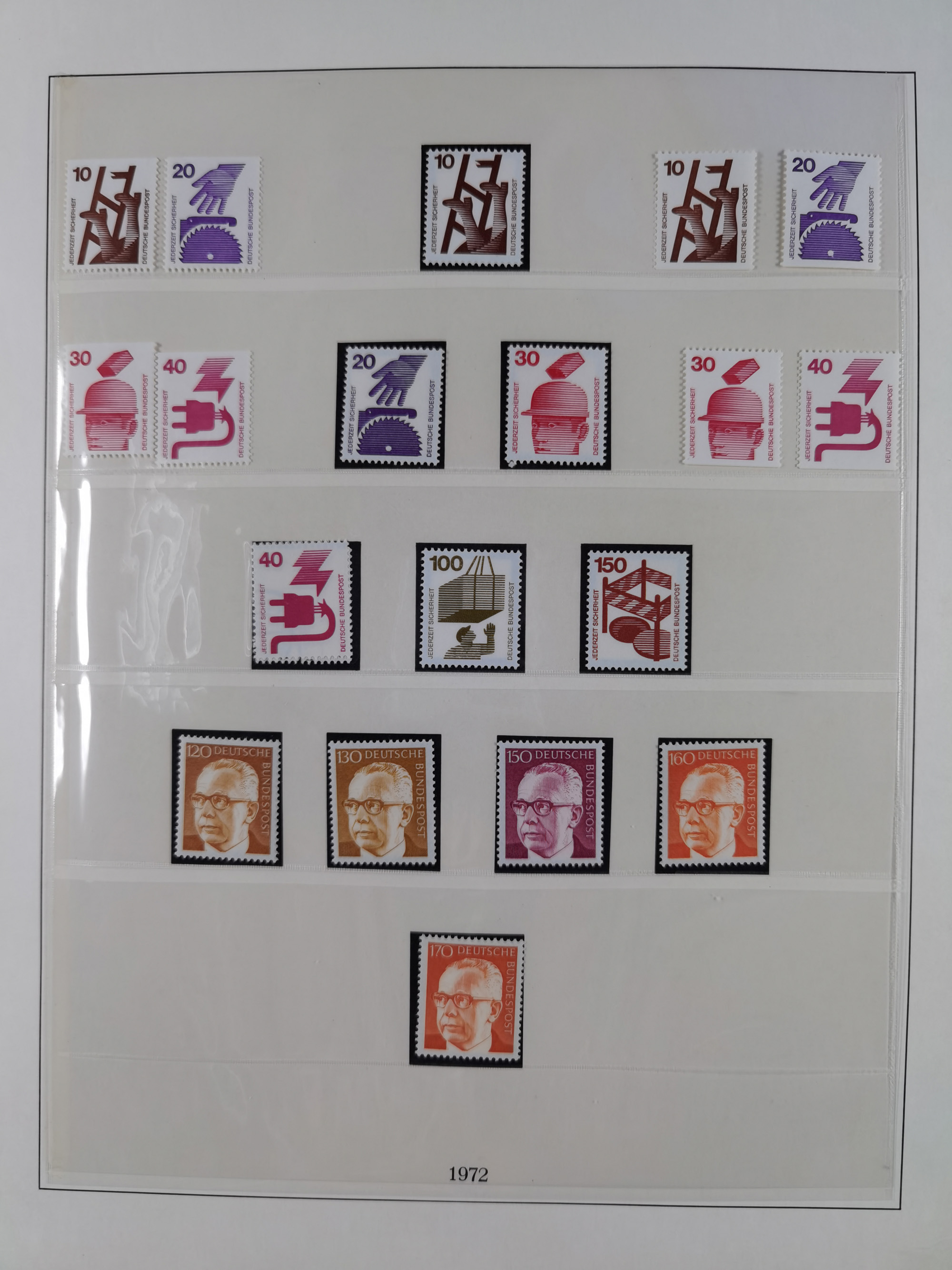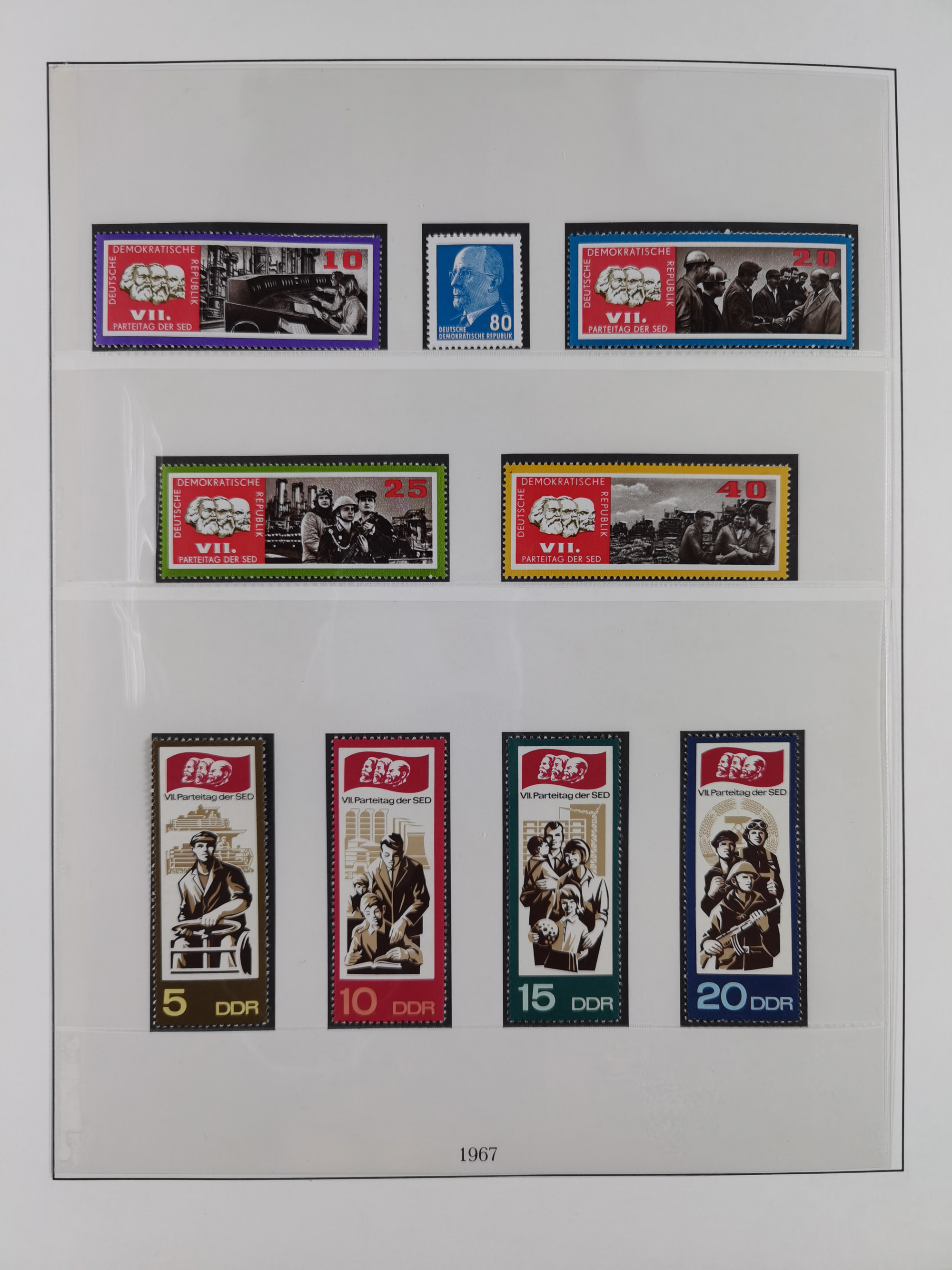 1948/90, in den Hauptnummern bis 1960 komplette postfrische Sammlungen Berlin 1948-90 inkl. Schwarzaufdruck, Rotaufdruck sign. Dub und Block 1, Bundesrepublik 1949-72 inkl. Posthornsatz, sowie DDR 1949-71 inkl. ausgiebigen Teilen Zusammendrucke, es fehlen bei den späten modernen Ausgaben teils einzelne Werte oder Sätze, gute Erhaltung, Alben mit Lagerspuren, in 11 Vordruckalben