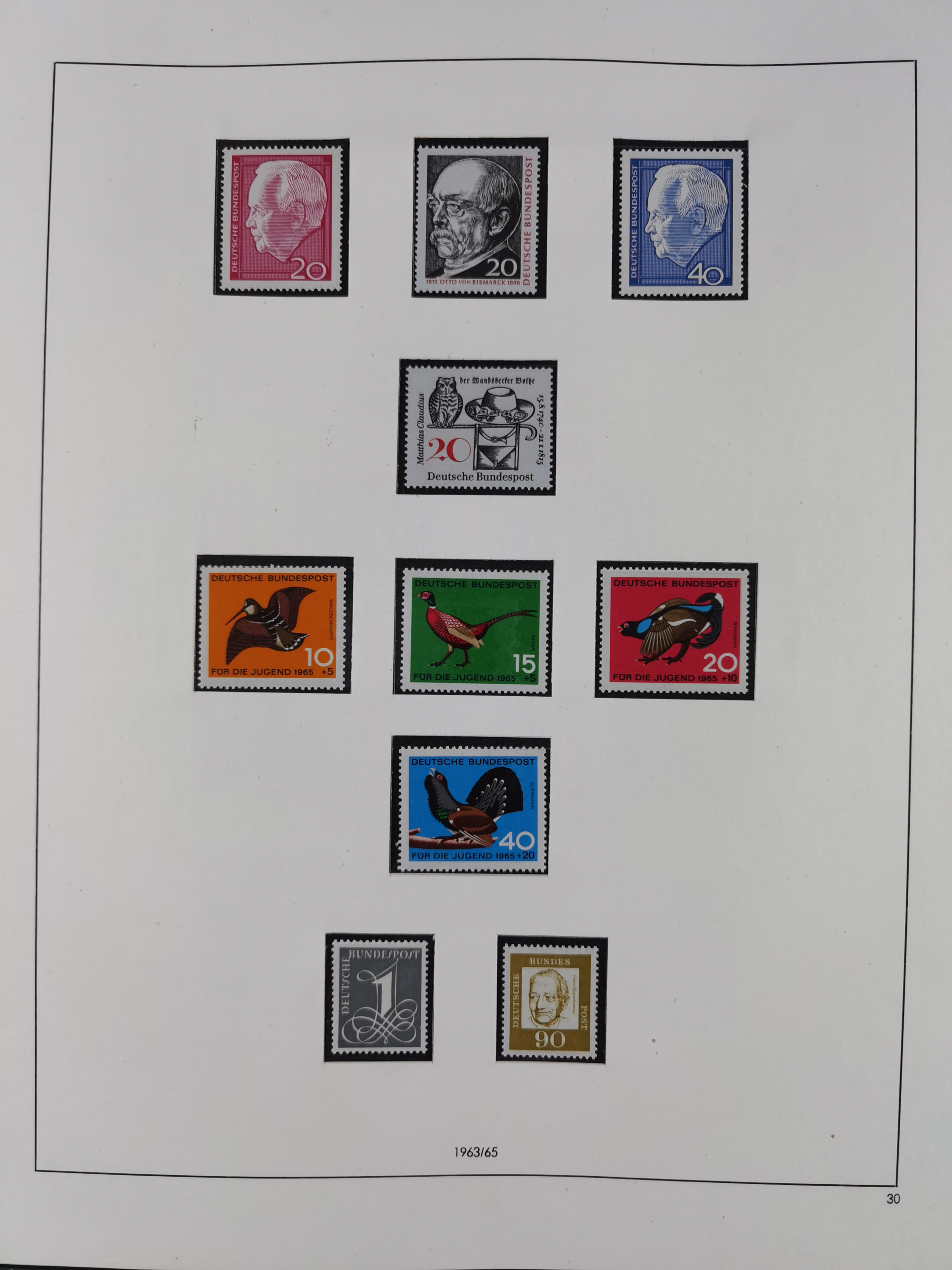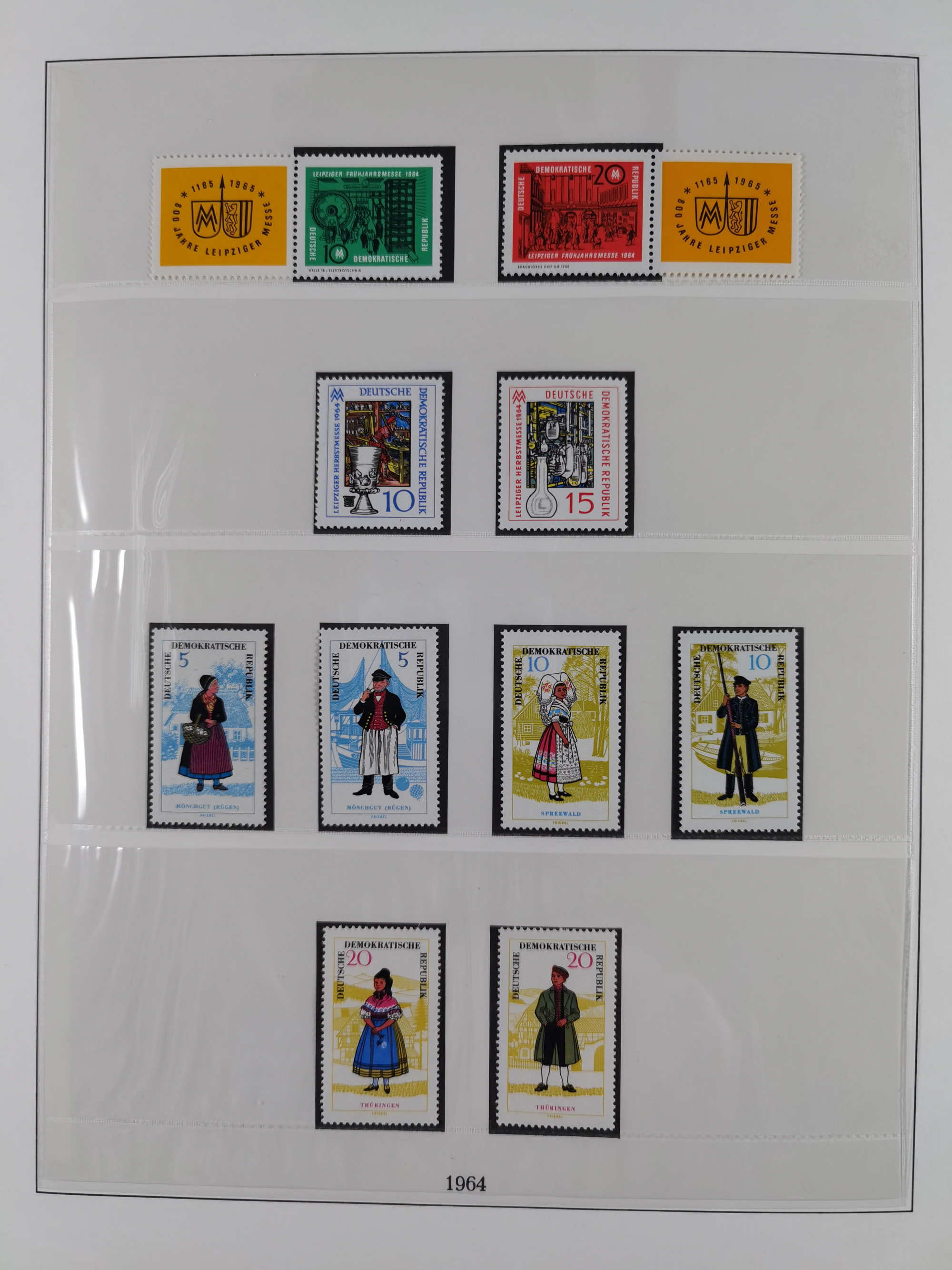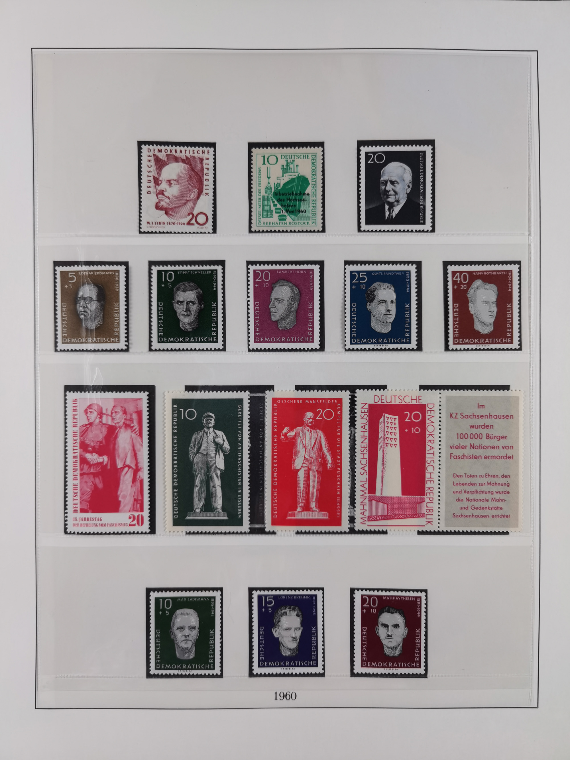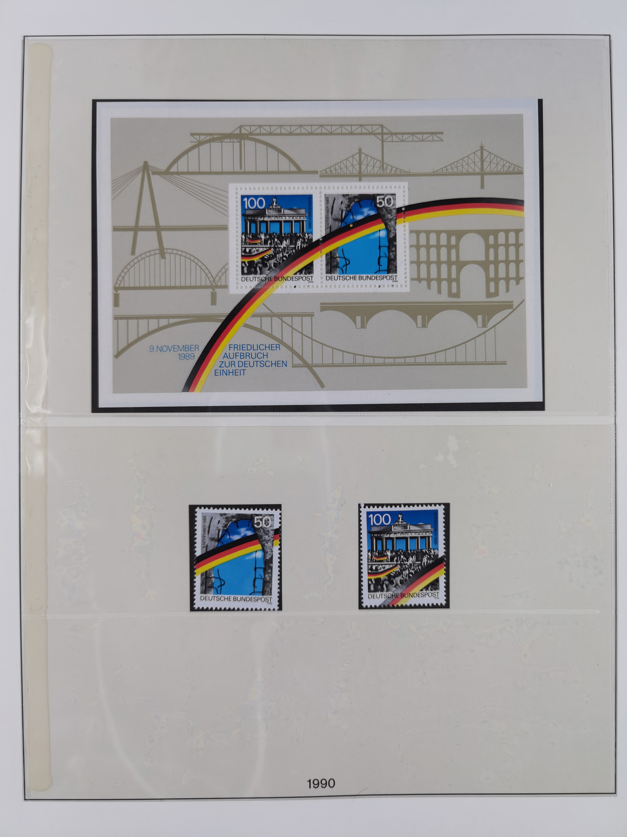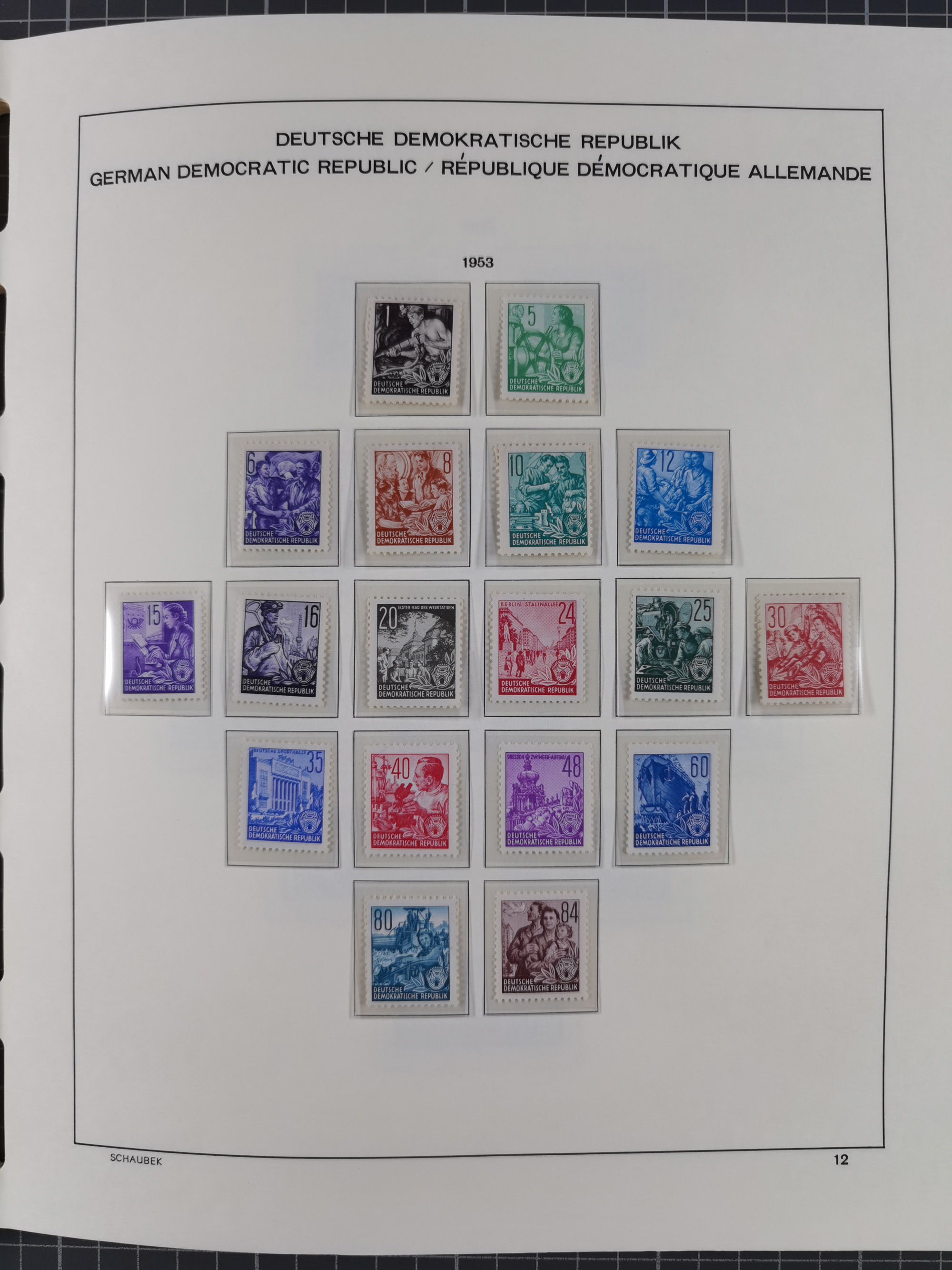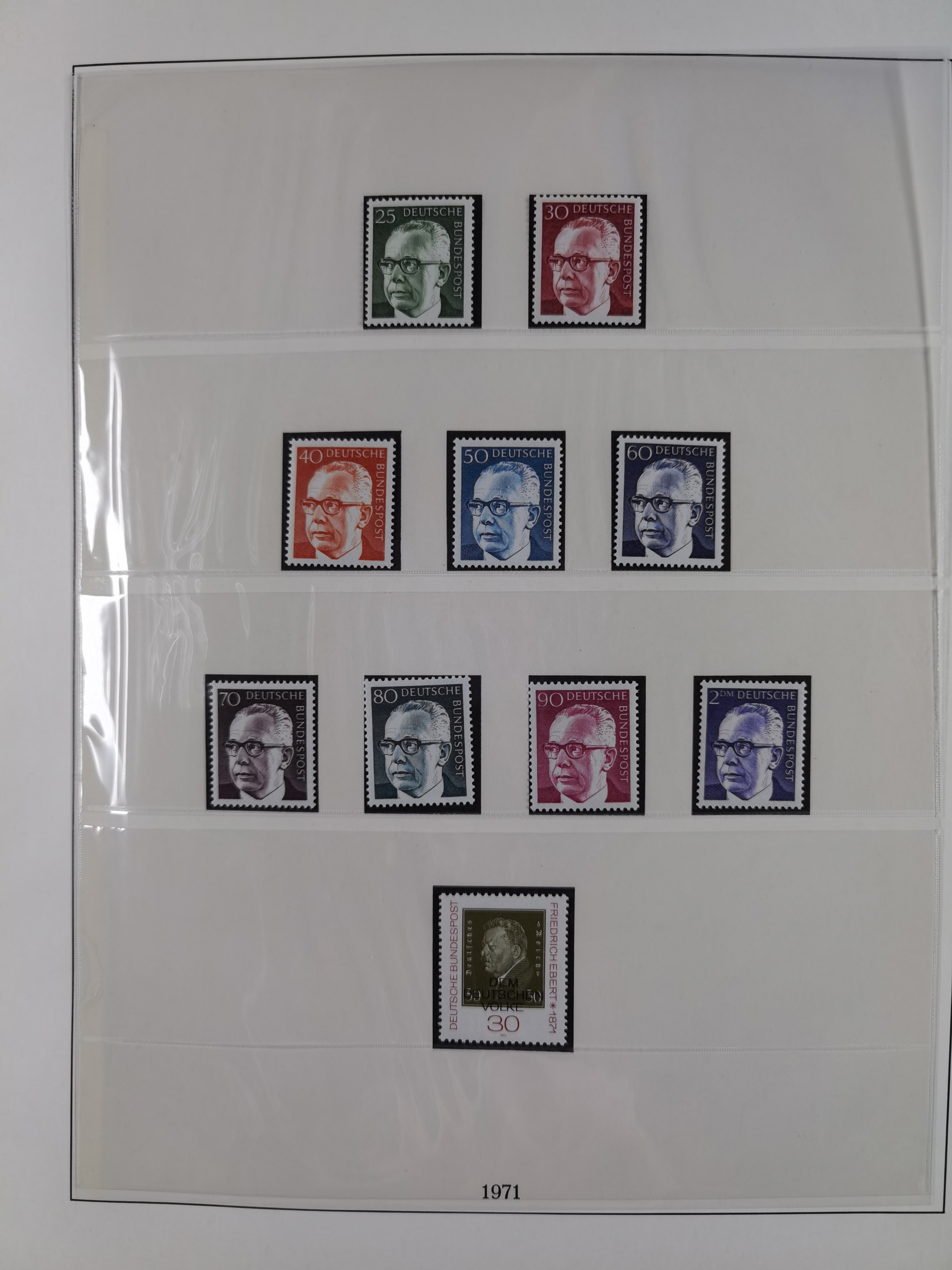 1948/90, in den Hauptnummern bis 1960 komplette postfrische Sammlungen Berlin 1948-90 inkl. Schwarzaufdruck, Rotaufdruck sign. Dub und Block 1, Bundesrepublik 1949-72 inkl. Posthornsatz, sowie DDR 1949-71 inkl. ausgiebigen Teilen Zusammendrucke, es fehlen bei den späten modernen Ausgaben teils einzelne Werte oder Sätze, gute Erhaltung, Alben mit Lagerspuren, in 11 Vordruckalben