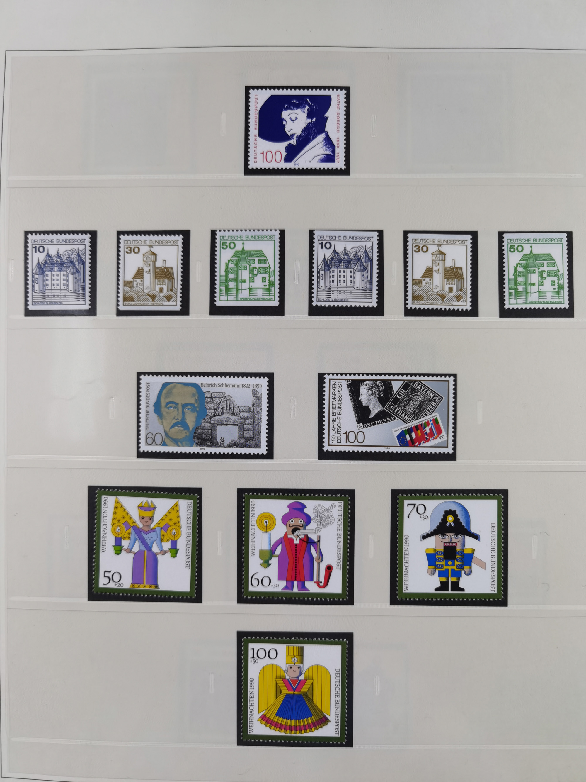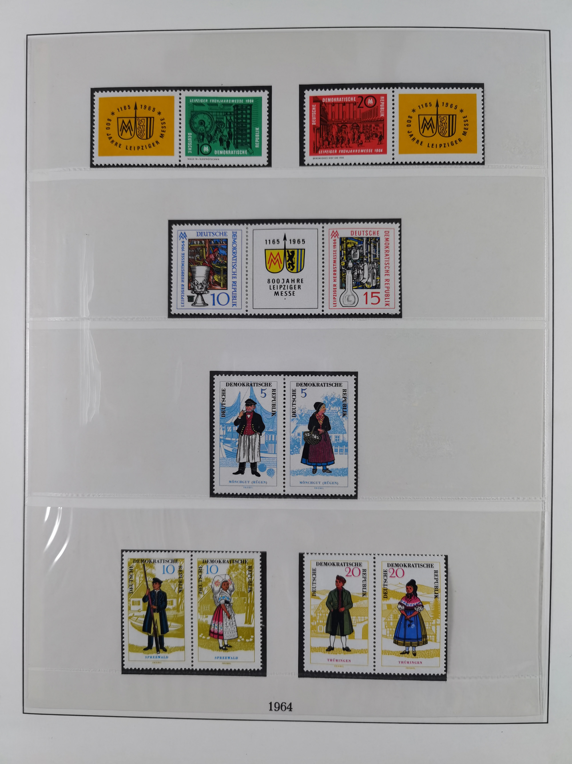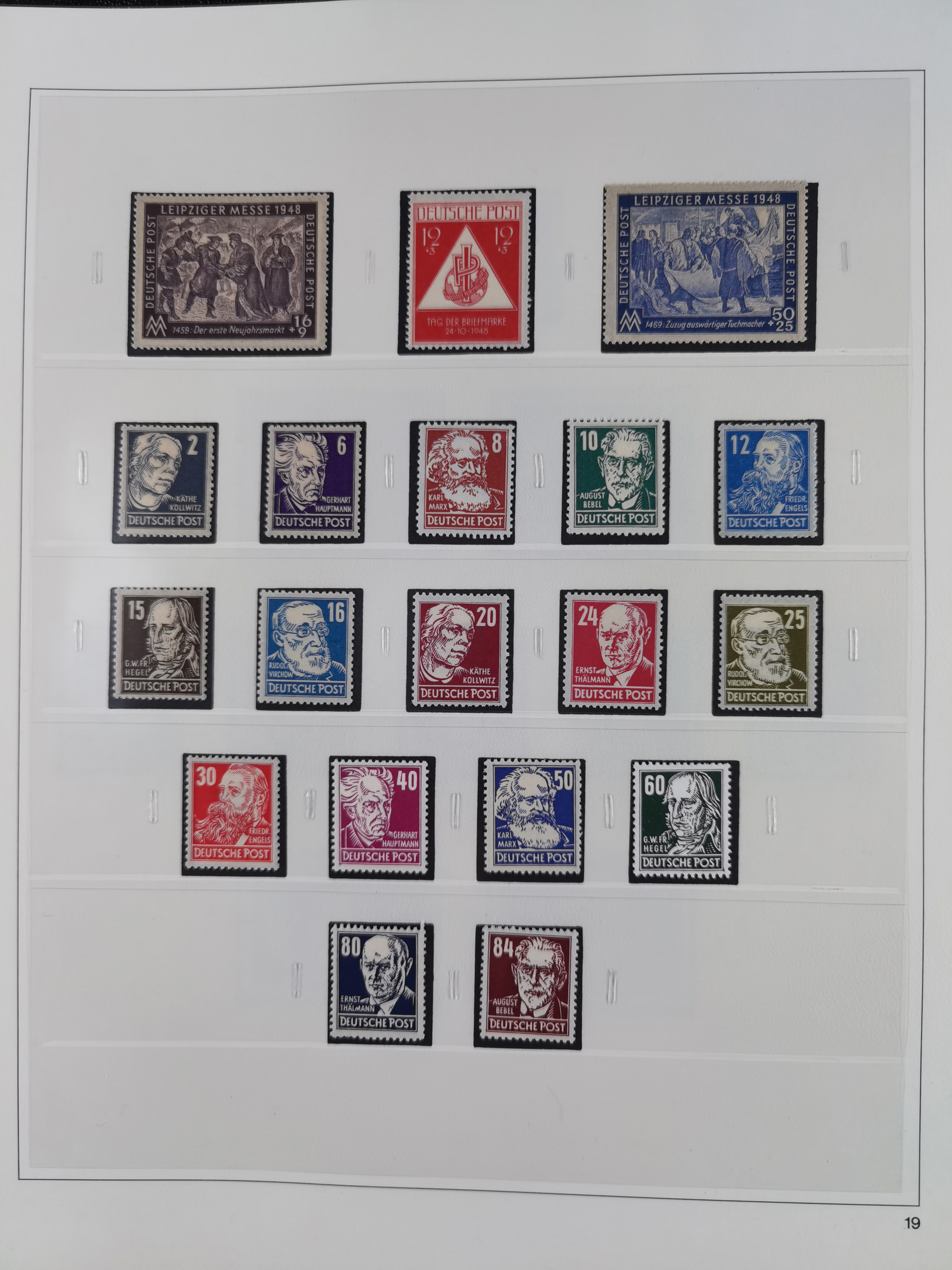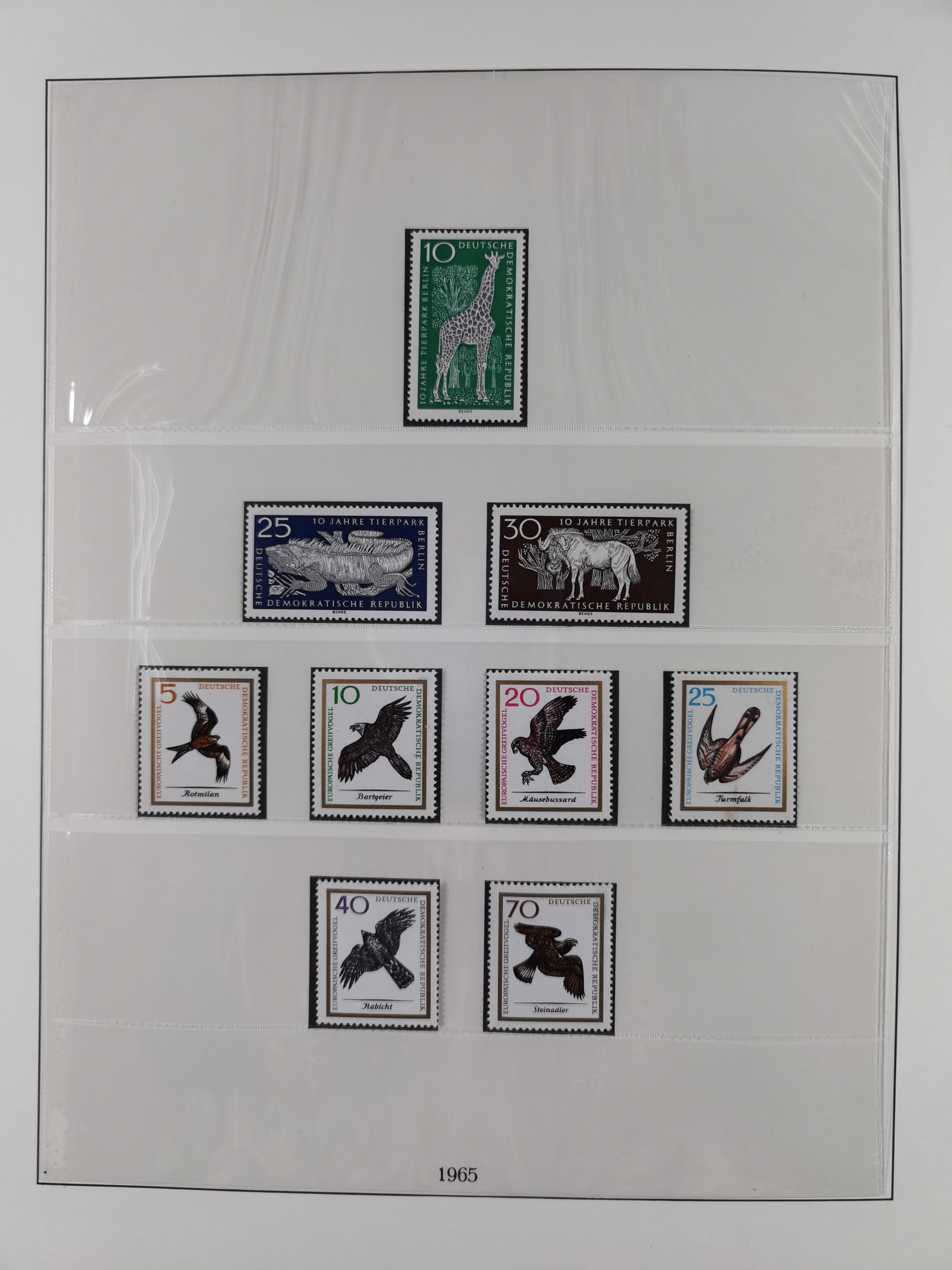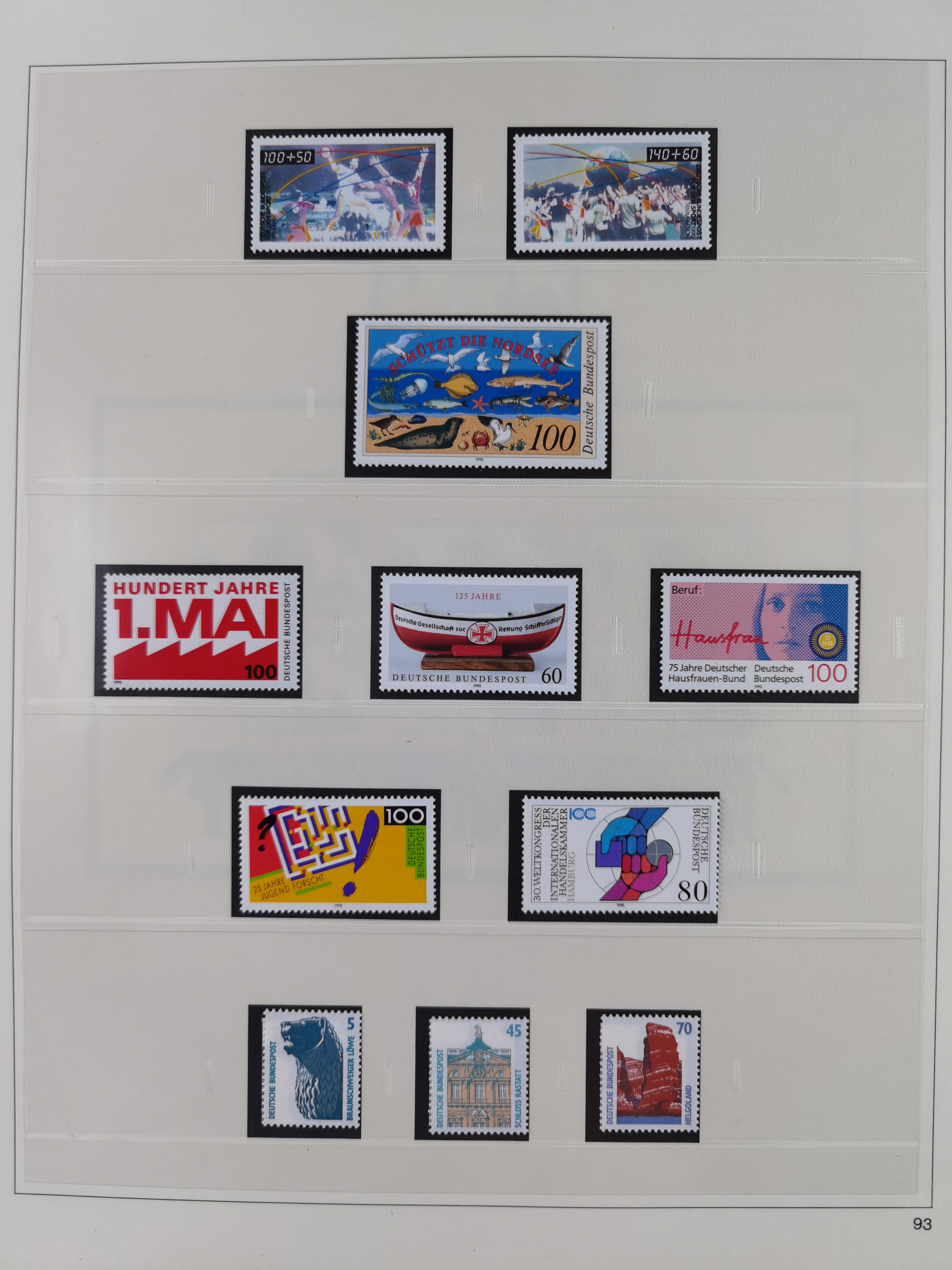 1948/90, in den Hauptnummern bis 1960 komplette postfrische Sammlungen Berlin 1948-90 inkl. Schwarzaufdruck, Rotaufdruck sign. Dub und Block 1, Bundesrepublik 1949-72 inkl. Posthornsatz, sowie DDR 1949-71 inkl. ausgiebigen Teilen Zusammendrucke, es fehlen bei den späten modernen Ausgaben teils einzelne Werte oder Sätze, gute Erhaltung, Alben mit Lagerspuren, in 11 Vordruckalben