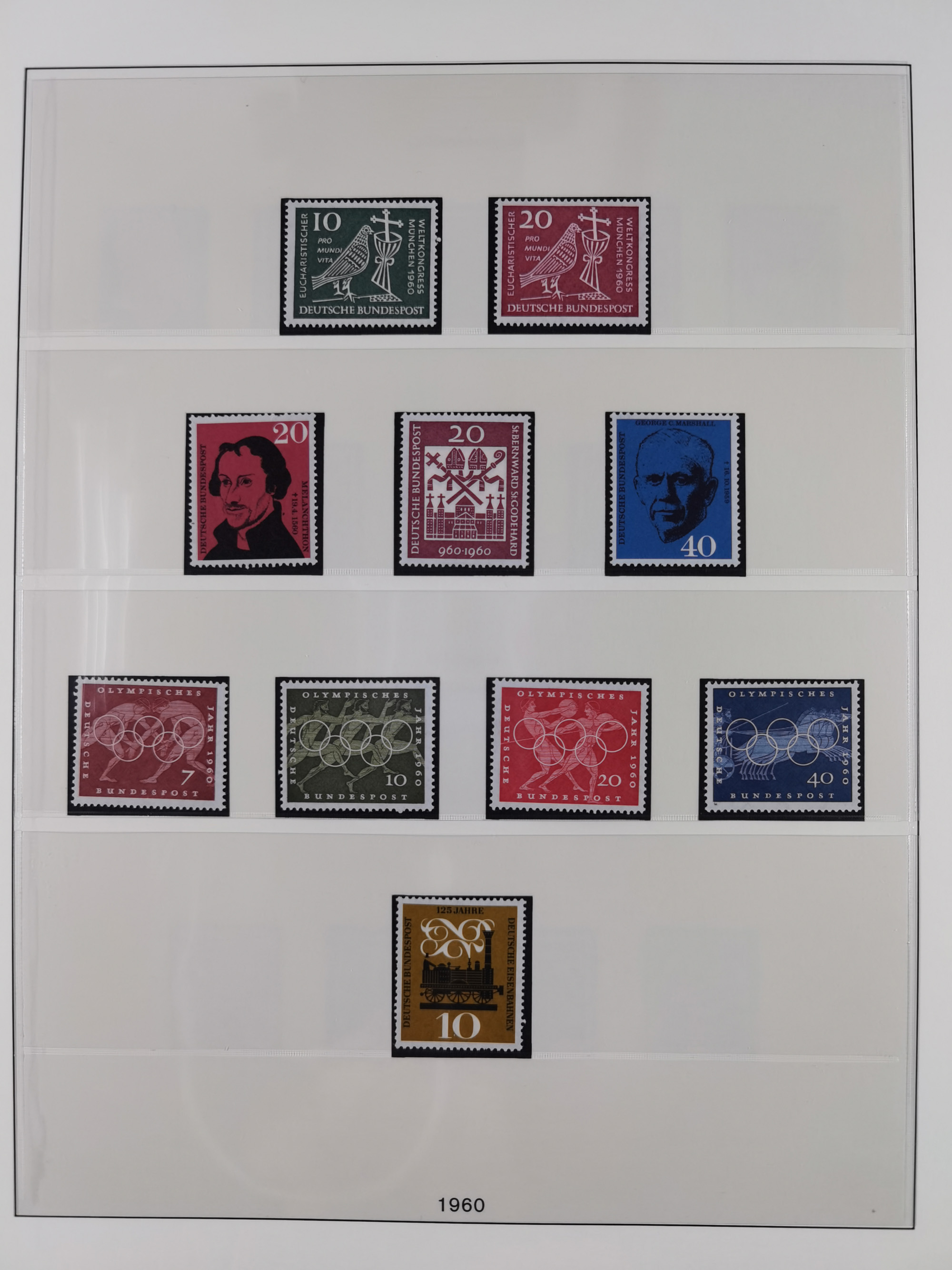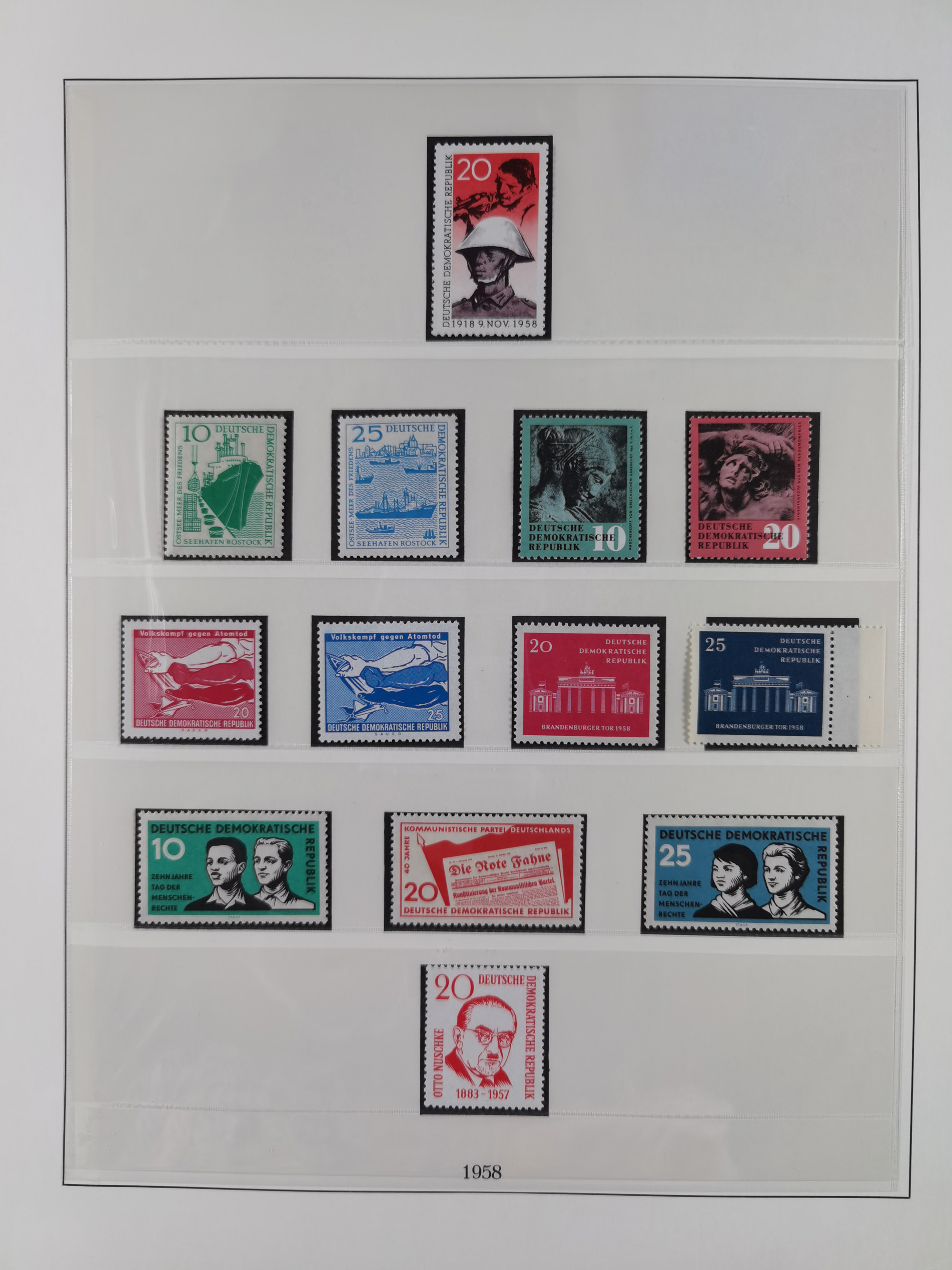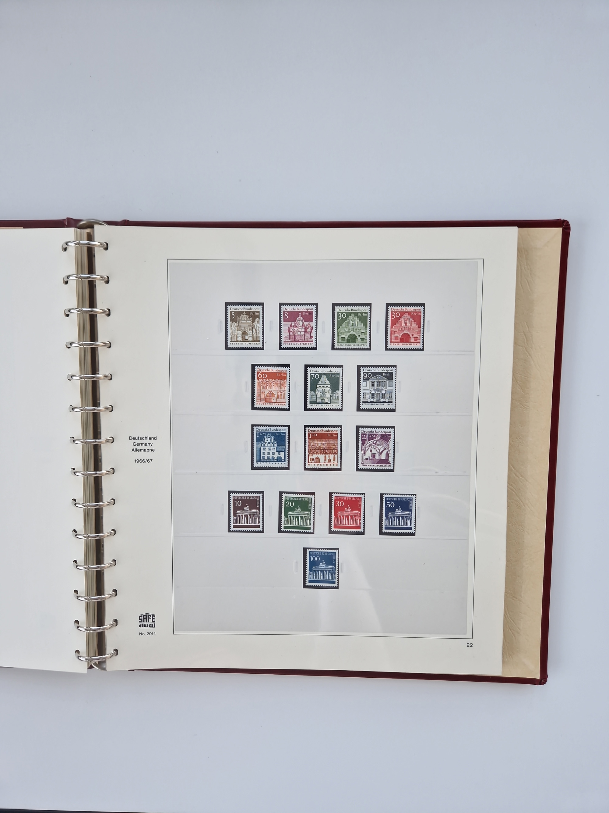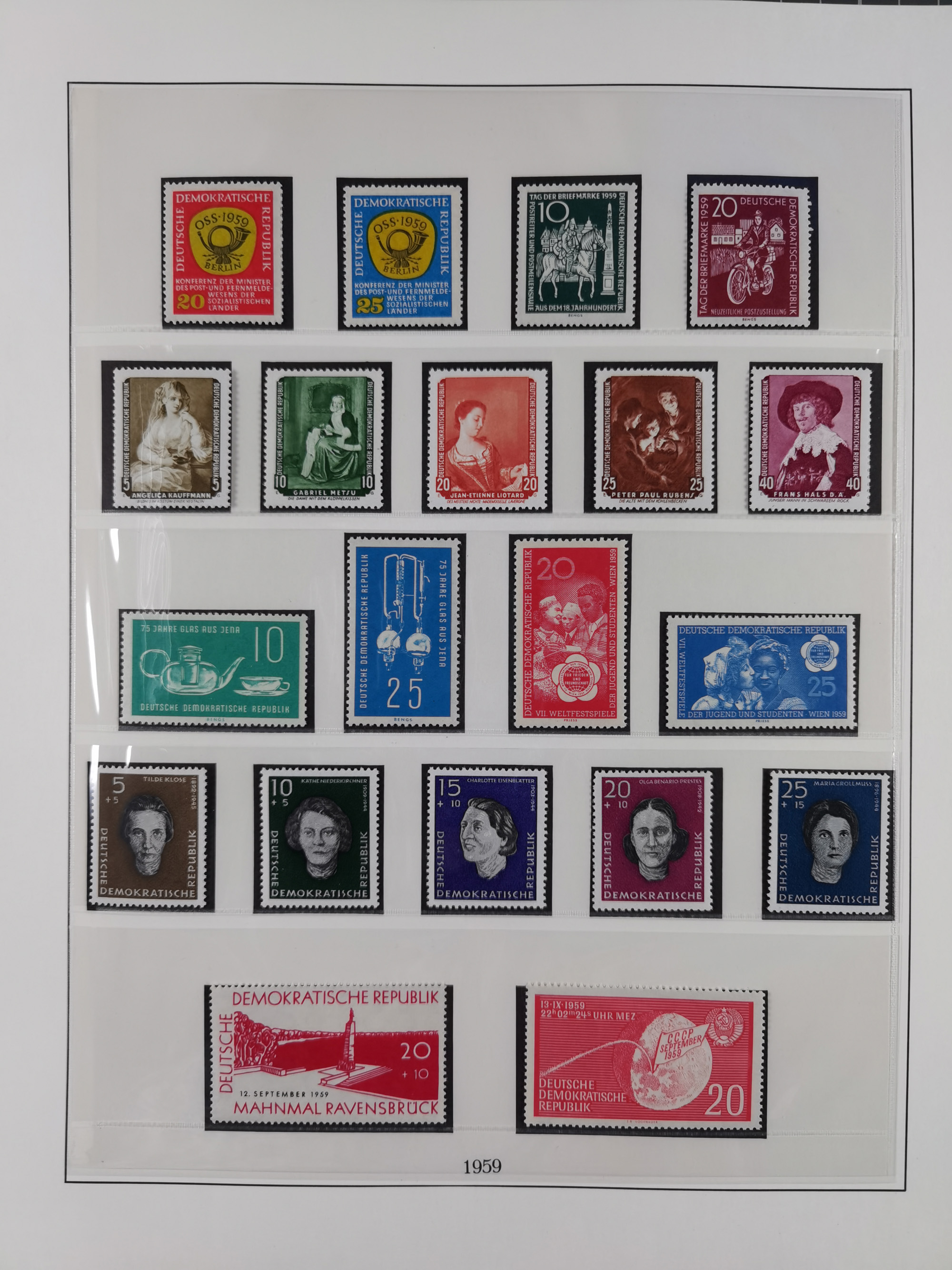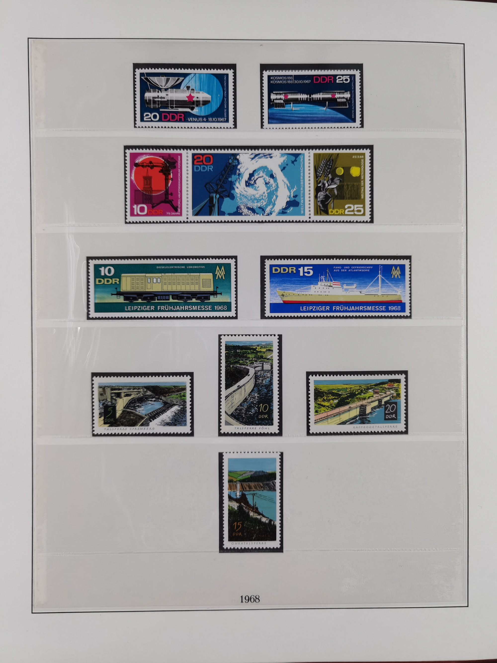 1948/90, in den Hauptnummern bis 1960 komplette postfrische Sammlungen Berlin 1948-90 inkl. Schwarzaufdruck, Rotaufdruck sign. Dub und Block 1, Bundesrepublik 1949-72 inkl. Posthornsatz, sowie DDR 1949-71 inkl. ausgiebigen Teilen Zusammendrucke, es fehlen bei den späten modernen Ausgaben teils einzelne Werte oder Sätze, gute Erhaltung, Alben mit Lagerspuren, in 11 Vordruckalben