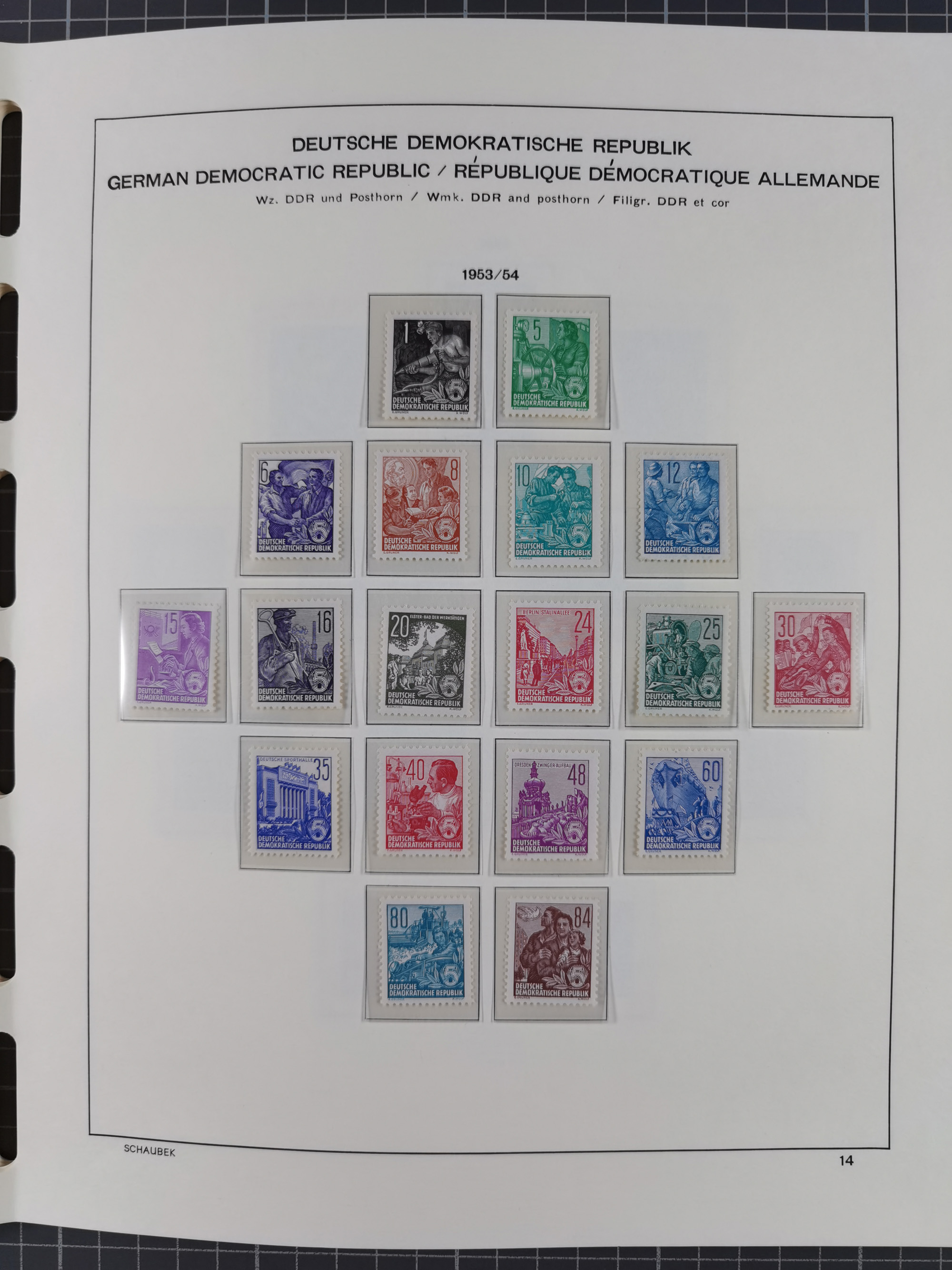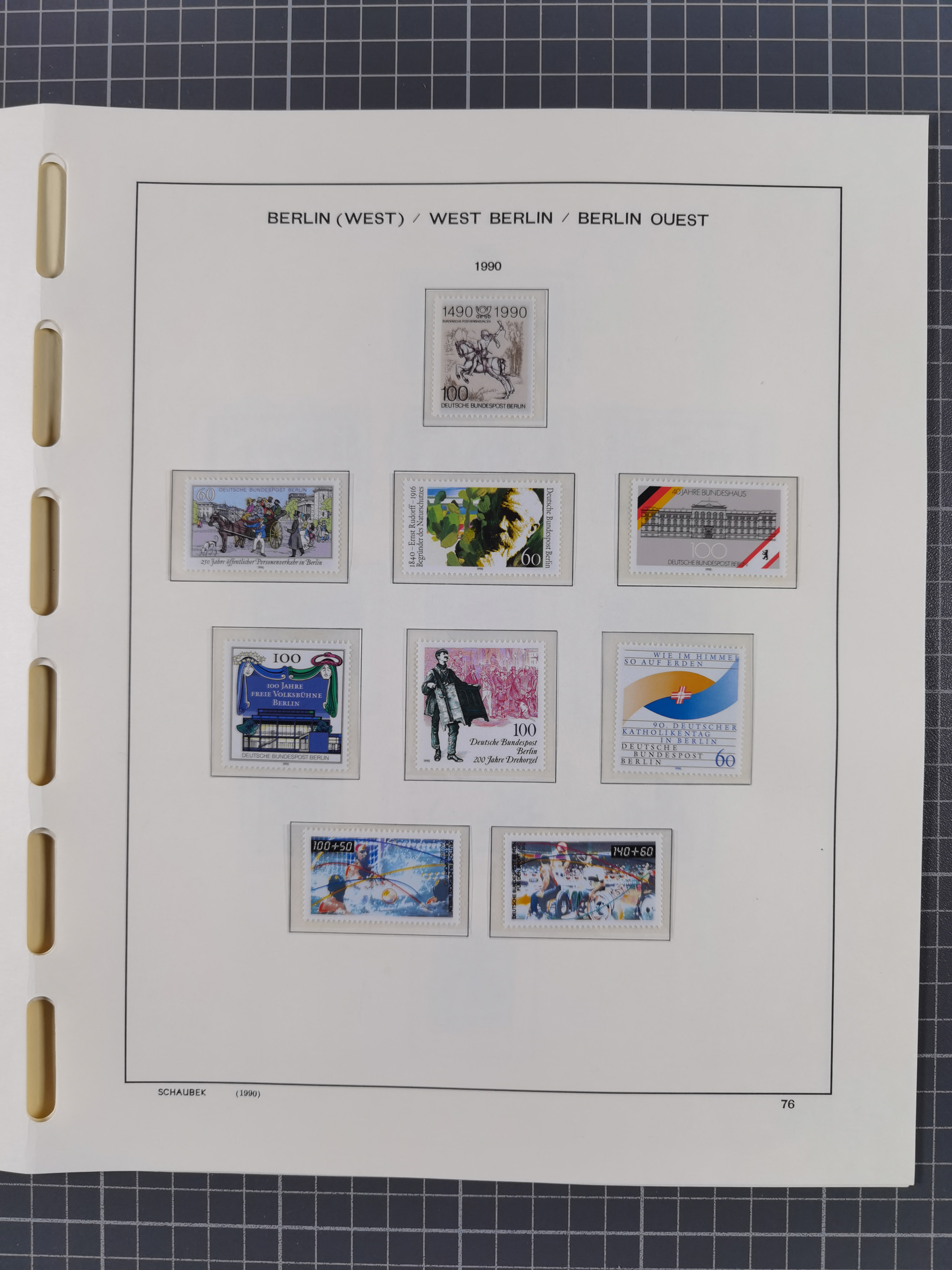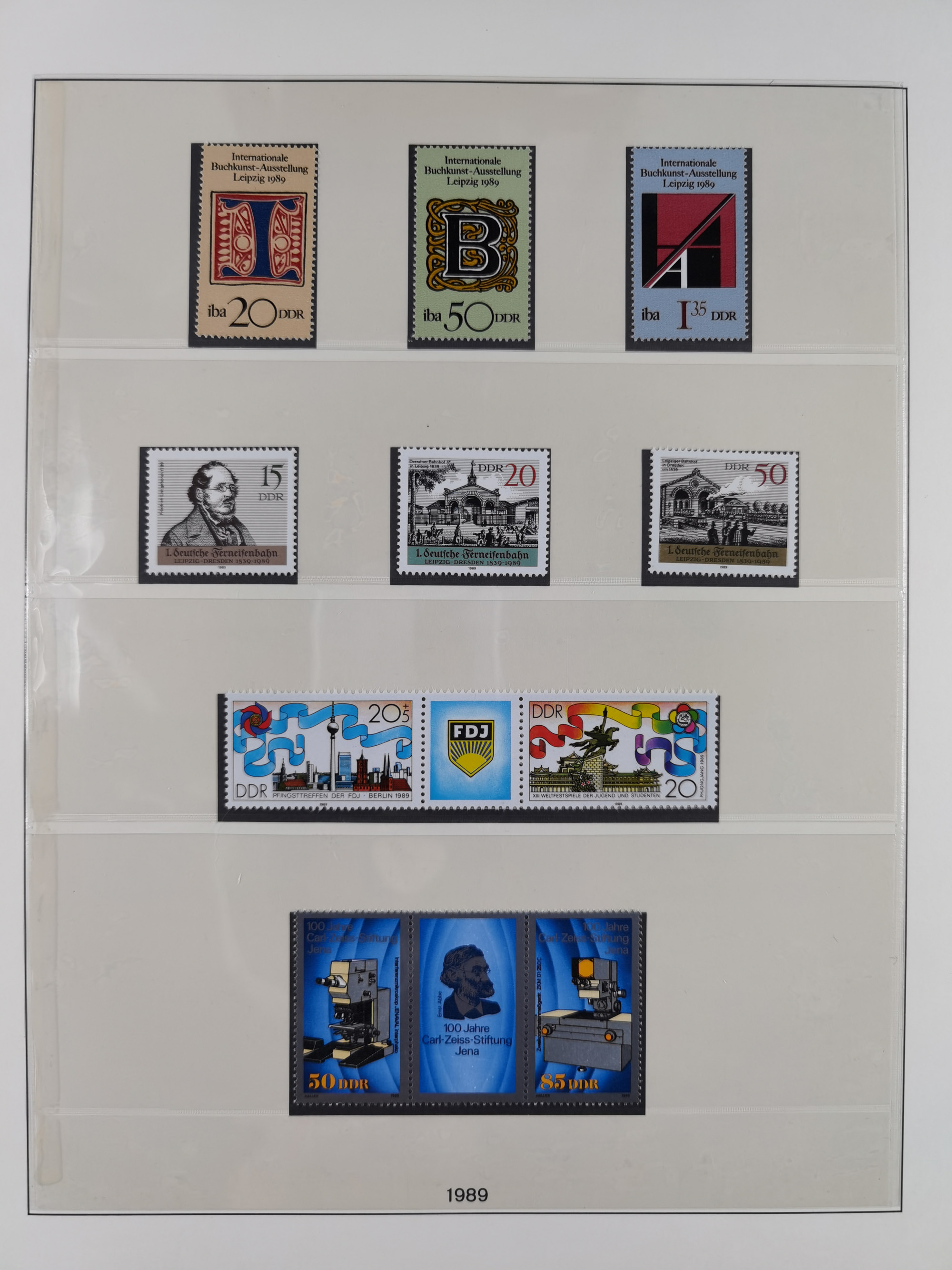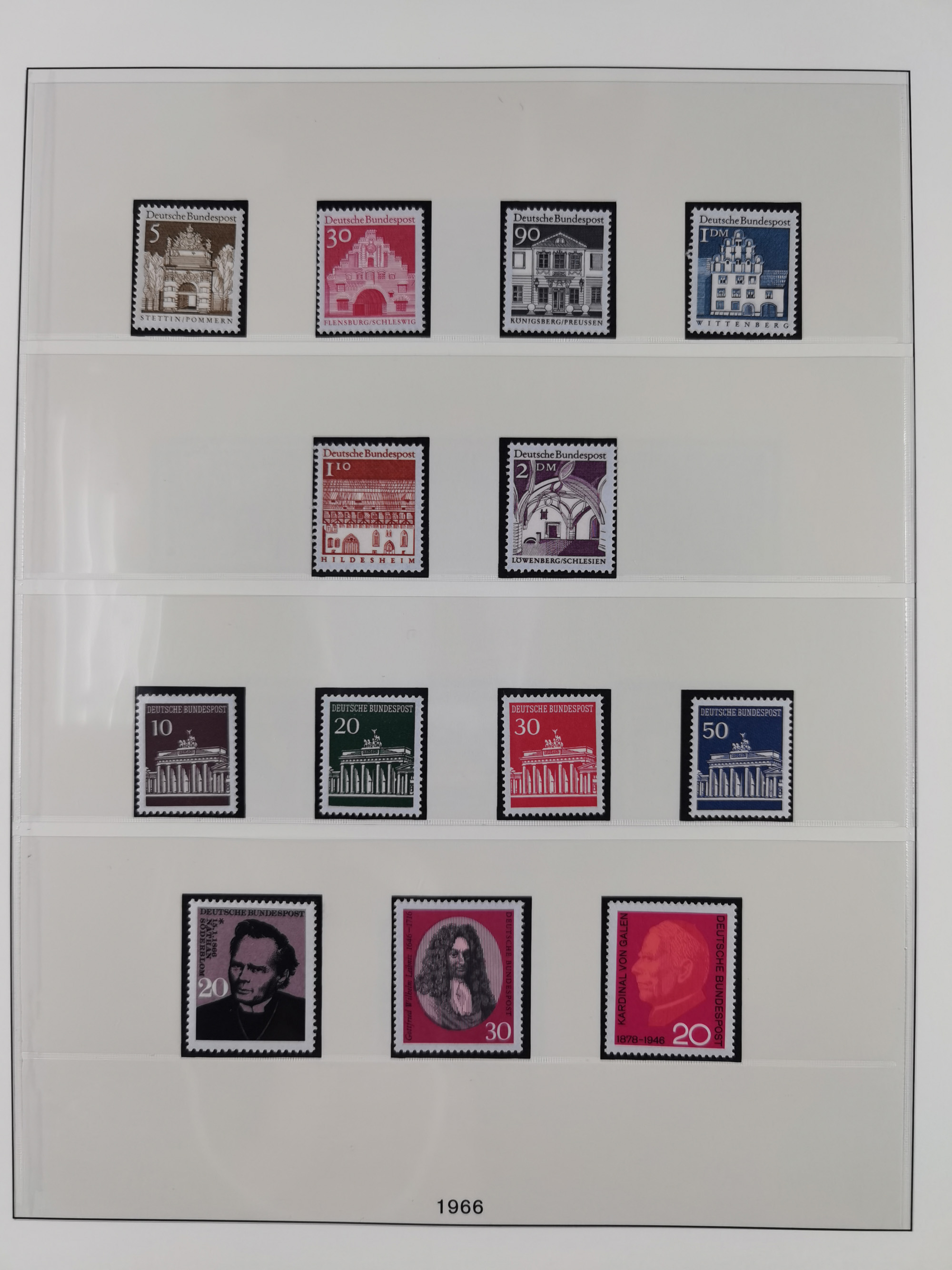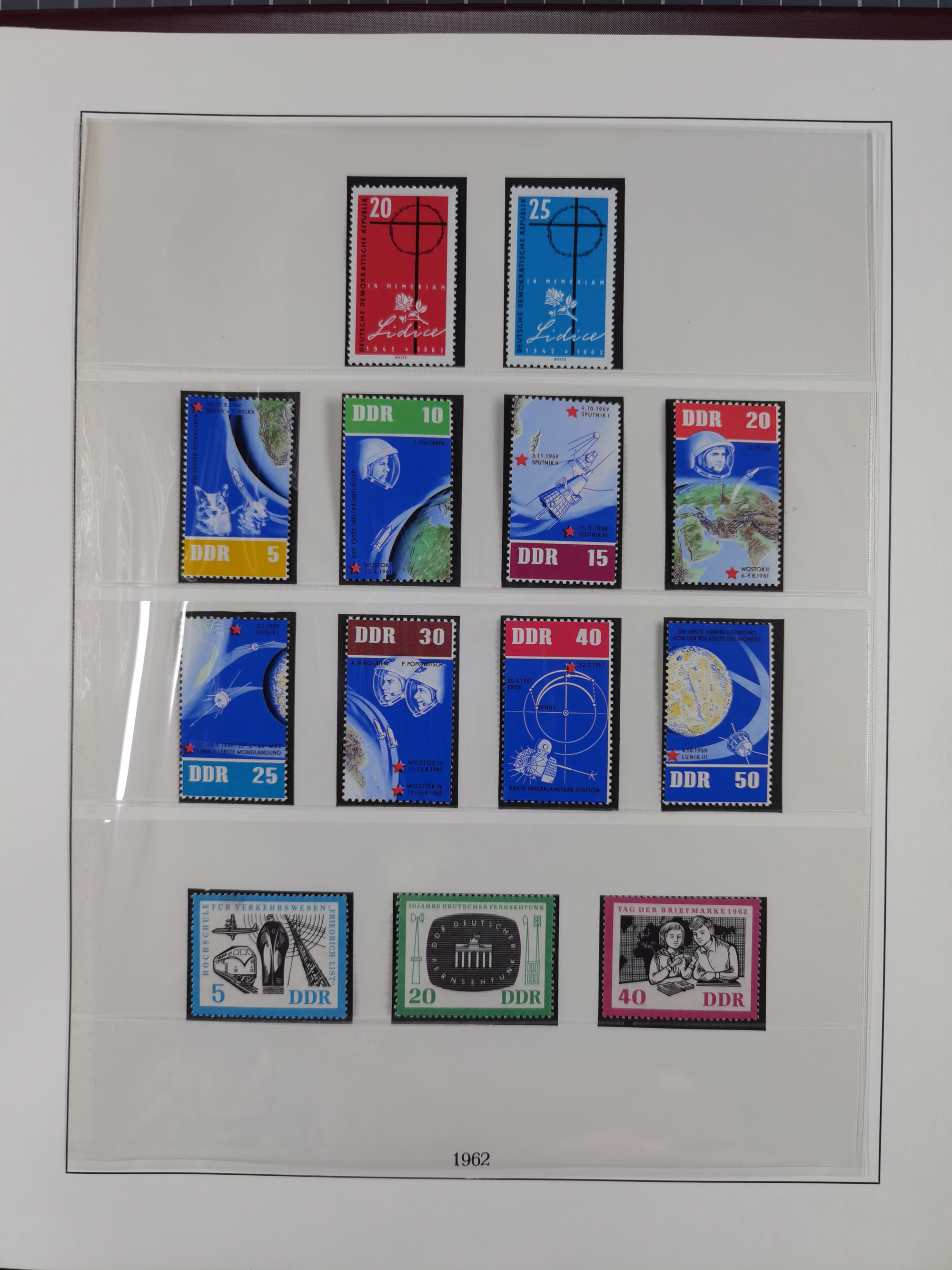 1948/90, in den Hauptnummern bis 1960 komplette postfrische Sammlungen Berlin 1948-90 inkl. Schwarzaufdruck, Rotaufdruck sign. Dub und Block 1, Bundesrepublik 1949-72 inkl. Posthornsatz, sowie DDR 1949-71 inkl. ausgiebigen Teilen Zusammendrucke, es fehlen bei den späten modernen Ausgaben teils einzelne Werte oder Sätze, gute Erhaltung, Alben mit Lagerspuren, in 11 Vordruckalben
