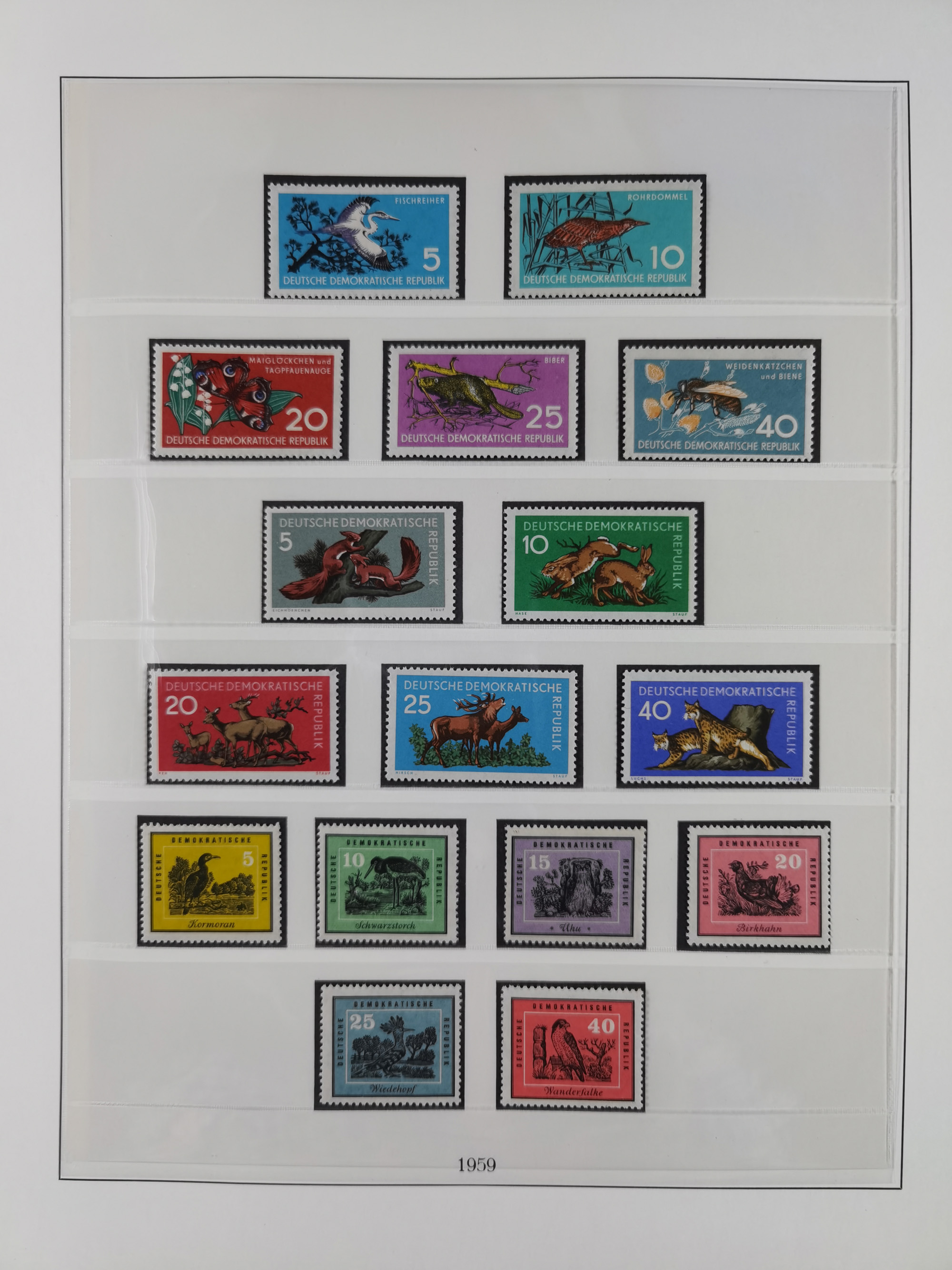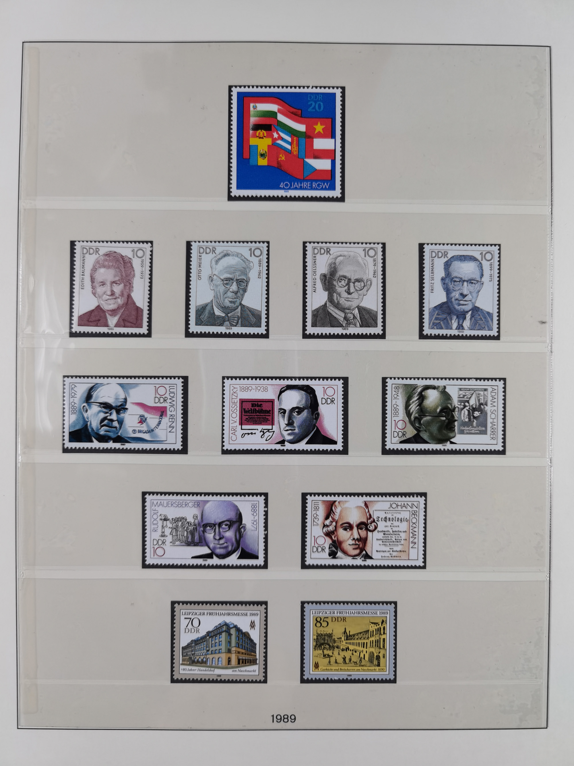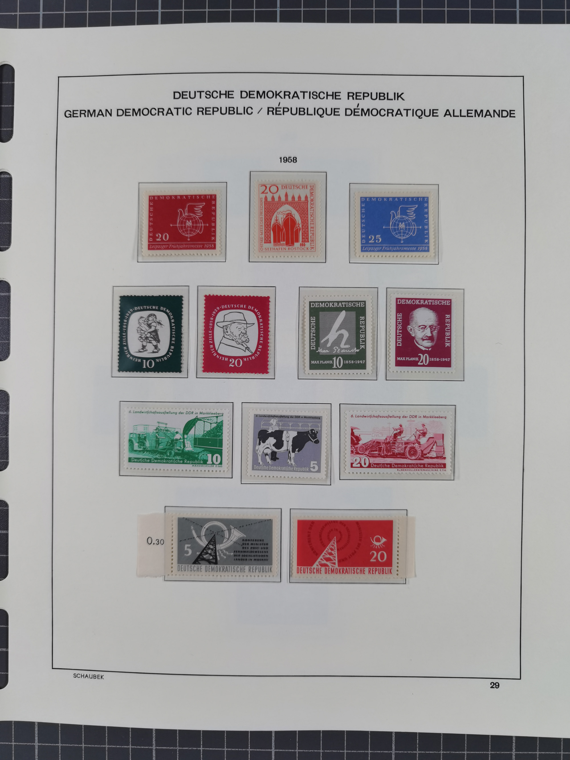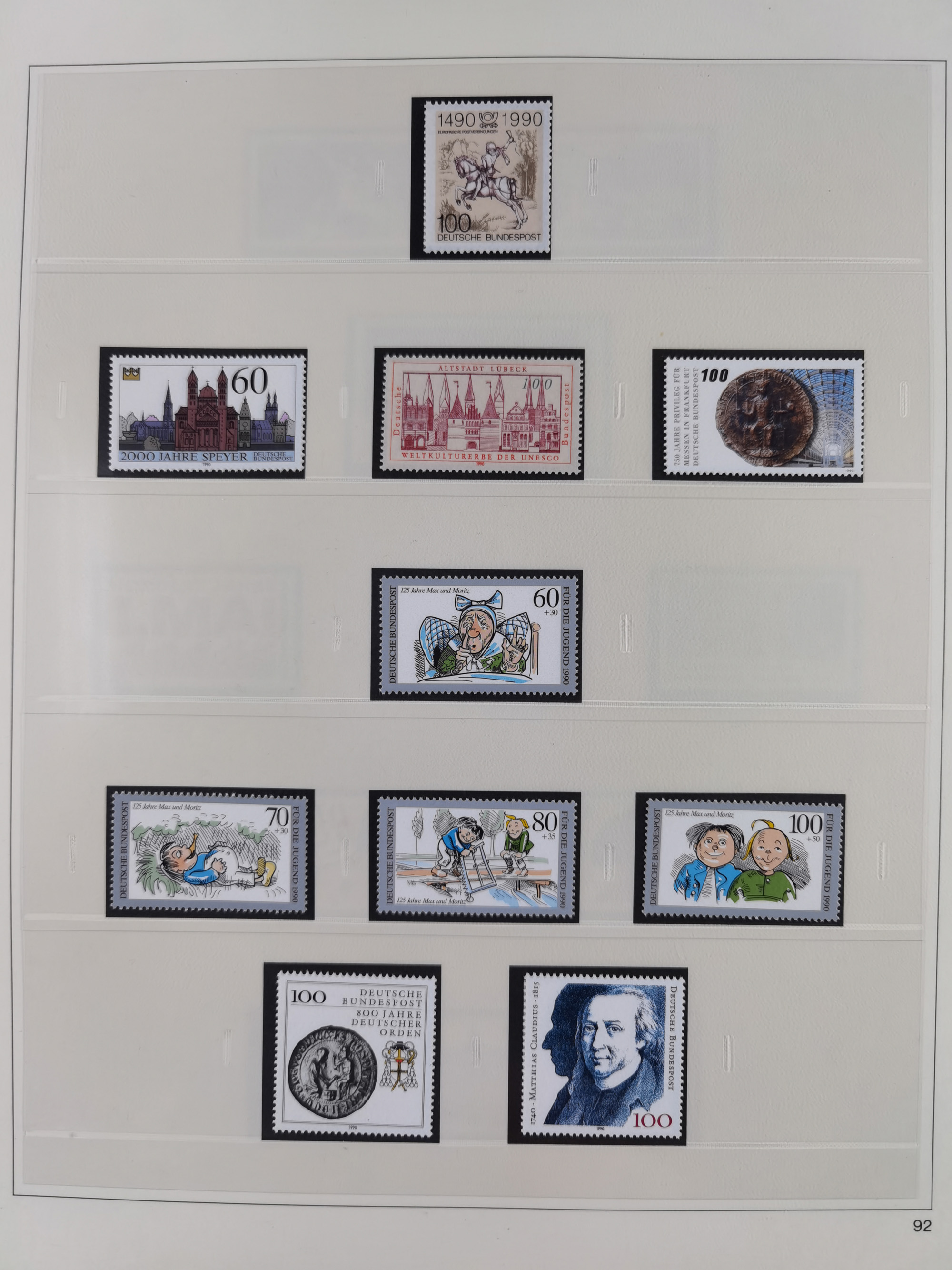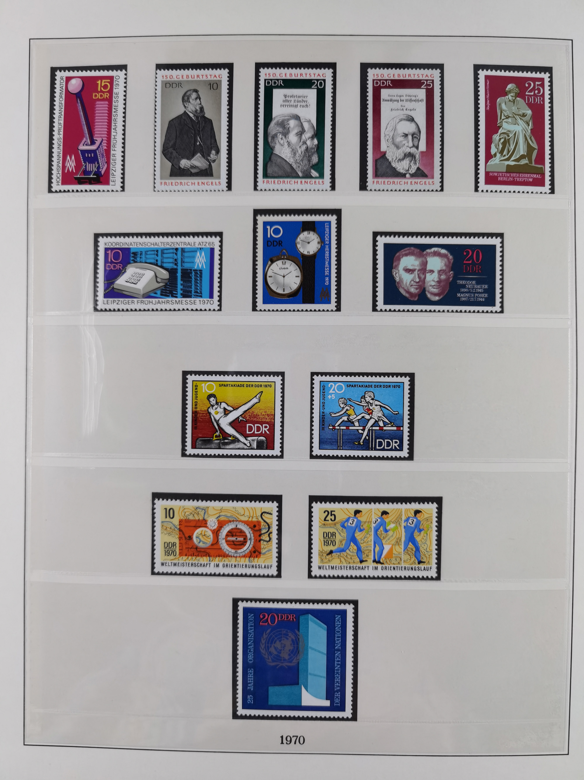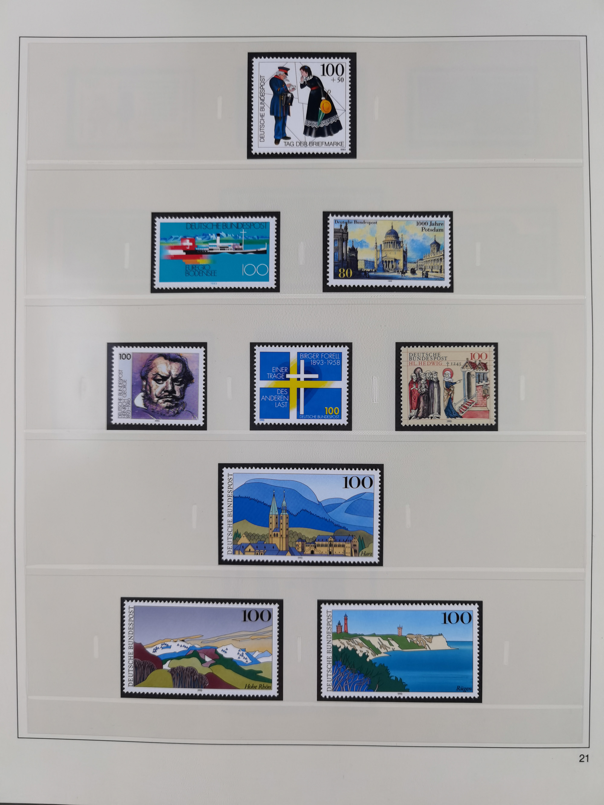 1948/90, in den Hauptnummern bis 1960 komplette postfrische Sammlungen Berlin 1948-90 inkl. Schwarzaufdruck, Rotaufdruck sign. Dub und Block 1, Bundesrepublik 1949-72 inkl. Posthornsatz, sowie DDR 1949-71 inkl. ausgiebigen Teilen Zusammendrucke, es fehlen bei den späten modernen Ausgaben teils einzelne Werte oder Sätze, gute Erhaltung, Alben mit Lagerspuren, in 11 Vordruckalben