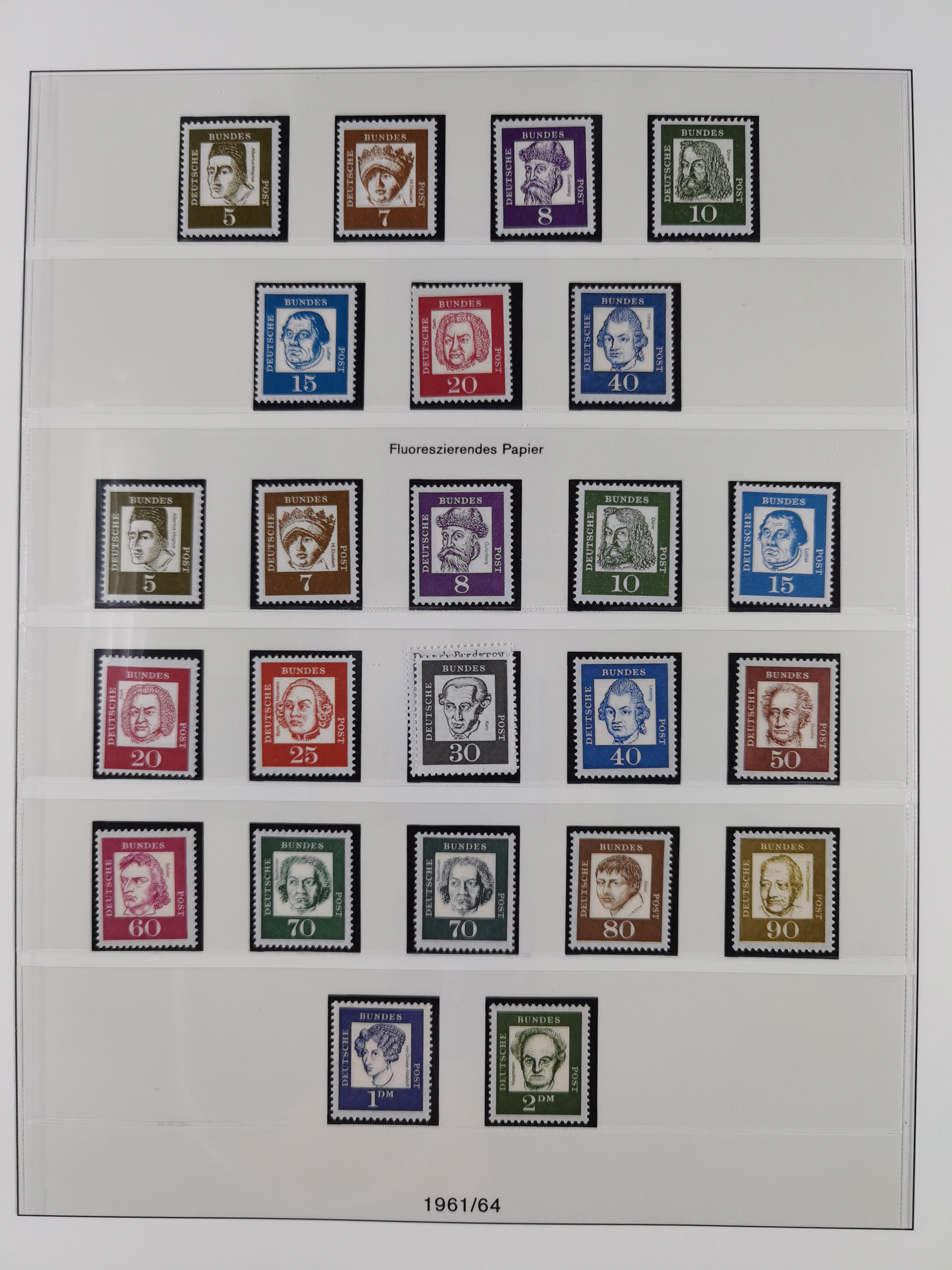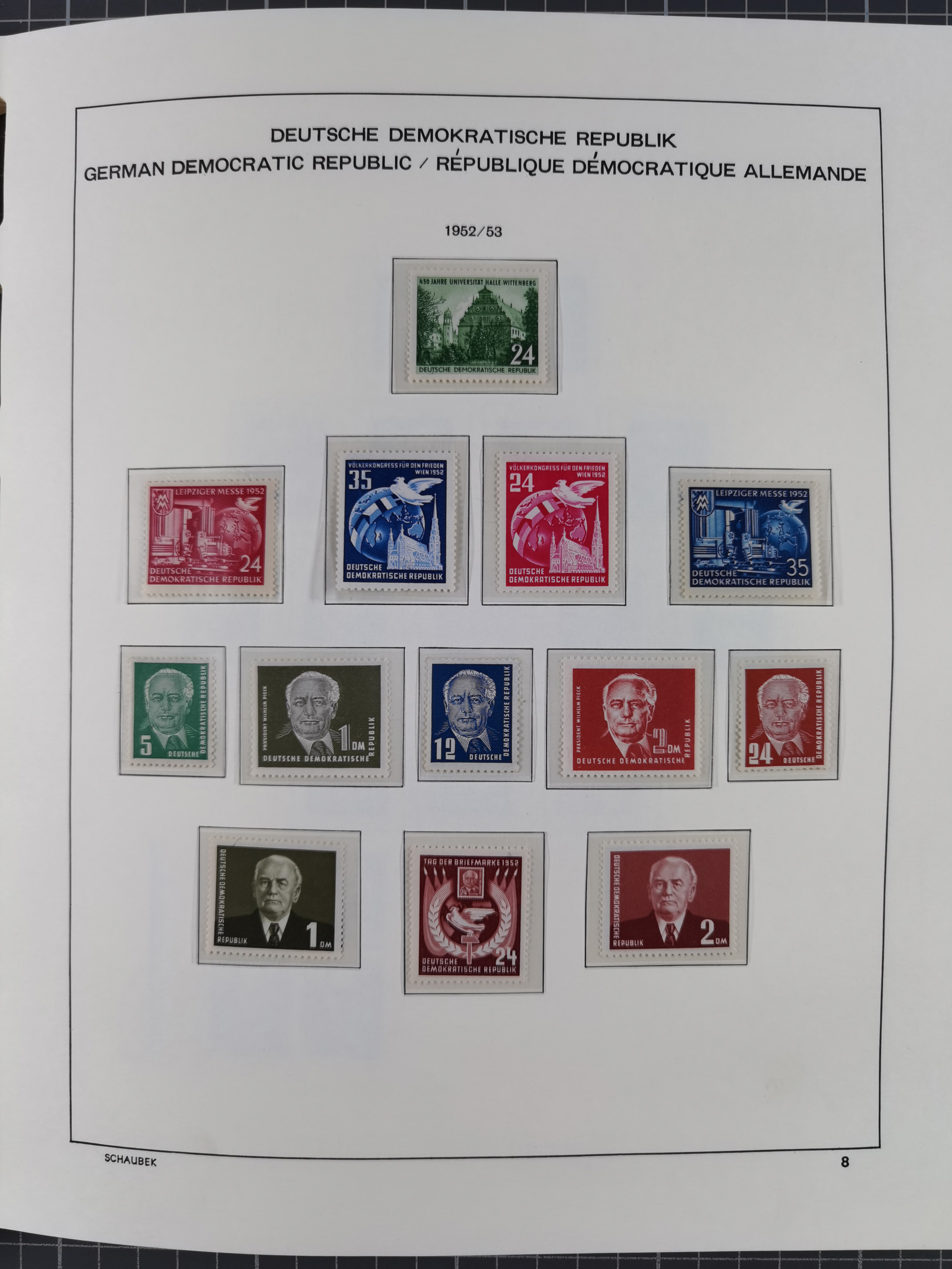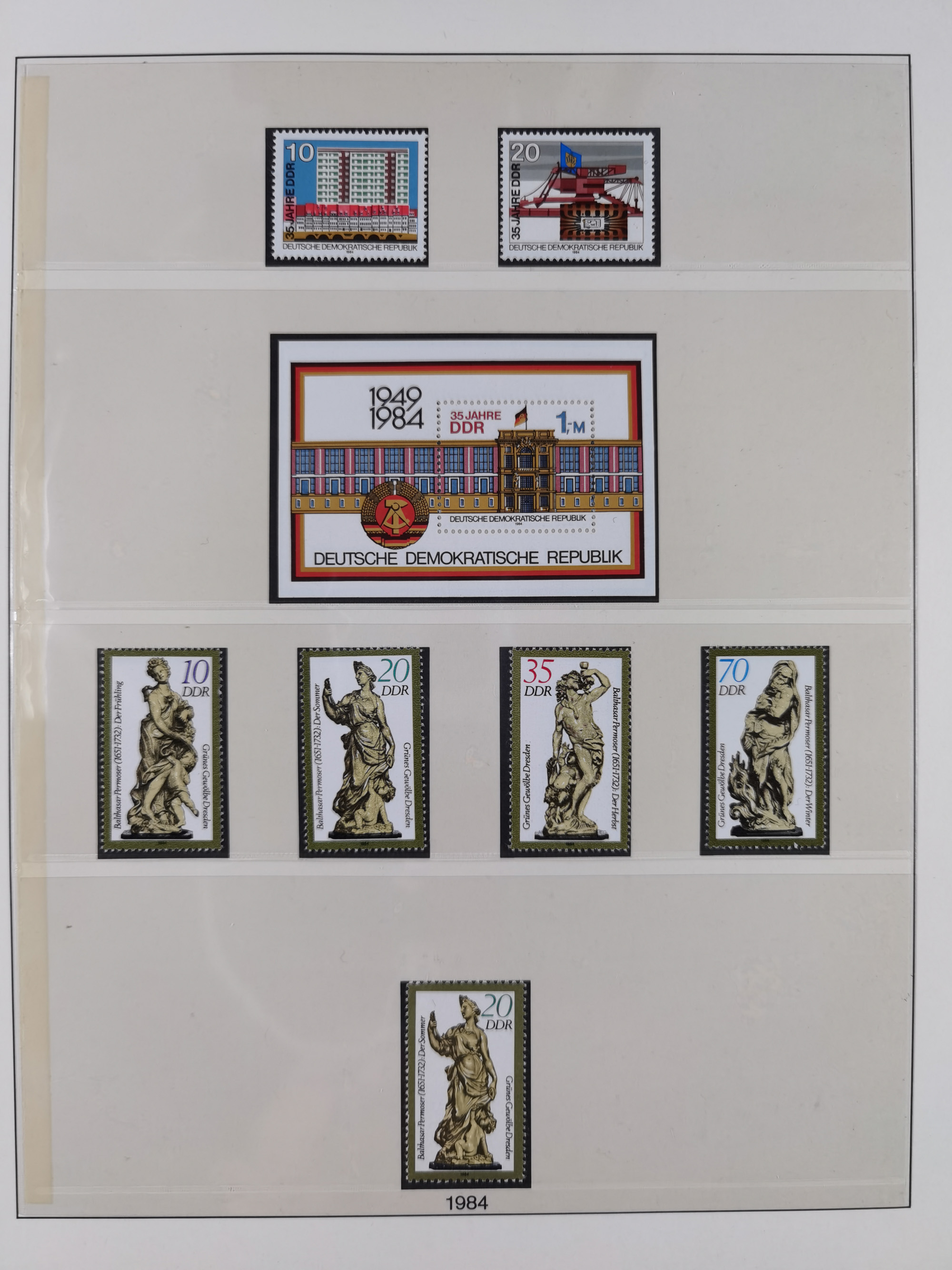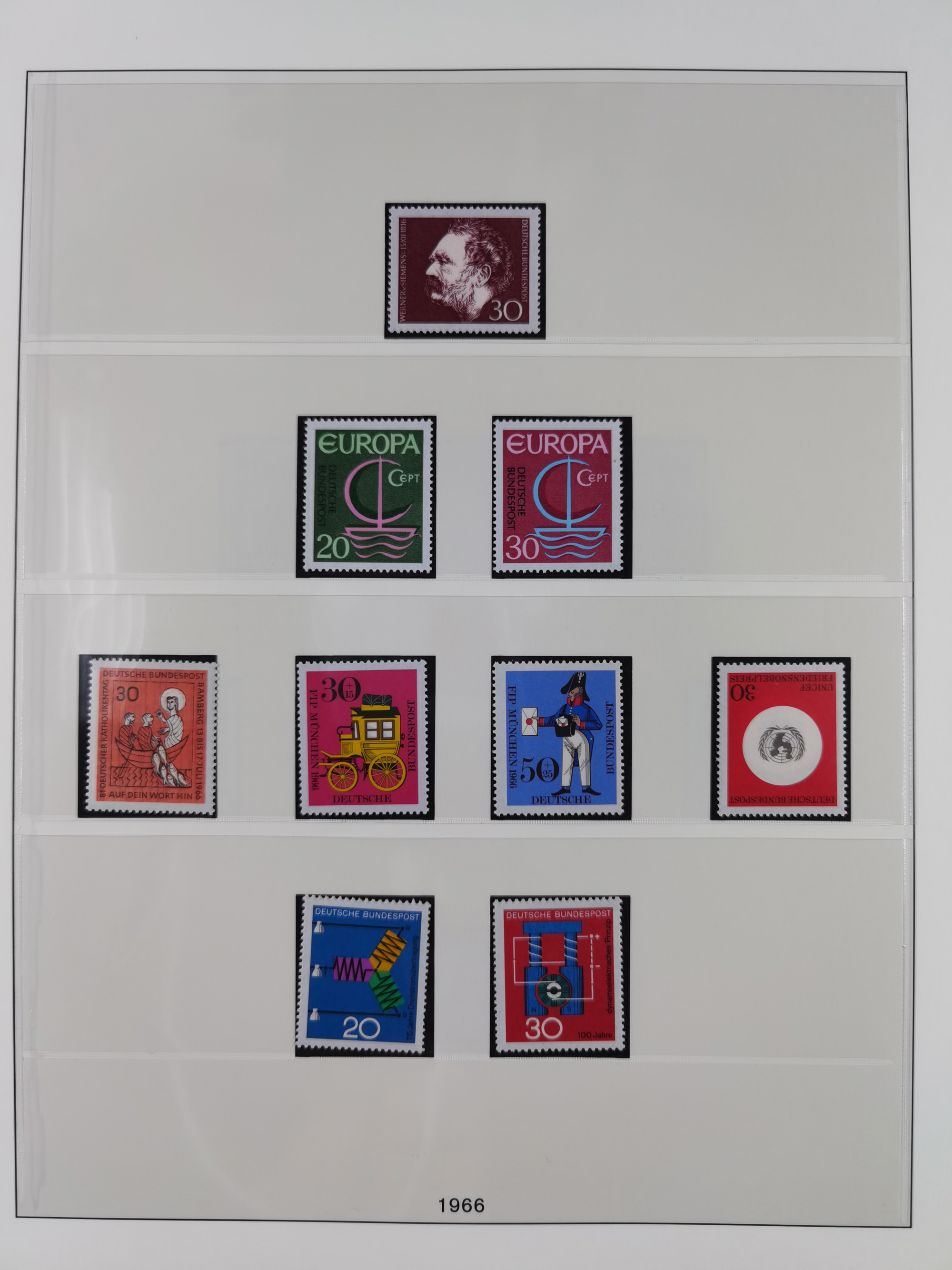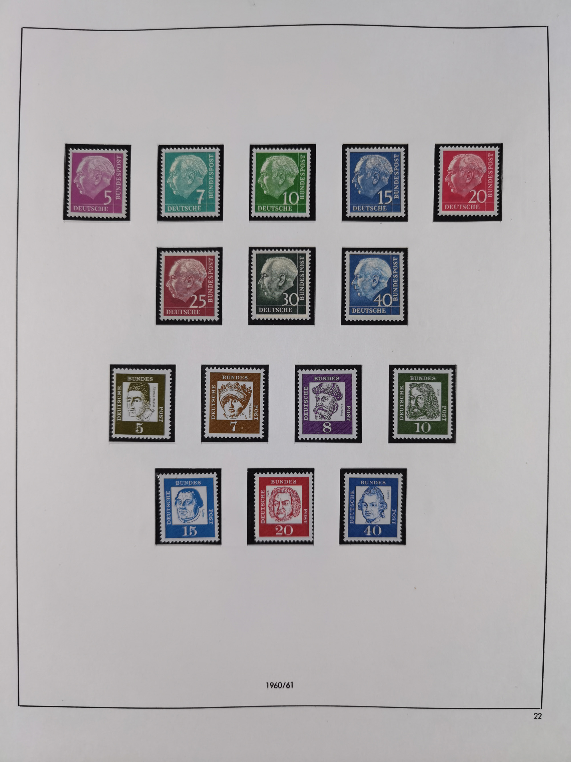1948/90, in den Hauptnummern bis 1960 komplette postfrische Sammlungen Berlin 1948-90 inkl. Schwarzaufdruck, Rotaufdruck sign. Dub und Block 1, Bundesrepublik 1949-72 inkl. Posthornsatz, sowie DDR 1949-71 inkl. ausgiebigen Teilen Zusammendrucke, es fehlen bei den späten modernen Ausgaben teils einzelne Werte oder Sätze, gute Erhaltung, Alben mit Lagerspuren, in 11 Vordruckalben