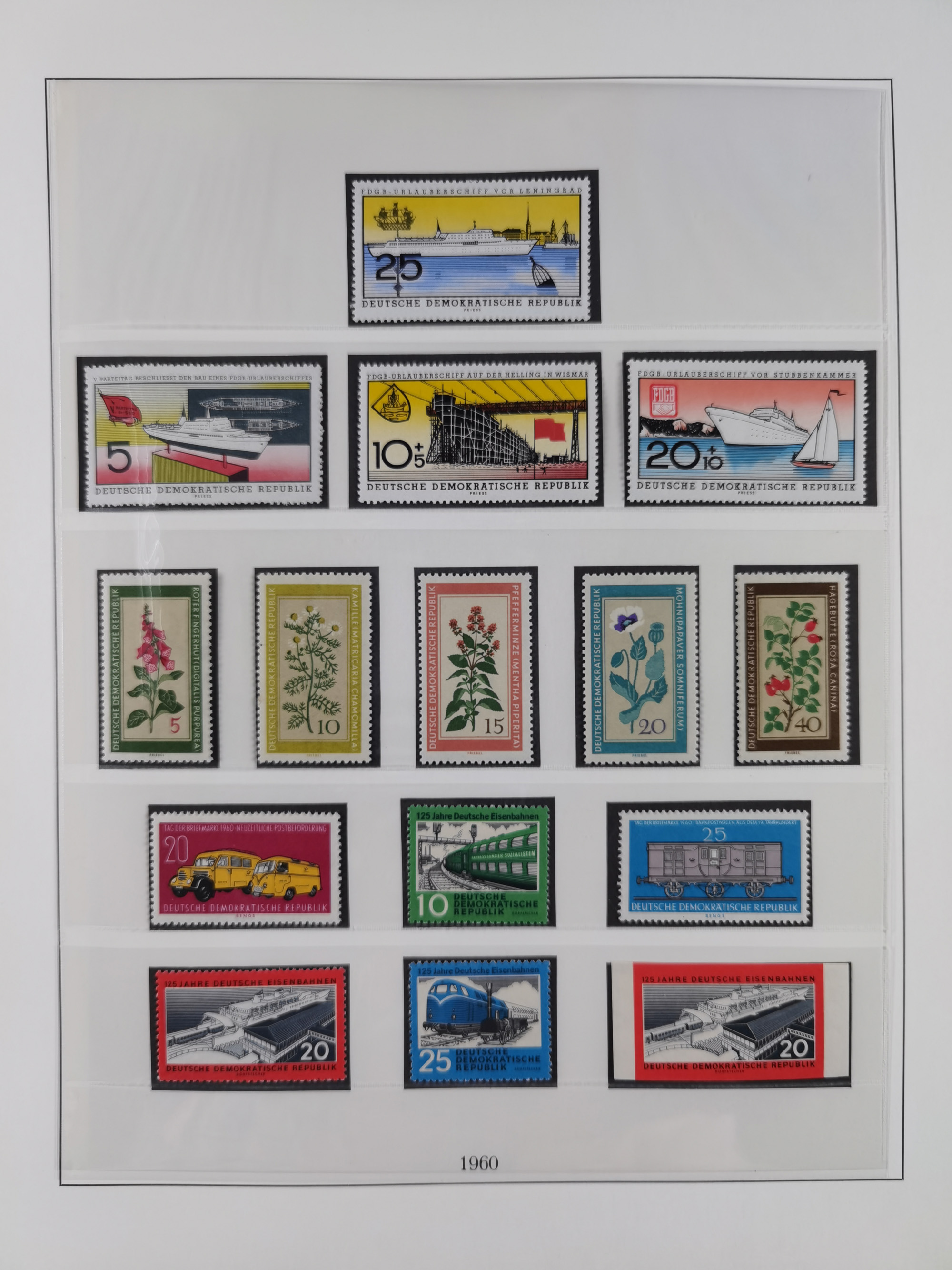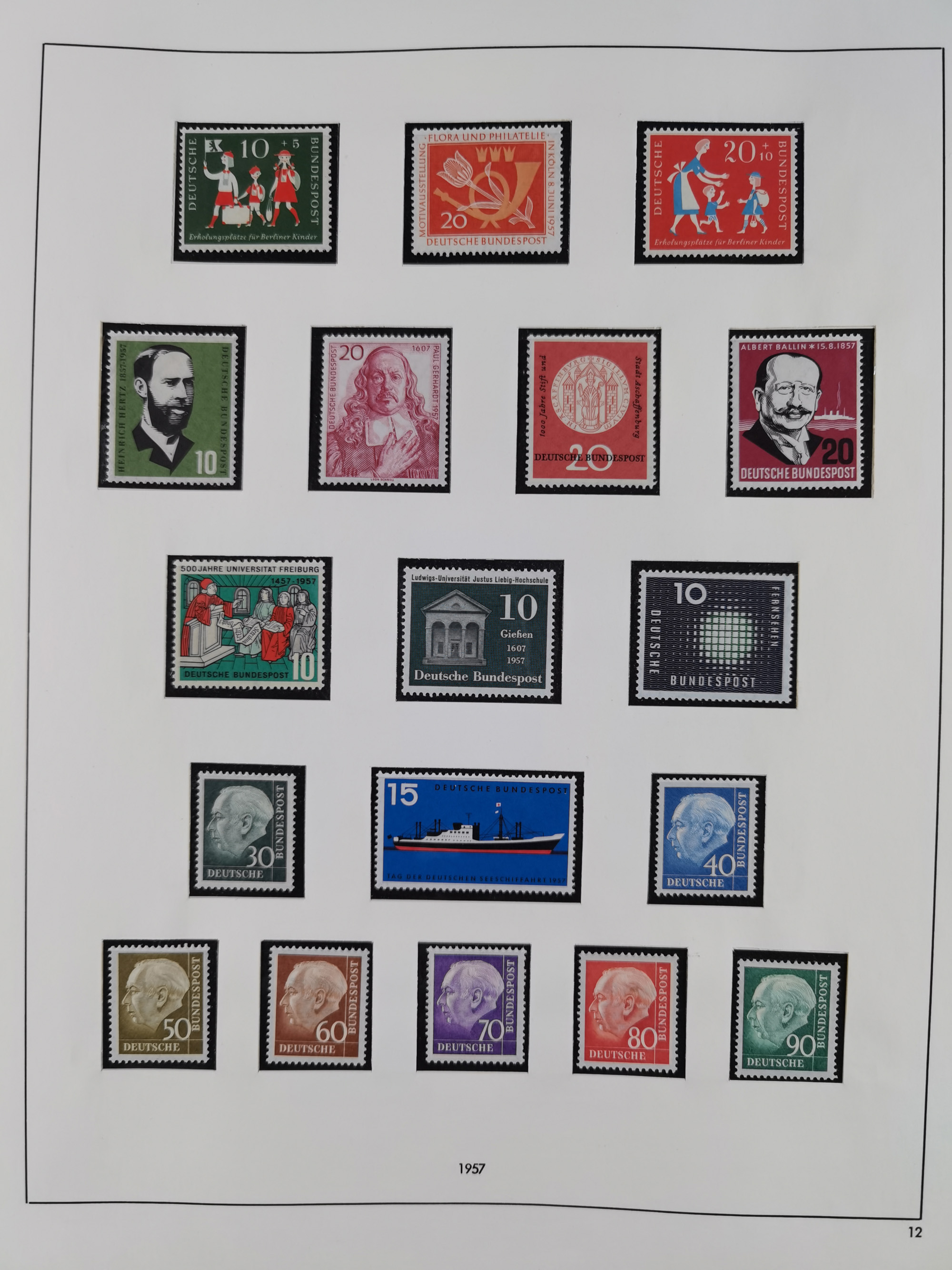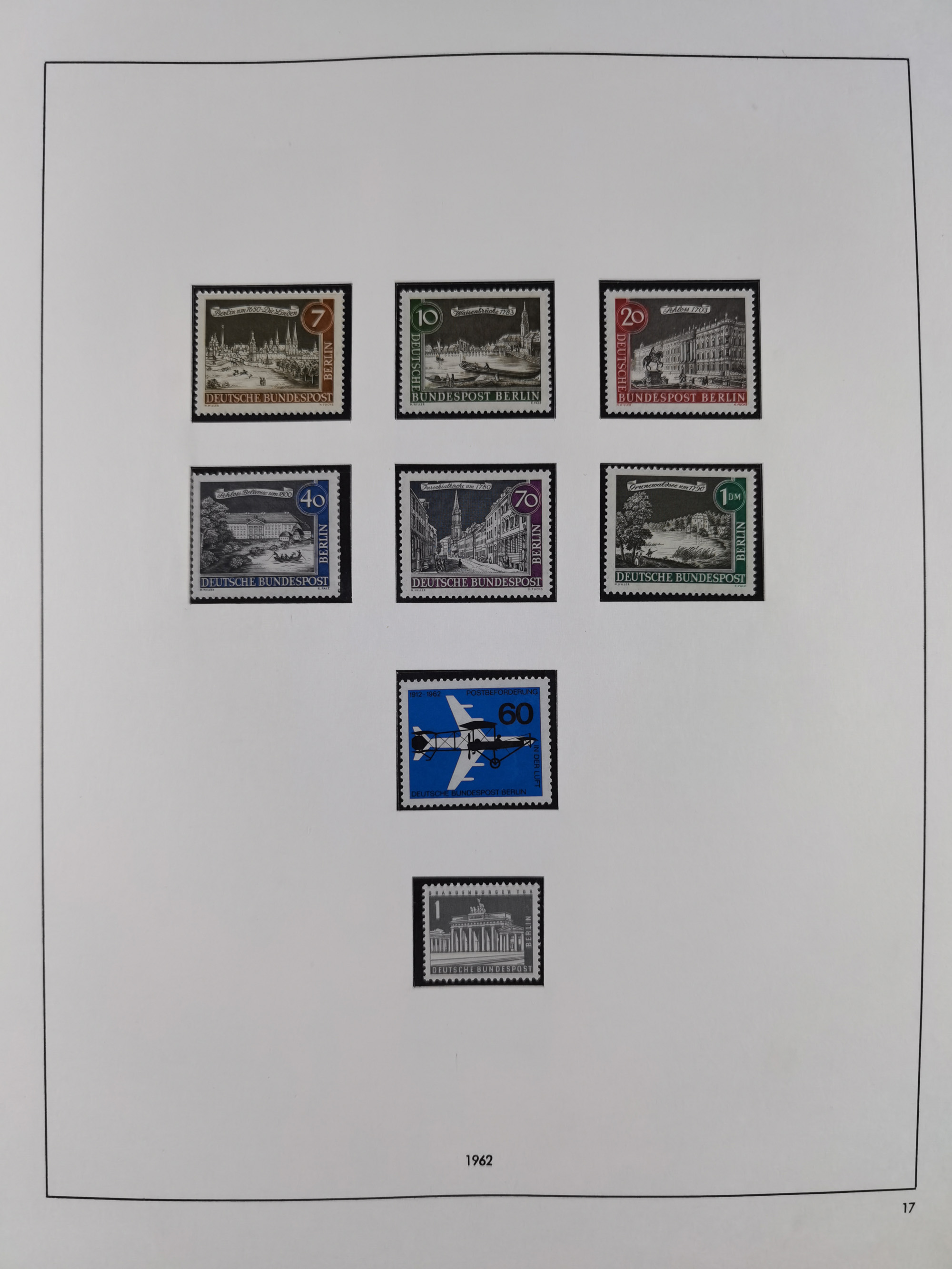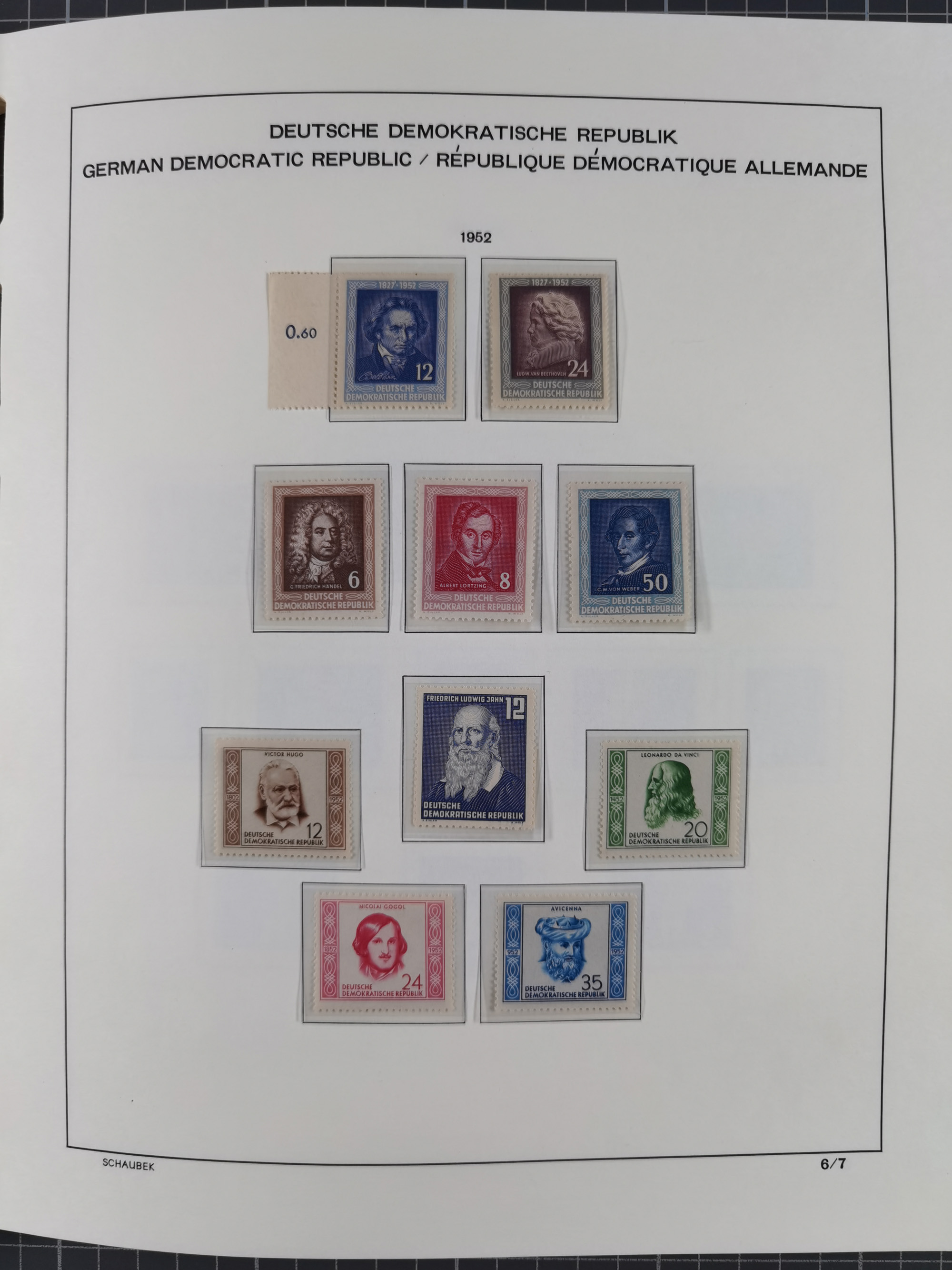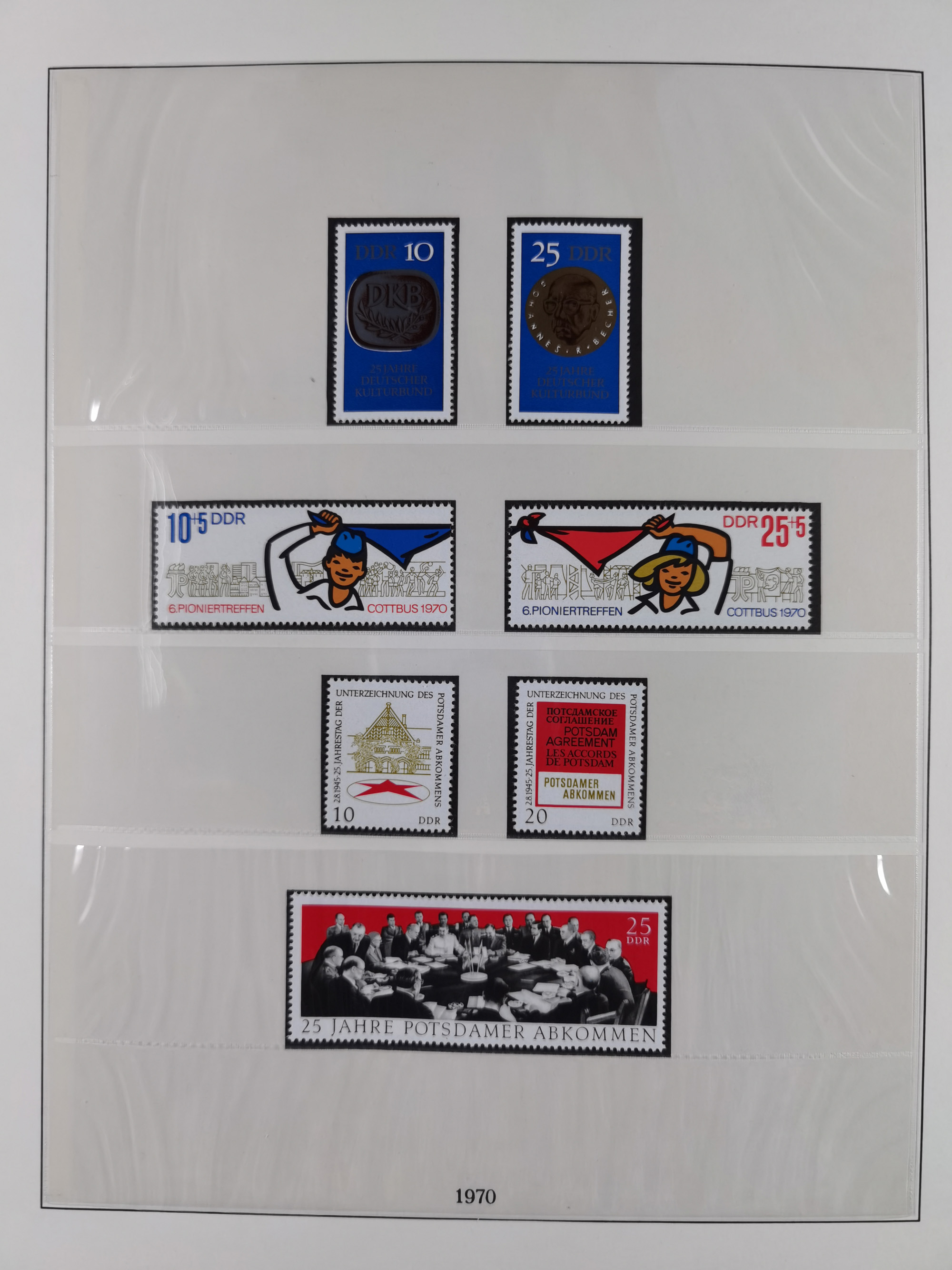 1948/90, in den Hauptnummern bis 1960 komplette postfrische Sammlungen Berlin 1948-90 inkl. Schwarzaufdruck, Rotaufdruck sign. Dub und Block 1, Bundesrepublik 1949-72 inkl. Posthornsatz, sowie DDR 1949-71 inkl. ausgiebigen Teilen Zusammendrucke, es fehlen bei den späten modernen Ausgaben teils einzelne Werte oder Sätze, gute Erhaltung, Alben mit Lagerspuren, in 11 Vordruckalben