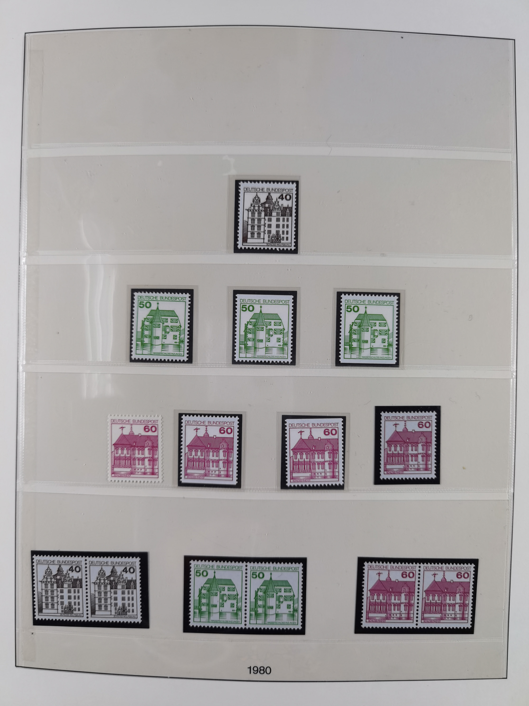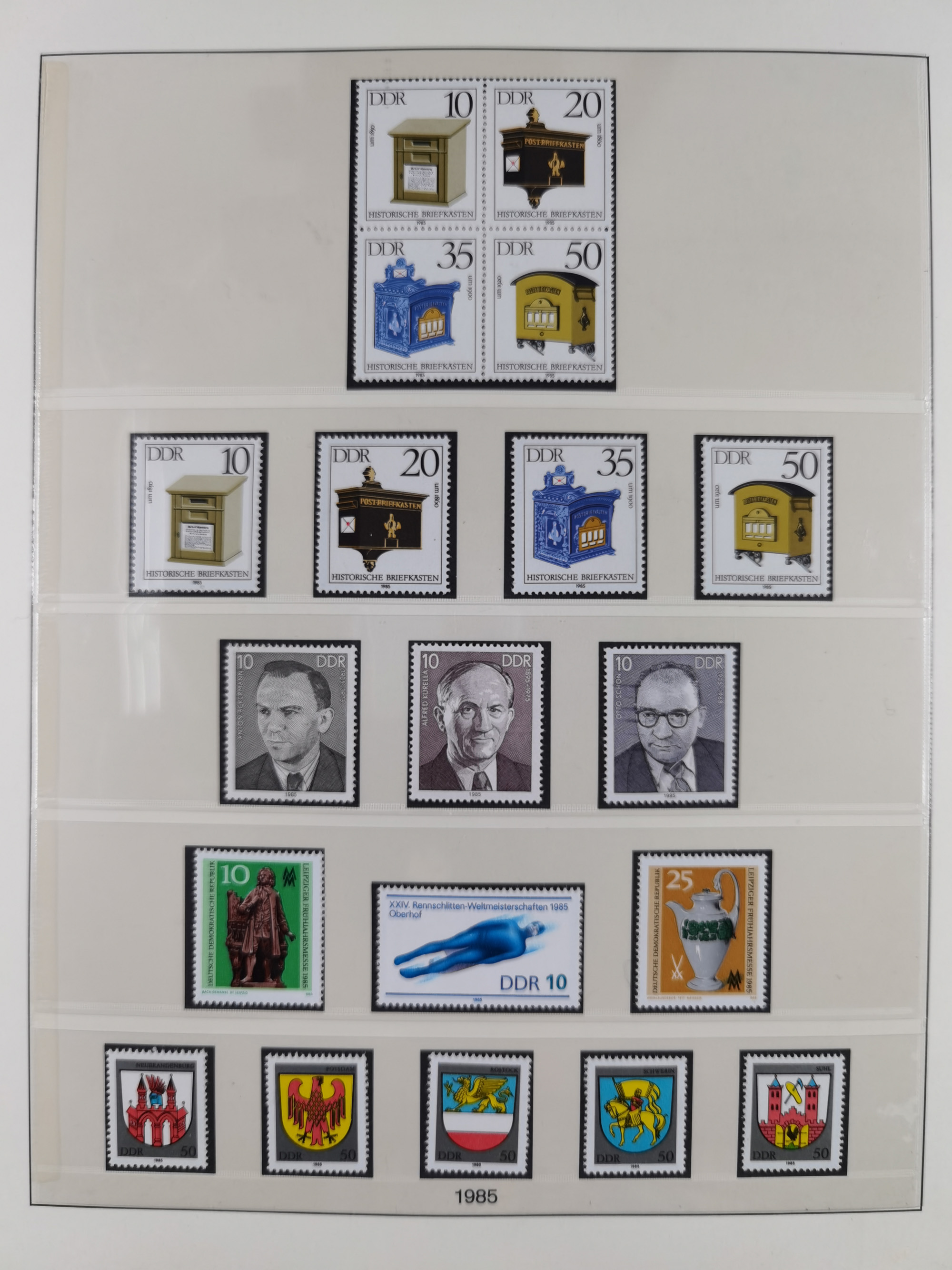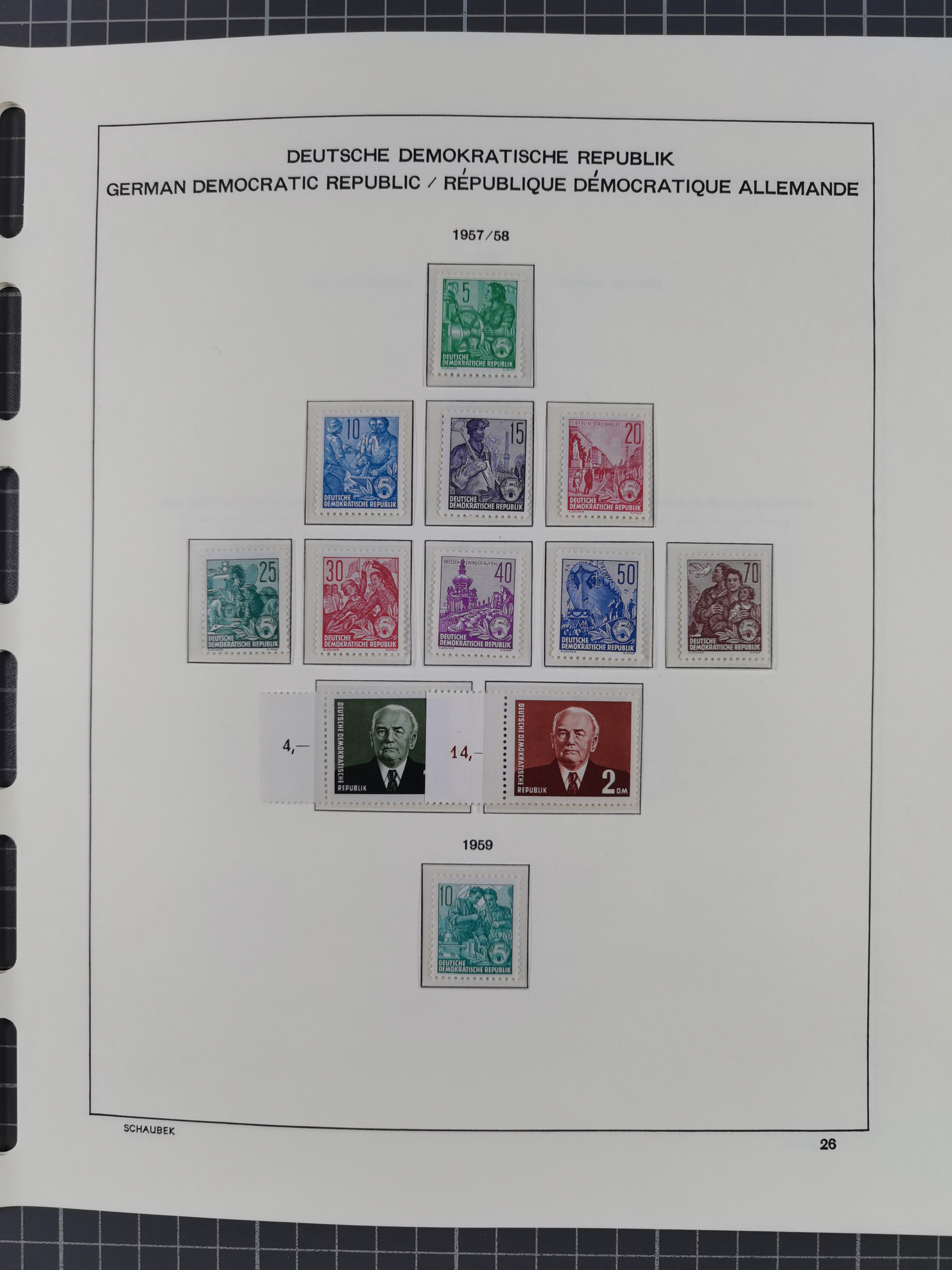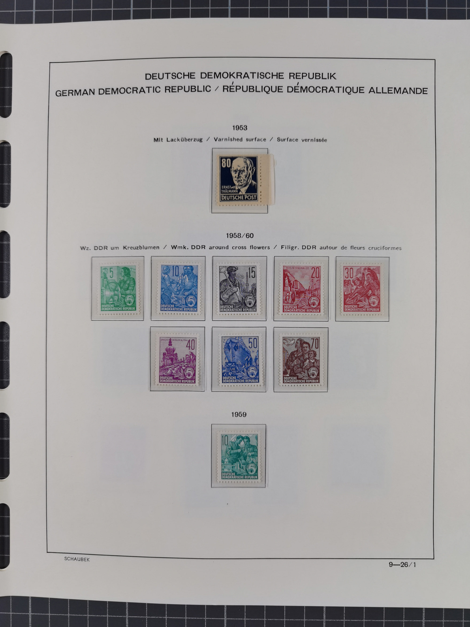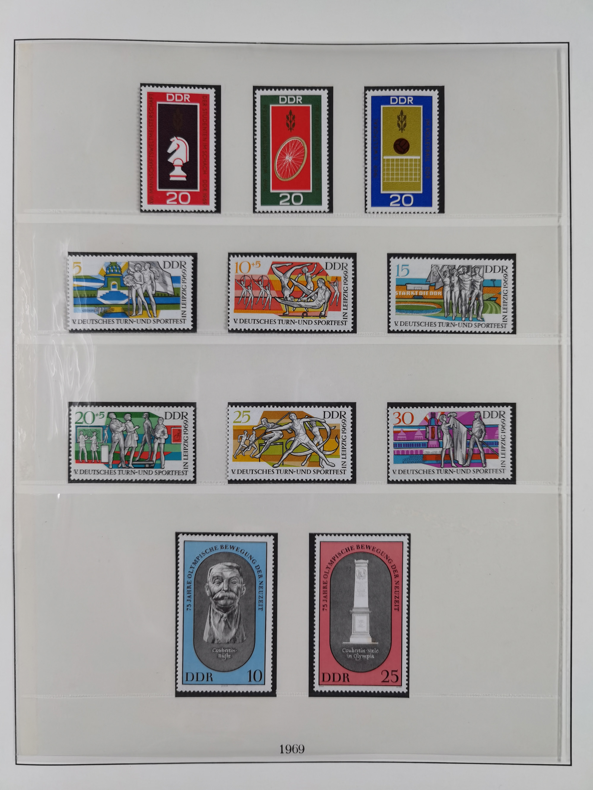 1948/90, in den Hauptnummern bis 1960 komplette postfrische Sammlungen Berlin 1948-90 inkl. Schwarzaufdruck, Rotaufdruck sign. Dub und Block 1, Bundesrepublik 1949-72 inkl. Posthornsatz, sowie DDR 1949-71 inkl. ausgiebigen Teilen Zusammendrucke, es fehlen bei den späten modernen Ausgaben teils einzelne Werte oder Sätze, gute Erhaltung, Alben mit Lagerspuren, in 11 Vordruckalben