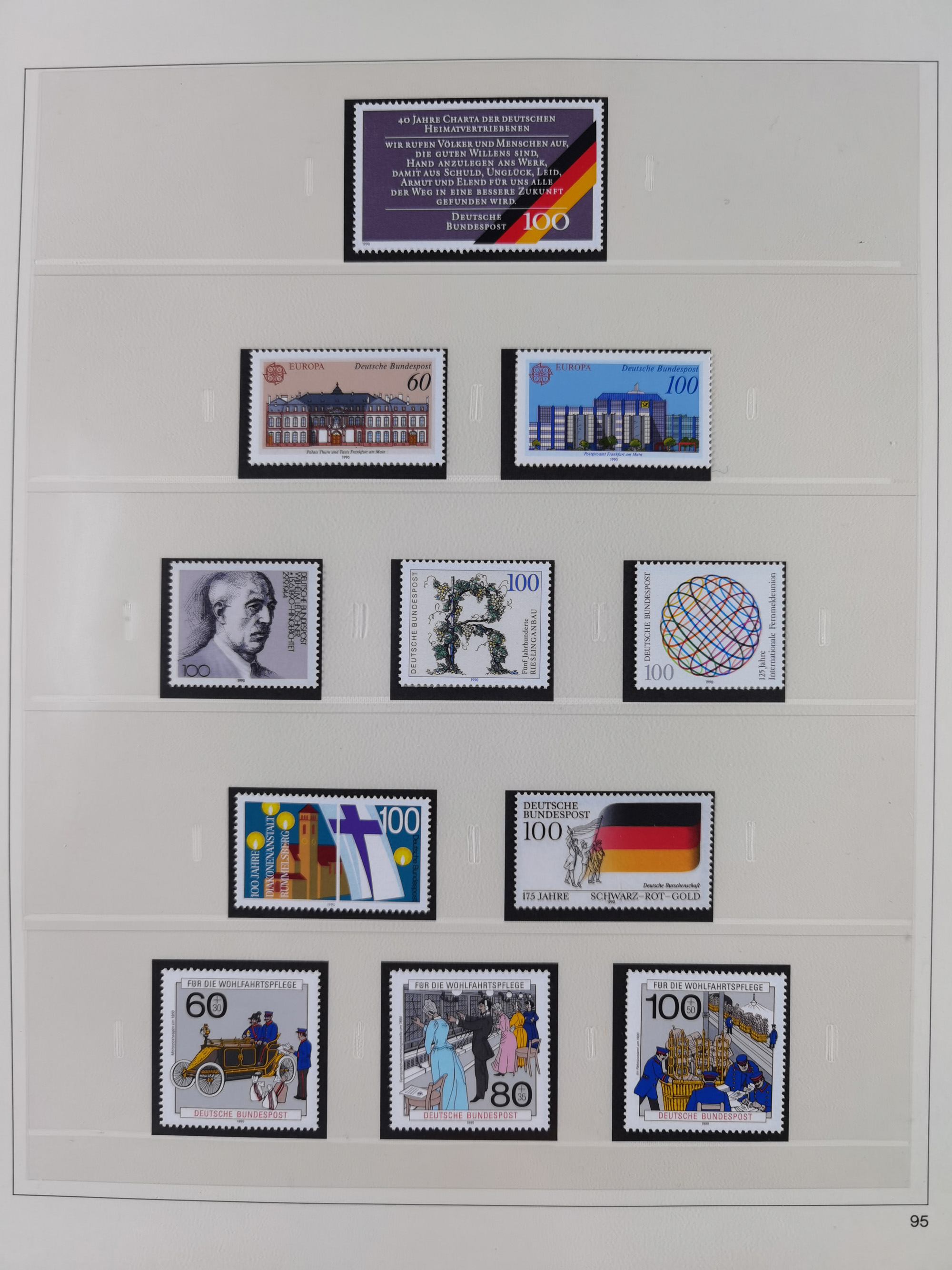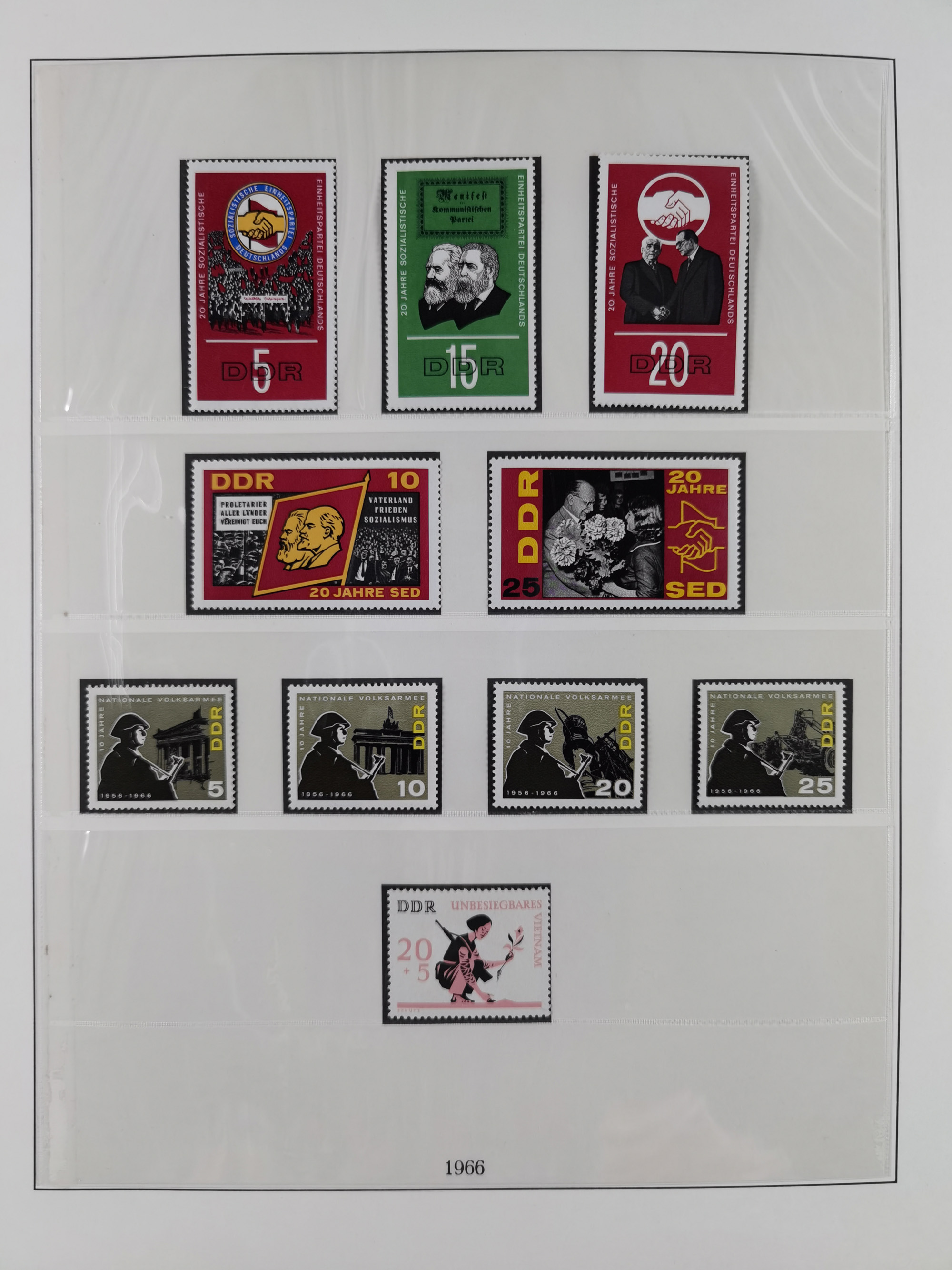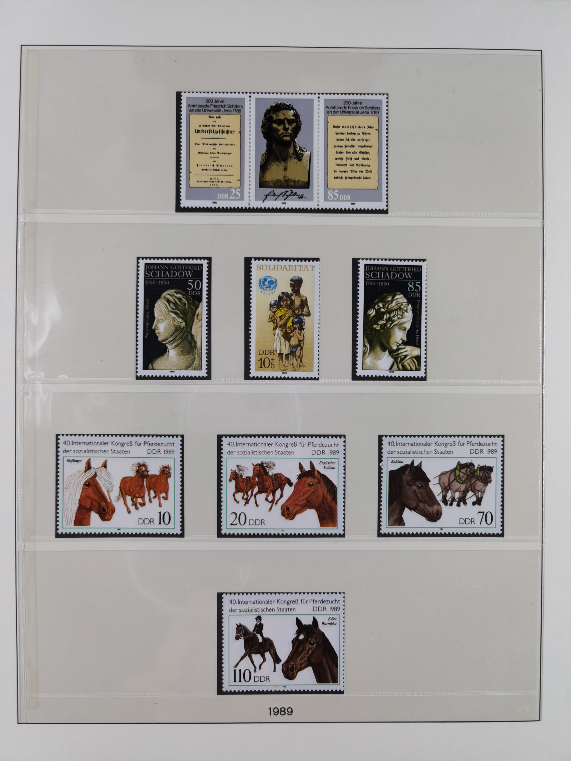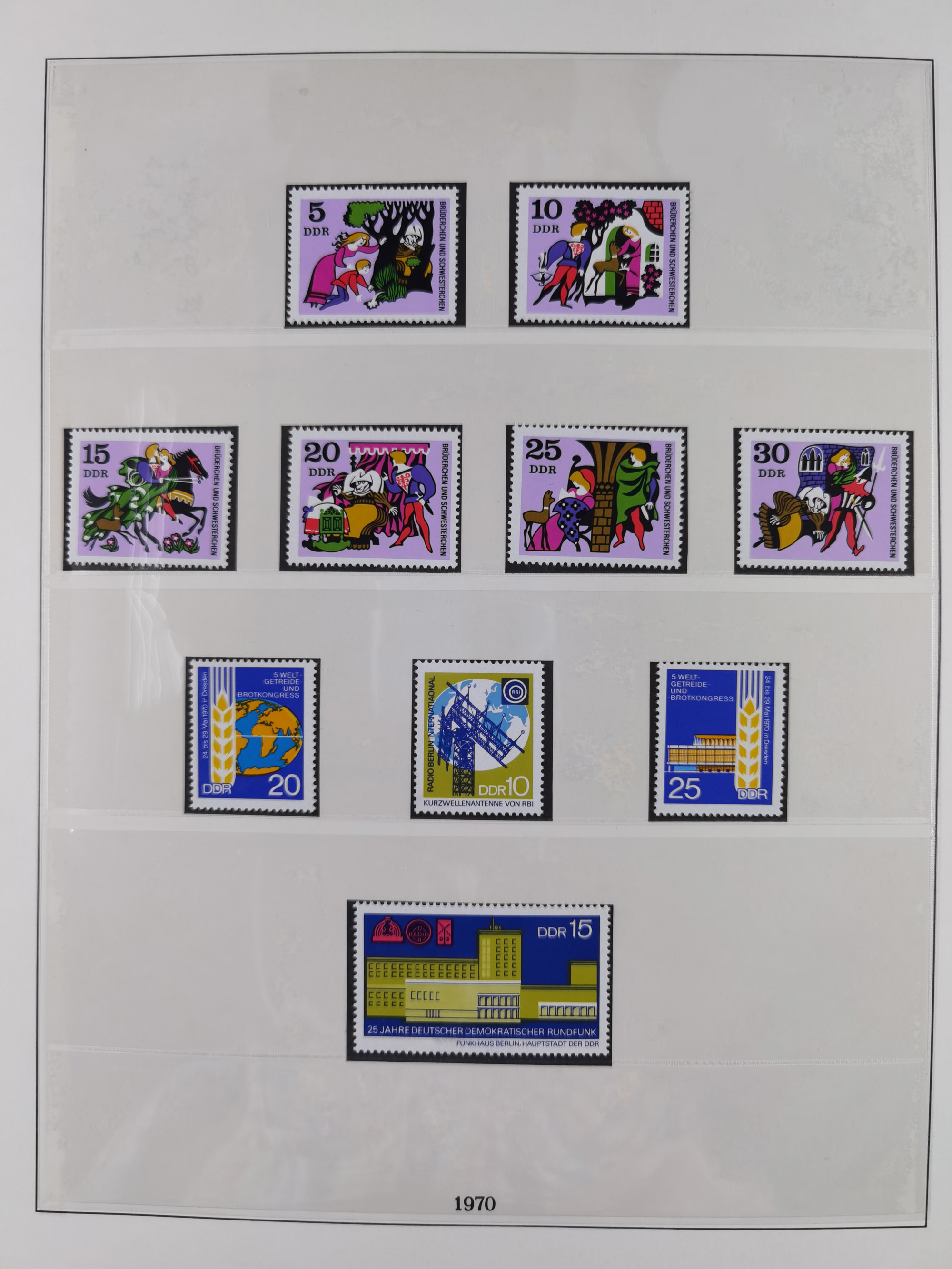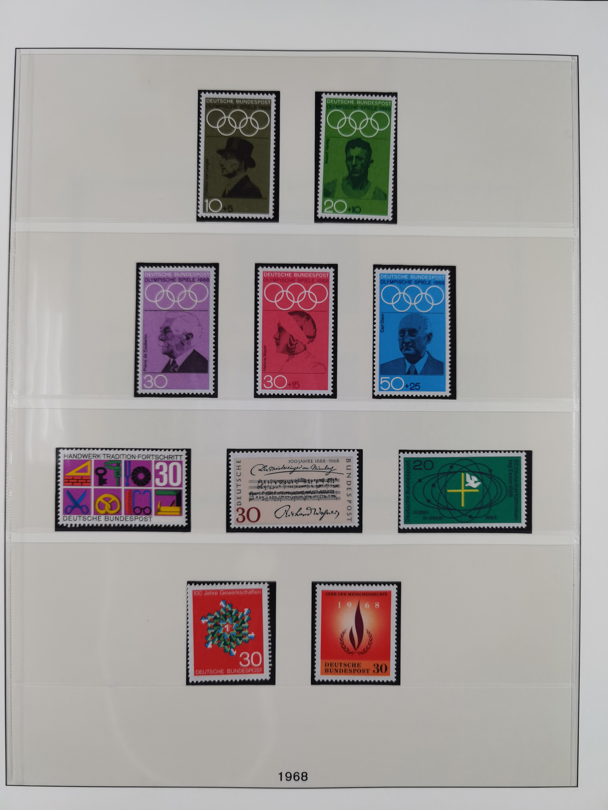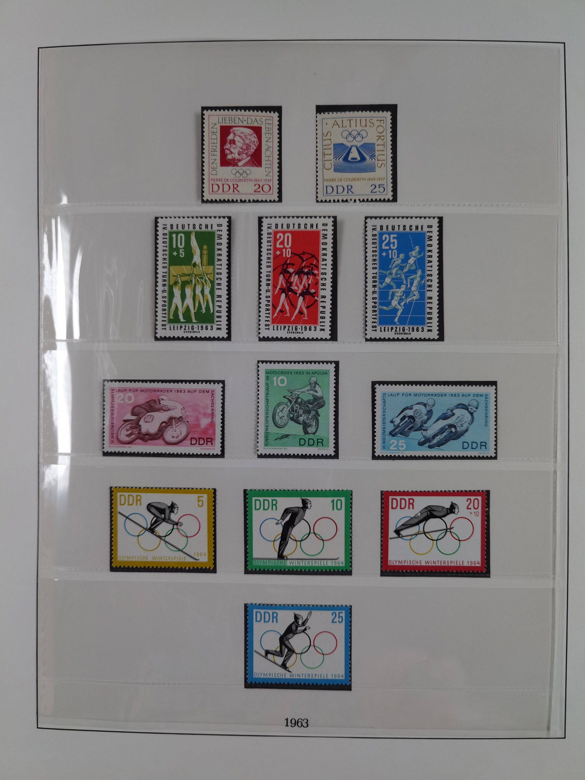 1948/90, in den Hauptnummern bis 1960 komplette postfrische Sammlungen Berlin 1948-90 inkl. Schwarzaufdruck, Rotaufdruck sign. Dub und Block 1, Bundesrepublik 1949-72 inkl. Posthornsatz, sowie DDR 1949-71 inkl. ausgiebigen Teilen Zusammendrucke, es fehlen bei den späten modernen Ausgaben teils einzelne Werte oder Sätze, gute Erhaltung, Alben mit Lagerspuren, in 11 Vordruckalben