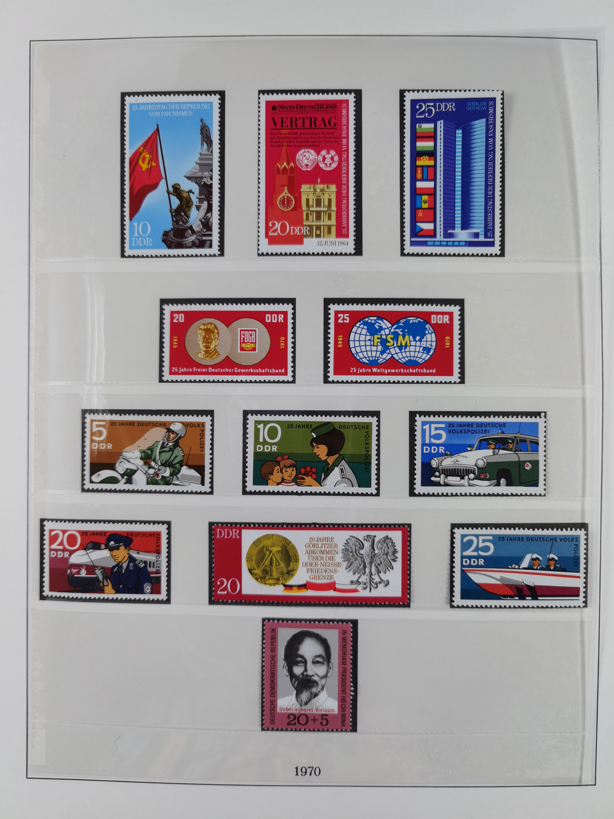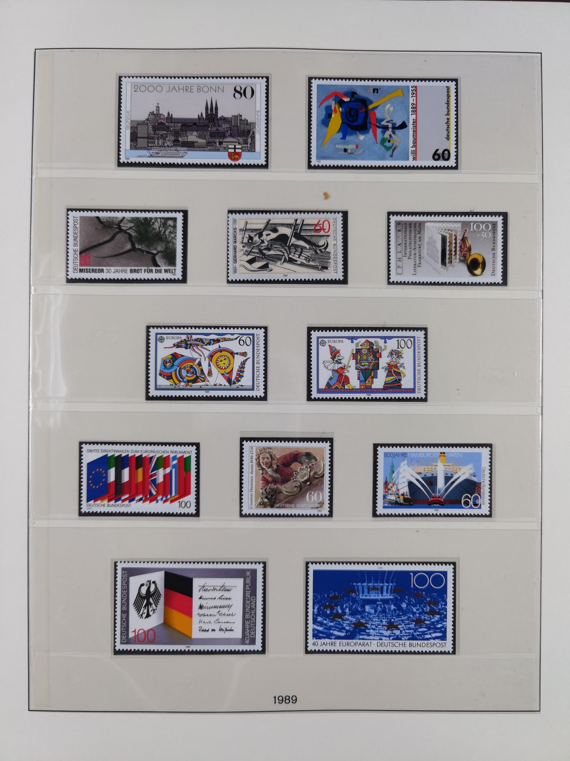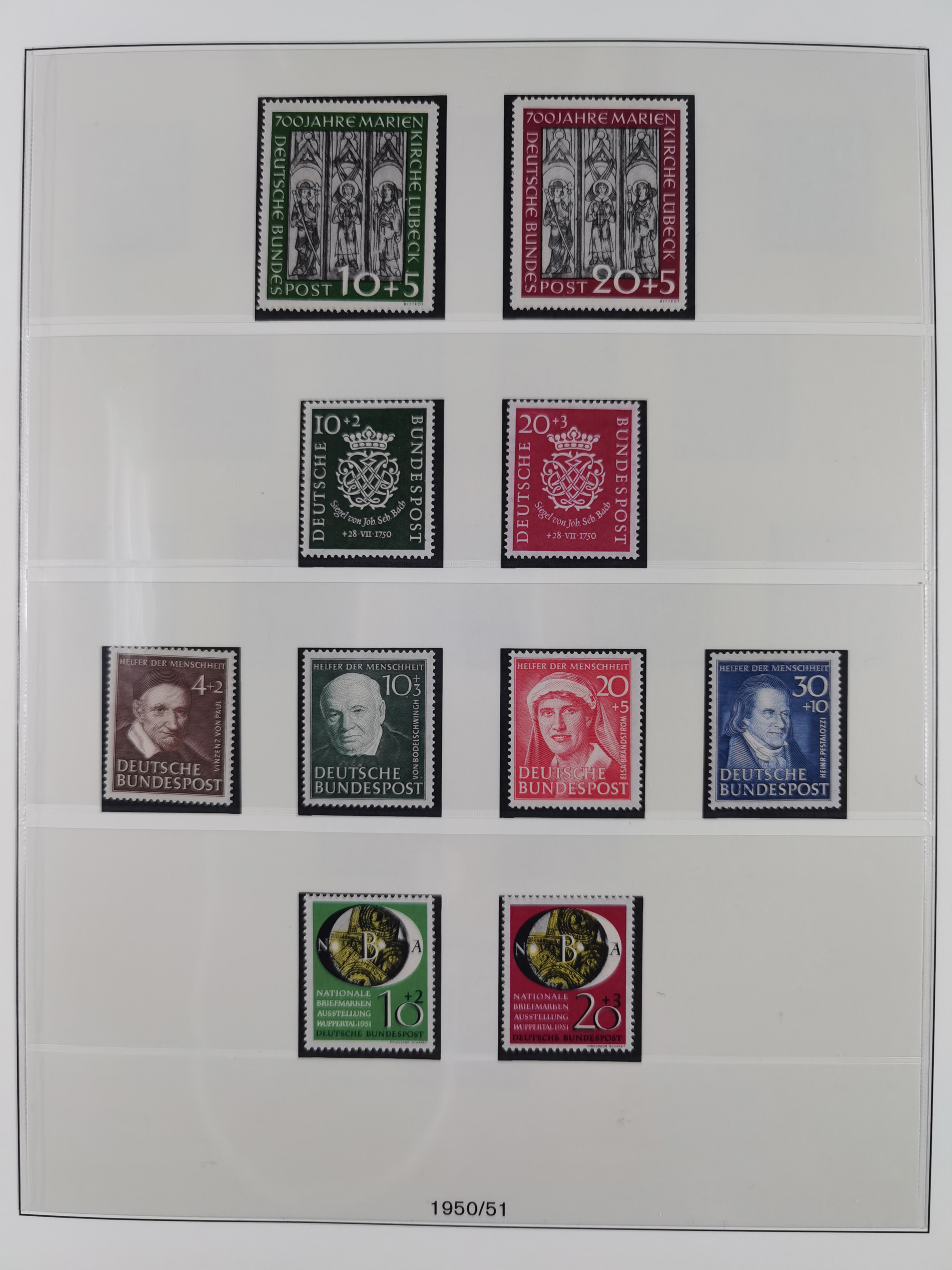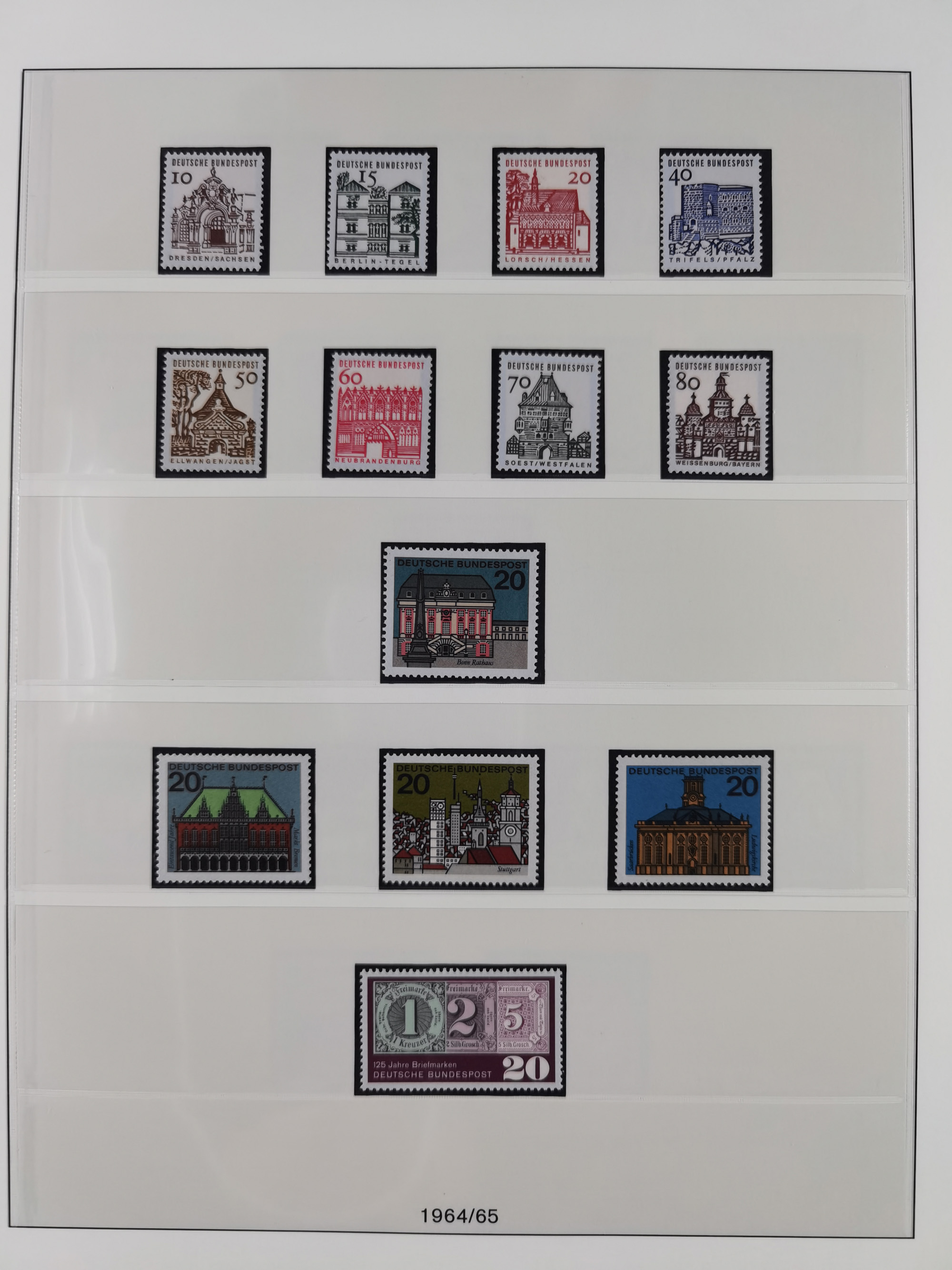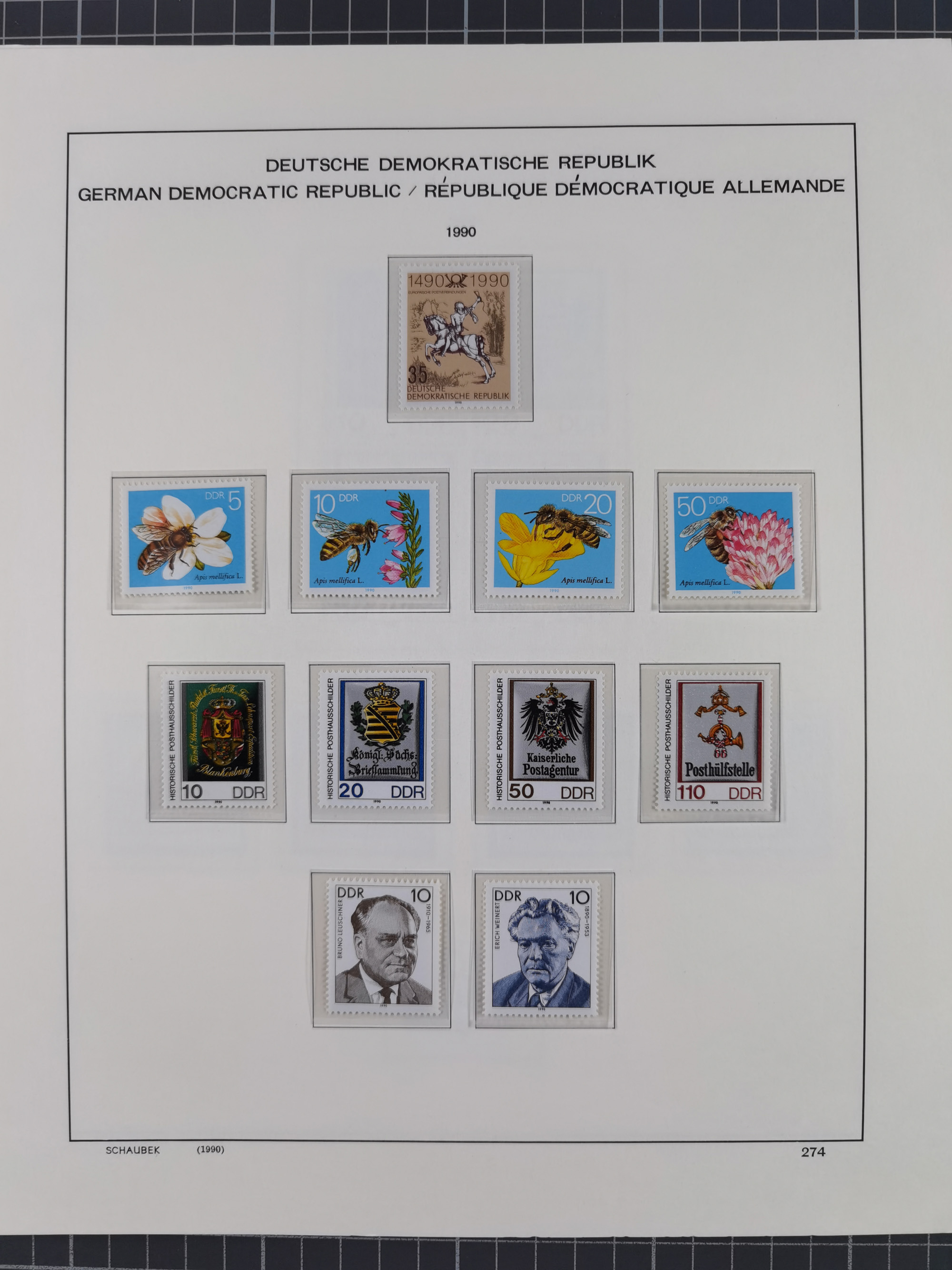1948/90, in den Hauptnummern bis 1960 komplette postfrische Sammlungen Berlin 1948-90 inkl. Schwarzaufdruck, Rotaufdruck sign. Dub und Block 1, Bundesrepublik 1949-72 inkl. Posthornsatz, sowie DDR 1949-71 inkl. ausgiebigen Teilen Zusammendrucke, es fehlen bei den späten modernen Ausgaben teils einzelne Werte oder Sätze, gute Erhaltung, Alben mit Lagerspuren, in 11 Vordruckalben