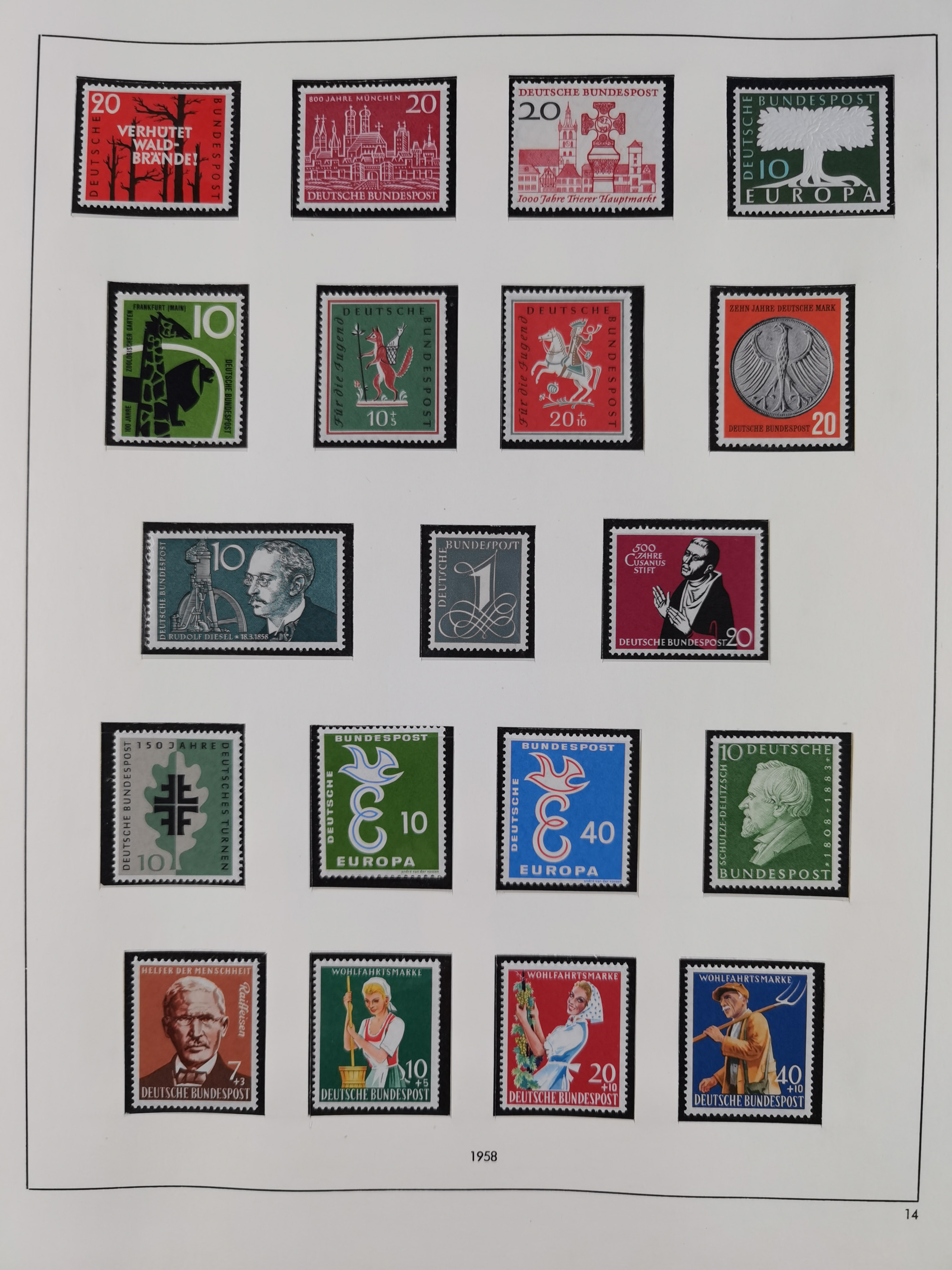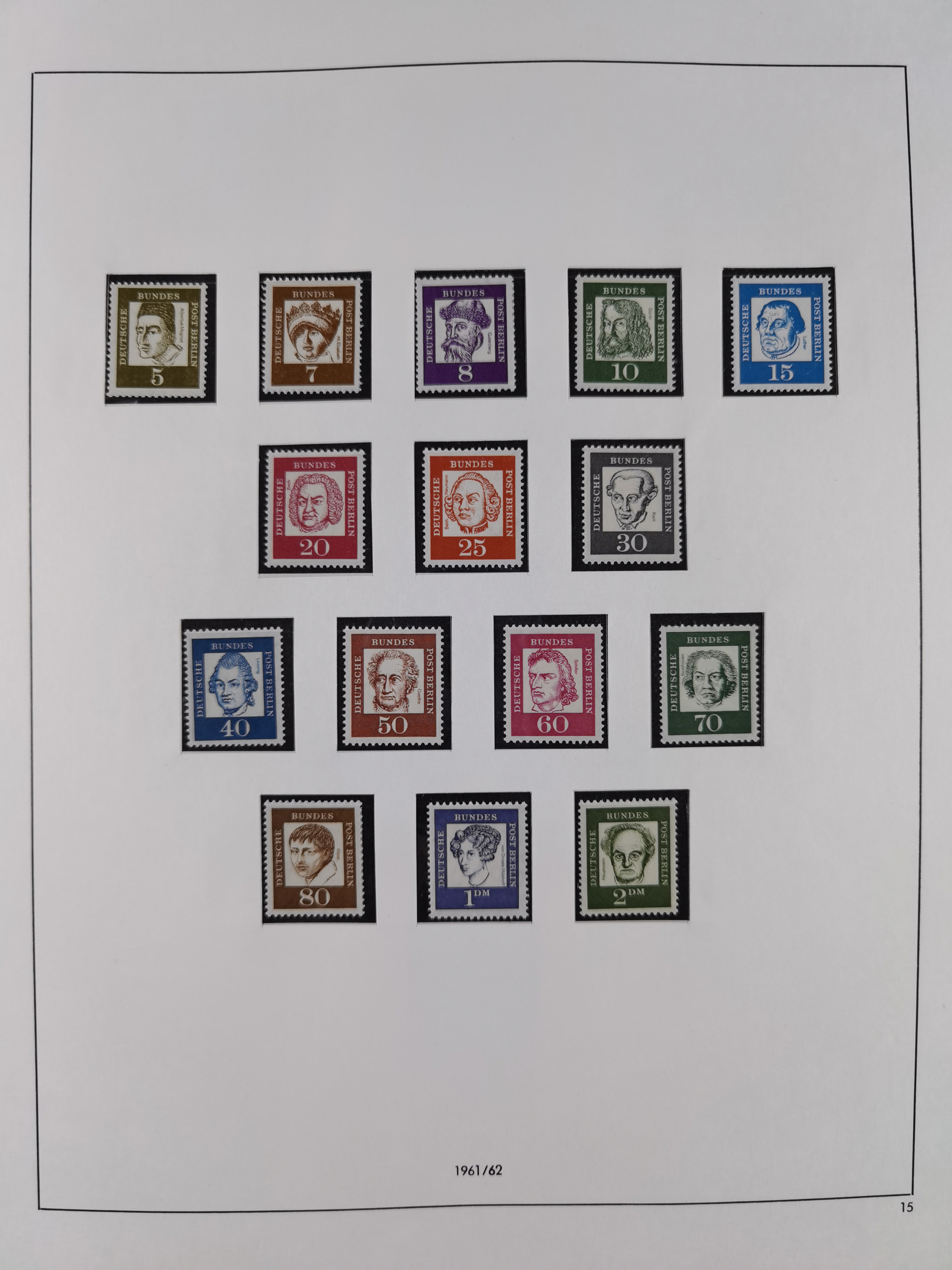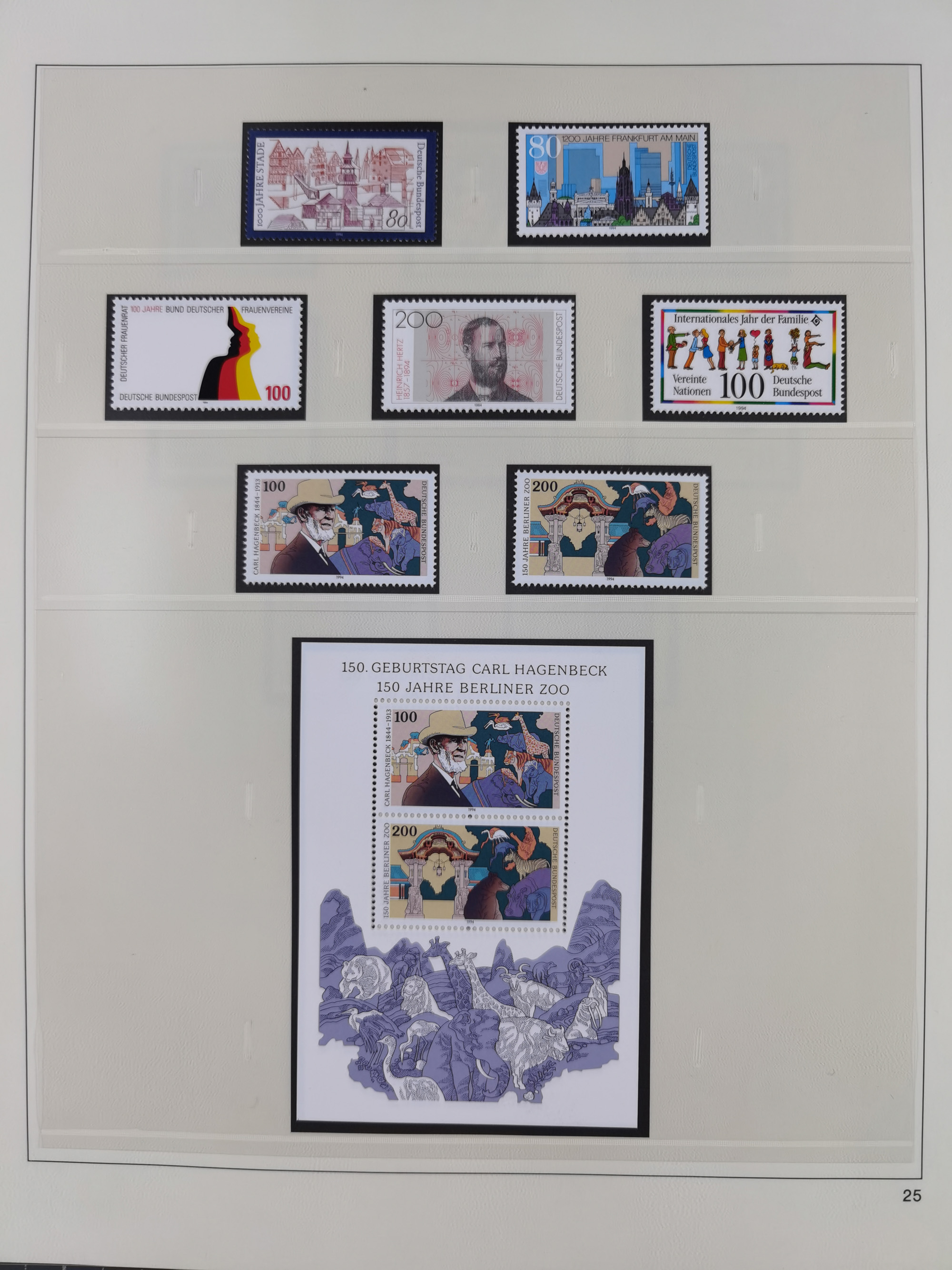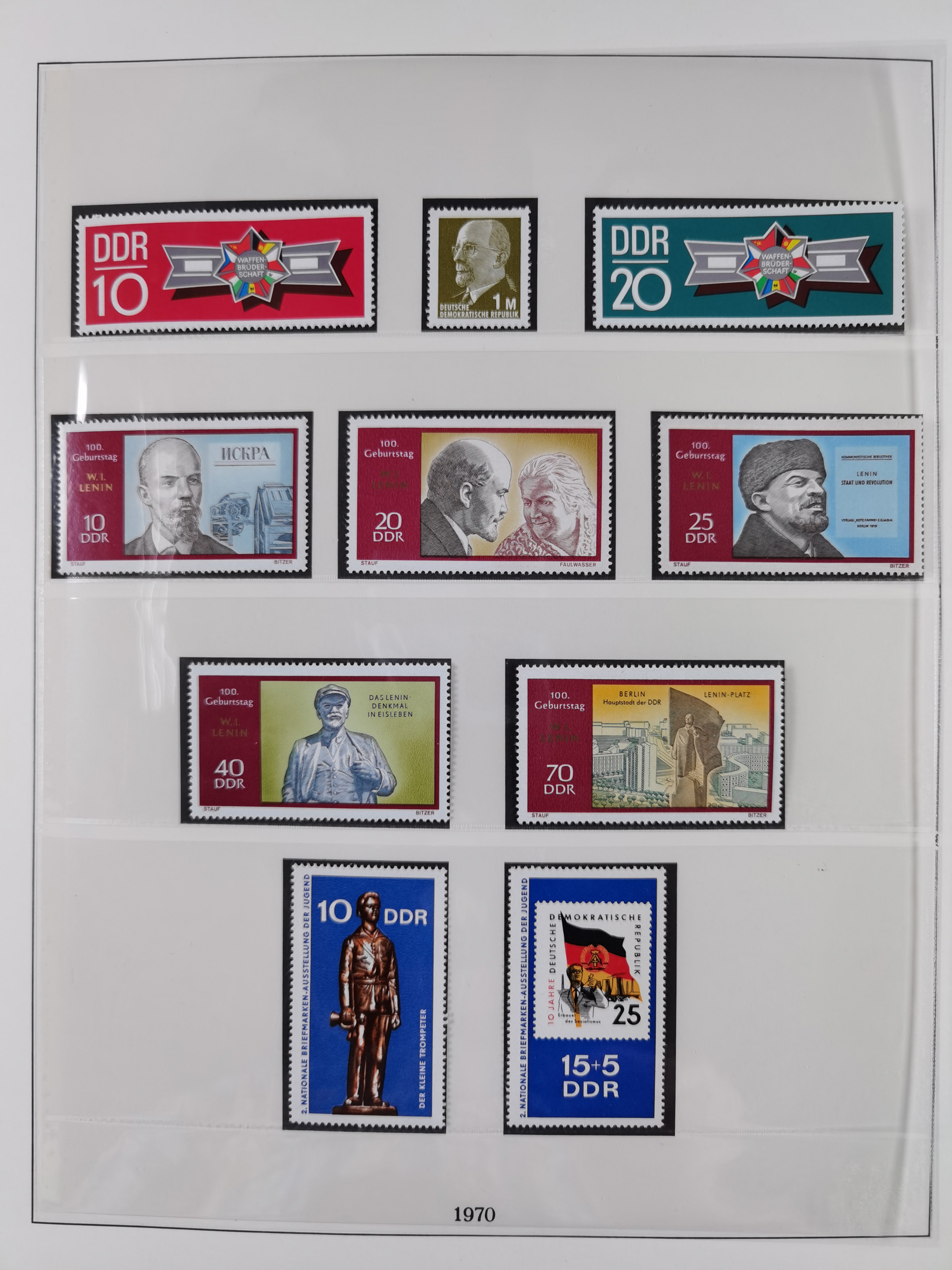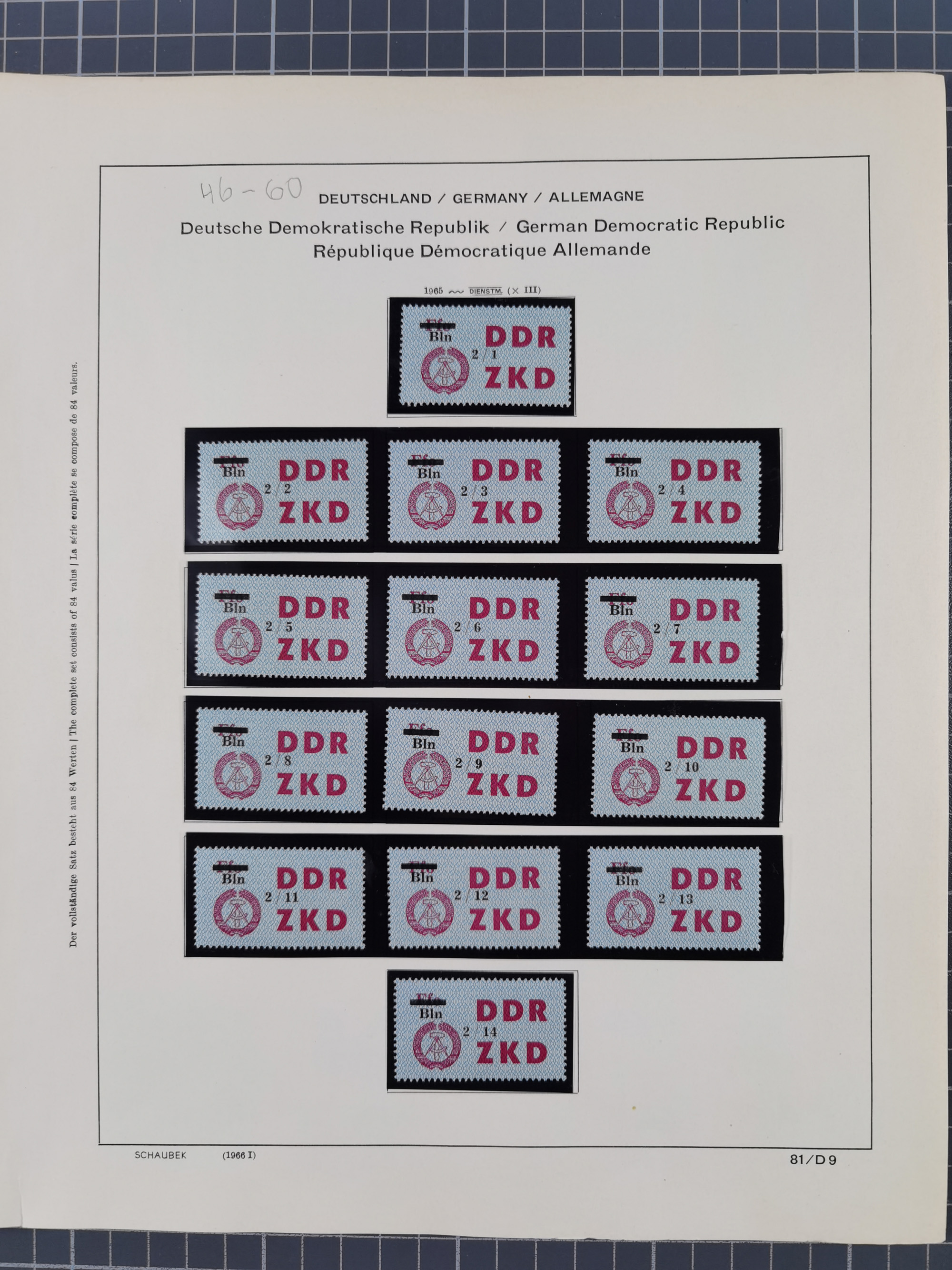 1948/90, in den Hauptnummern bis 1960 komplette postfrische Sammlungen Berlin 1948-90 inkl. Schwarzaufdruck, Rotaufdruck sign. Dub und Block 1, Bundesrepublik 1949-72 inkl. Posthornsatz, sowie DDR 1949-71 inkl. ausgiebigen Teilen Zusammendrucke, es fehlen bei den späten modernen Ausgaben teils einzelne Werte oder Sätze, gute Erhaltung, Alben mit Lagerspuren, in 11 Vordruckalben