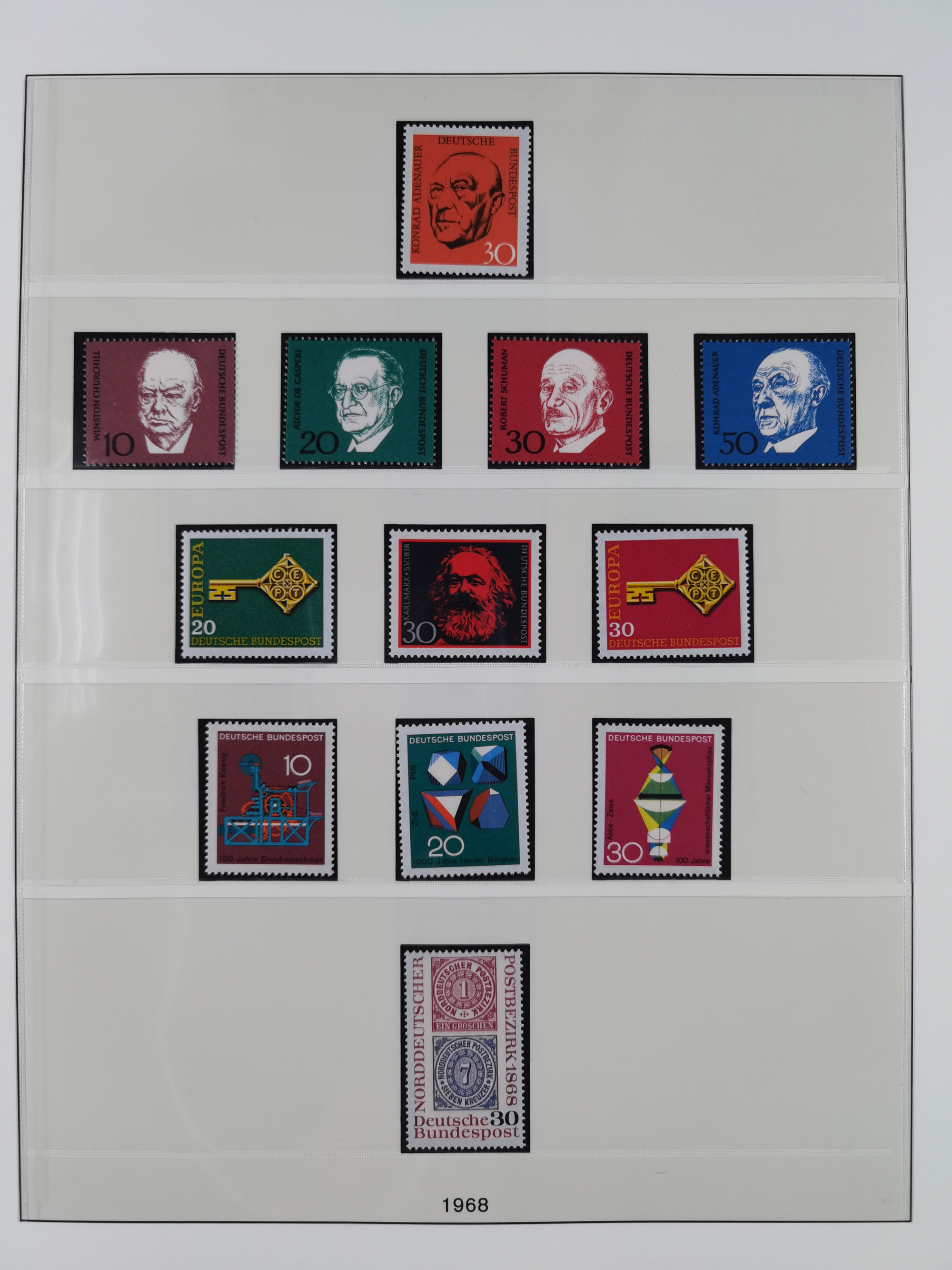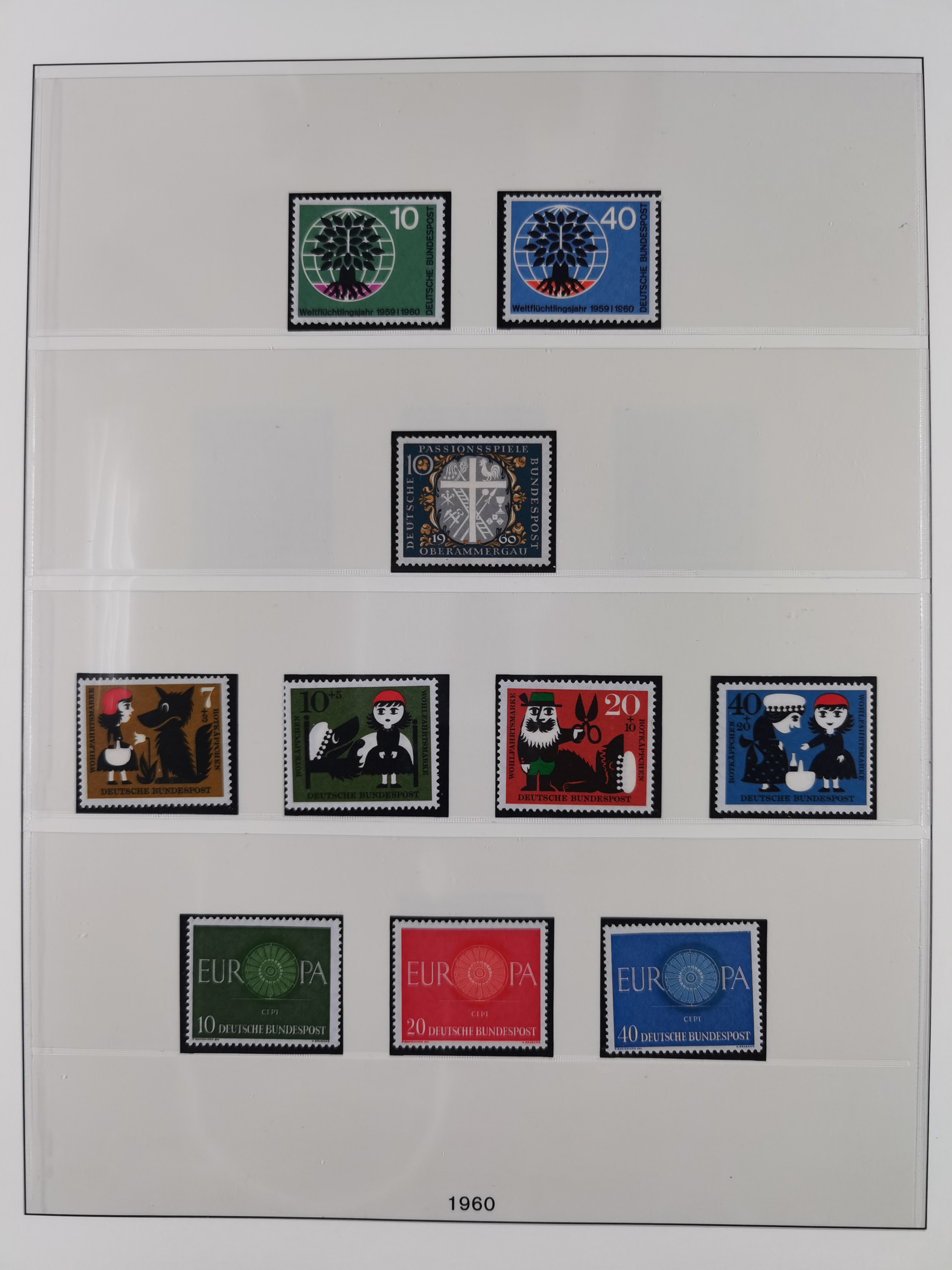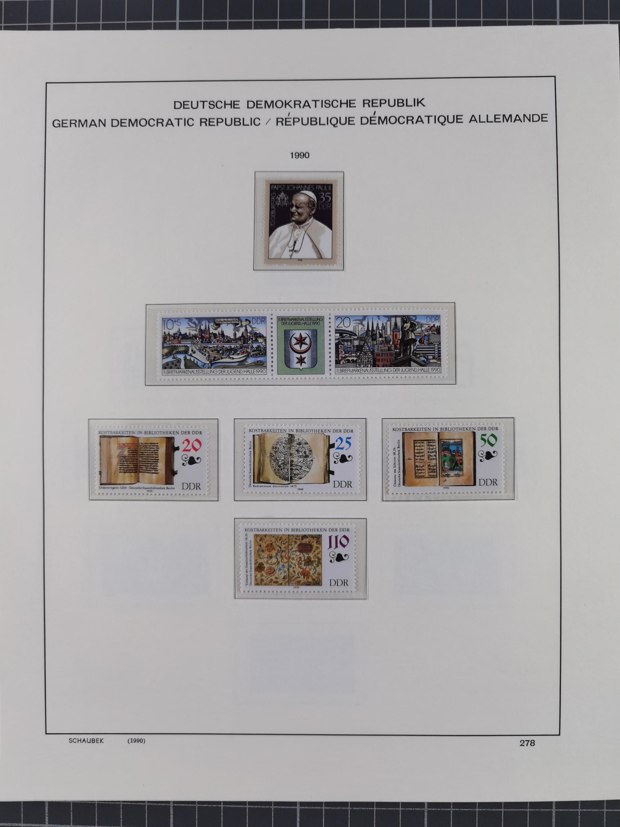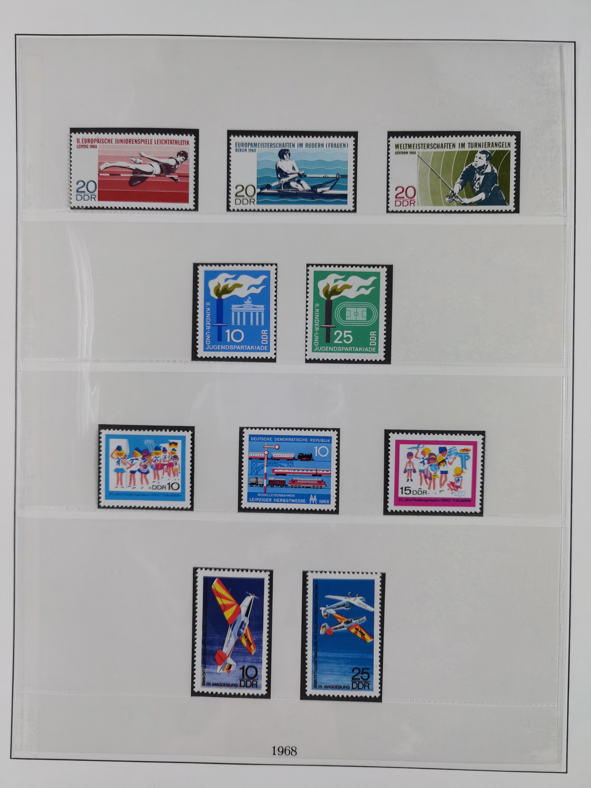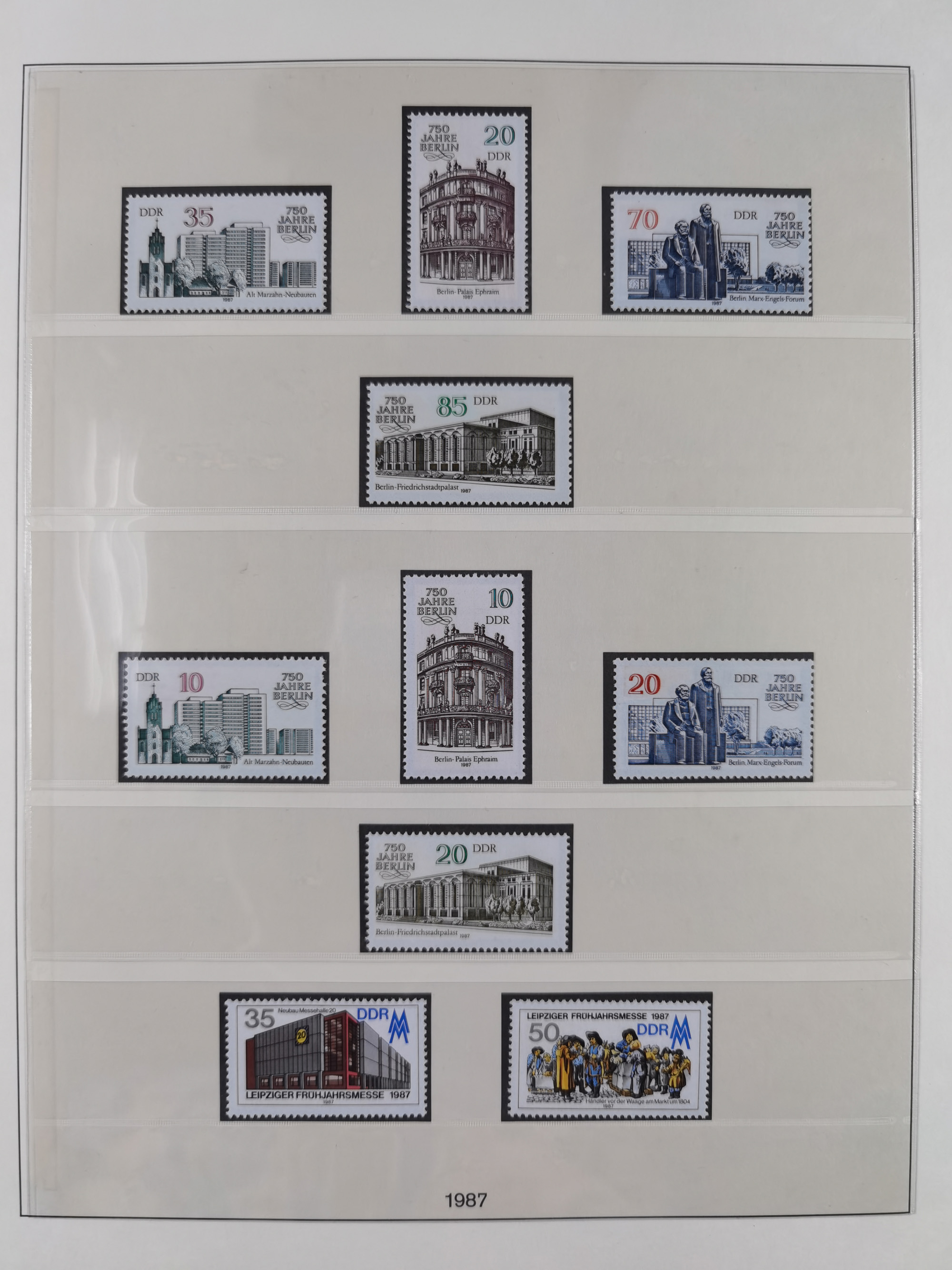 1948/90, in den Hauptnummern bis 1960 komplette postfrische Sammlungen Berlin 1948-90 inkl. Schwarzaufdruck, Rotaufdruck sign. Dub und Block 1, Bundesrepublik 1949-72 inkl. Posthornsatz, sowie DDR 1949-71 inkl. ausgiebigen Teilen Zusammendrucke, es fehlen bei den späten modernen Ausgaben teils einzelne Werte oder Sätze, gute Erhaltung, Alben mit Lagerspuren, in 11 Vordruckalben
