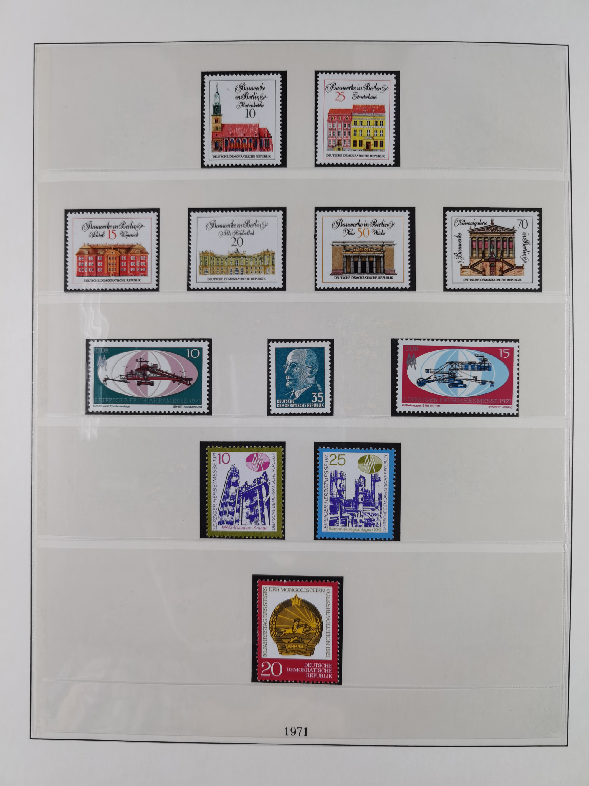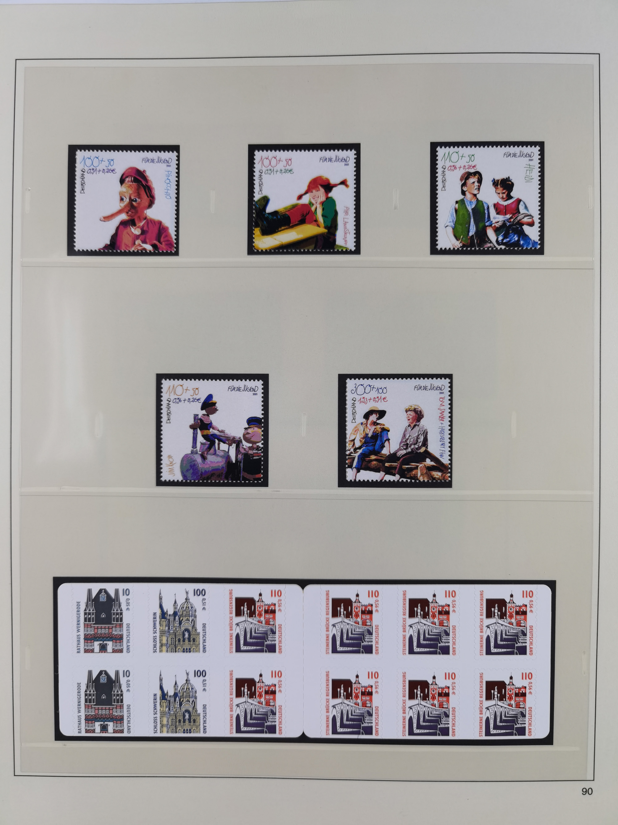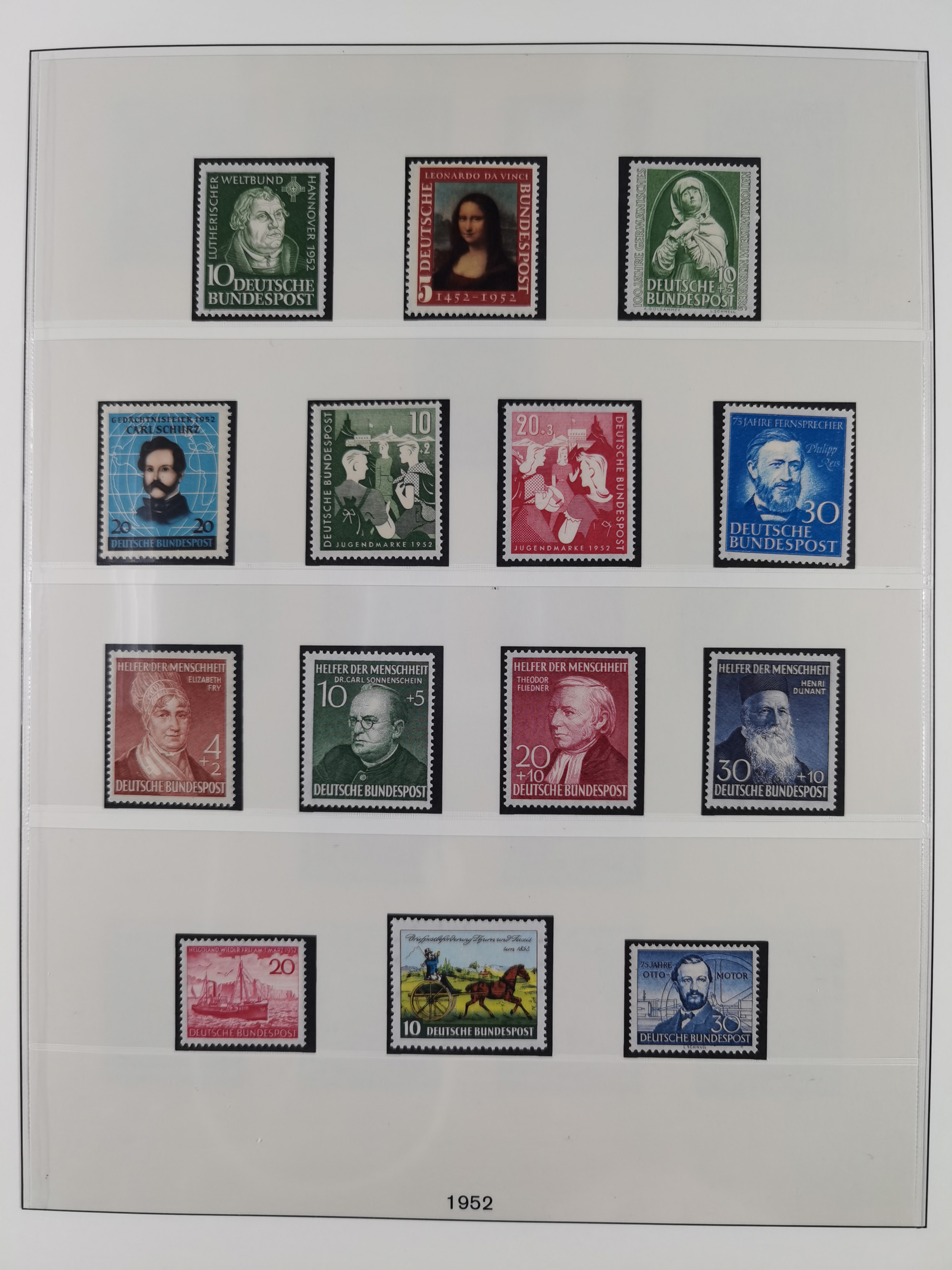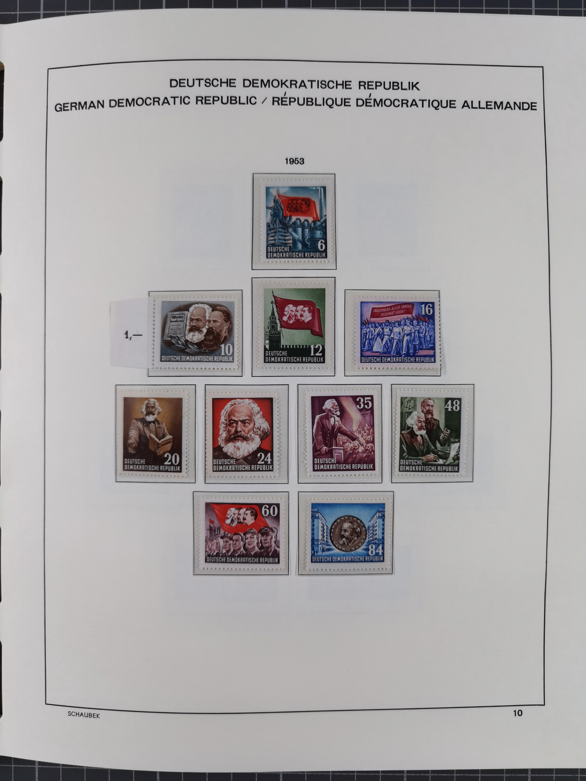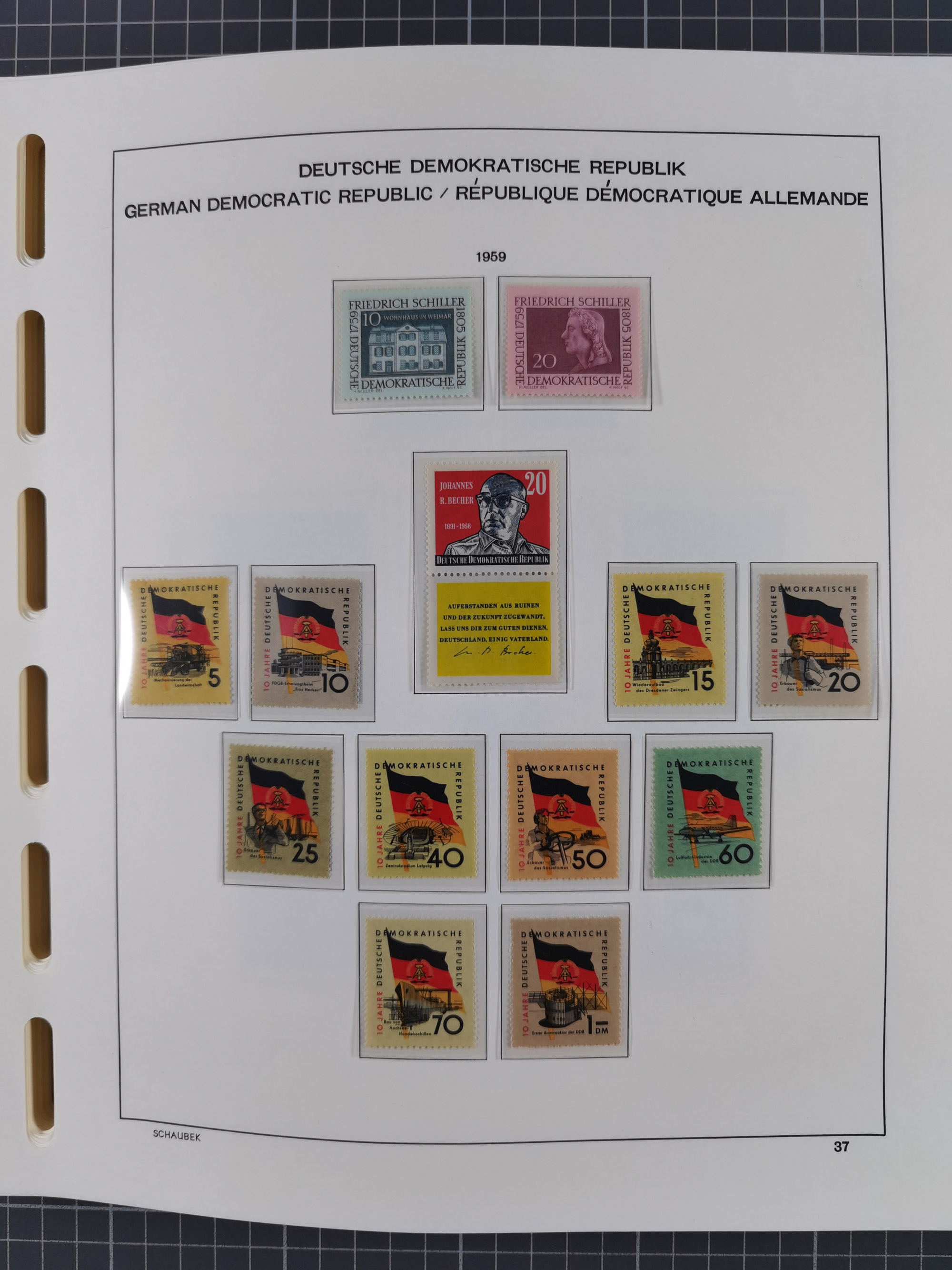 1948/90, in den Hauptnummern bis 1960 komplette postfrische Sammlungen Berlin 1948-90 inkl. Schwarzaufdruck, Rotaufdruck sign. Dub und Block 1, Bundesrepublik 1949-72 inkl. Posthornsatz, sowie DDR 1949-71 inkl. ausgiebigen Teilen Zusammendrucke, es fehlen bei den späten modernen Ausgaben teils einzelne Werte oder Sätze, gute Erhaltung, Alben mit Lagerspuren, in 11 Vordruckalben