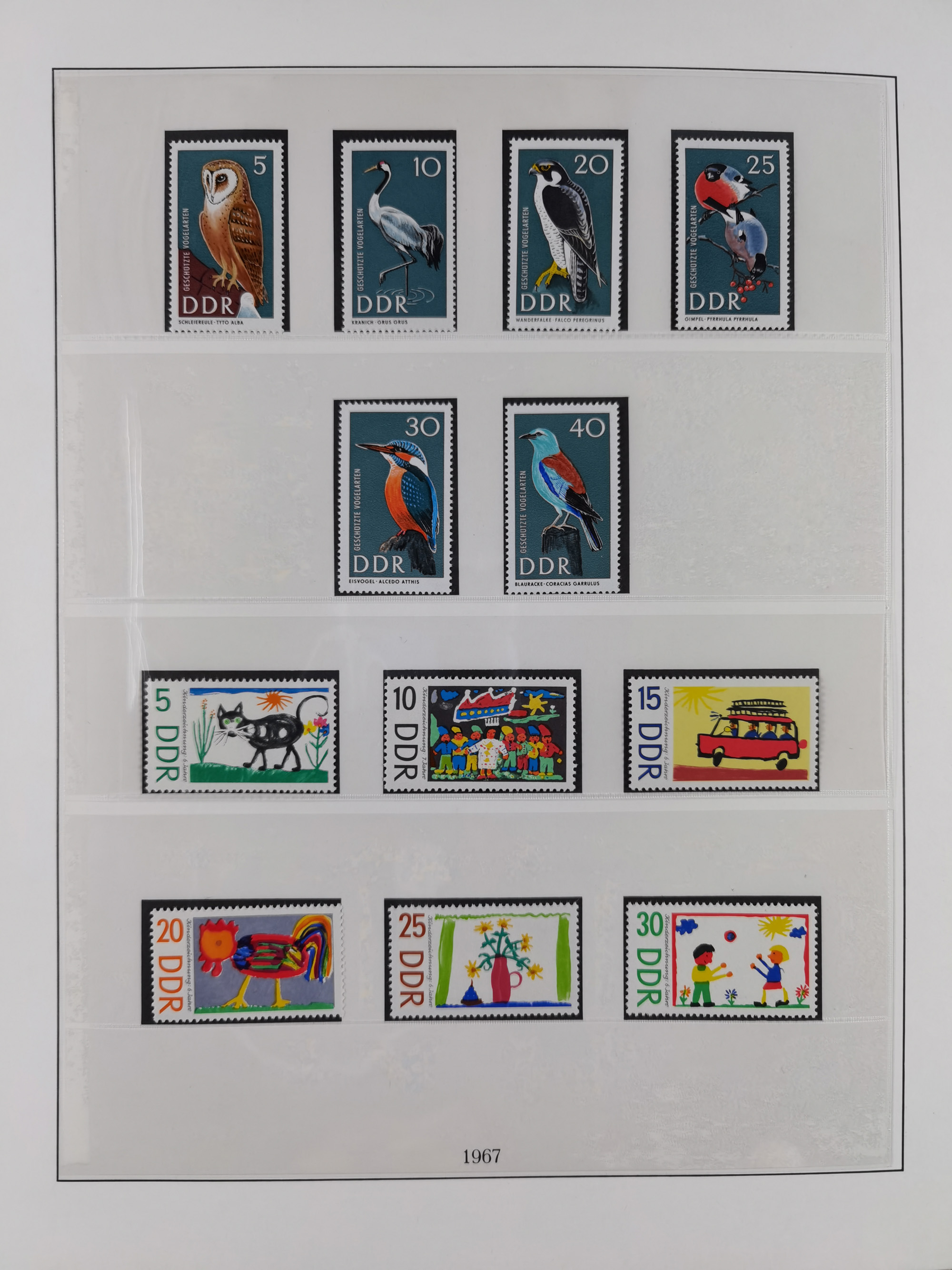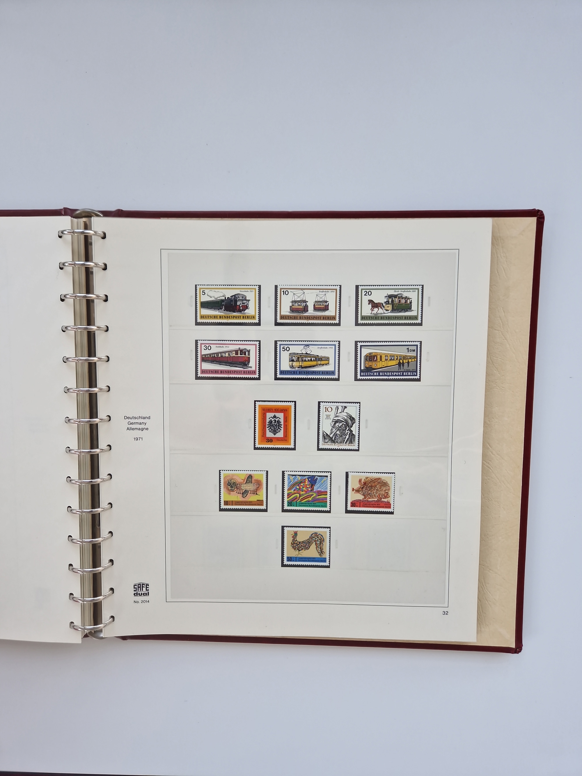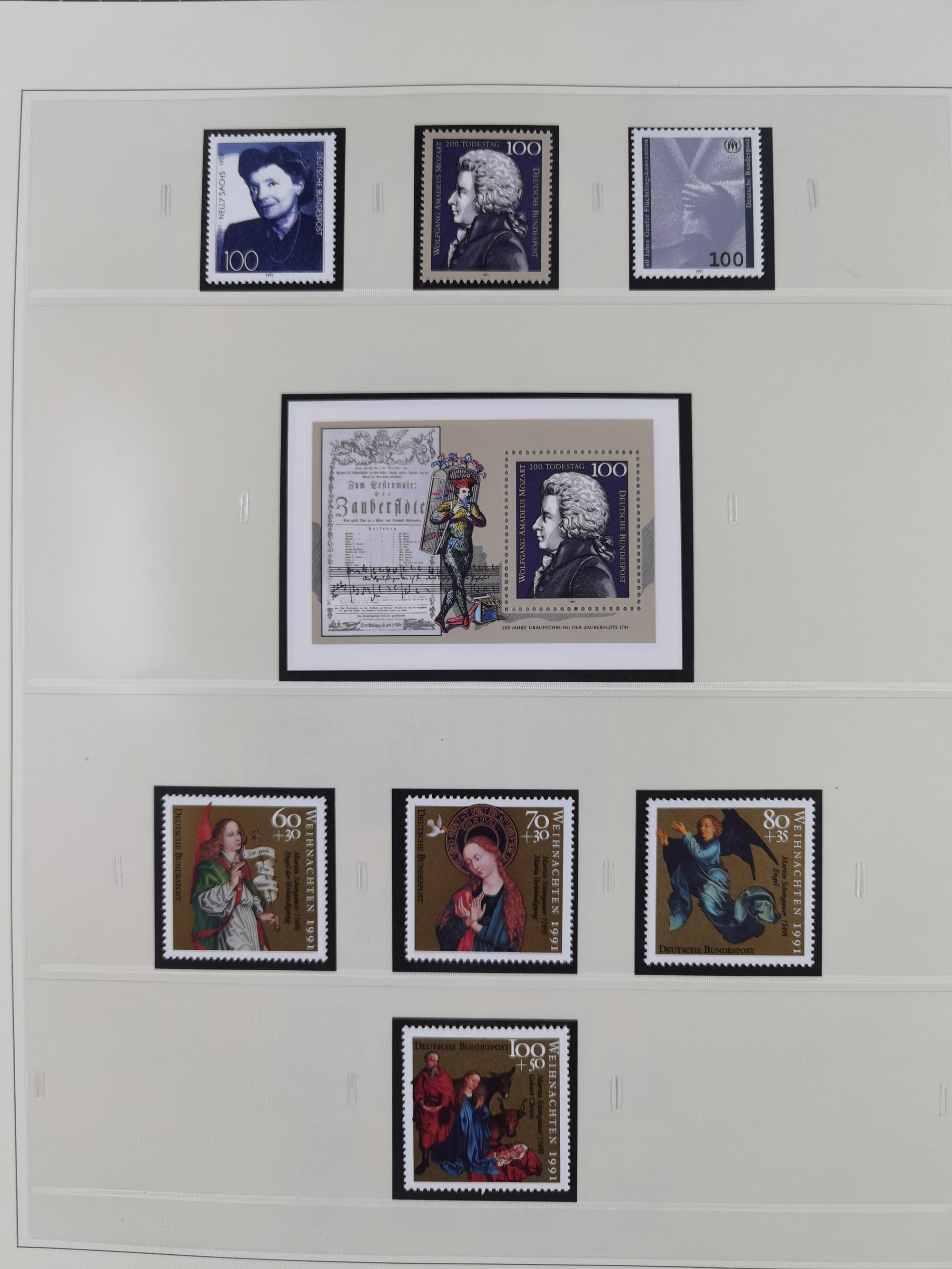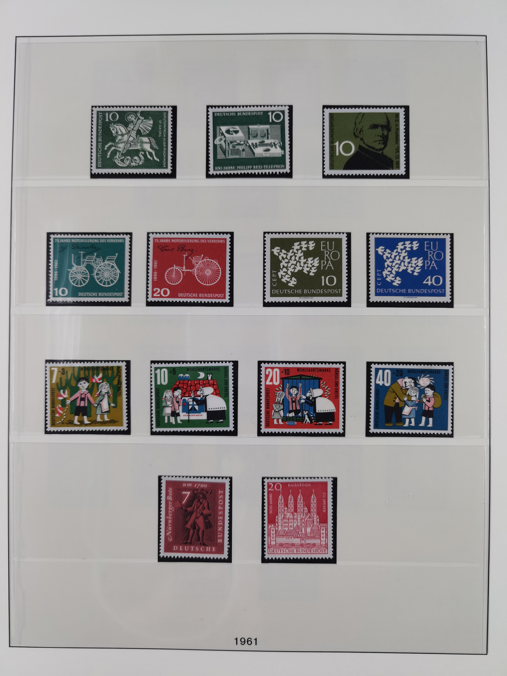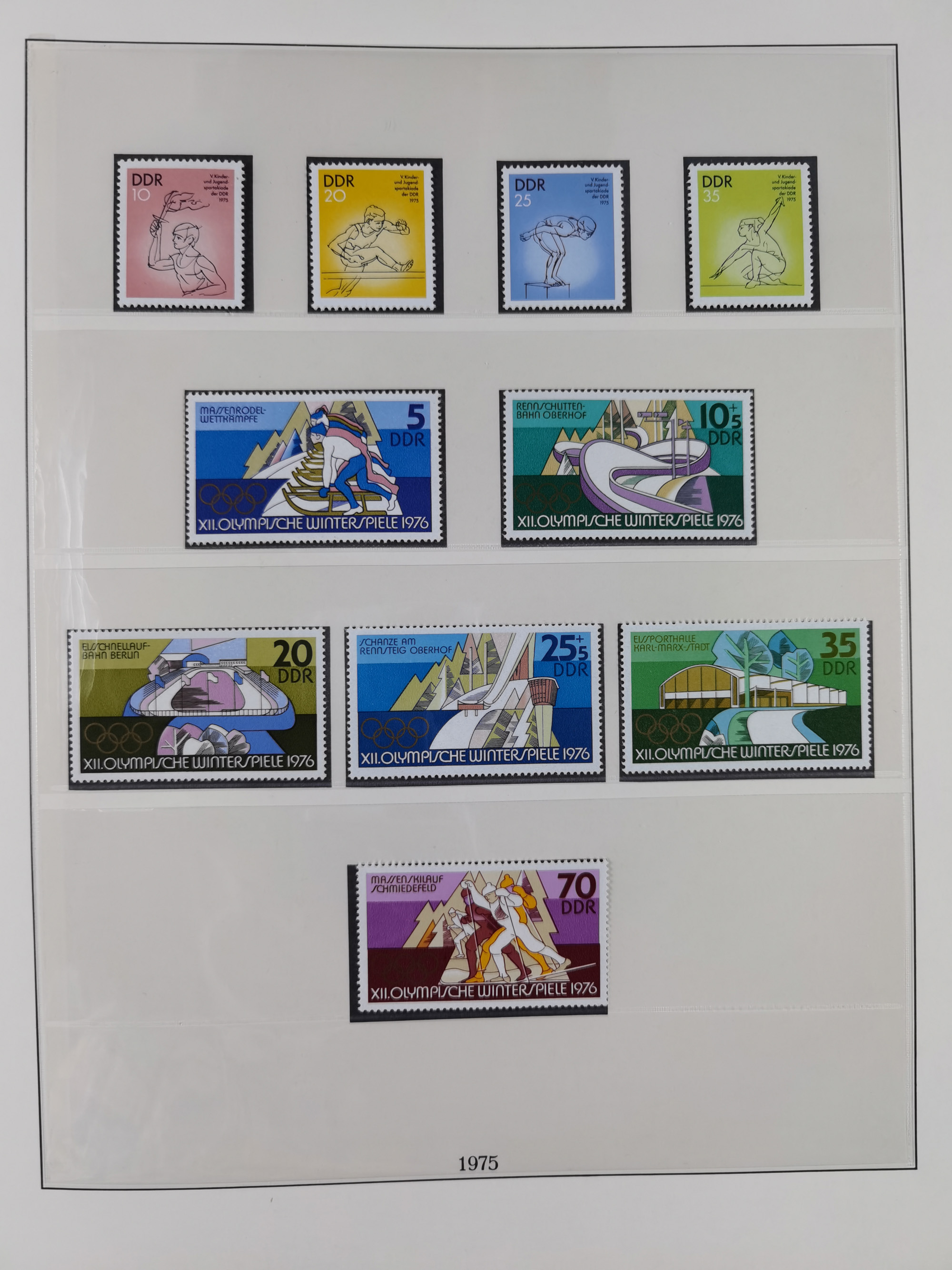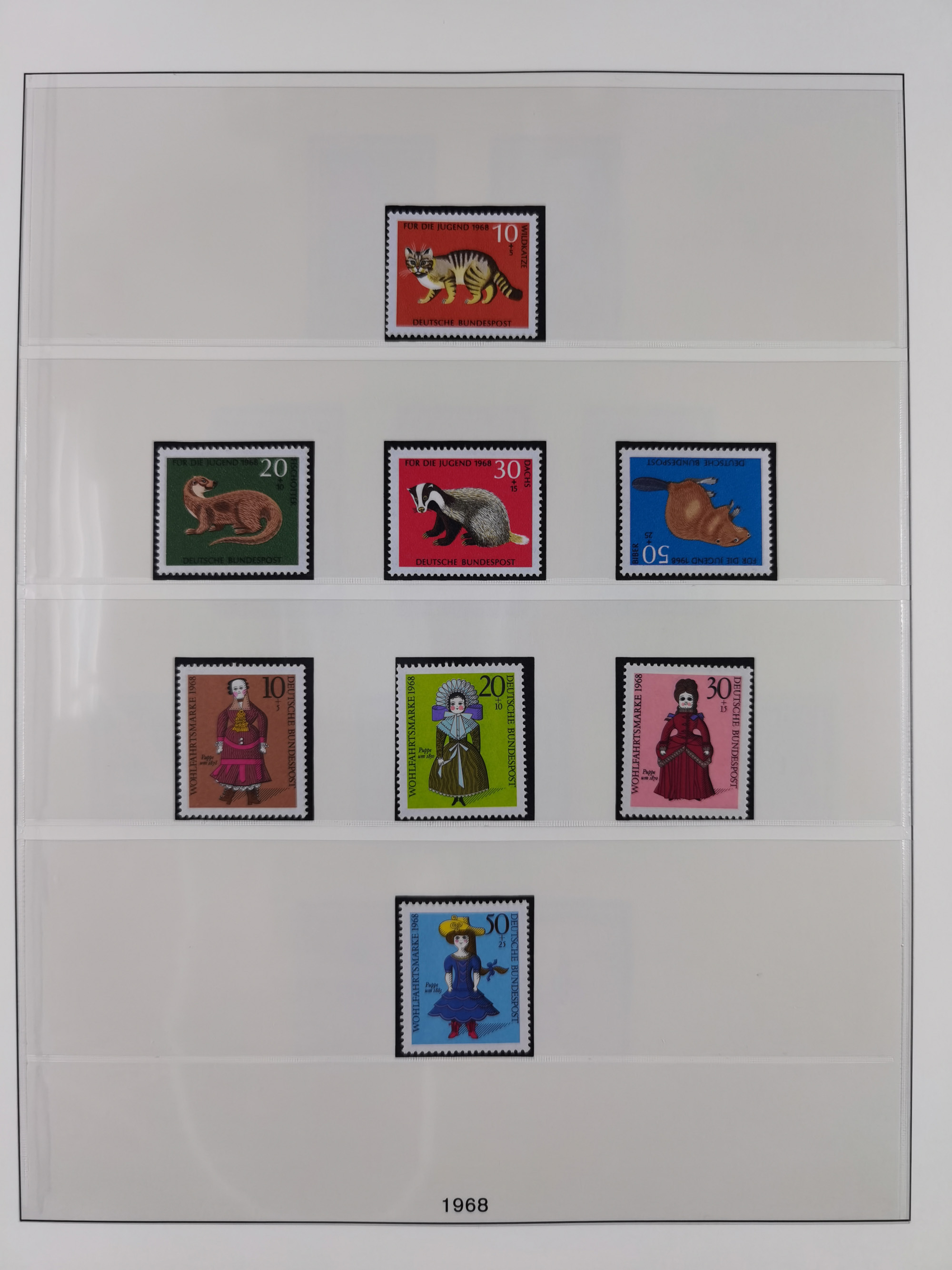 1948/90, in den Hauptnummern bis 1960 komplette postfrische Sammlungen Berlin 1948-90 inkl. Schwarzaufdruck, Rotaufdruck sign. Dub und Block 1, Bundesrepublik 1949-72 inkl. Posthornsatz, sowie DDR 1949-71 inkl. ausgiebigen Teilen Zusammendrucke, es fehlen bei den späten modernen Ausgaben teils einzelne Werte oder Sätze, gute Erhaltung, Alben mit Lagerspuren, in 11 Vordruckalben