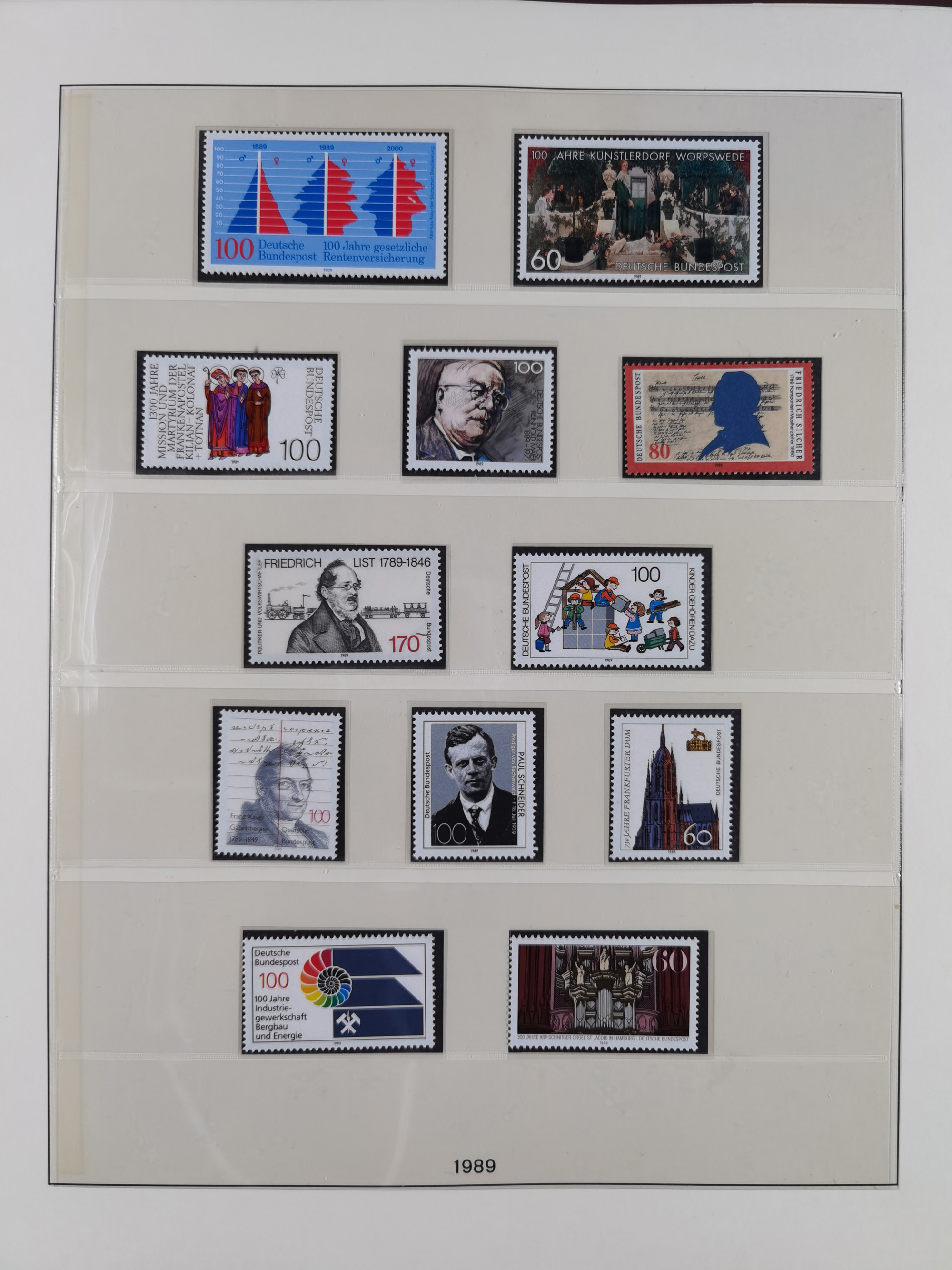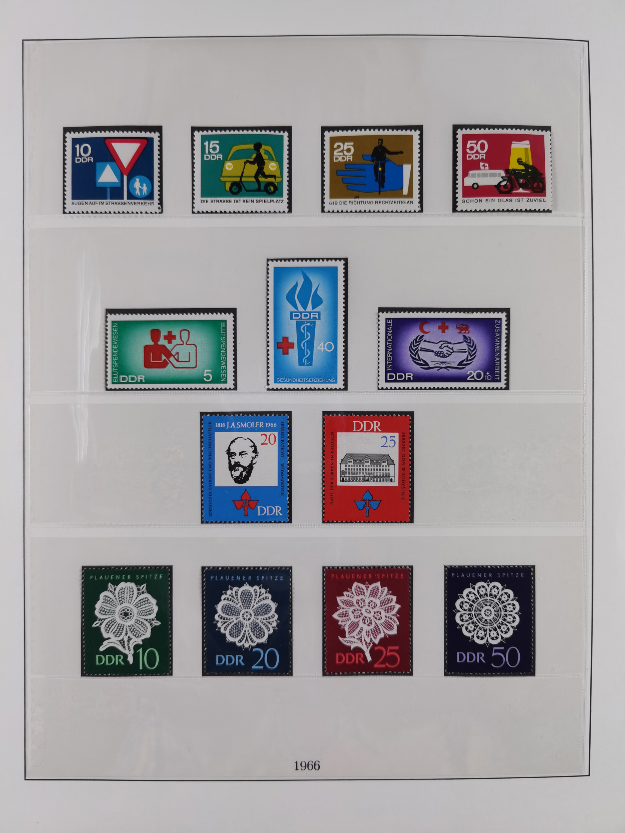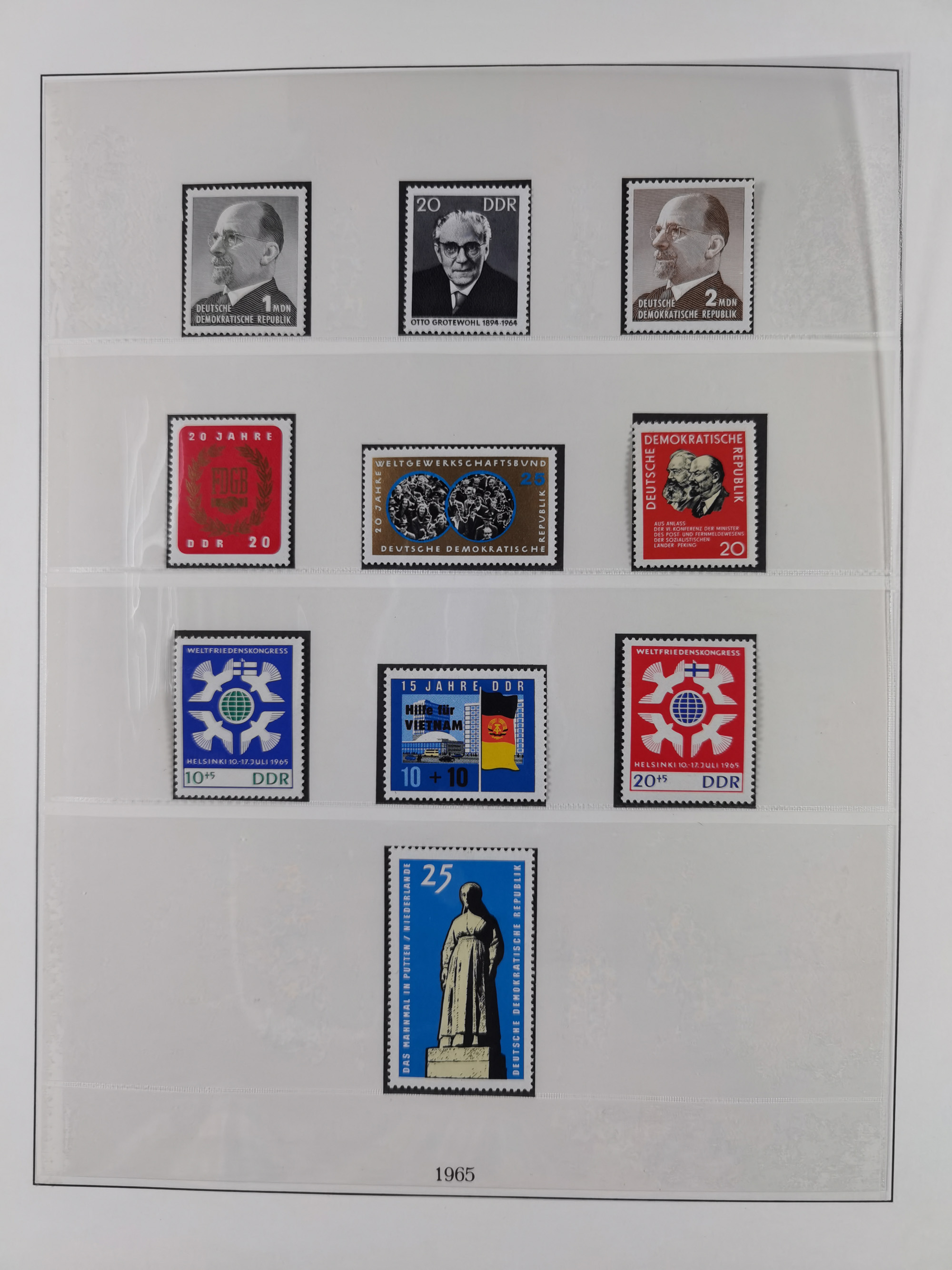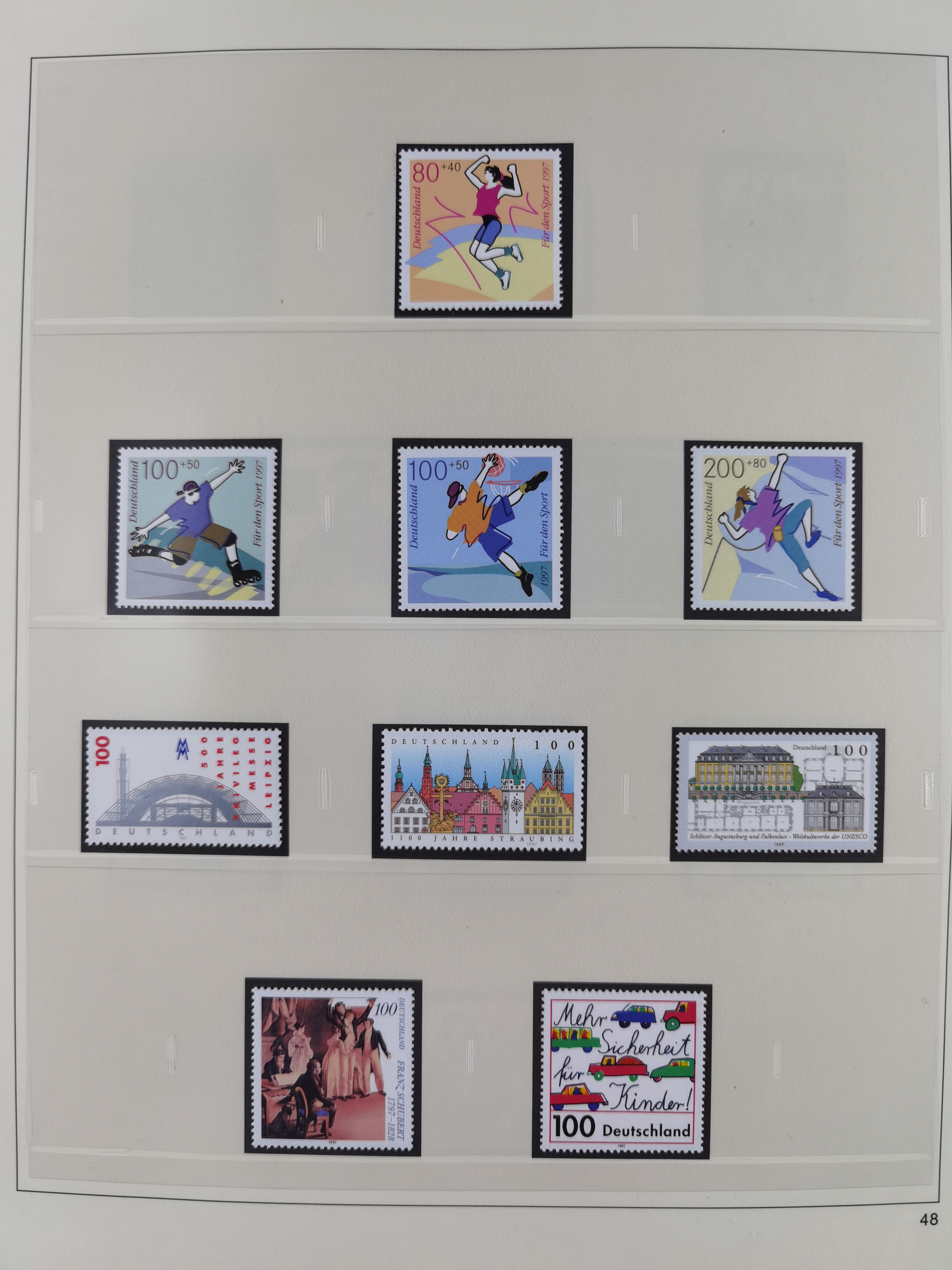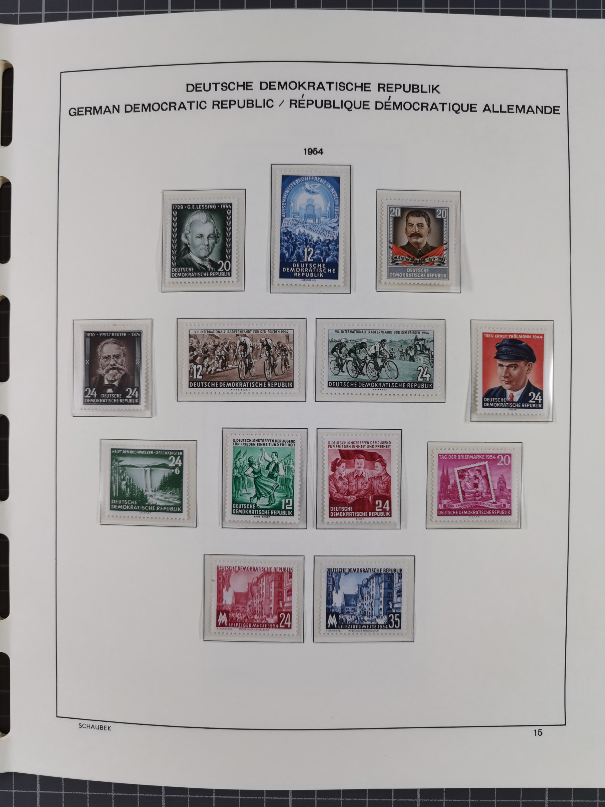 1948/90, in den Hauptnummern bis 1960 komplette postfrische Sammlungen Berlin 1948-90 inkl. Schwarzaufdruck, Rotaufdruck sign. Dub und Block 1, Bundesrepublik 1949-72 inkl. Posthornsatz, sowie DDR 1949-71 inkl. ausgiebigen Teilen Zusammendrucke, es fehlen bei den späten modernen Ausgaben teils einzelne Werte oder Sätze, gute Erhaltung, Alben mit Lagerspuren, in 11 Vordruckalben