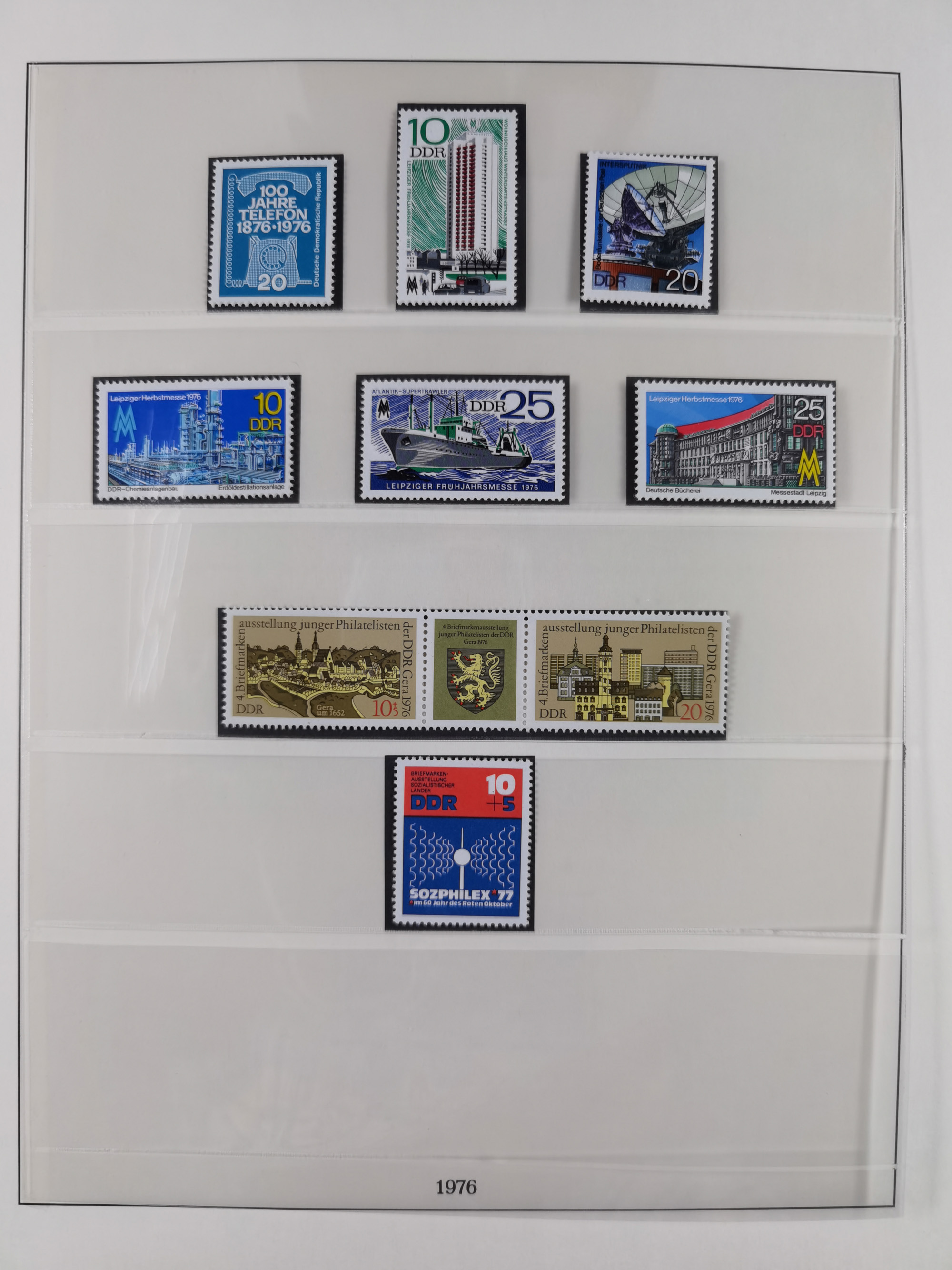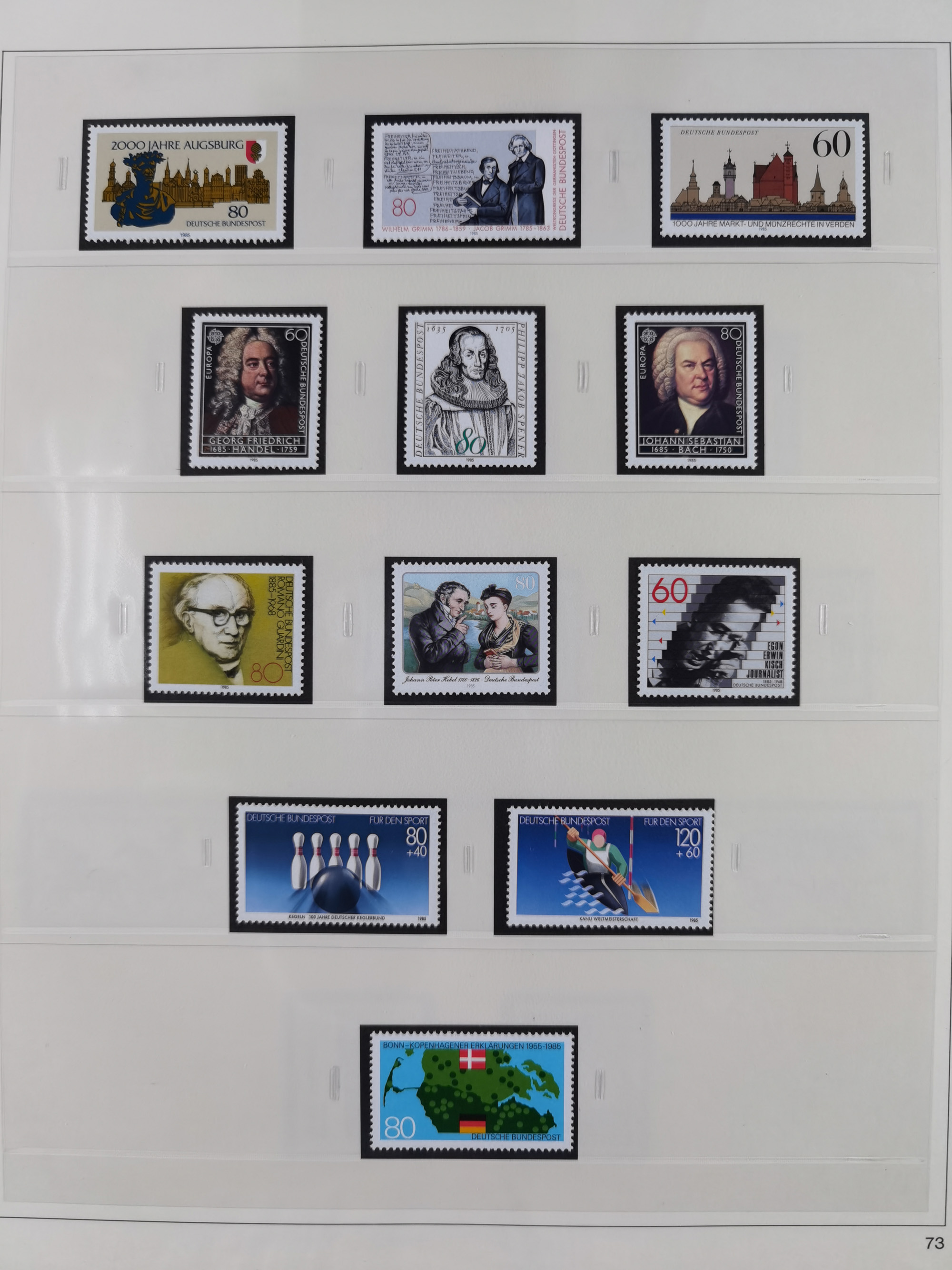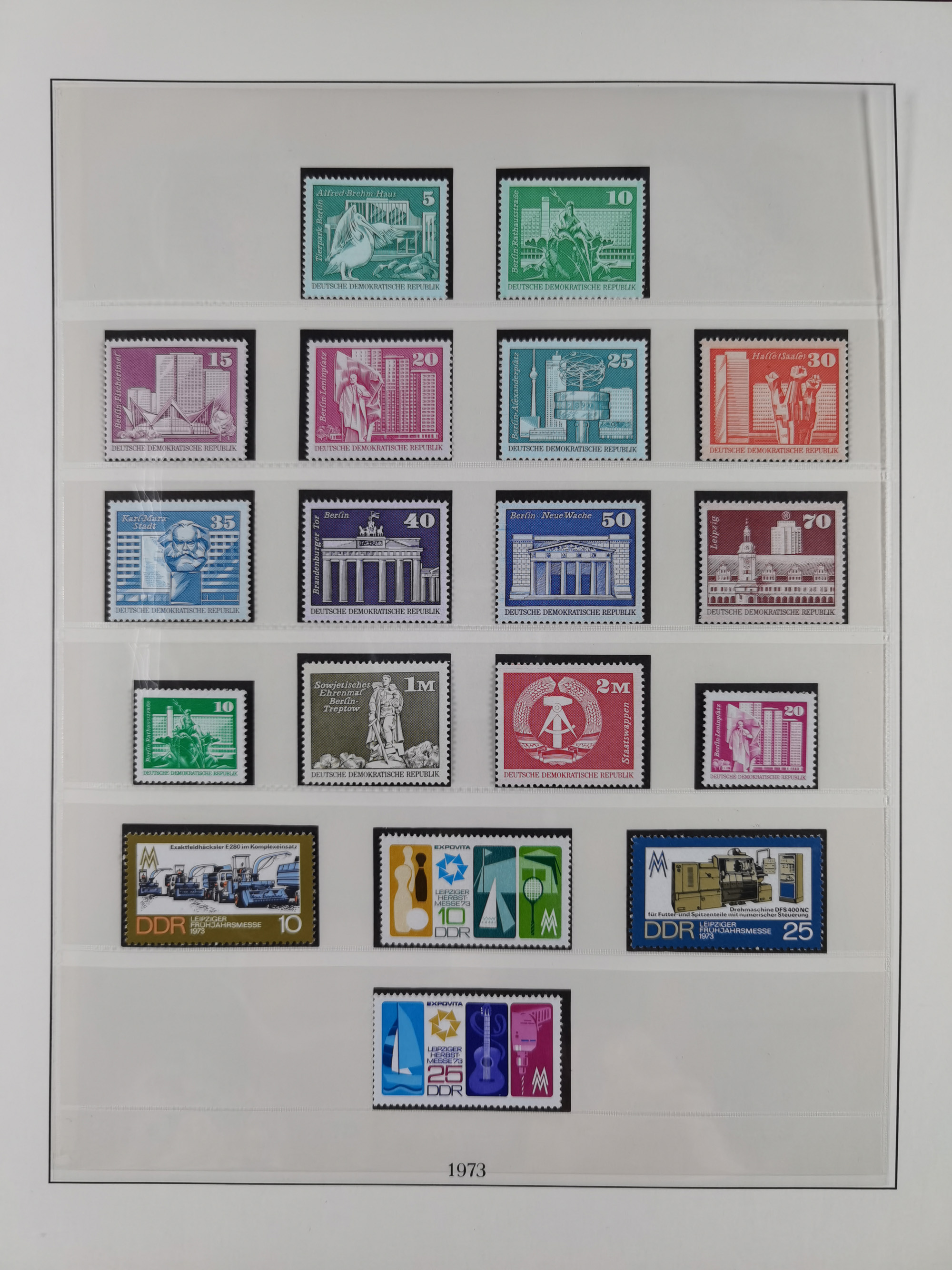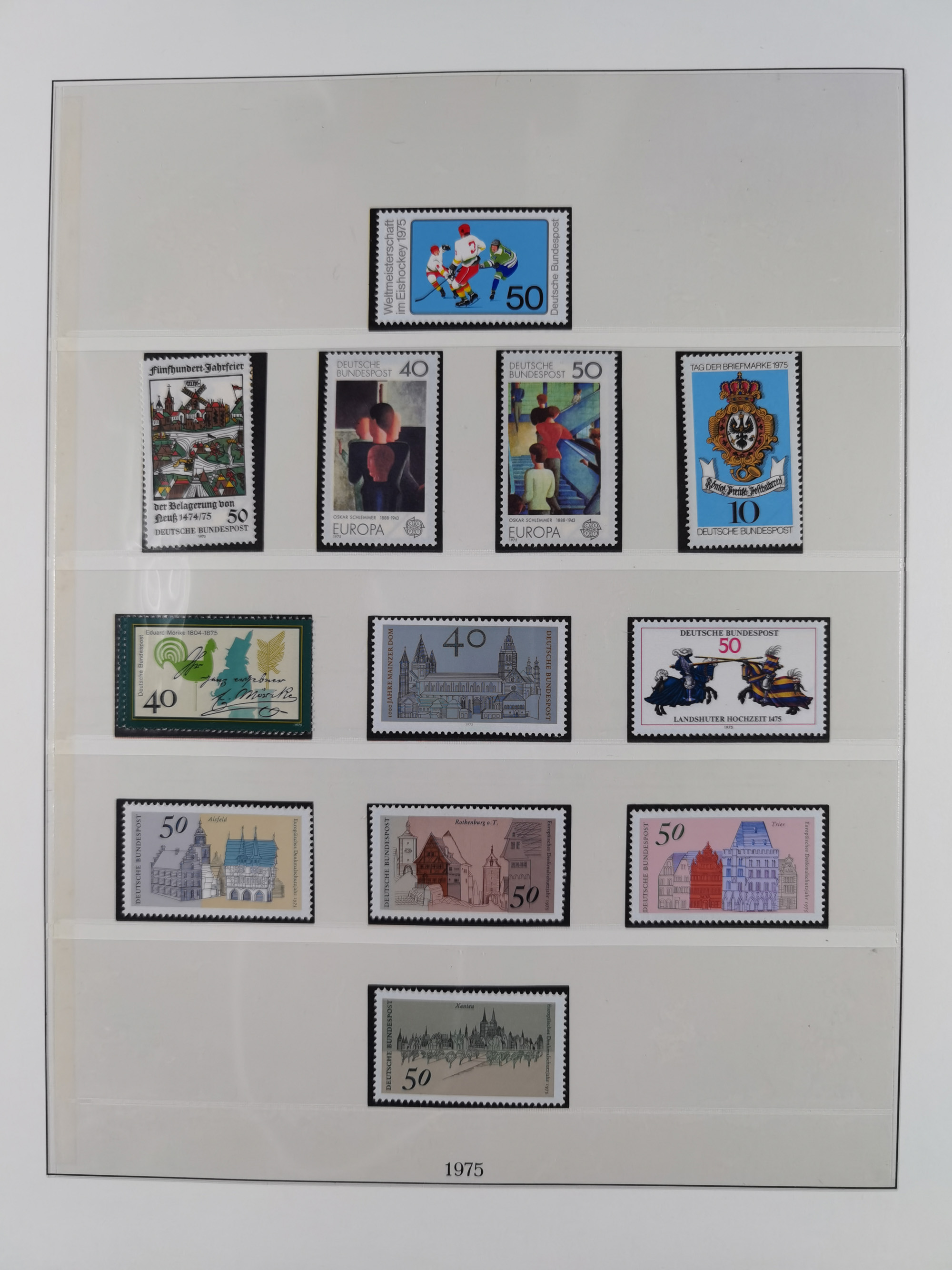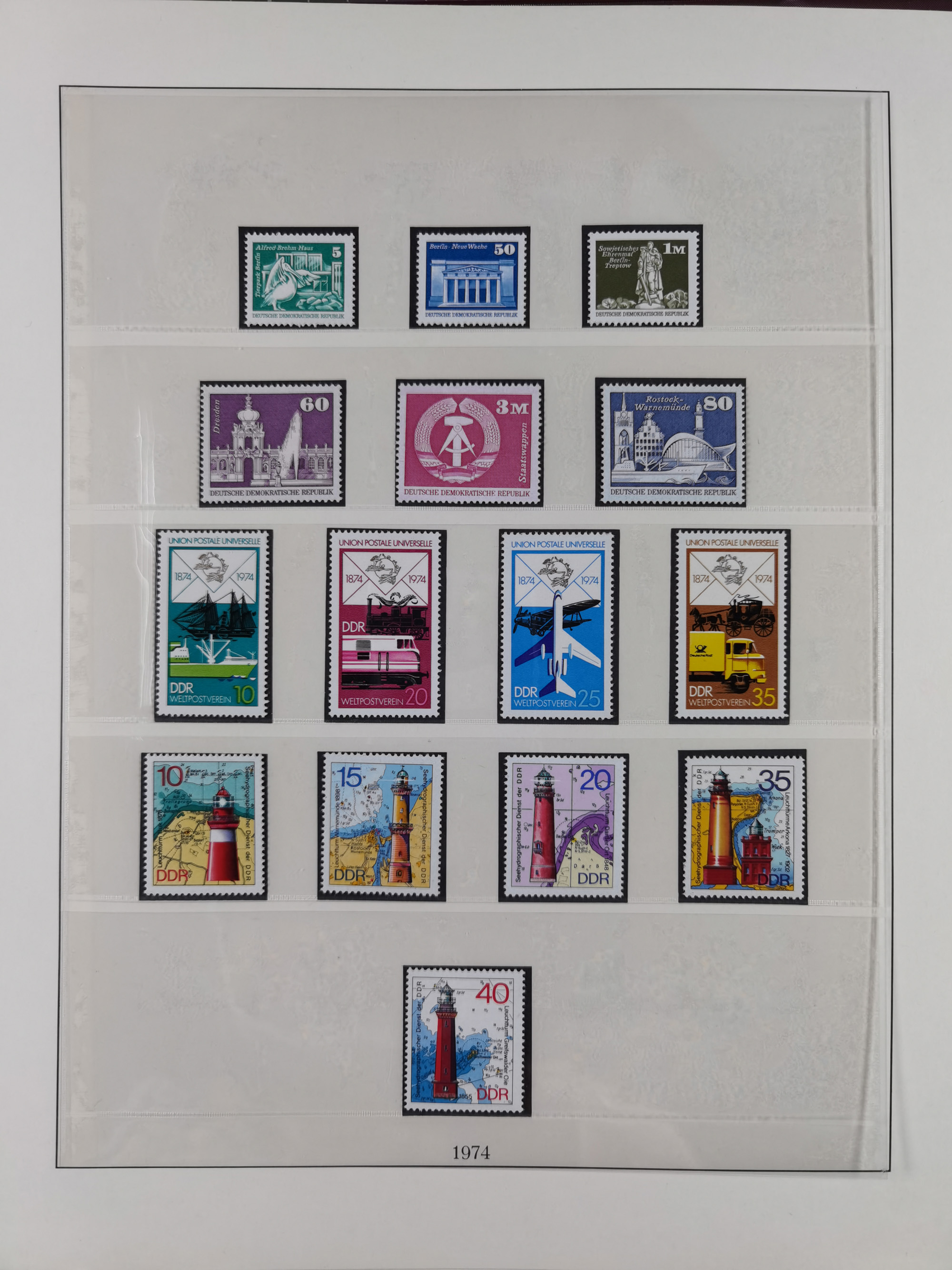 1948/90, in den Hauptnummern bis 1960 komplette postfrische Sammlungen Berlin 1948-90 inkl. Schwarzaufdruck, Rotaufdruck sign. Dub und Block 1, Bundesrepublik 1949-72 inkl. Posthornsatz, sowie DDR 1949-71 inkl. ausgiebigen Teilen Zusammendrucke, es fehlen bei den späten modernen Ausgaben teils einzelne Werte oder Sätze, gute Erhaltung, Alben mit Lagerspuren, in 11 Vordruckalben