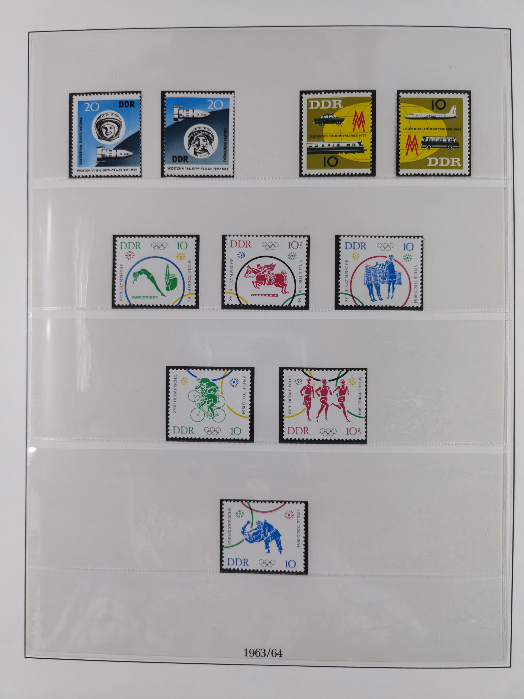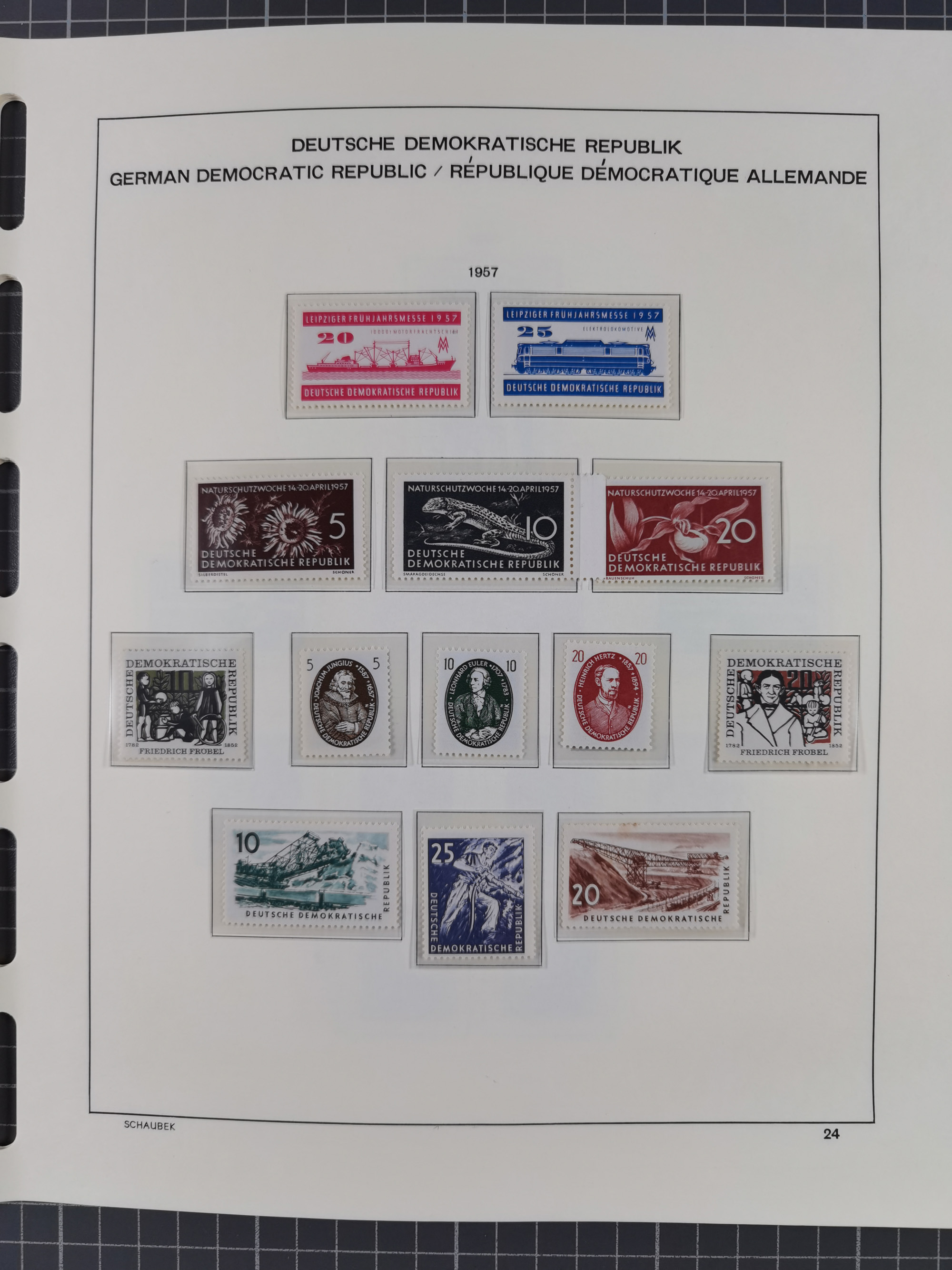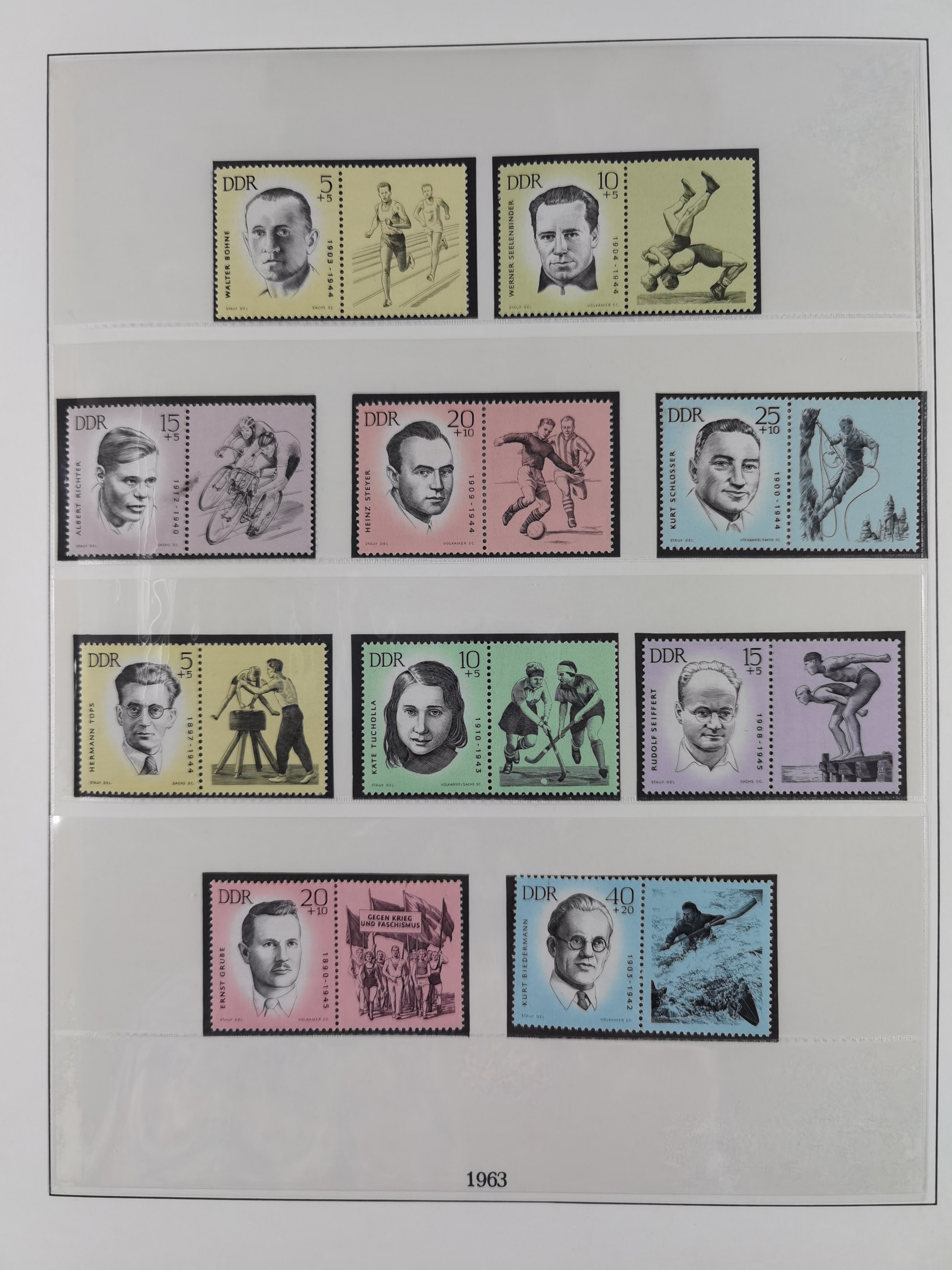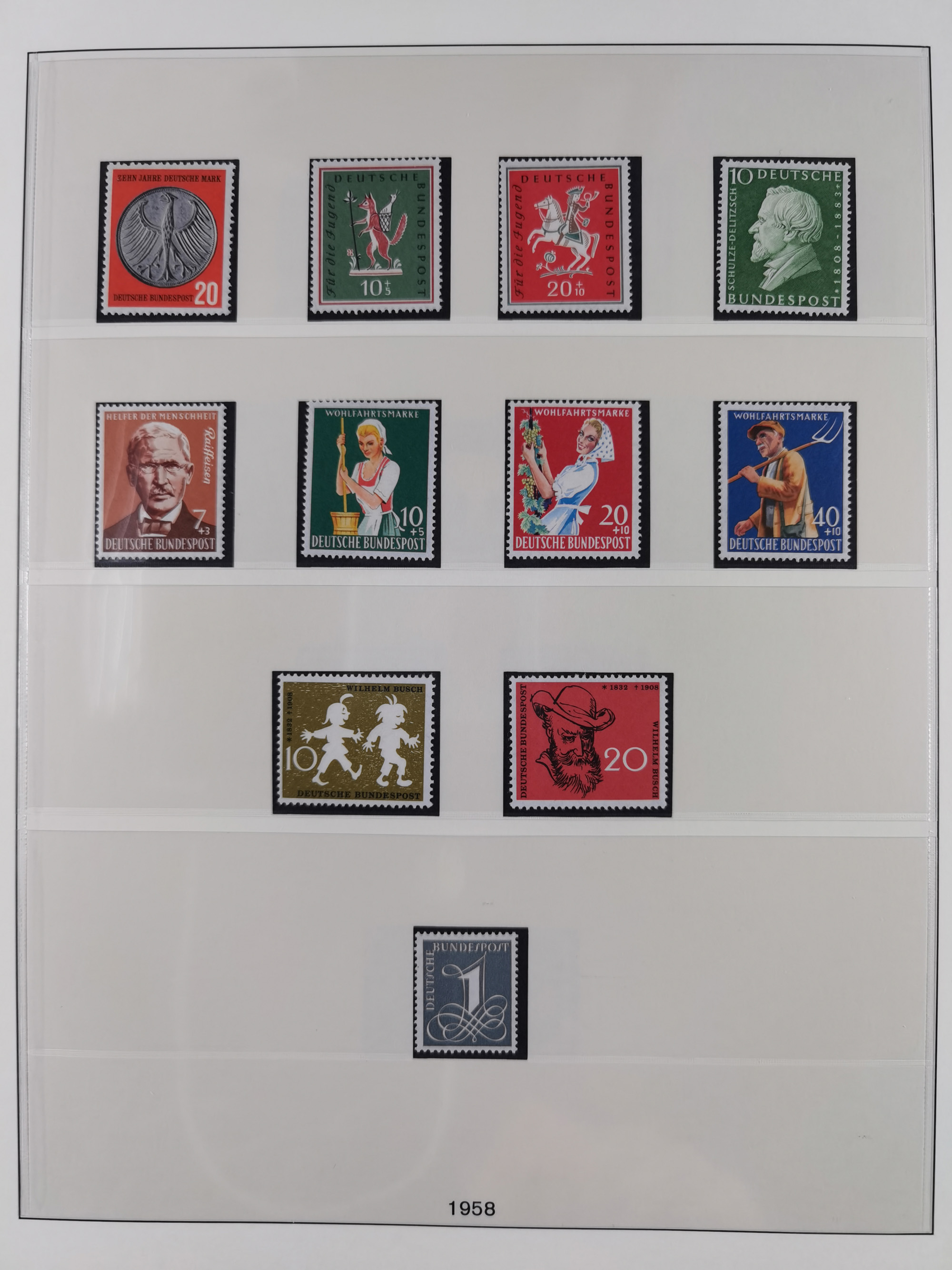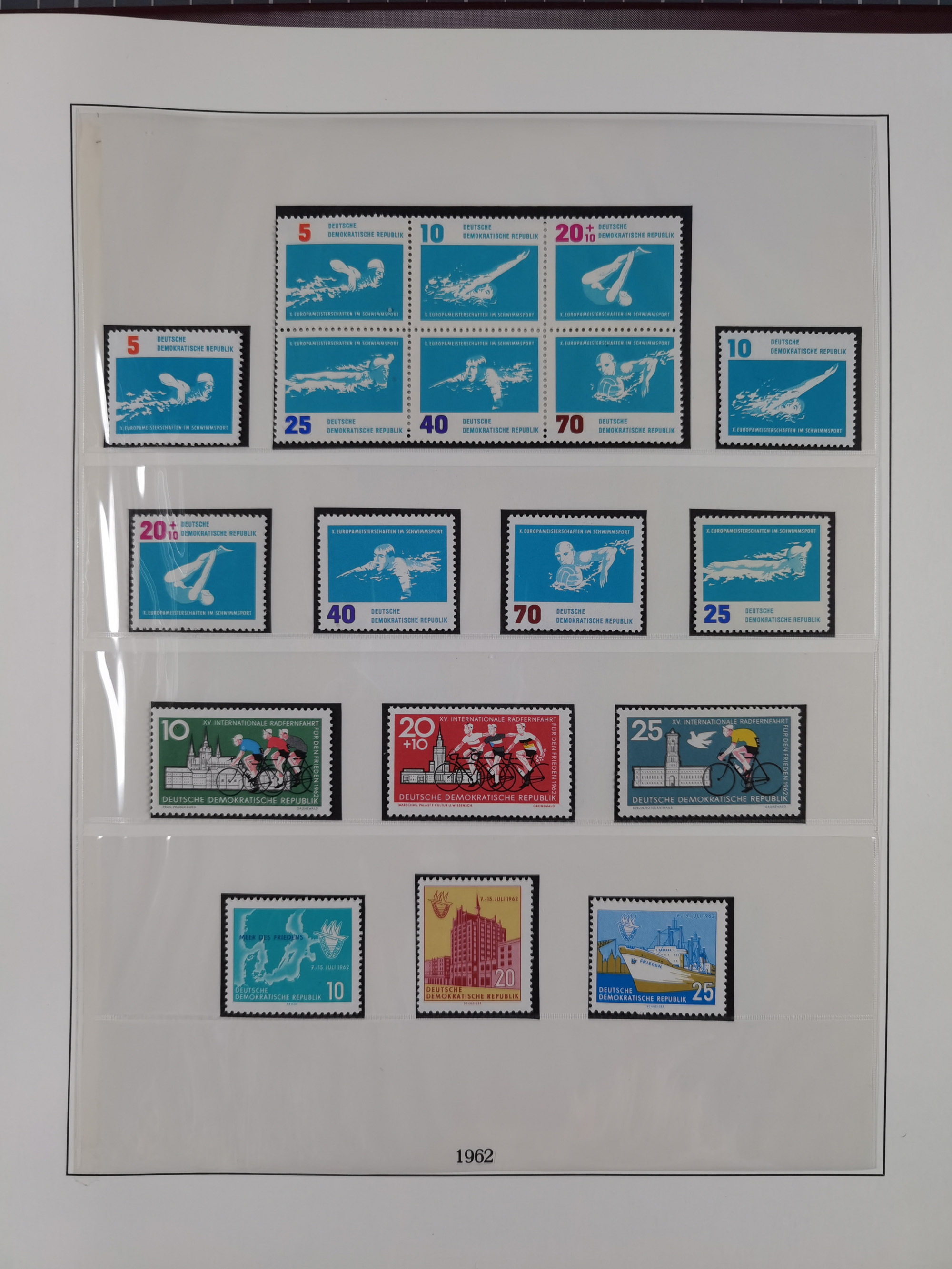 1948/90, in den Hauptnummern bis 1960 komplette postfrische Sammlungen Berlin 1948-90 inkl. Schwarzaufdruck, Rotaufdruck sign. Dub und Block 1, Bundesrepublik 1949-72 inkl. Posthornsatz, sowie DDR 1949-71 inkl. ausgiebigen Teilen Zusammendrucke, es fehlen bei den späten modernen Ausgaben teils einzelne Werte oder Sätze, gute Erhaltung, Alben mit Lagerspuren, in 11 Vordruckalben