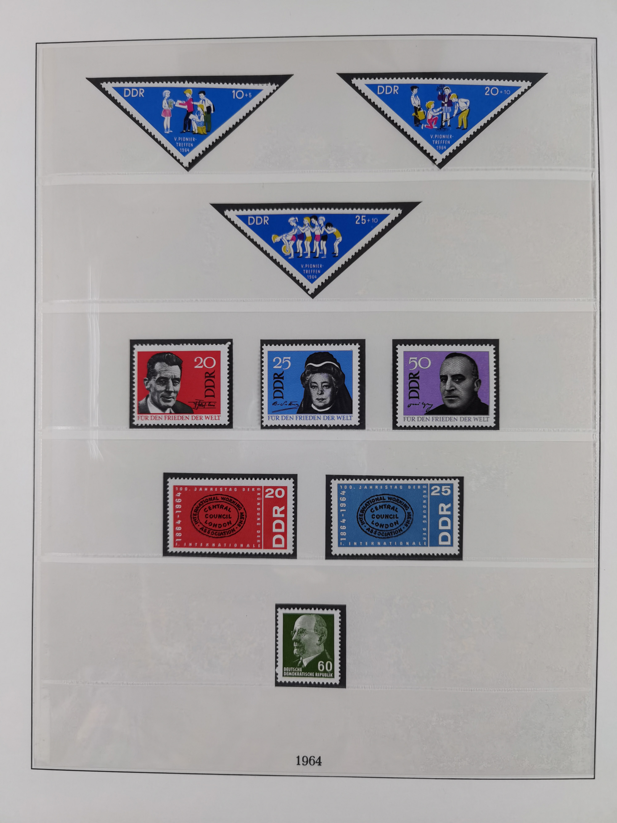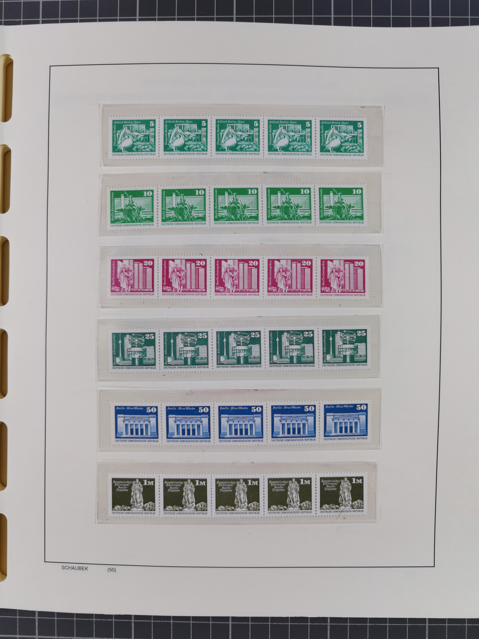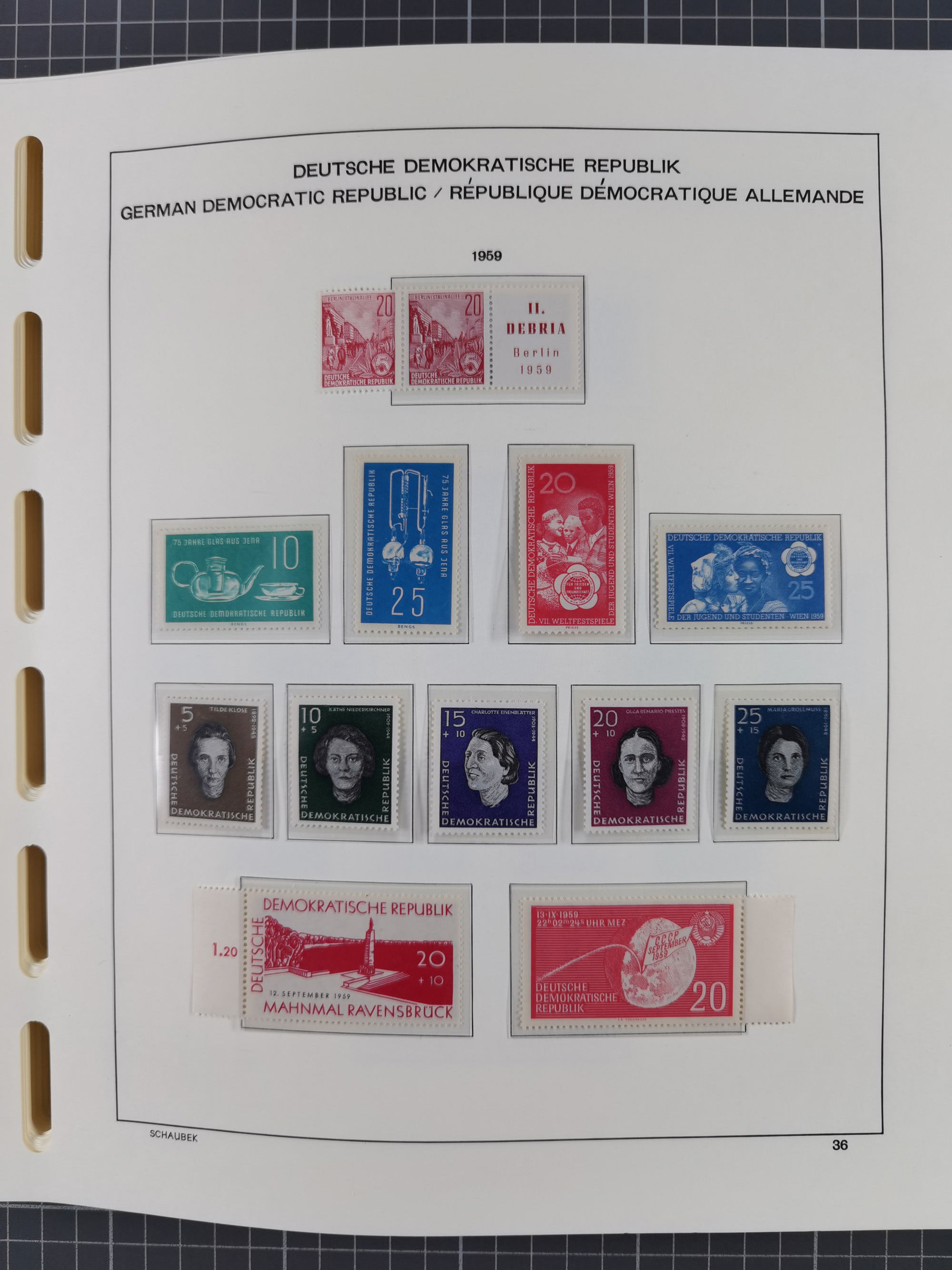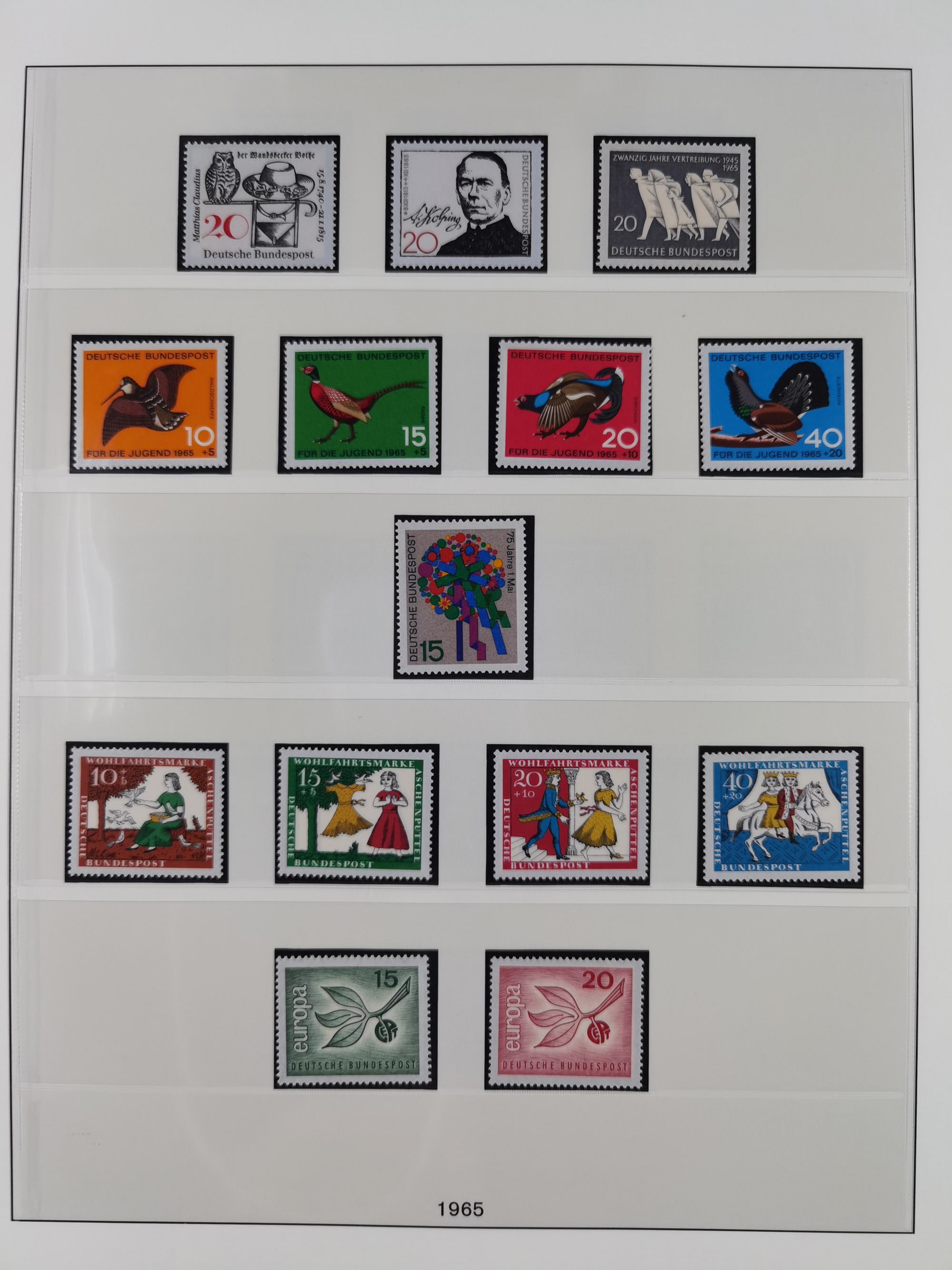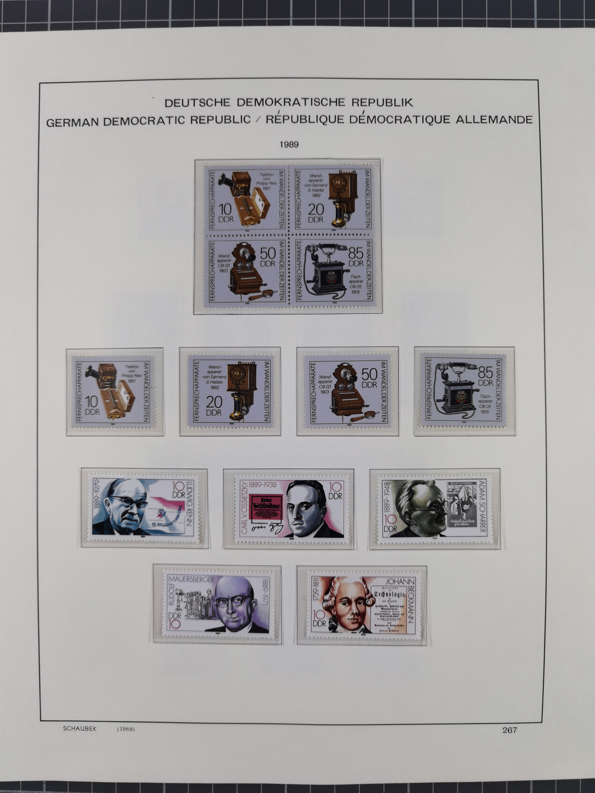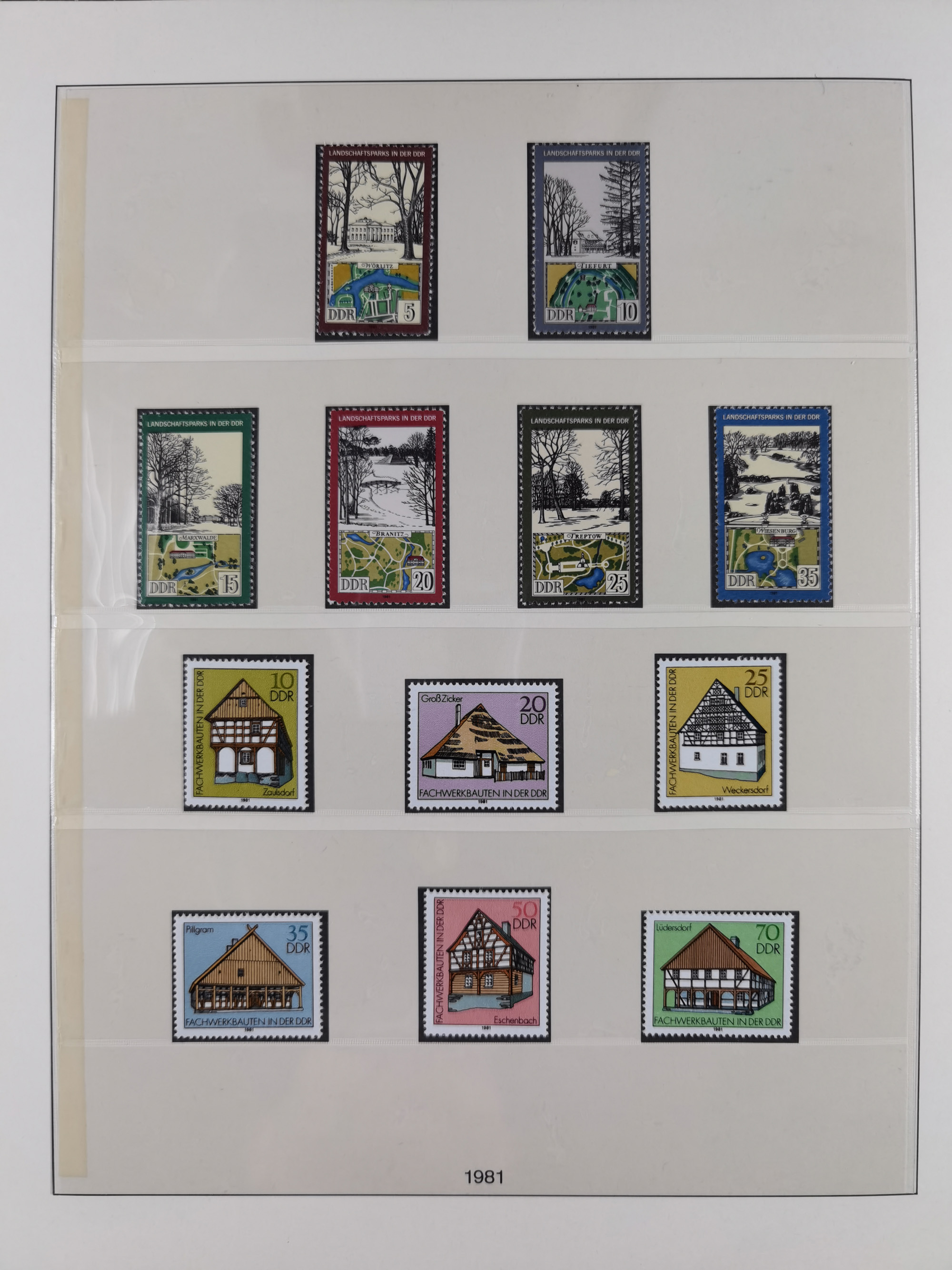 1948/90, in den Hauptnummern bis 1960 komplette postfrische Sammlungen Berlin 1948-90 inkl. Schwarzaufdruck, Rotaufdruck sign. Dub und Block 1, Bundesrepublik 1949-72 inkl. Posthornsatz, sowie DDR 1949-71 inkl. ausgiebigen Teilen Zusammendrucke, es fehlen bei den späten modernen Ausgaben teils einzelne Werte oder Sätze, gute Erhaltung, Alben mit Lagerspuren, in 11 Vordruckalben