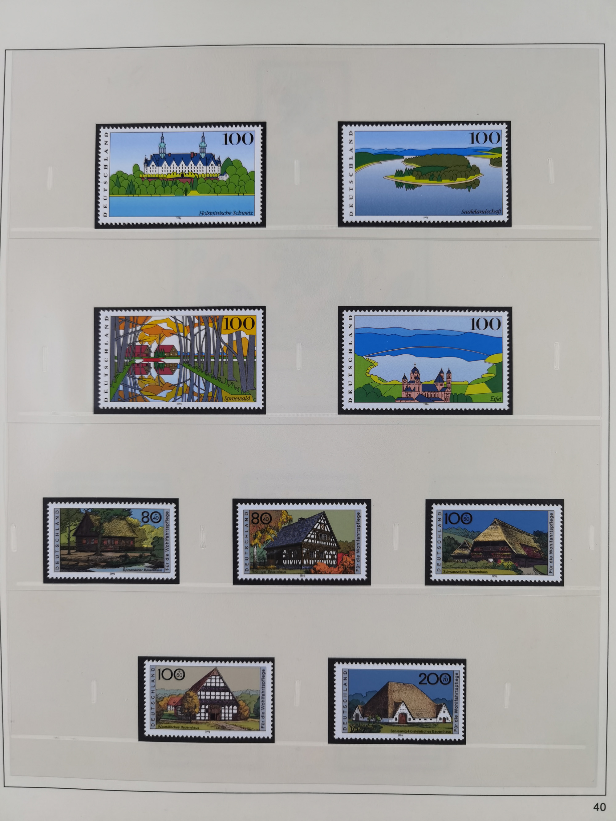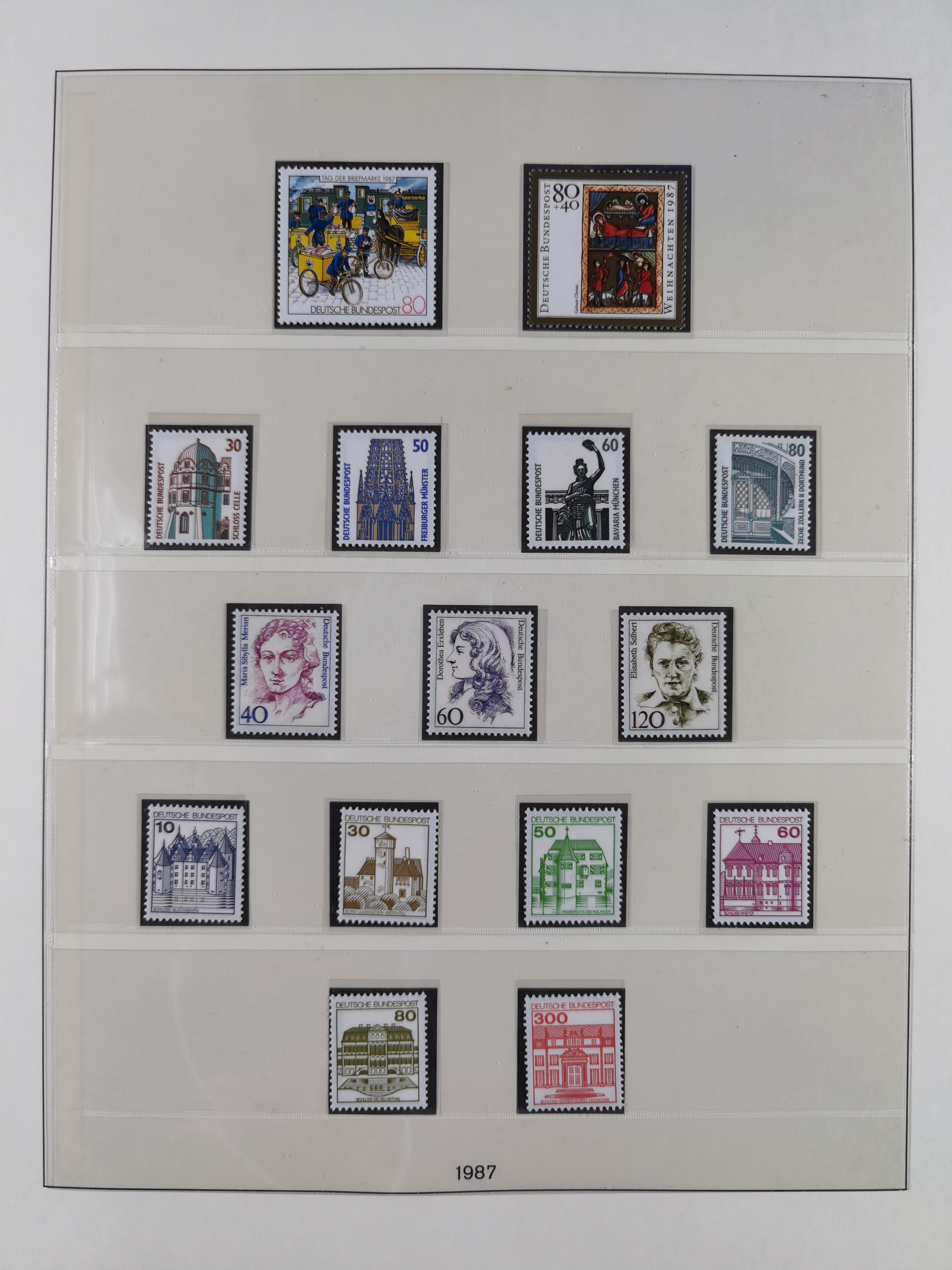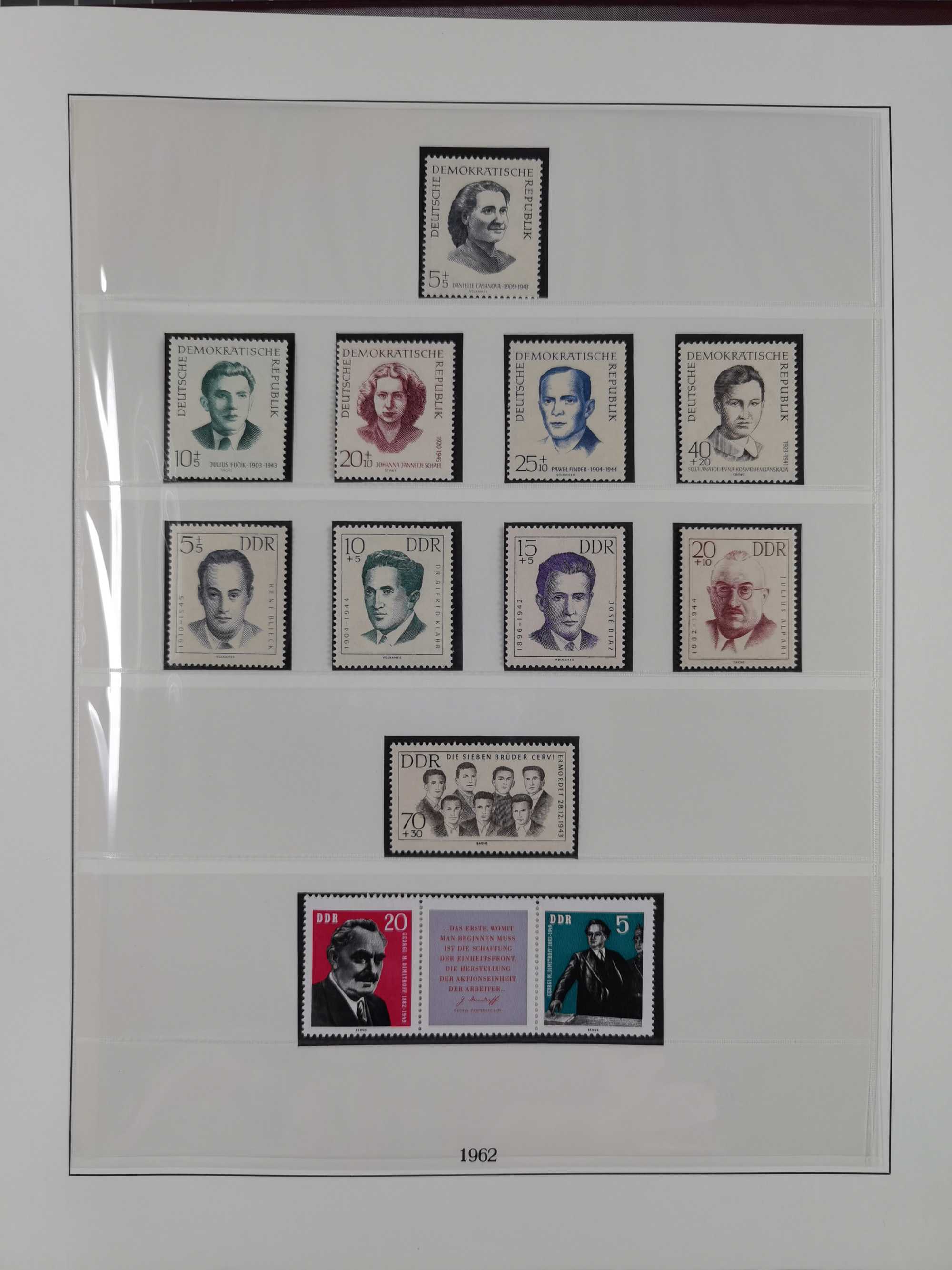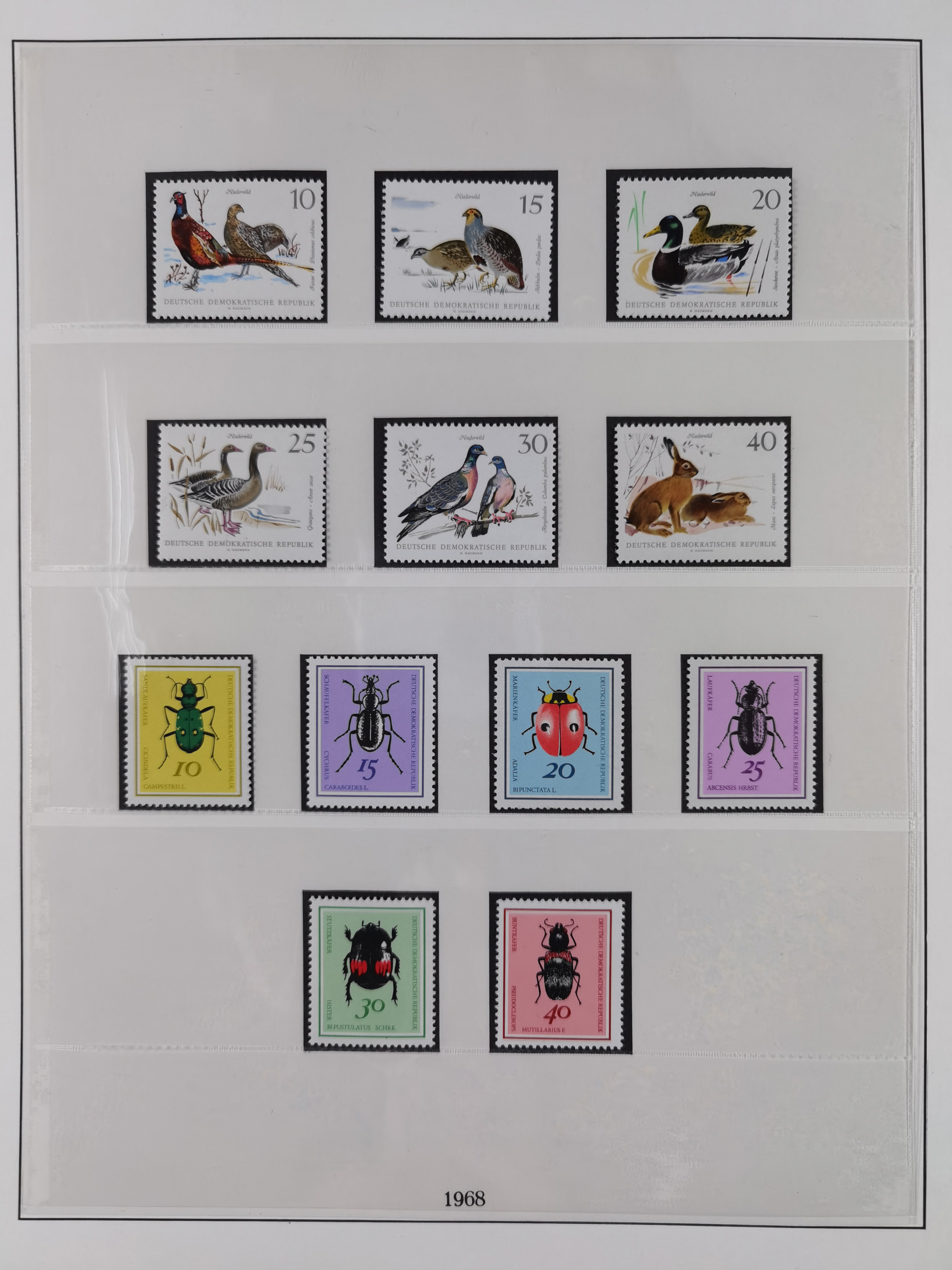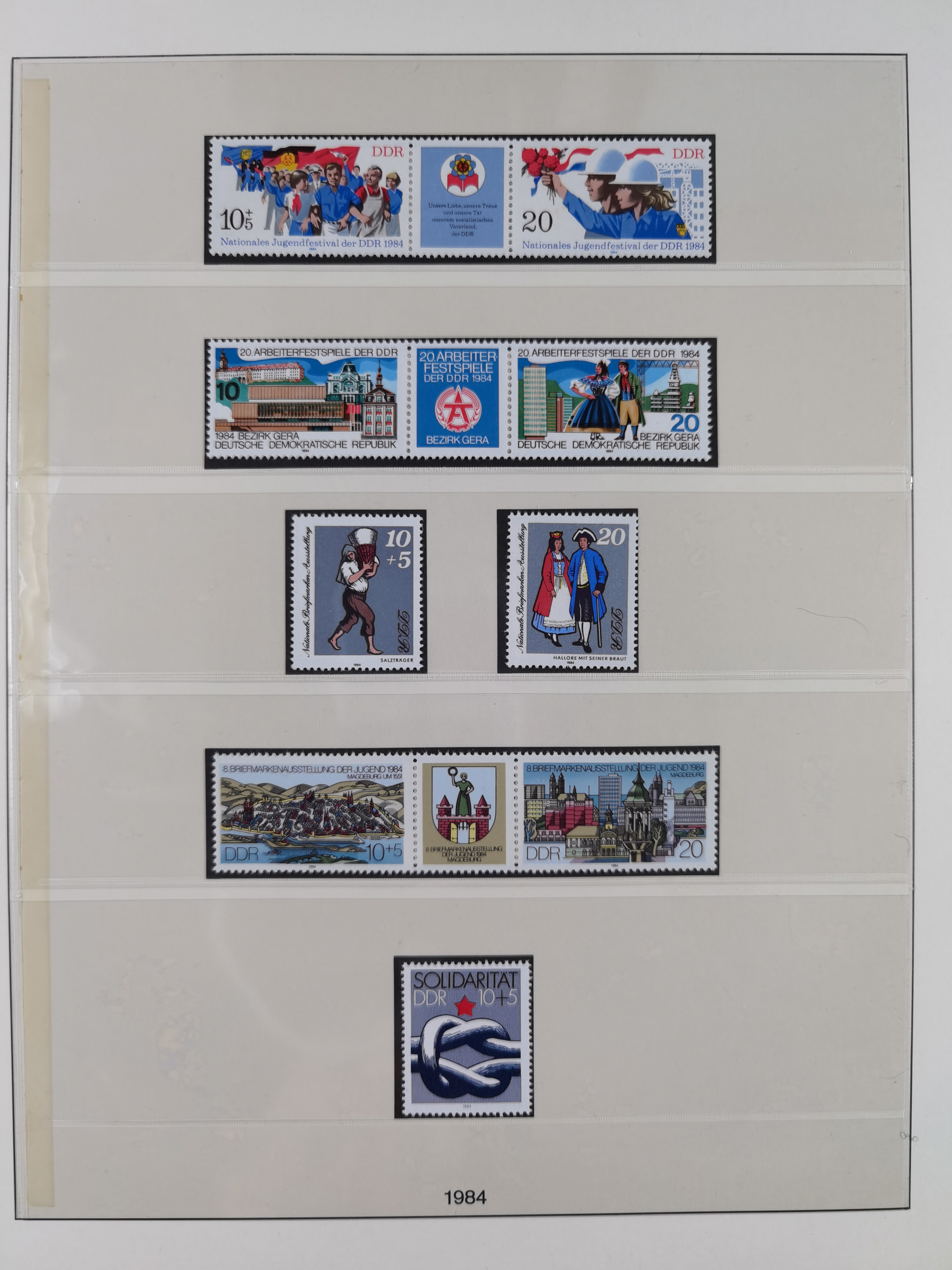 1948/90, in den Hauptnummern bis 1960 komplette postfrische Sammlungen Berlin 1948-90 inkl. Schwarzaufdruck, Rotaufdruck sign. Dub und Block 1, Bundesrepublik 1949-72 inkl. Posthornsatz, sowie DDR 1949-71 inkl. ausgiebigen Teilen Zusammendrucke, es fehlen bei den späten modernen Ausgaben teils einzelne Werte oder Sätze, gute Erhaltung, Alben mit Lagerspuren, in 11 Vordruckalben