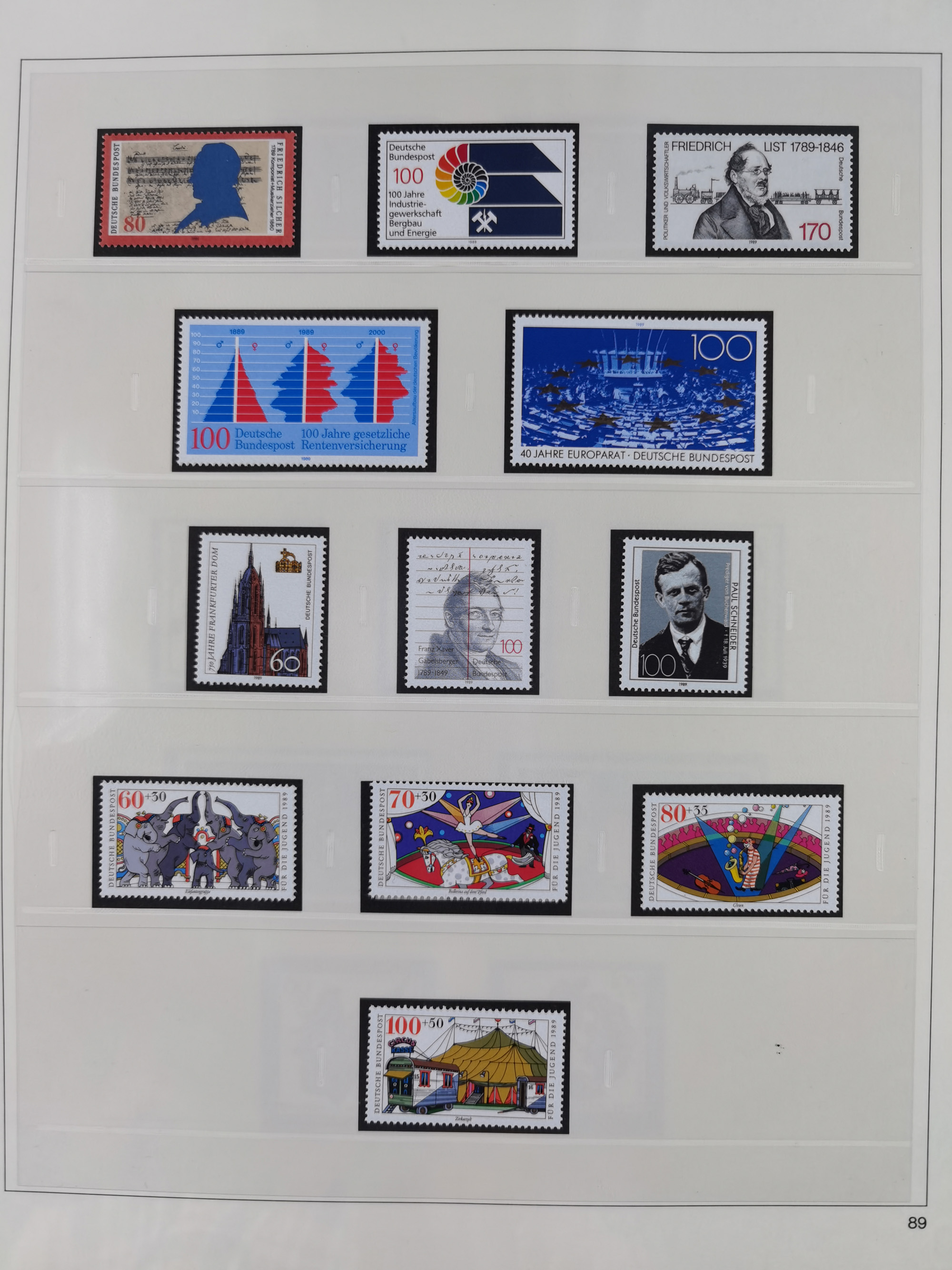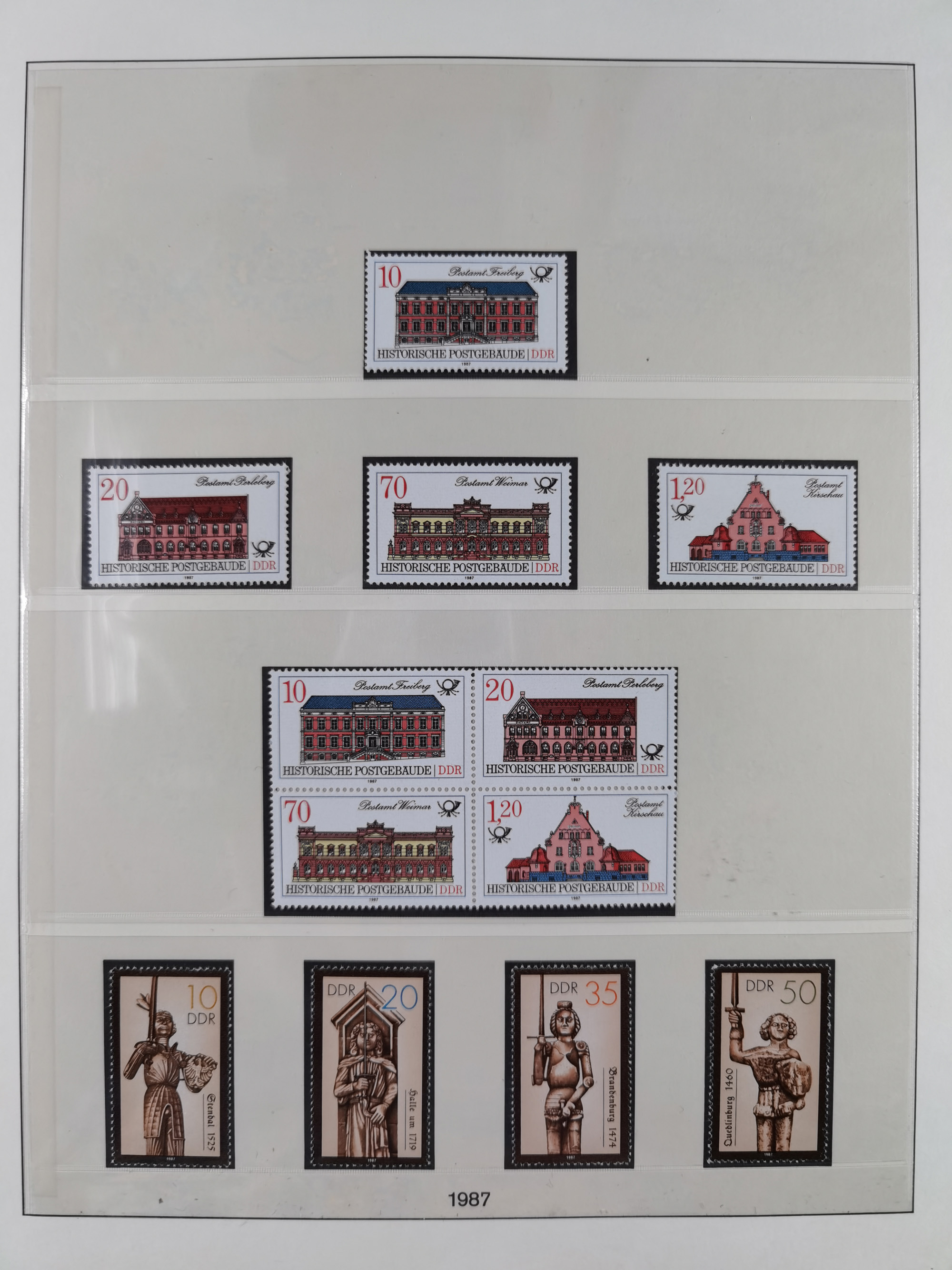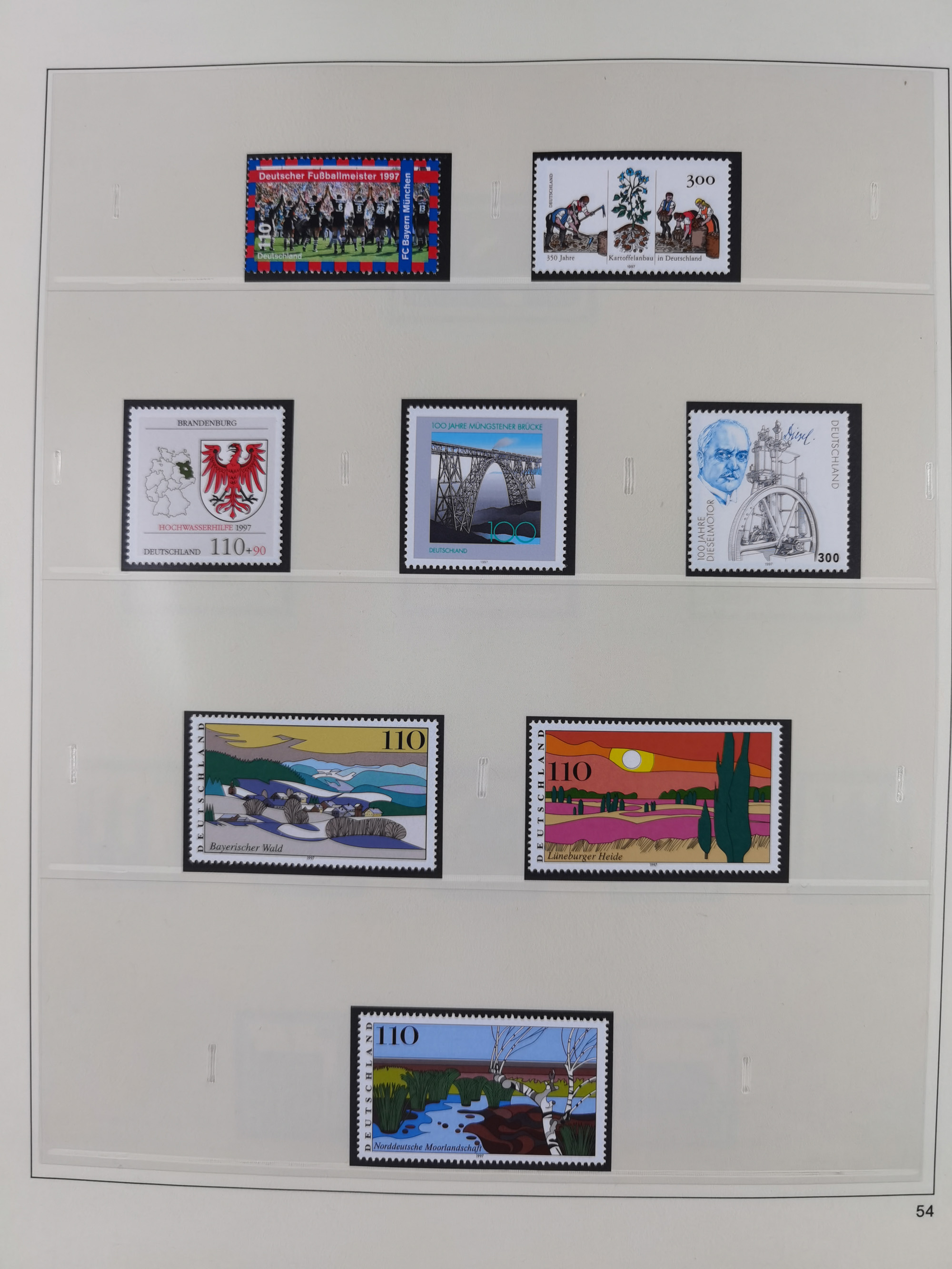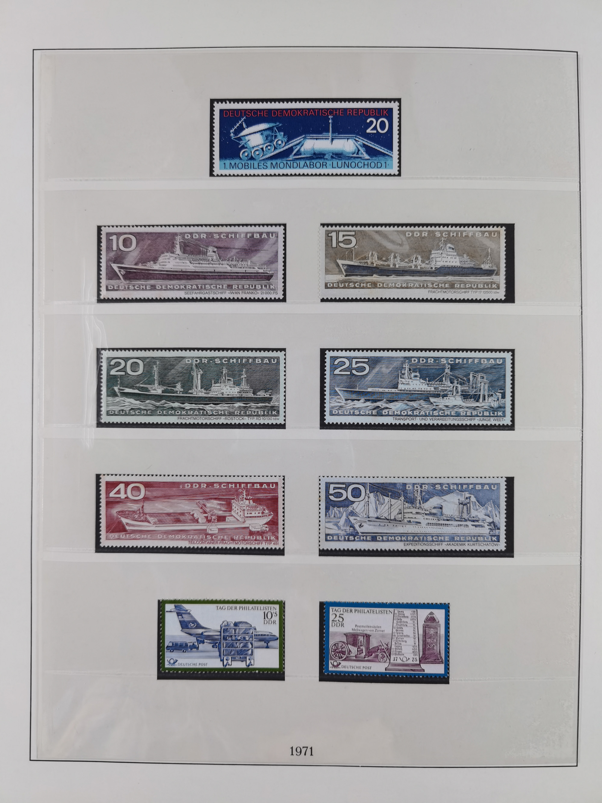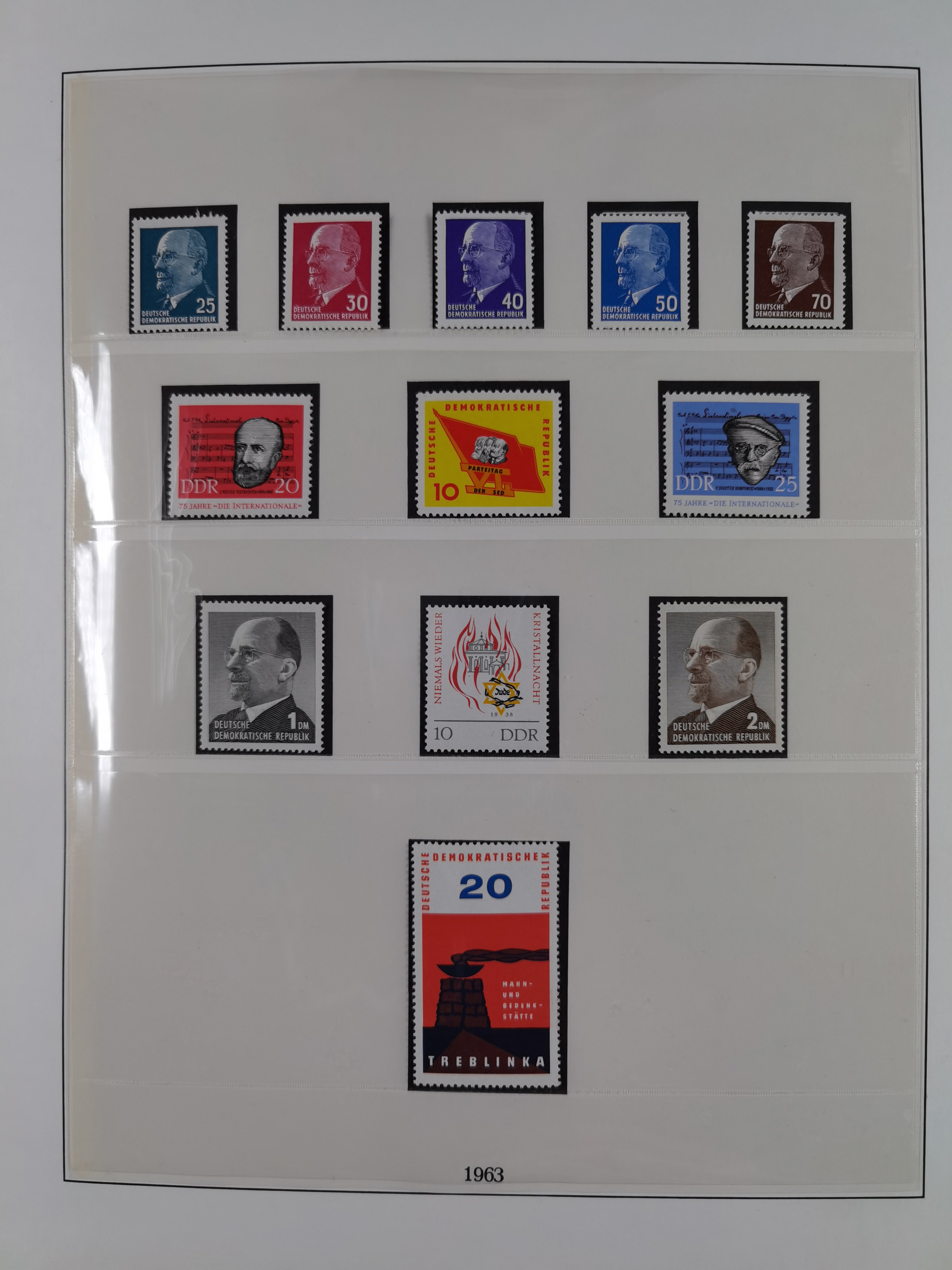 1948/90, in den Hauptnummern bis 1960 komplette postfrische Sammlungen Berlin 1948-90 inkl. Schwarzaufdruck, Rotaufdruck sign. Dub und Block 1, Bundesrepublik 1949-72 inkl. Posthornsatz, sowie DDR 1949-71 inkl. ausgiebigen Teilen Zusammendrucke, es fehlen bei den späten modernen Ausgaben teils einzelne Werte oder Sätze, gute Erhaltung, Alben mit Lagerspuren, in 11 Vordruckalben